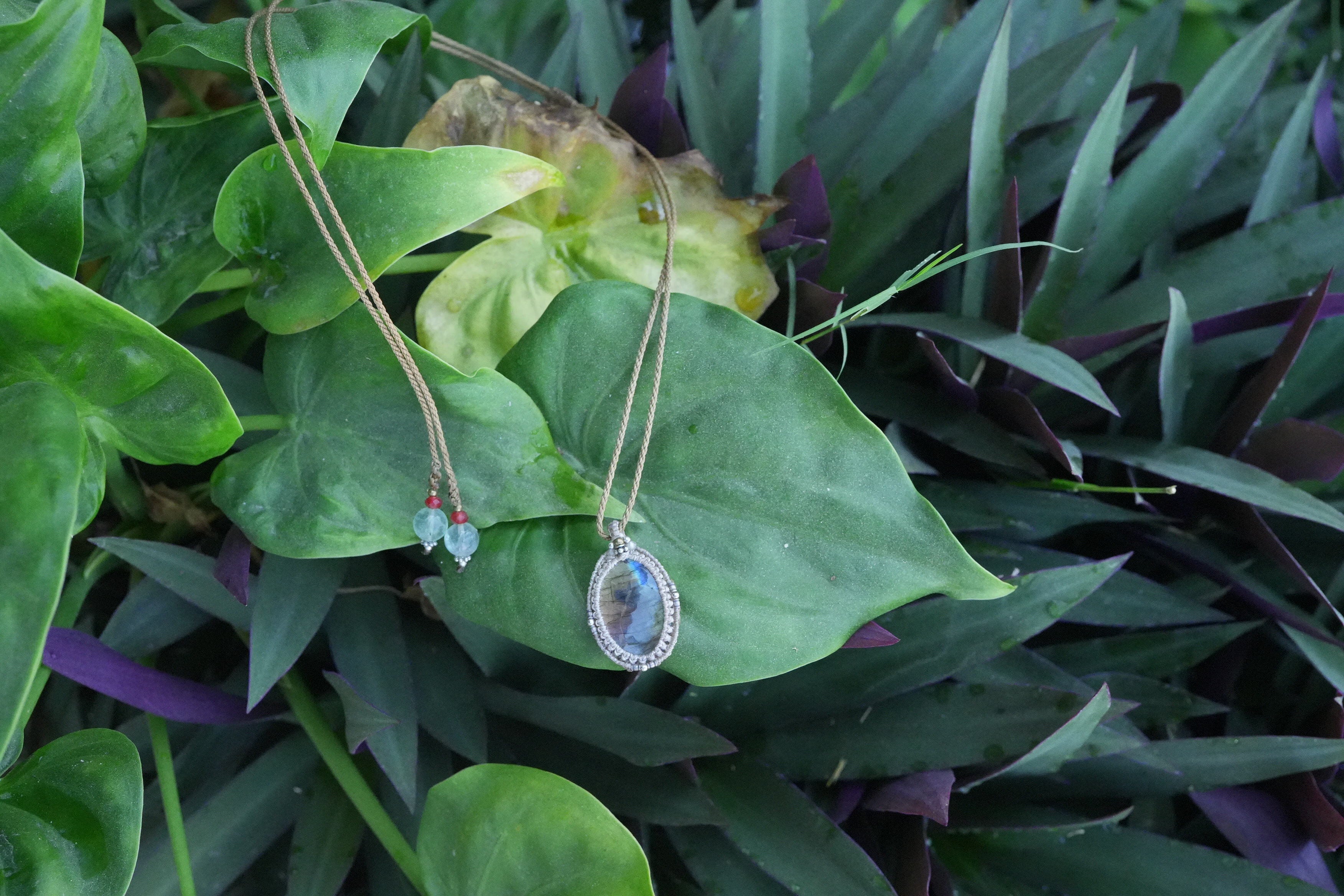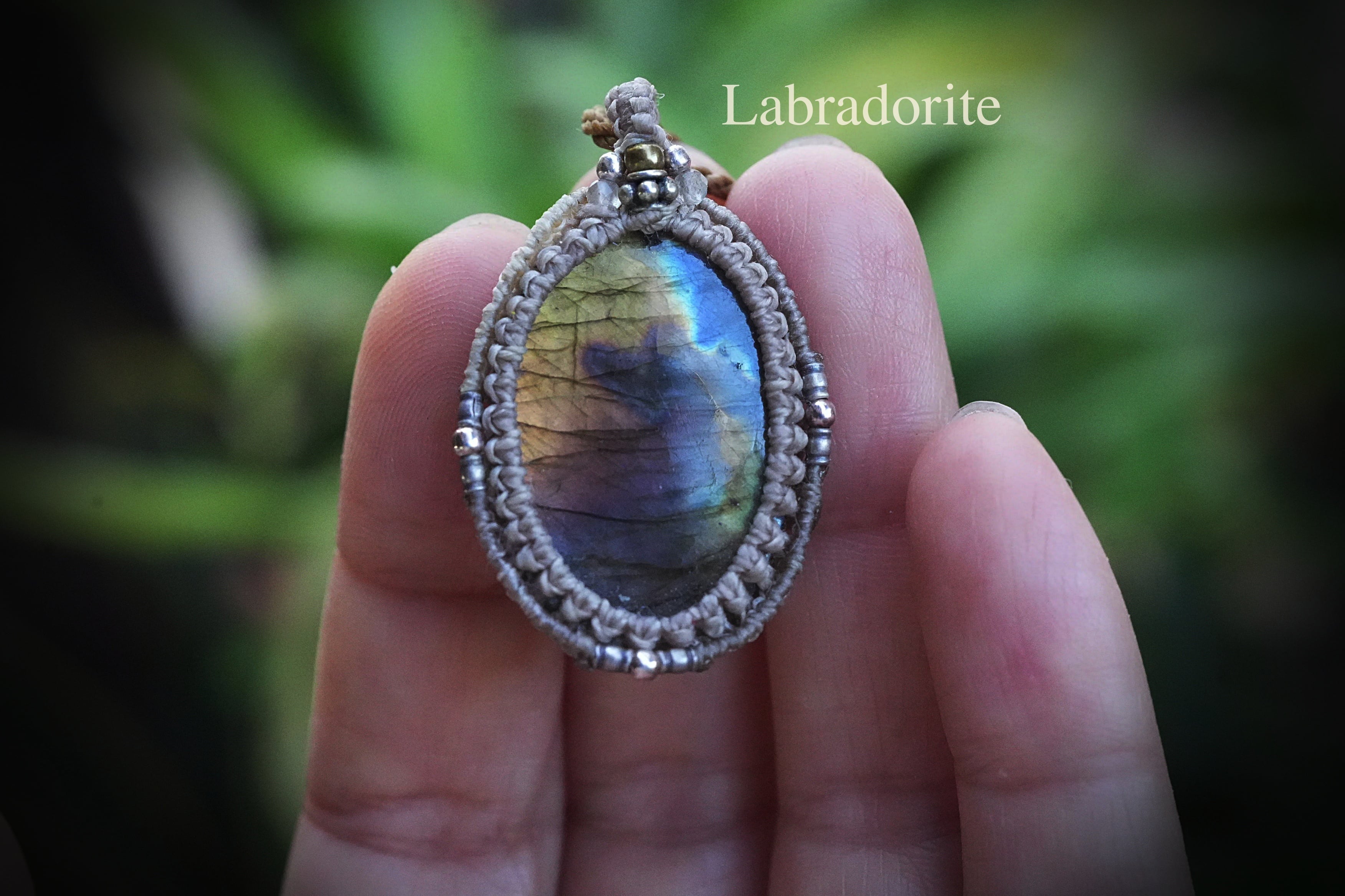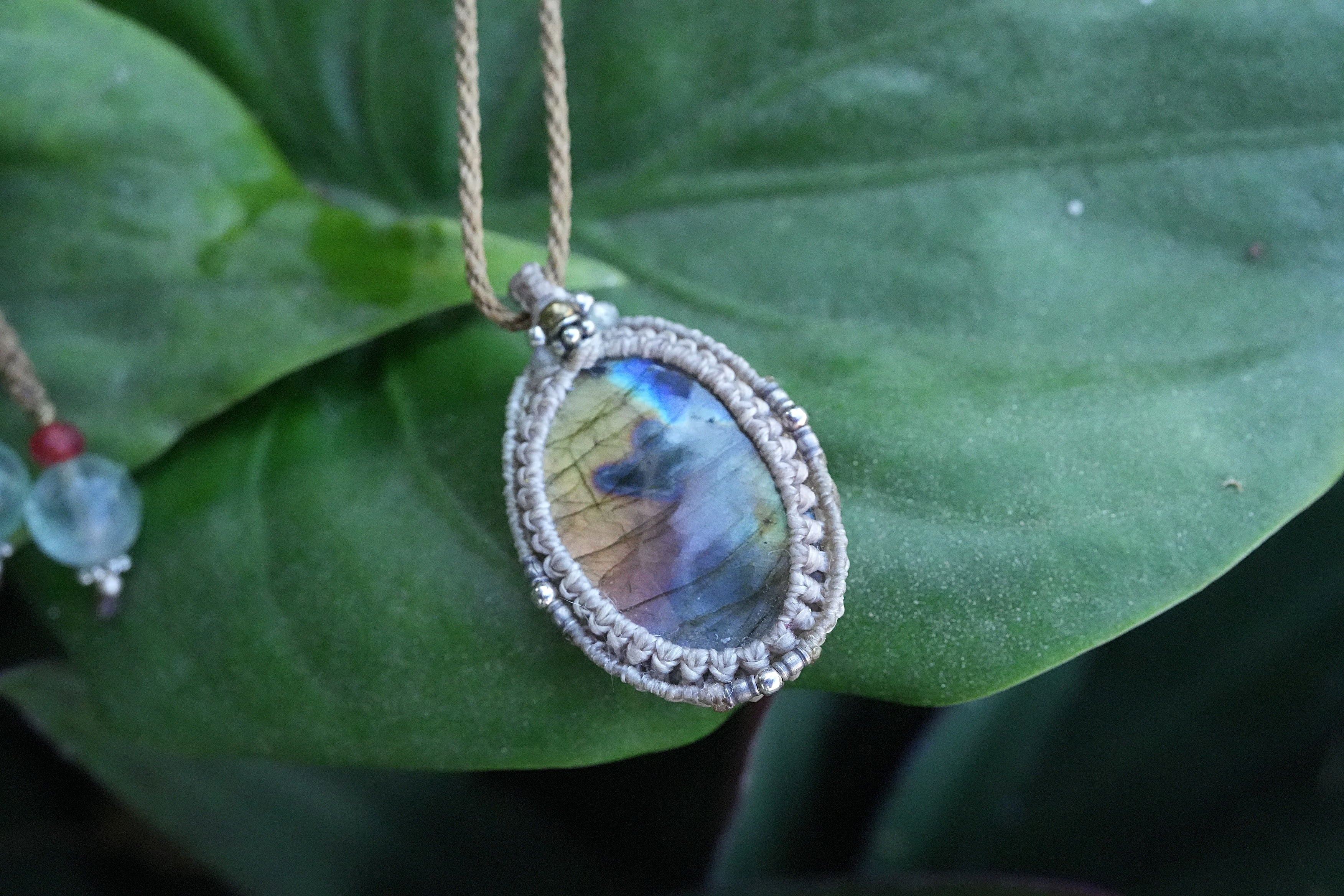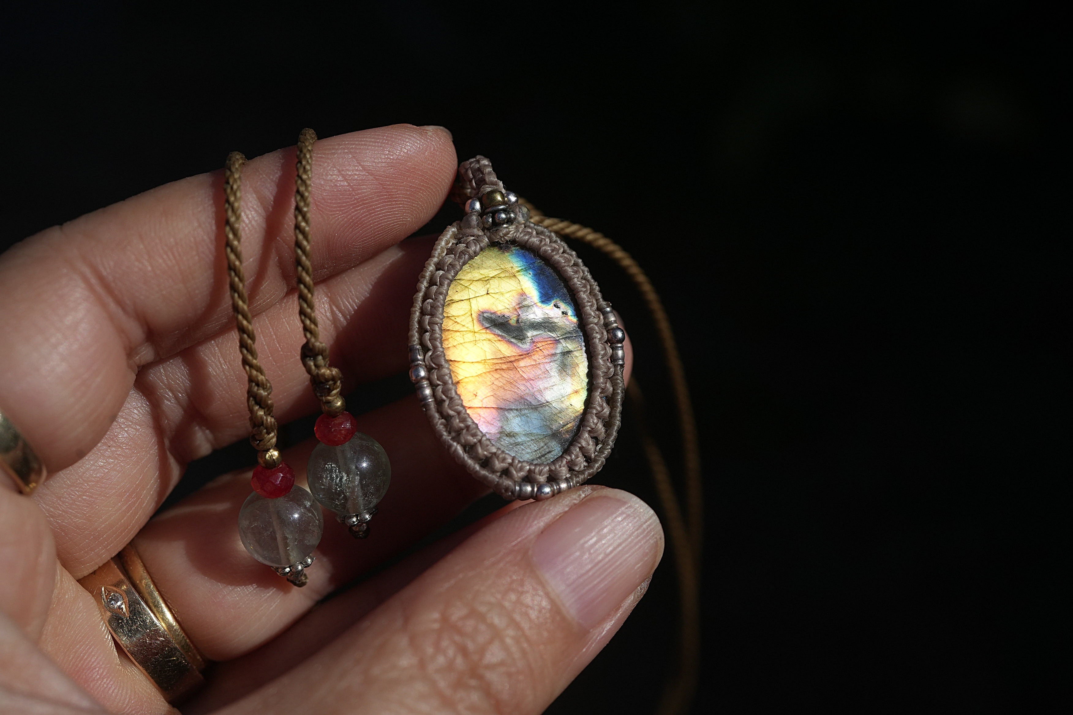 マルチな雷★ラブラドライト マクラメネックレス 2223
