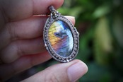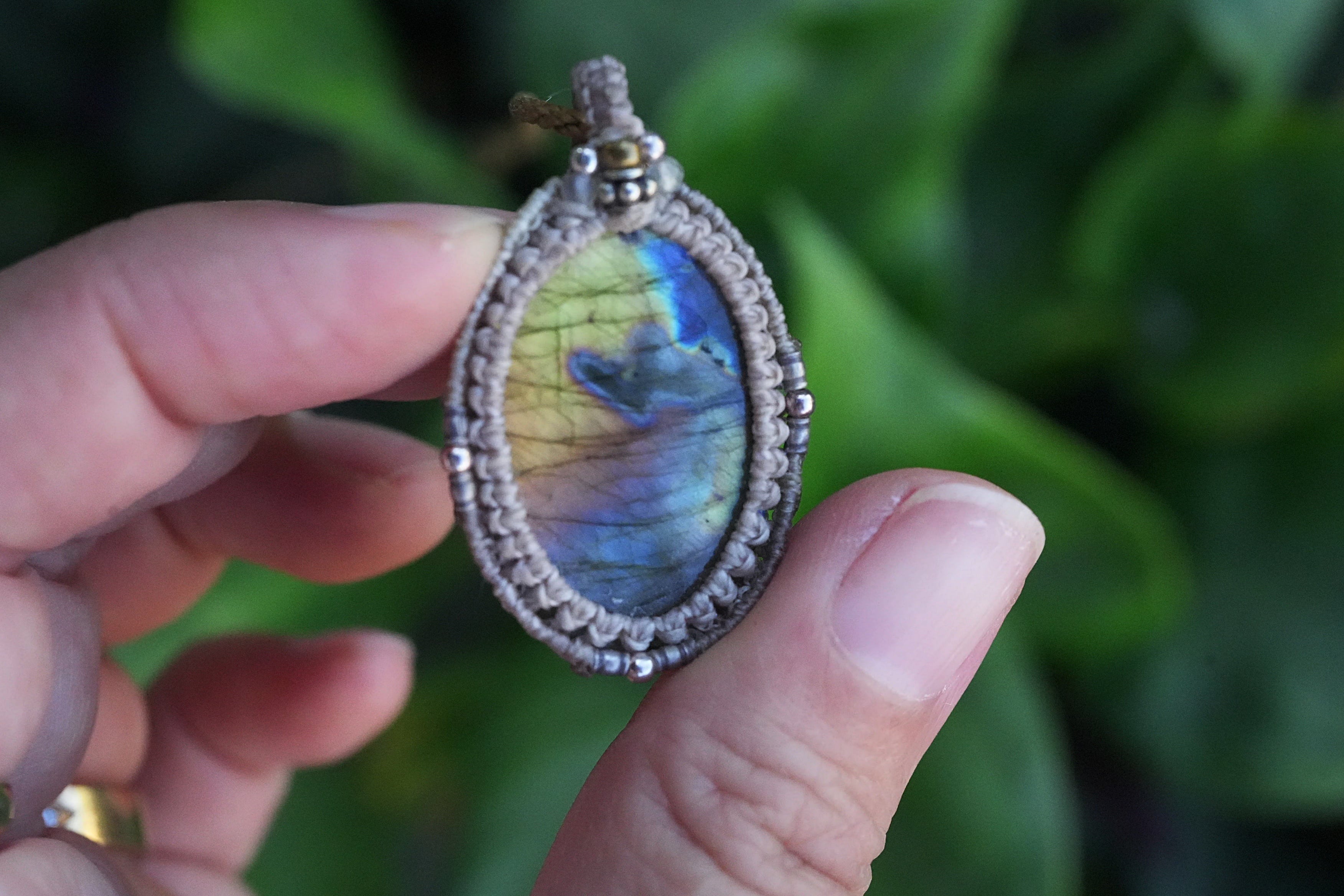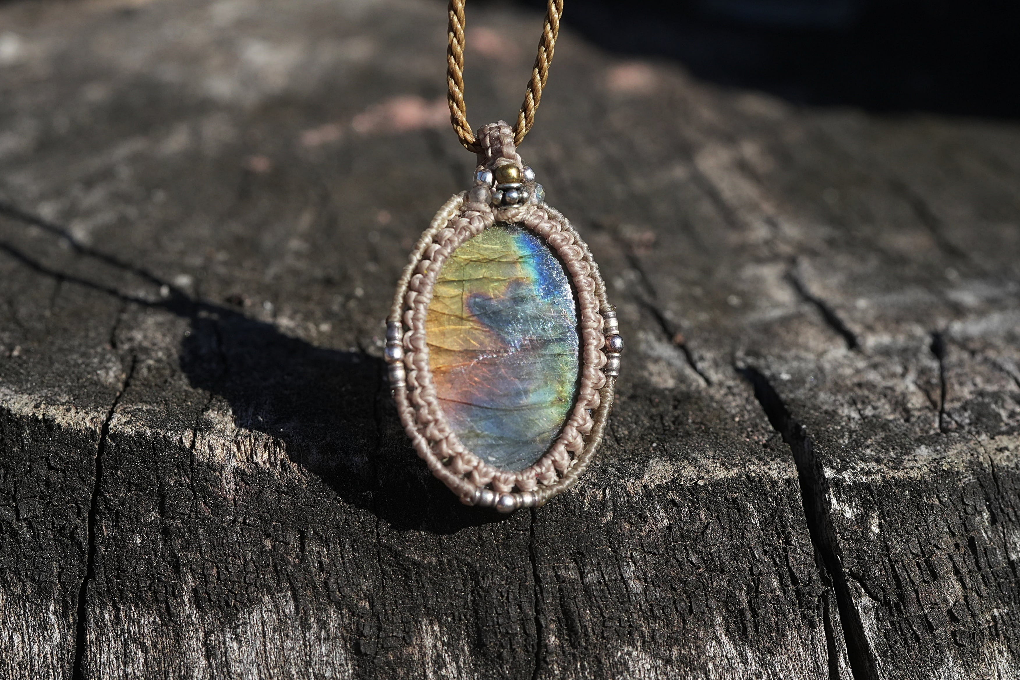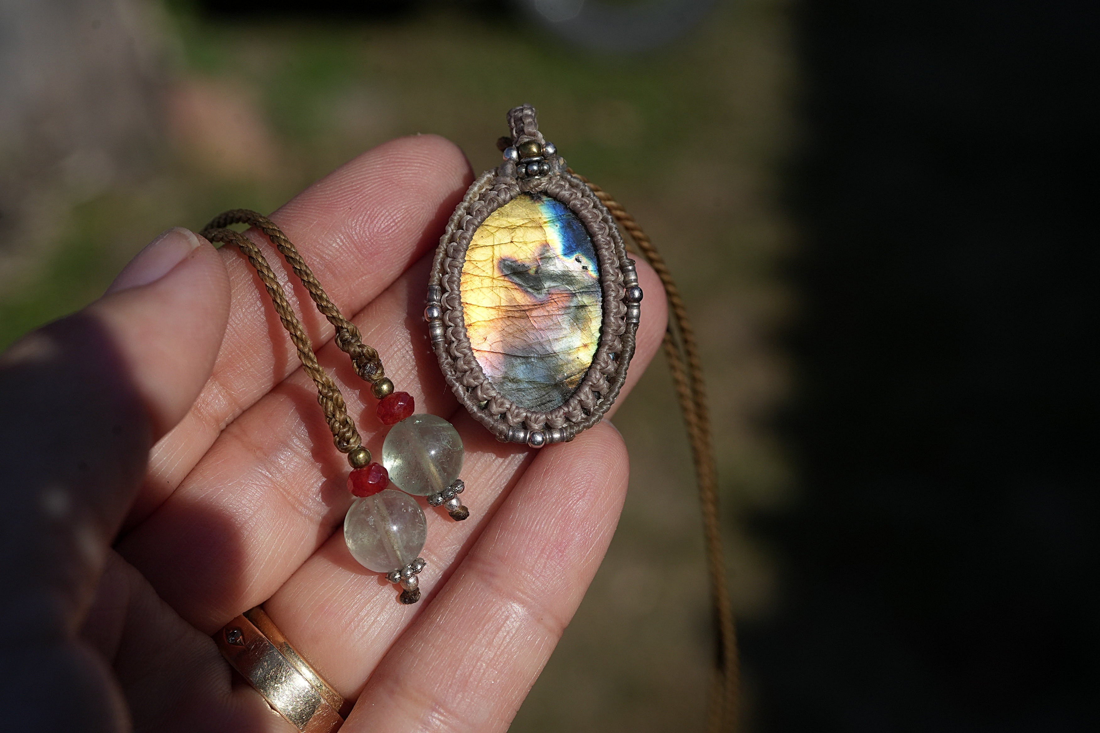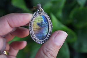 マルチな雷★ラブラドライト マクラメネックレス 2223