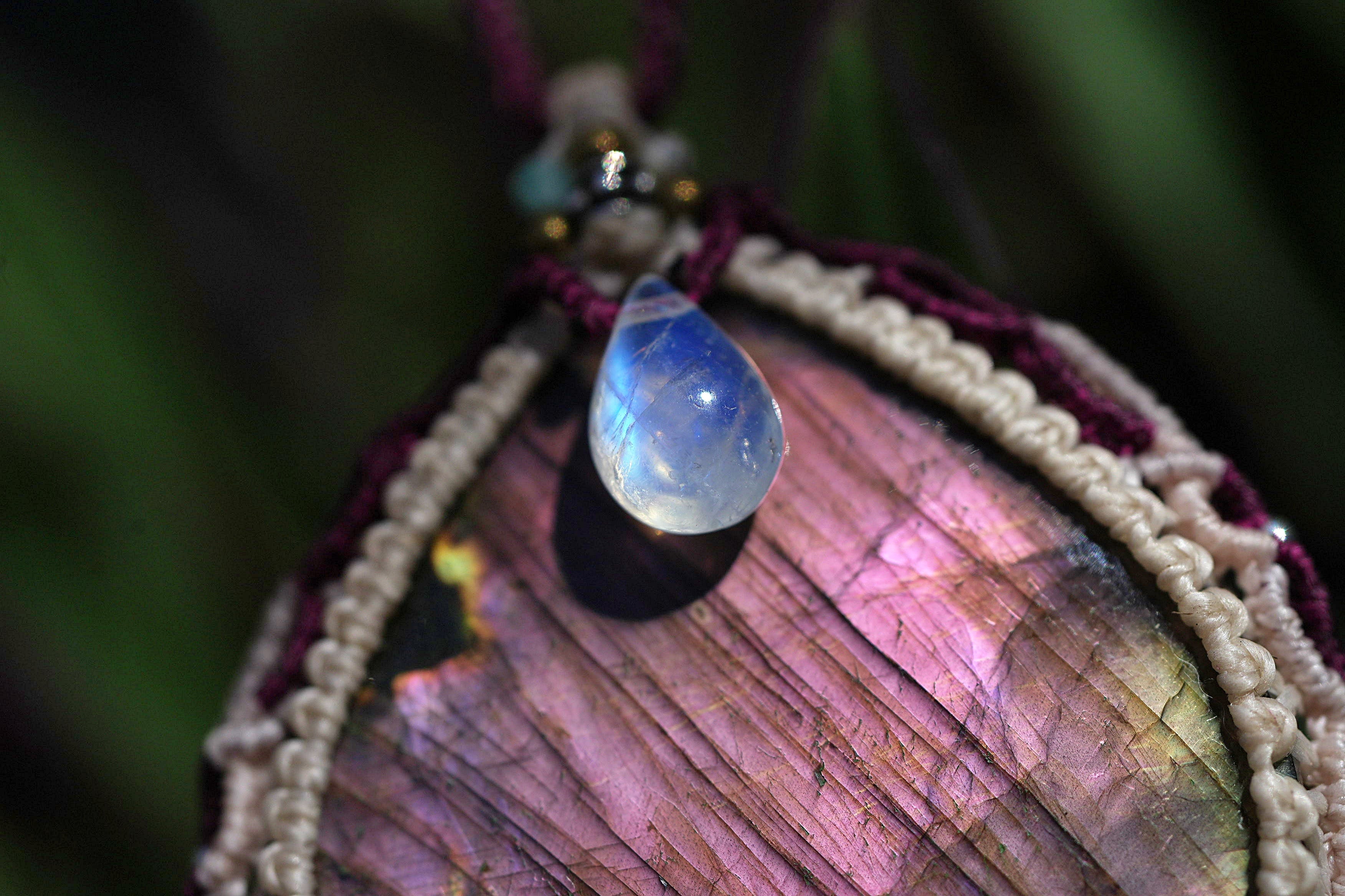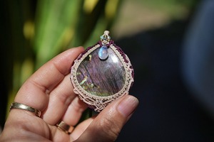 ピンクの奇跡★パープルラブラドライト マクラメネックレス2228