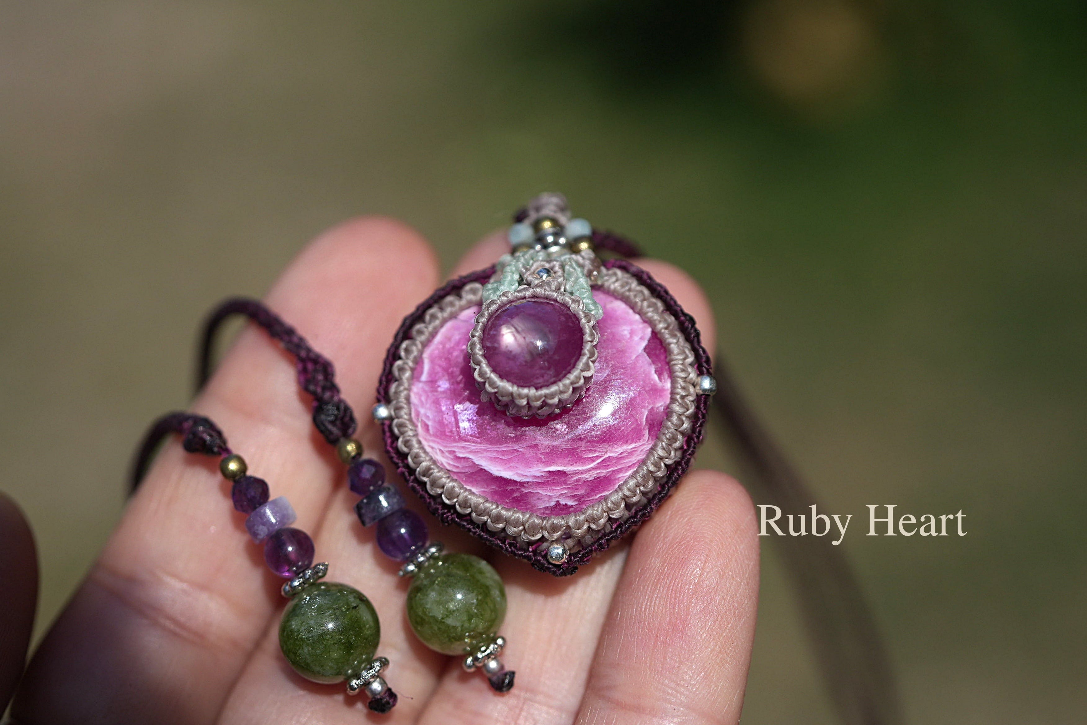 コランダム⭐︎ダブルピンク★ハート ローズルビー マクラメネックレス2230