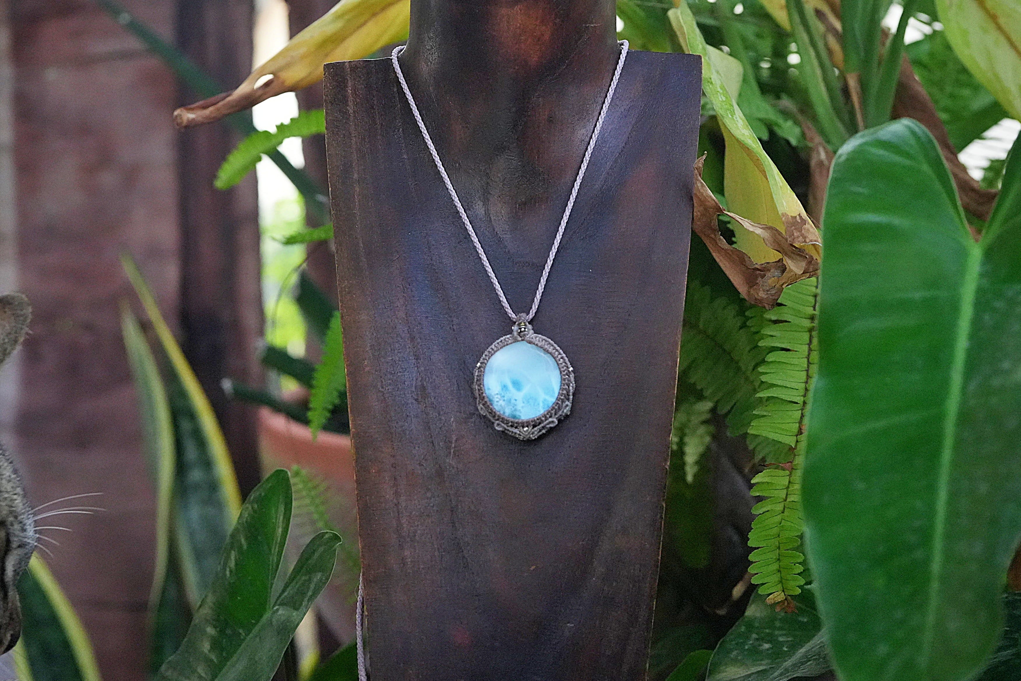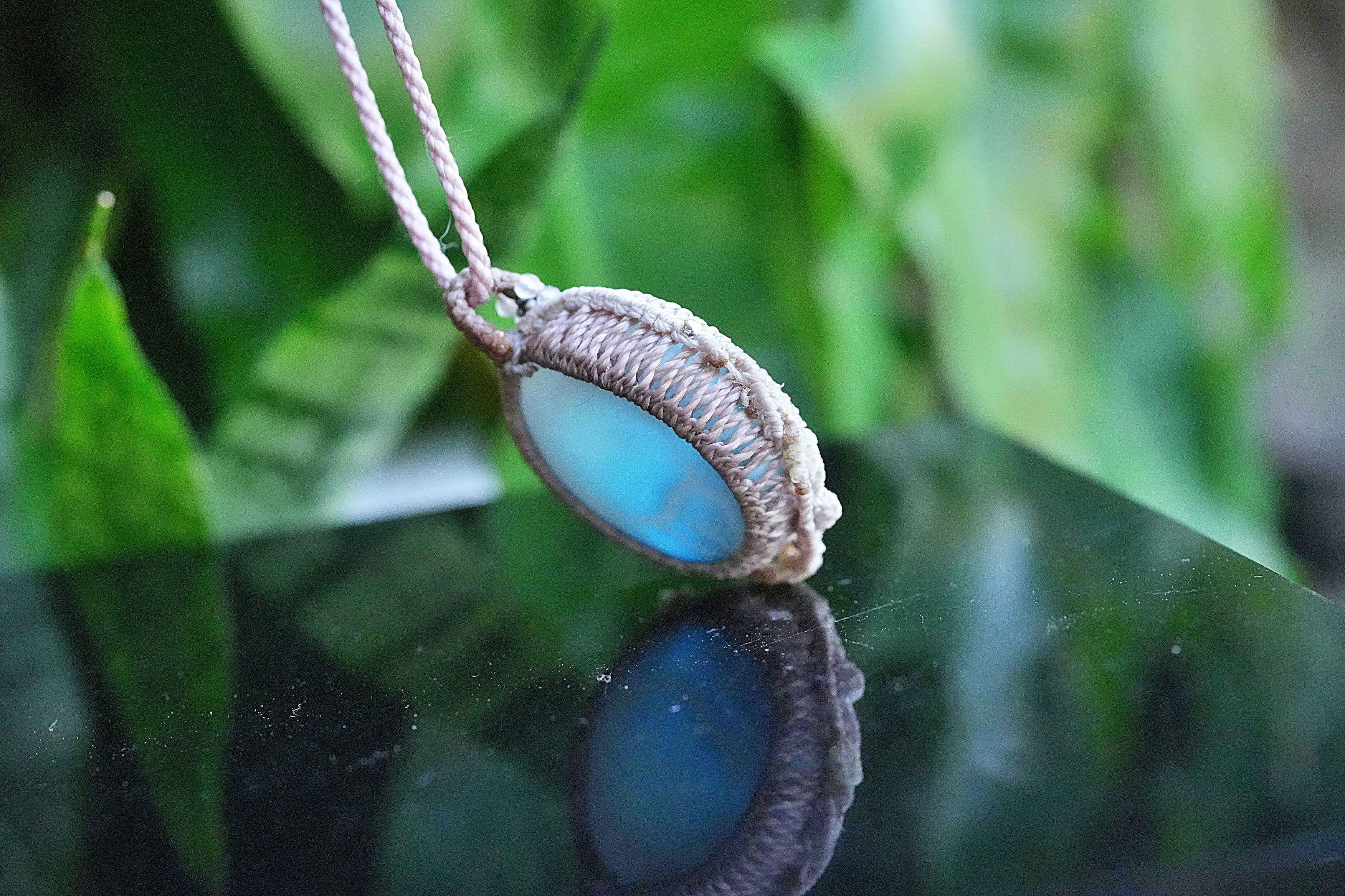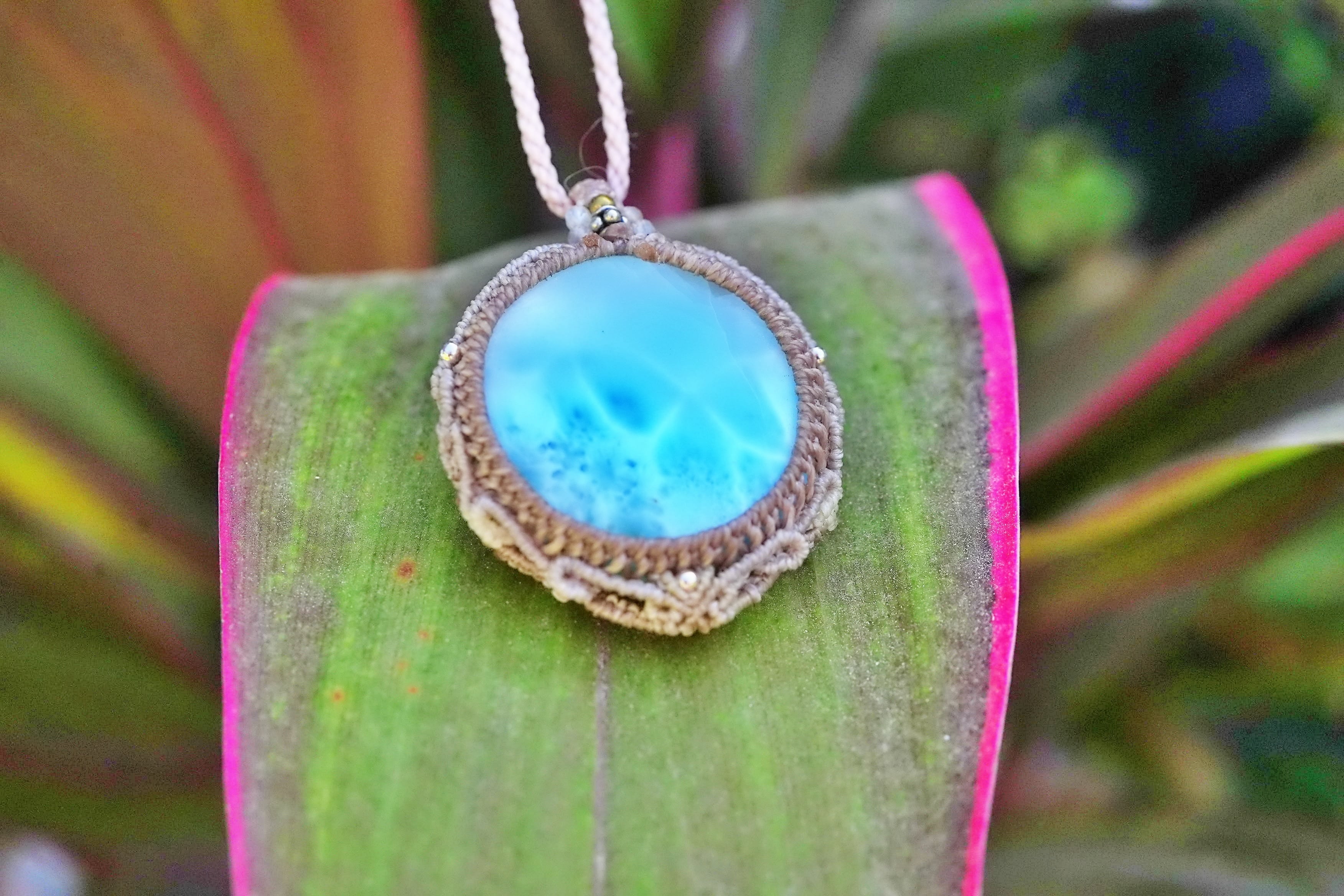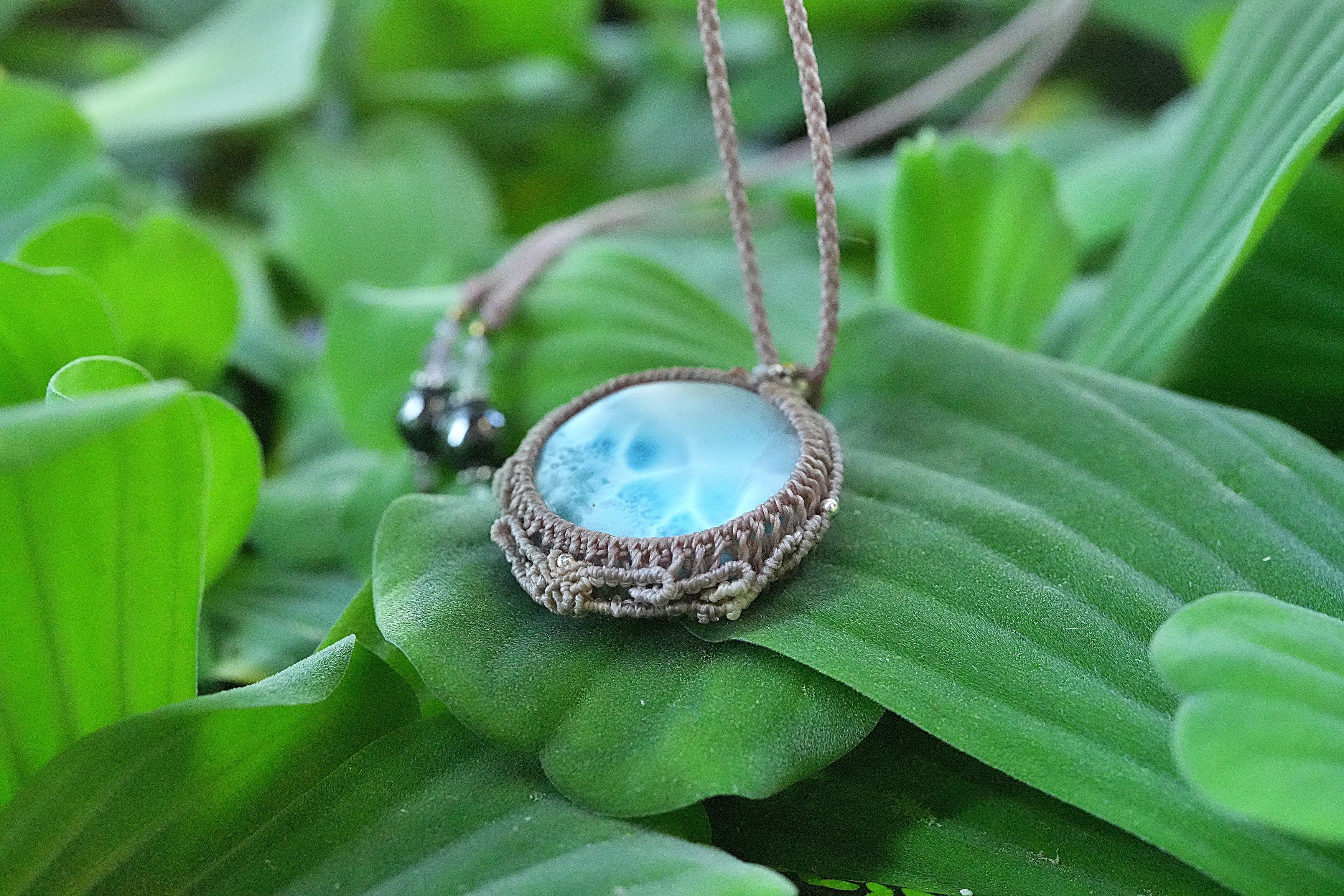 ◆このたびはカフェオレ、ヘンプ、キナリ色の蝋引き糸を使用しマクラメ編み装飾を施しました。