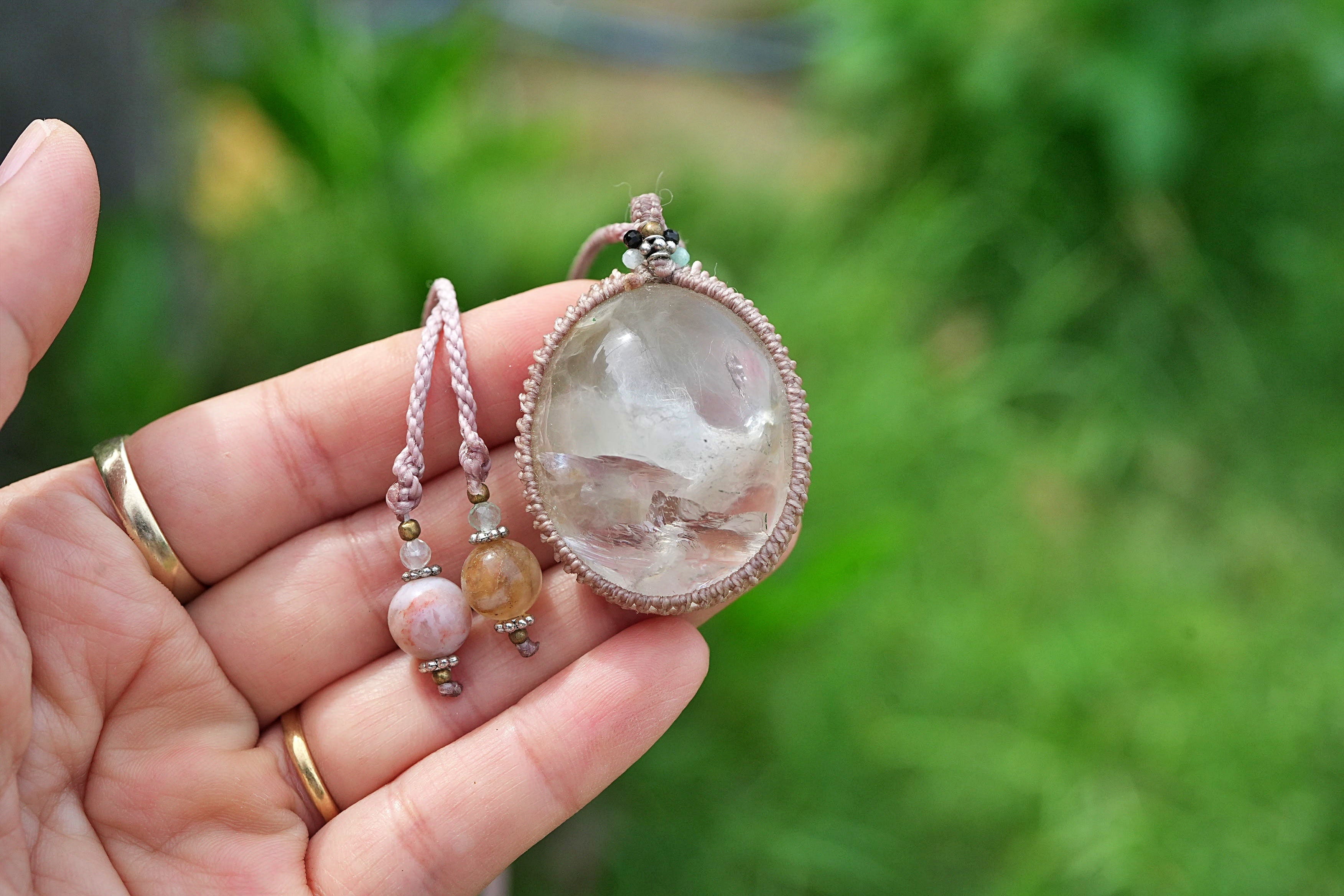湯けむり★大粒 ホワイトガーデンクォーツマクラメネックレス2555