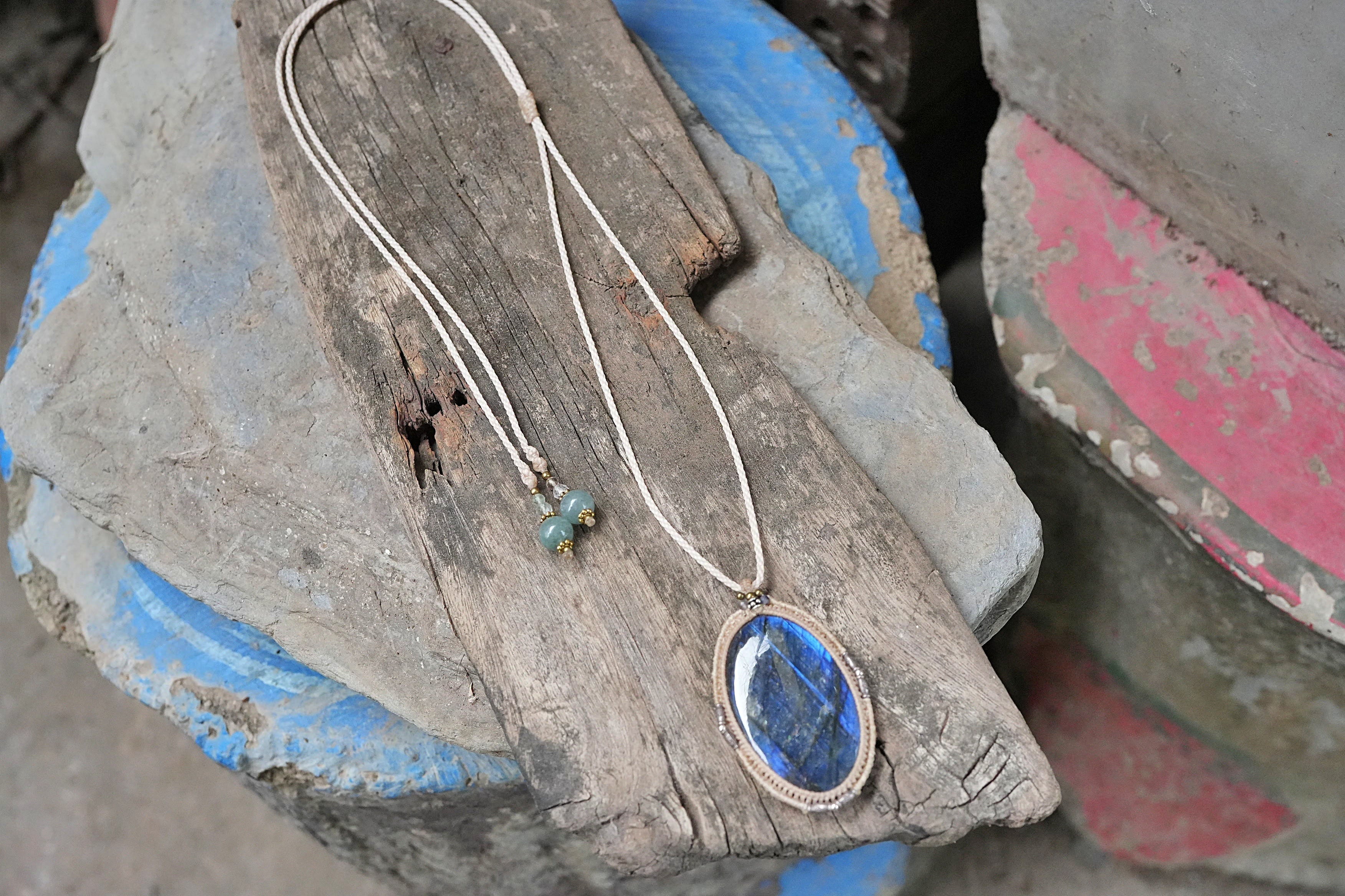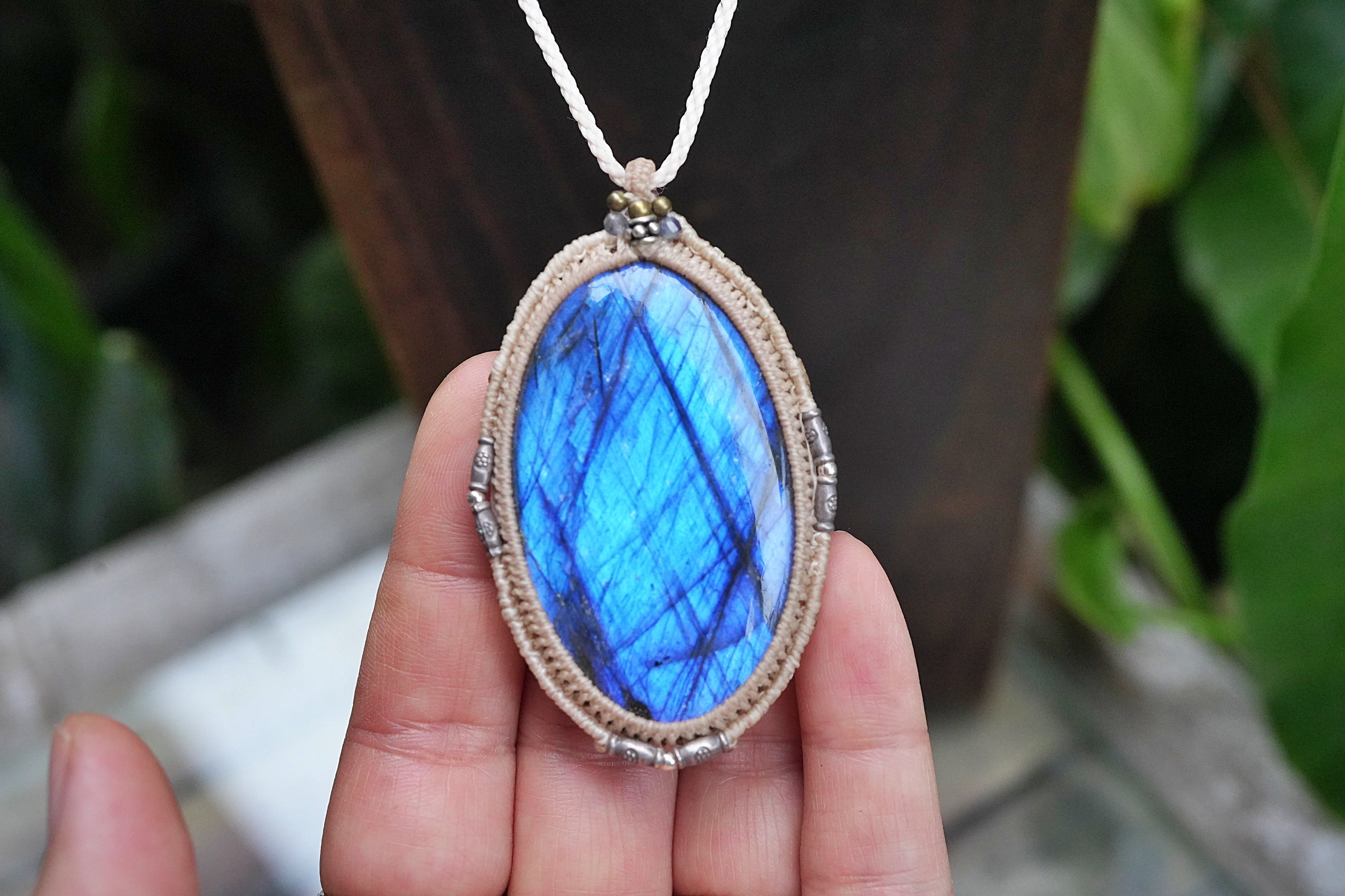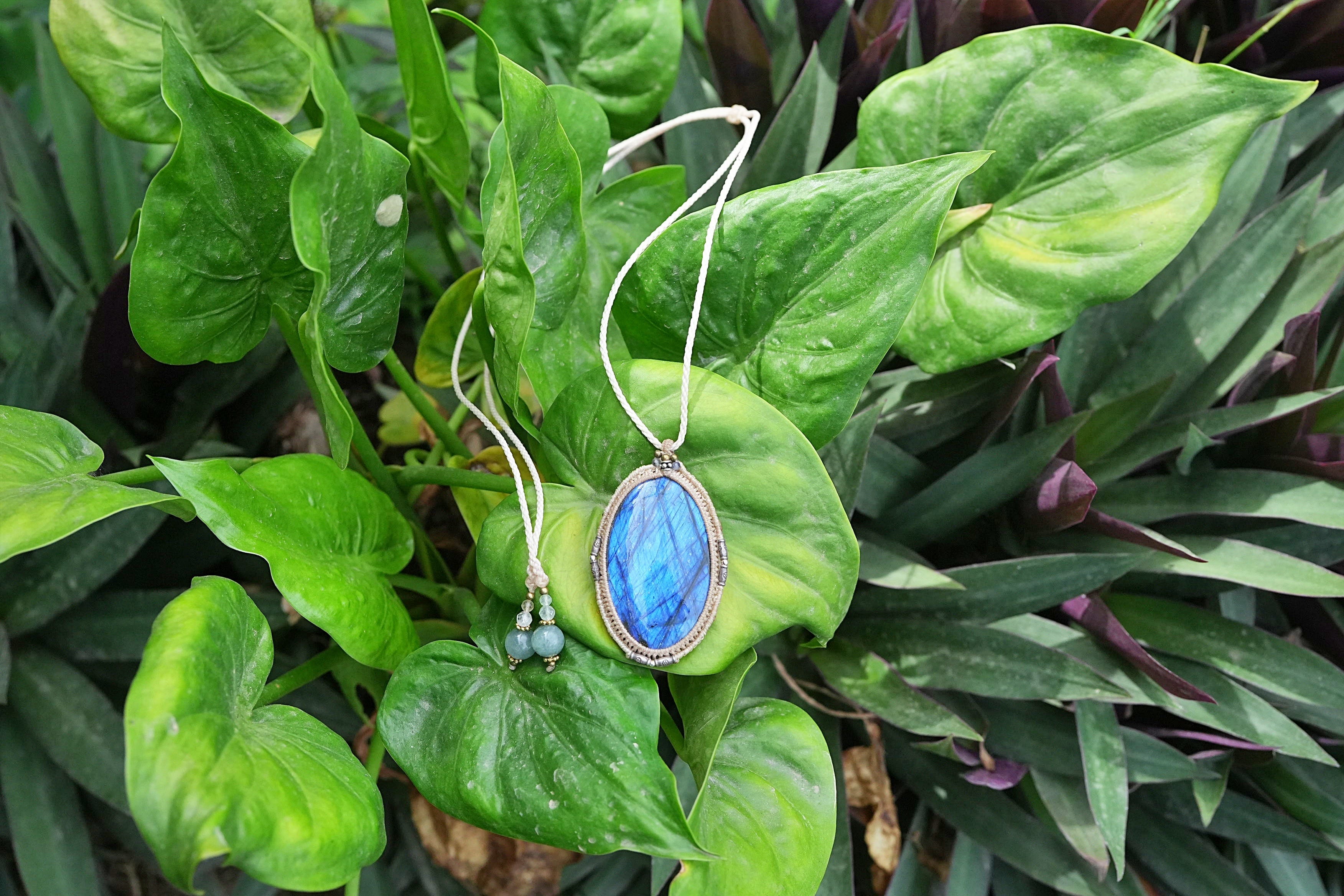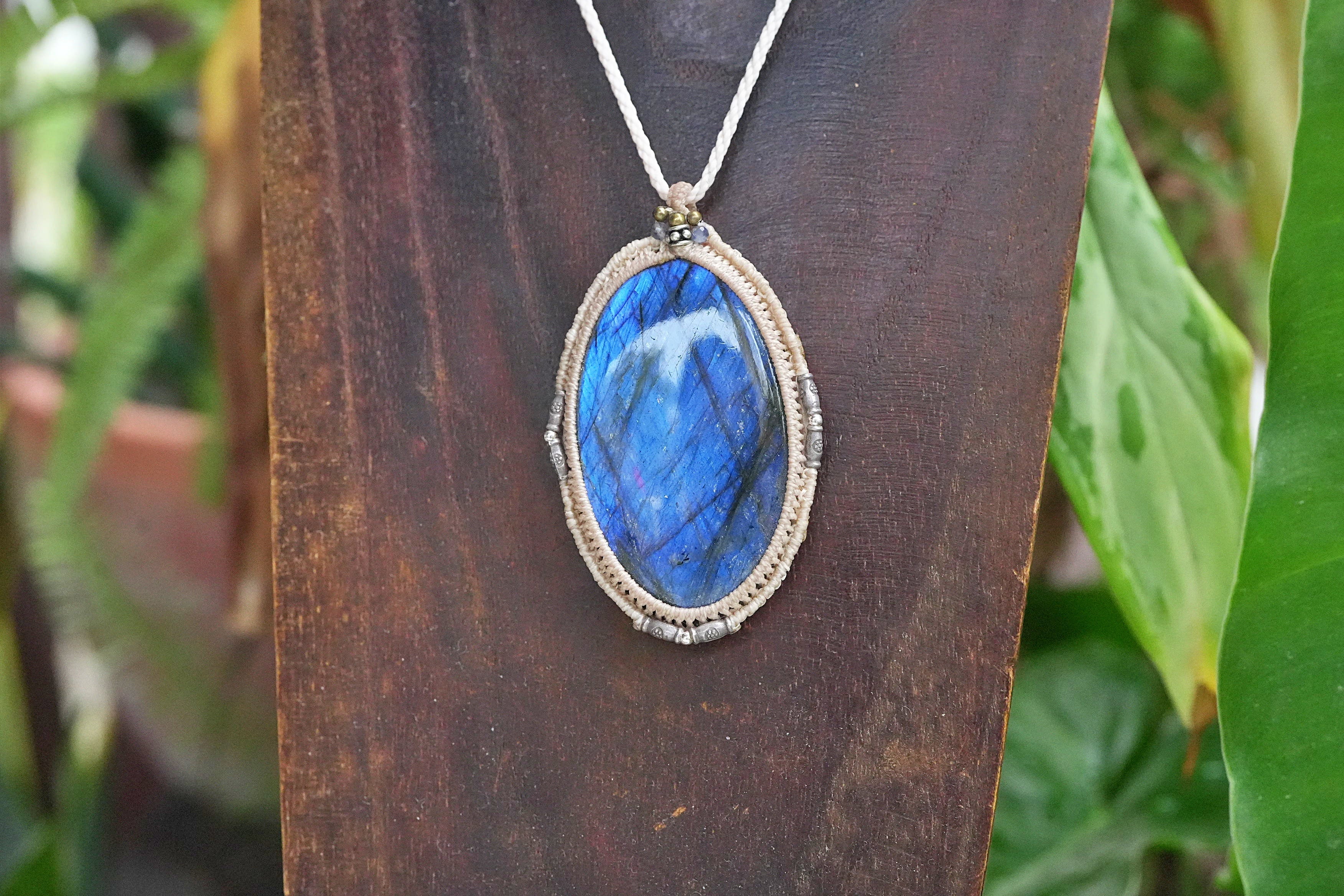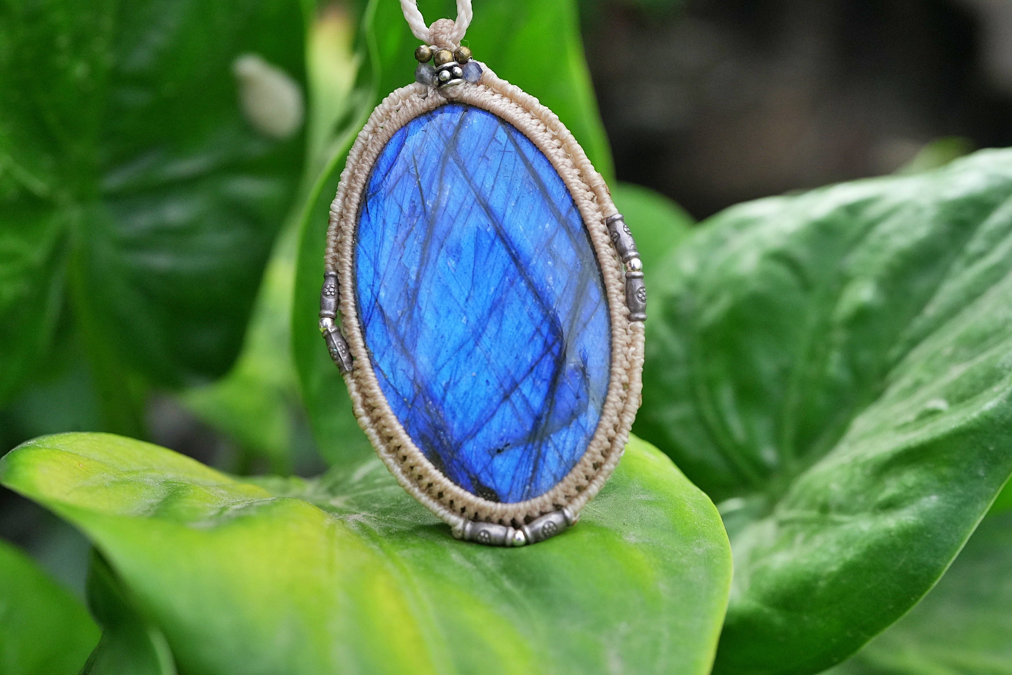 大粒★宇宙ブルー ラブラドライト マクラメネックレス2556