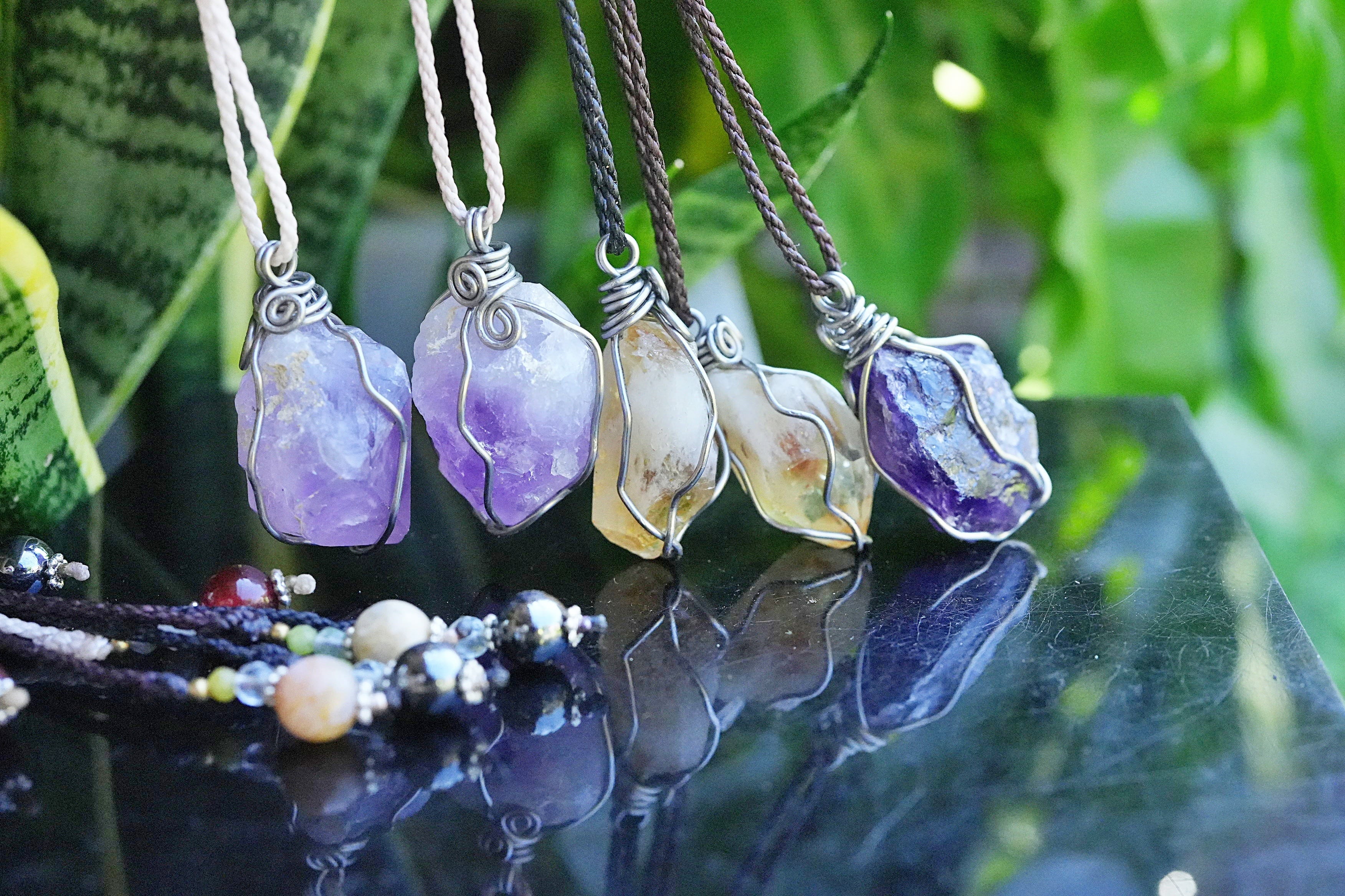 自然の原石の天然石の形をフォローしたワイヤーワークをお楽しみください。
