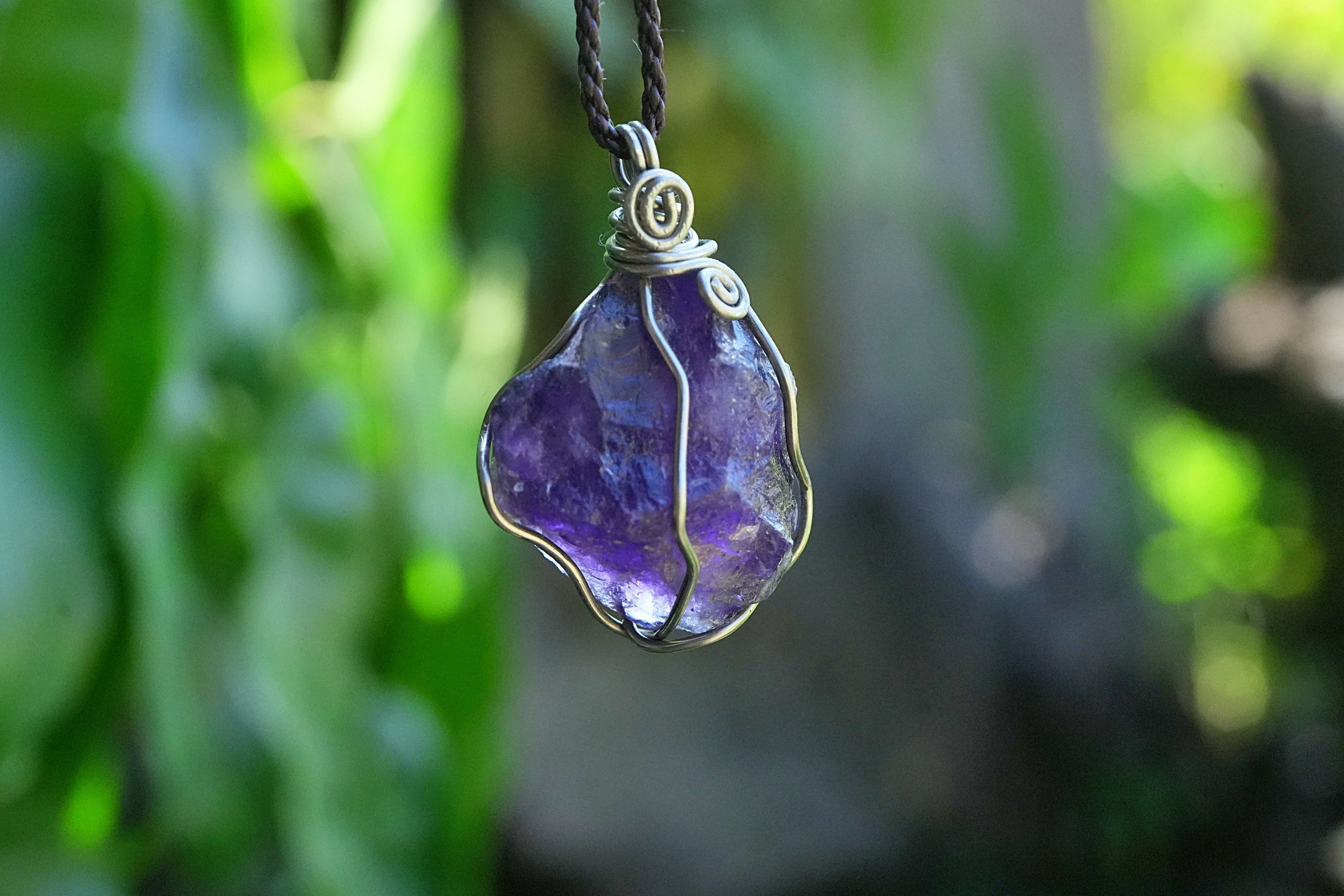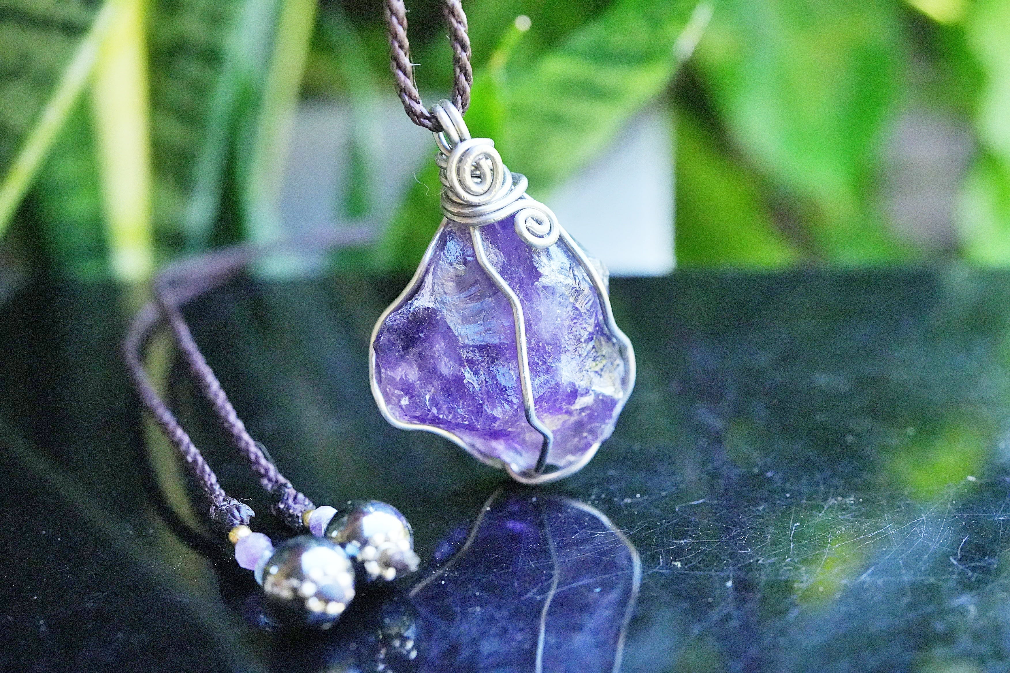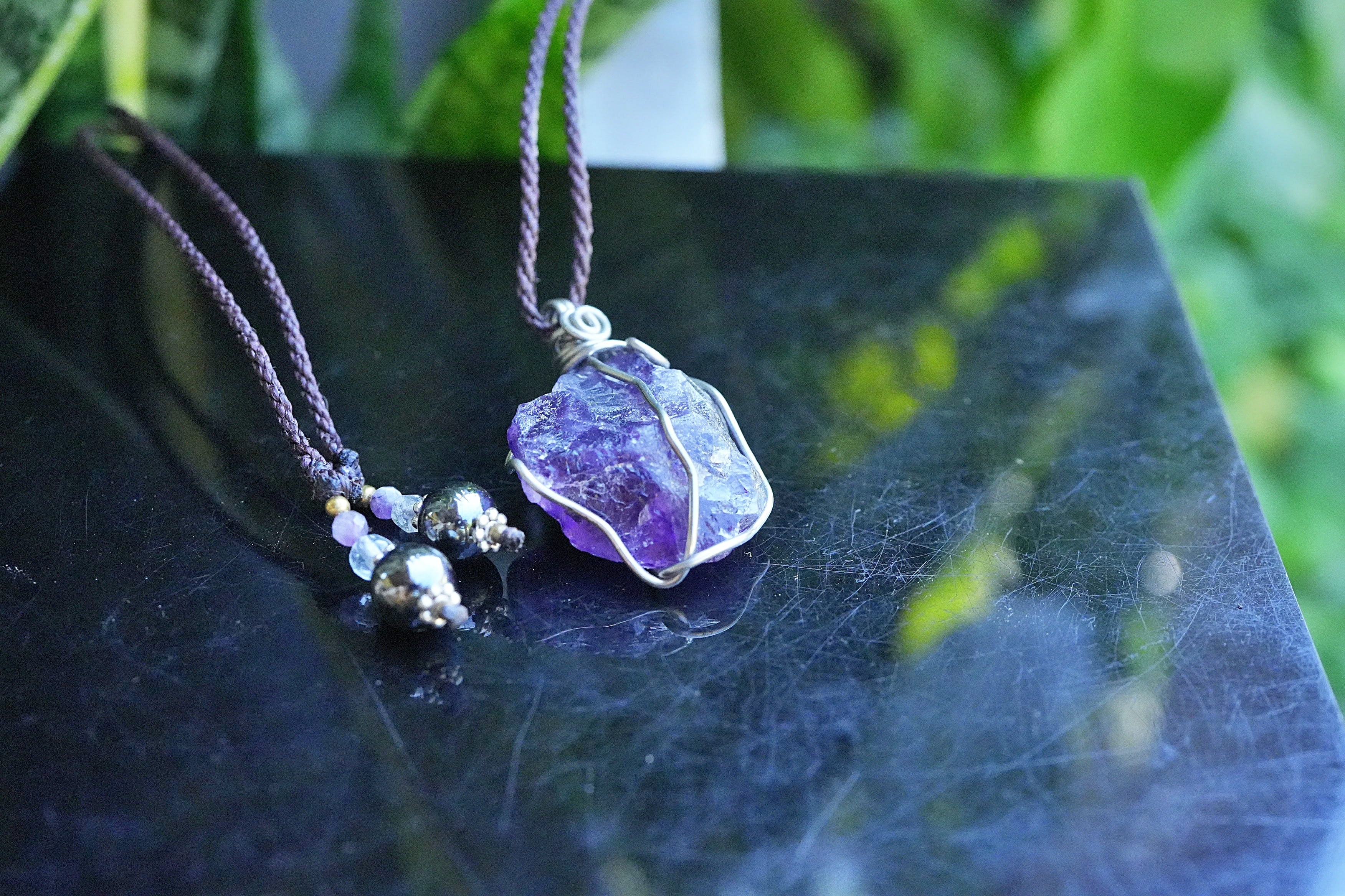 紫宝石★アメジスト原石 ワイヤーアートペンダント2561
