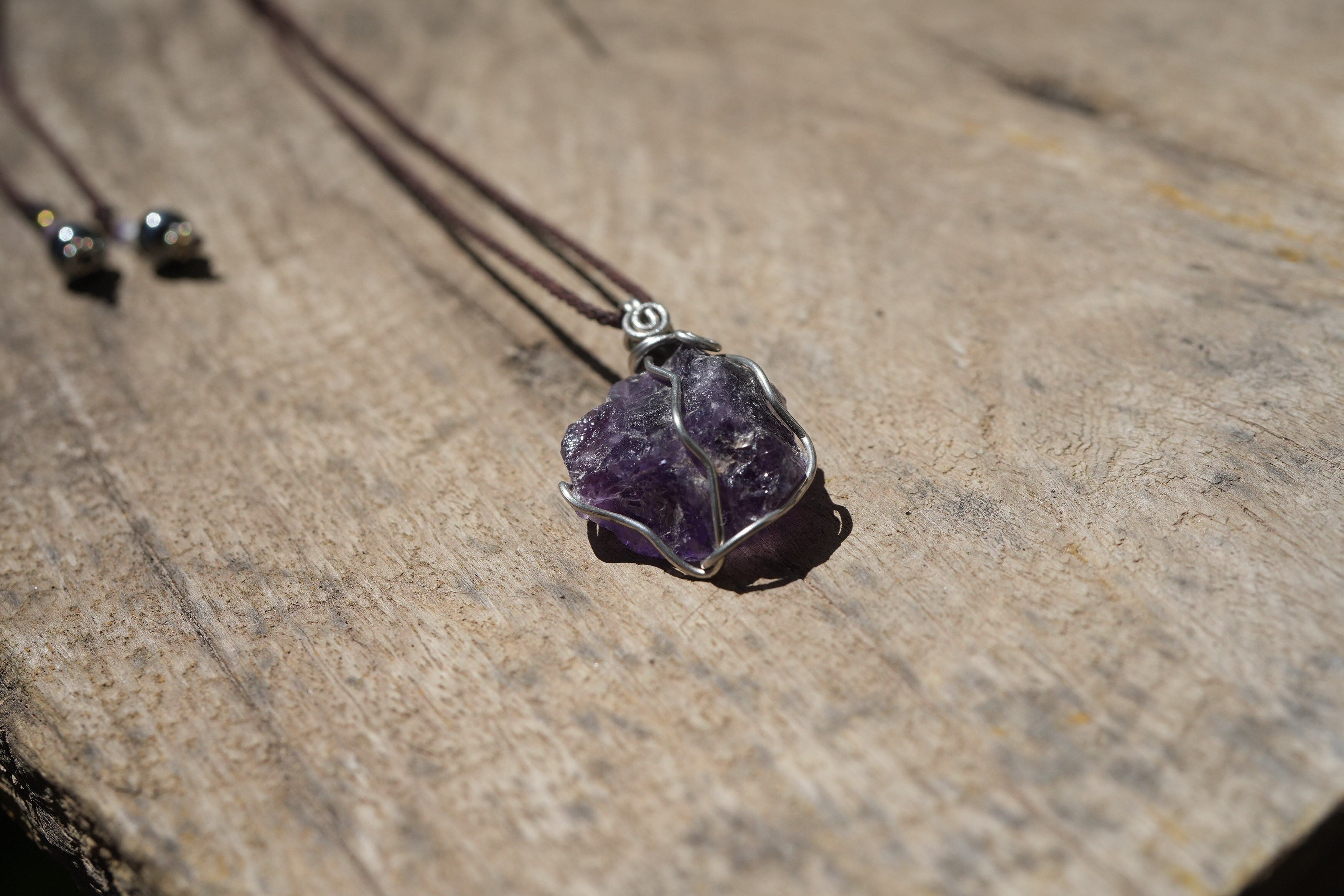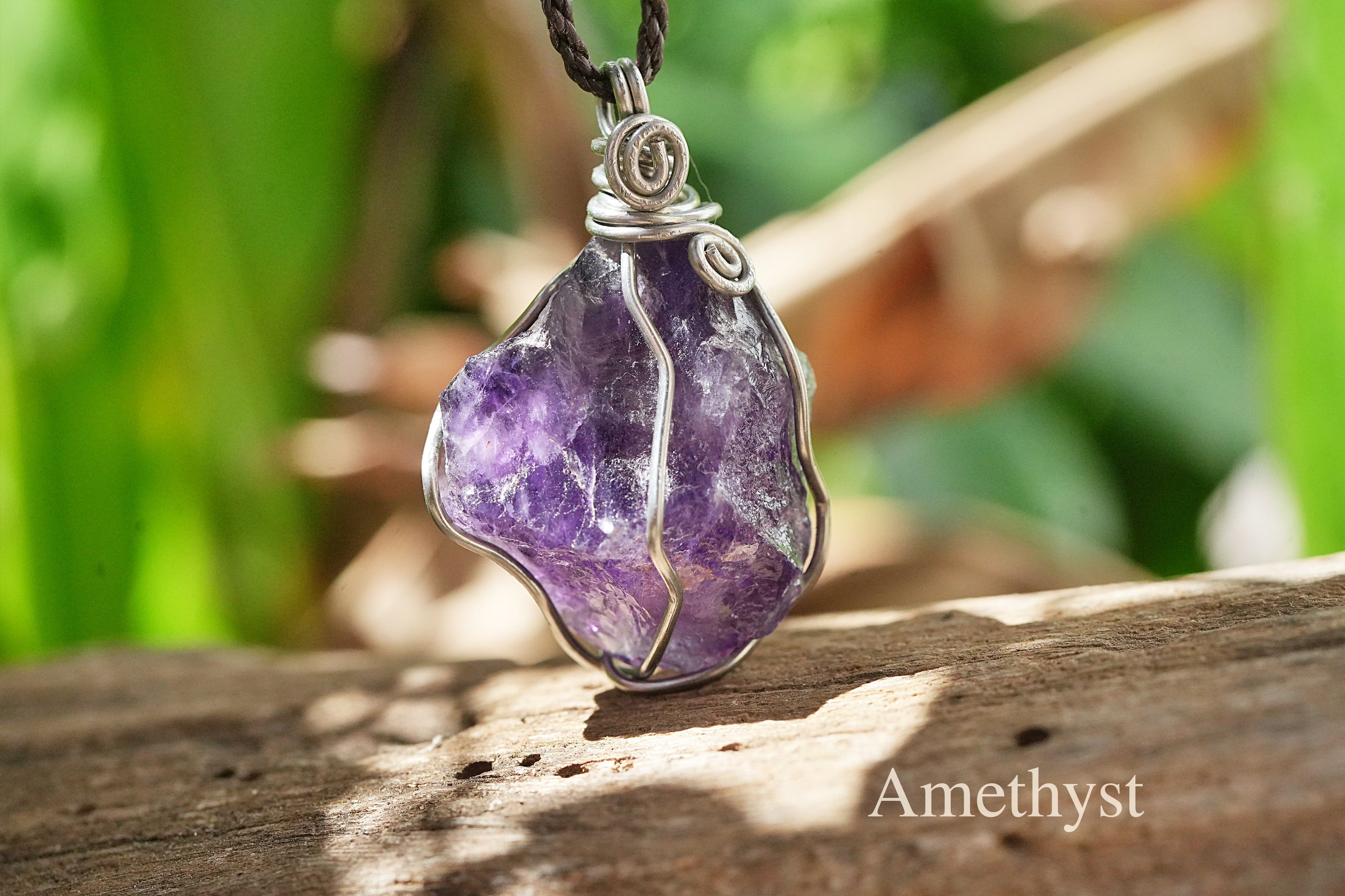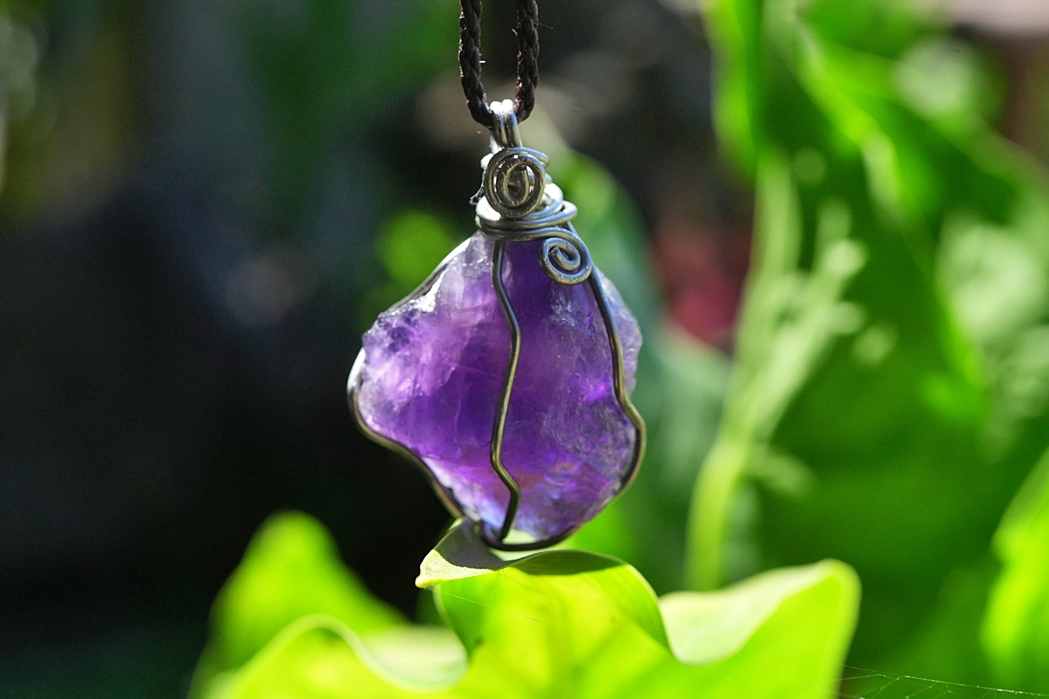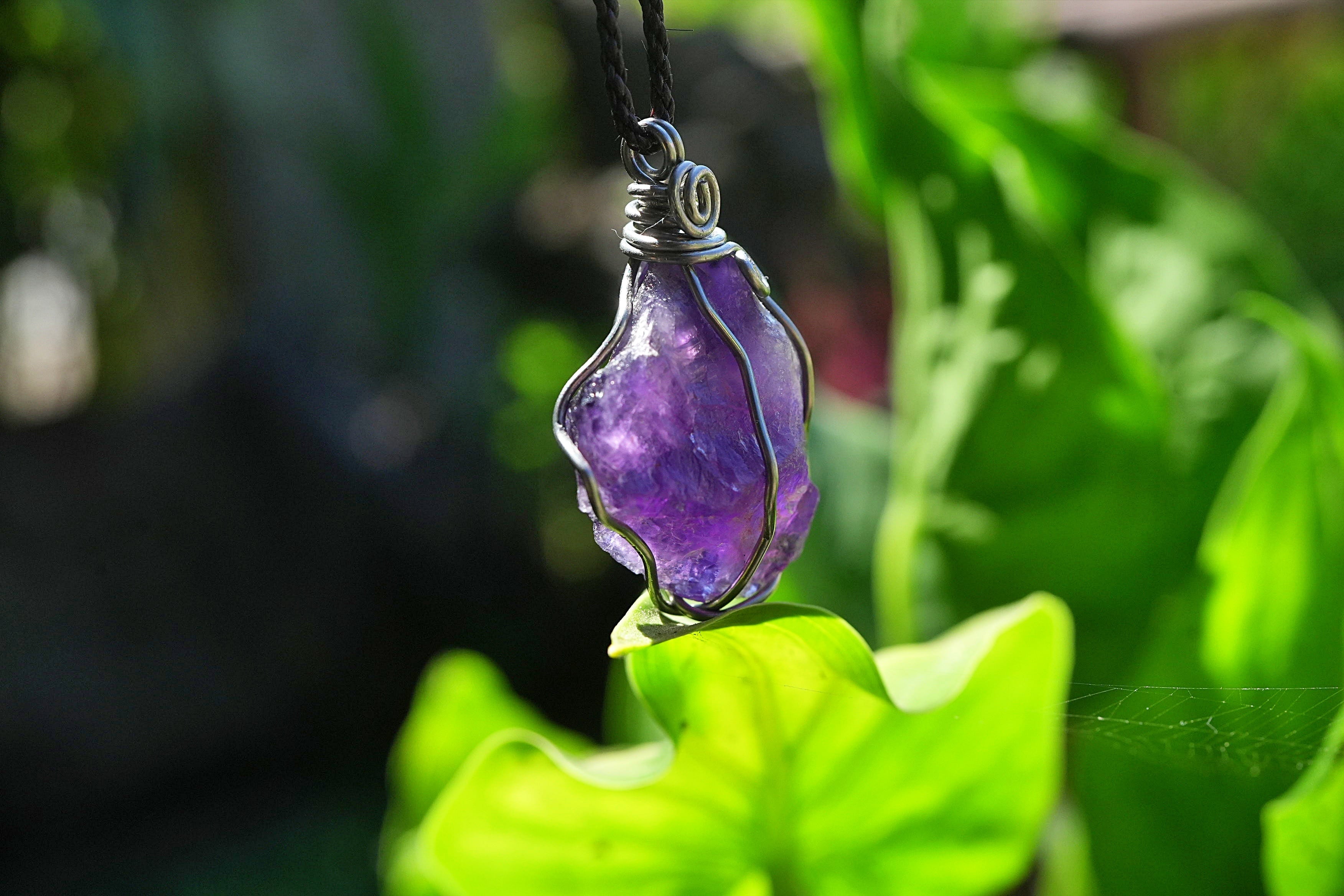 紫宝石★アメジスト原石 ワイヤーアートペンダント2561