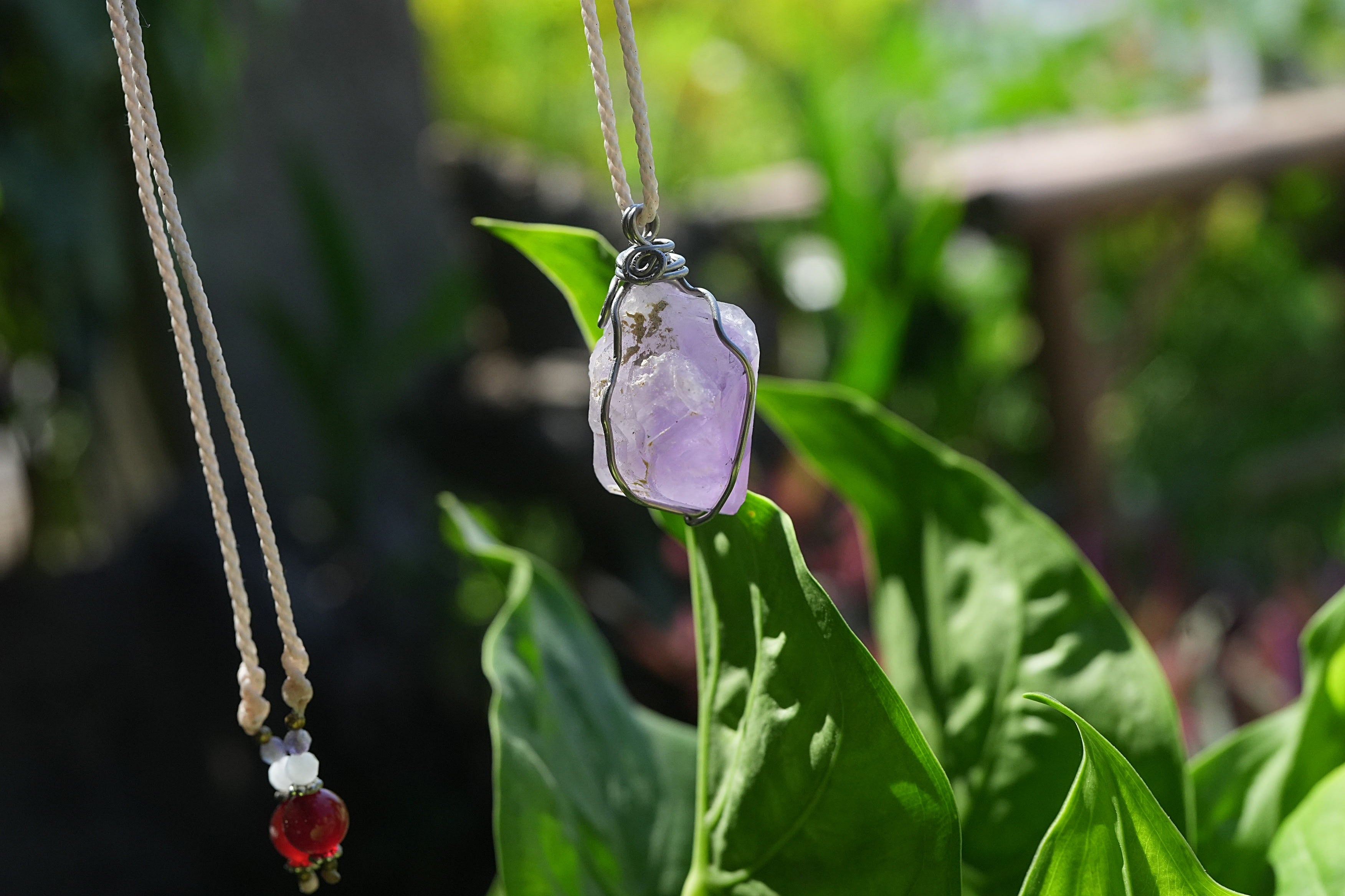 自然の原石の天然石の形をフォローしたワイヤーワークをお楽しみください。