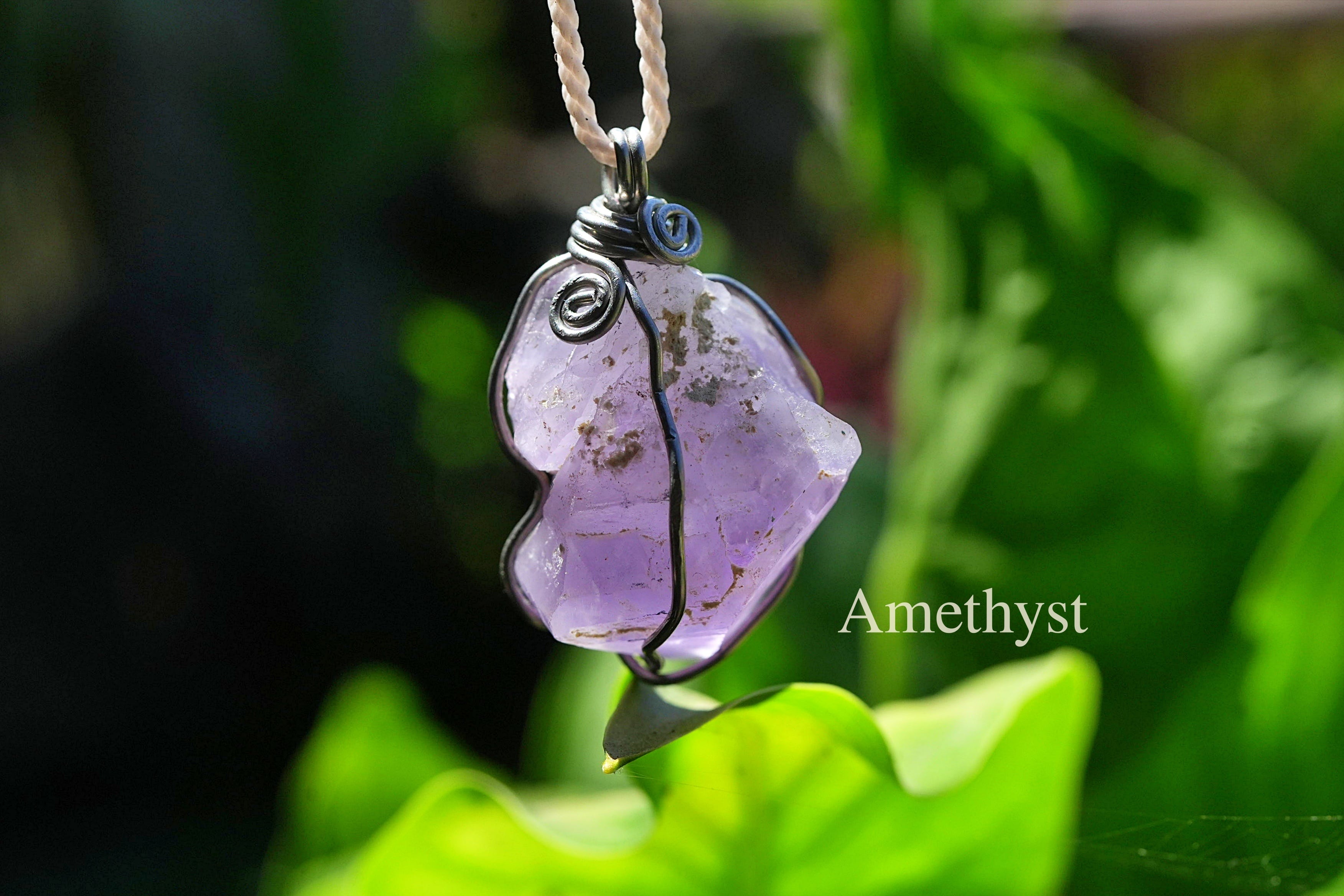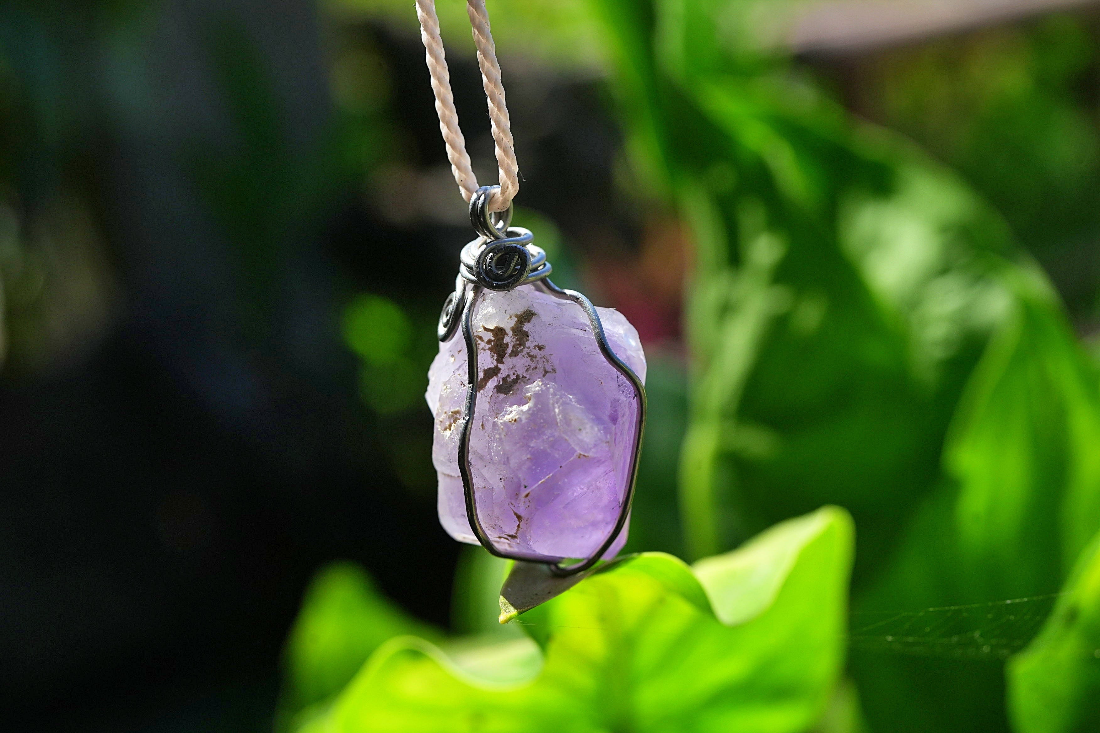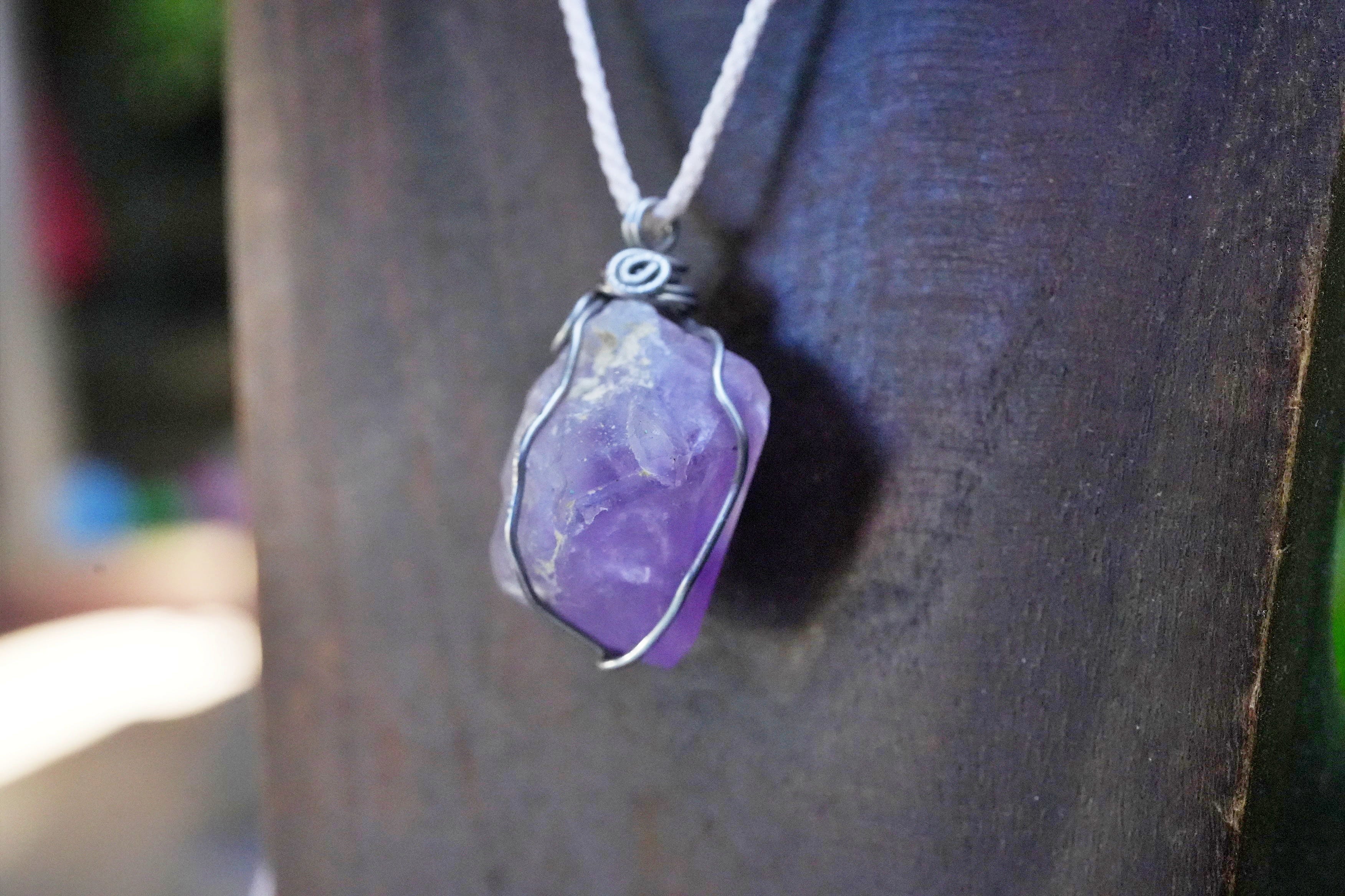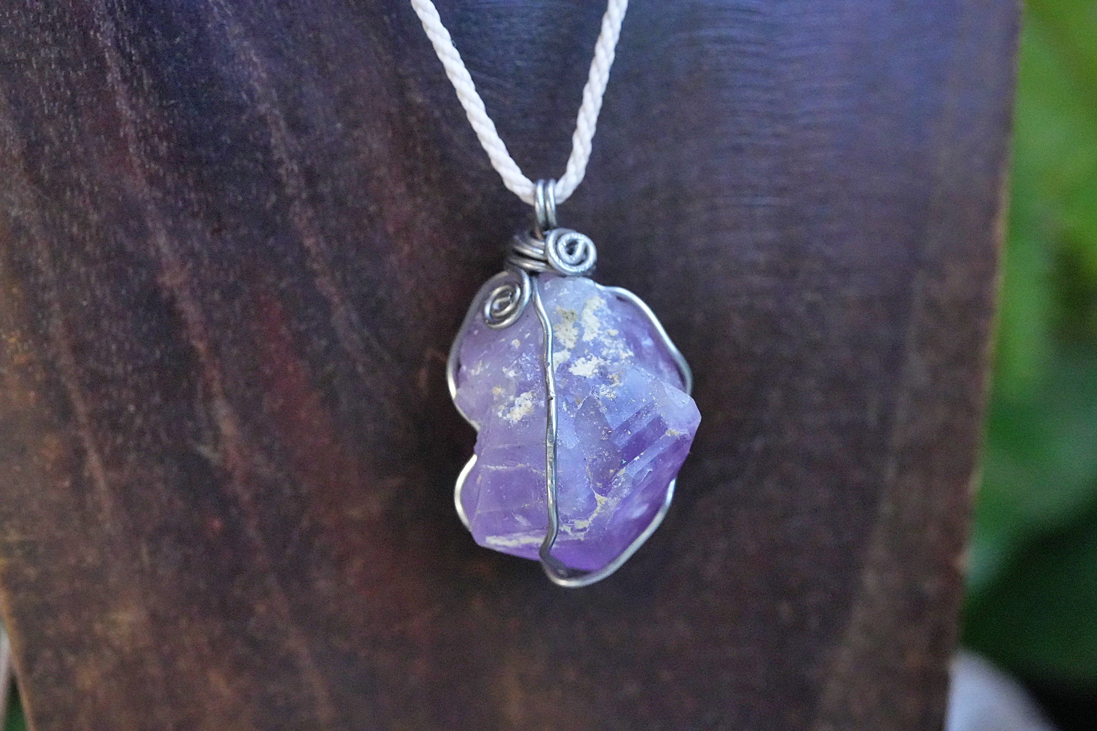 ラベンダーアメジスト原石 ワイヤーアートペンダント2563