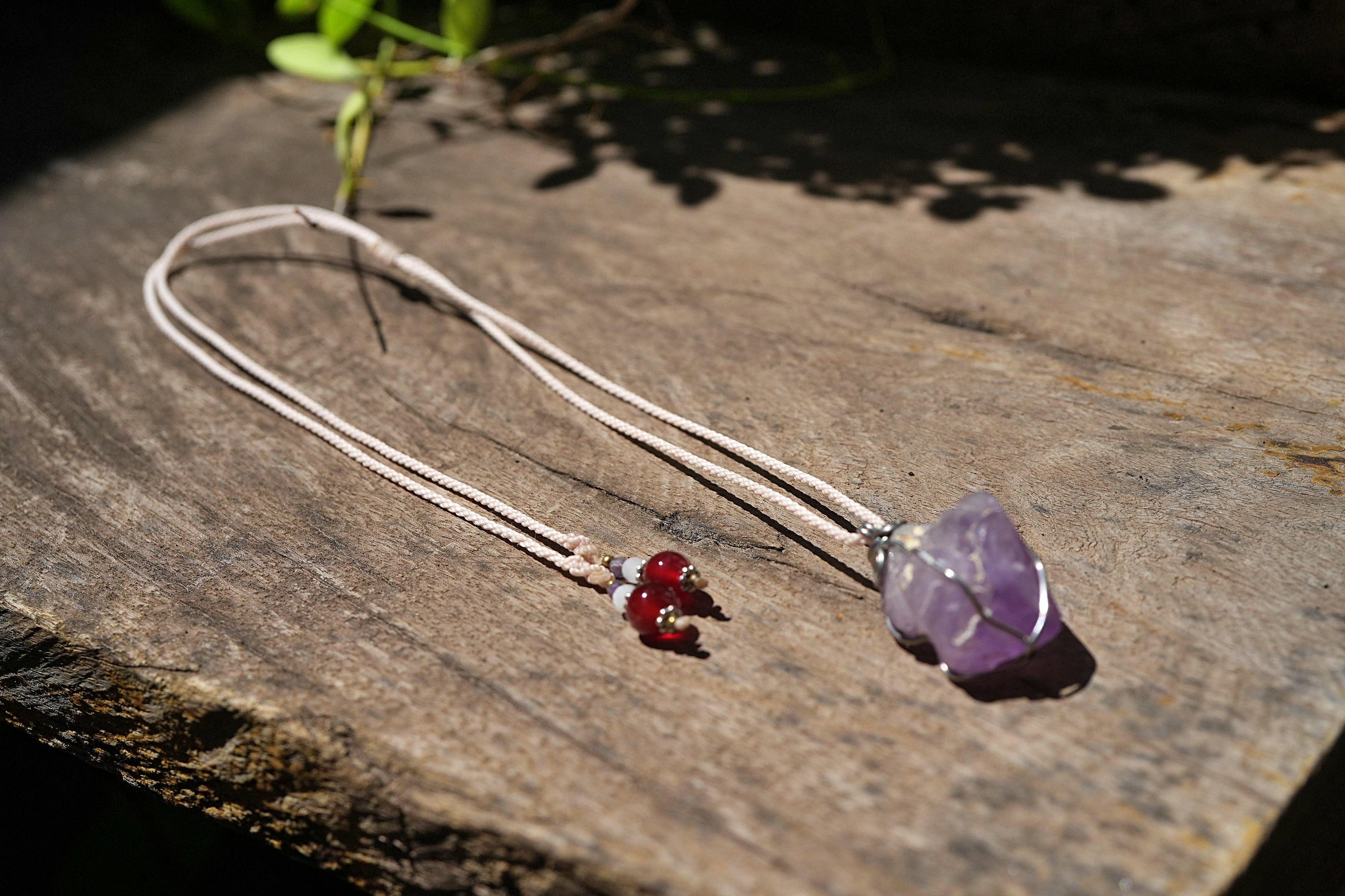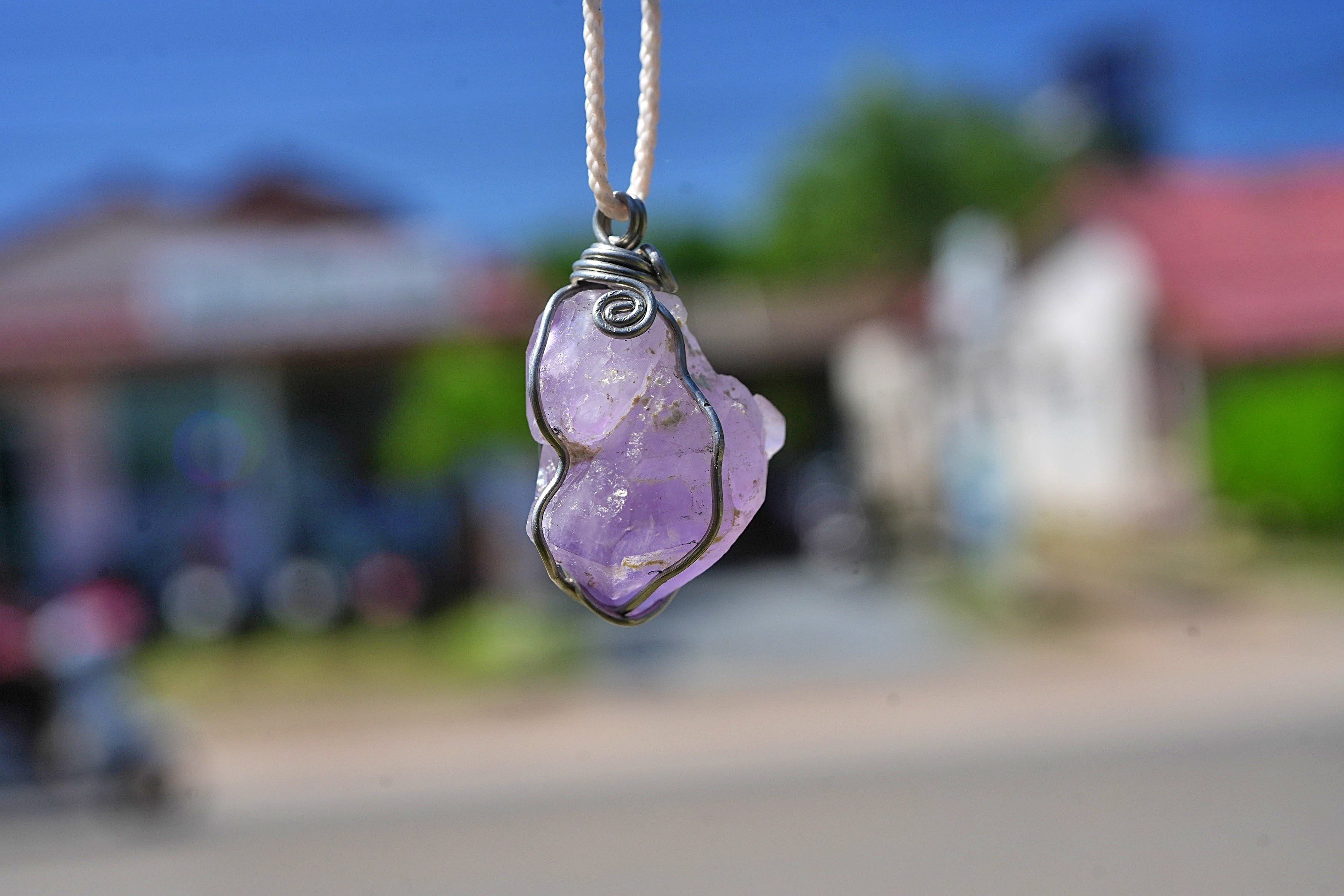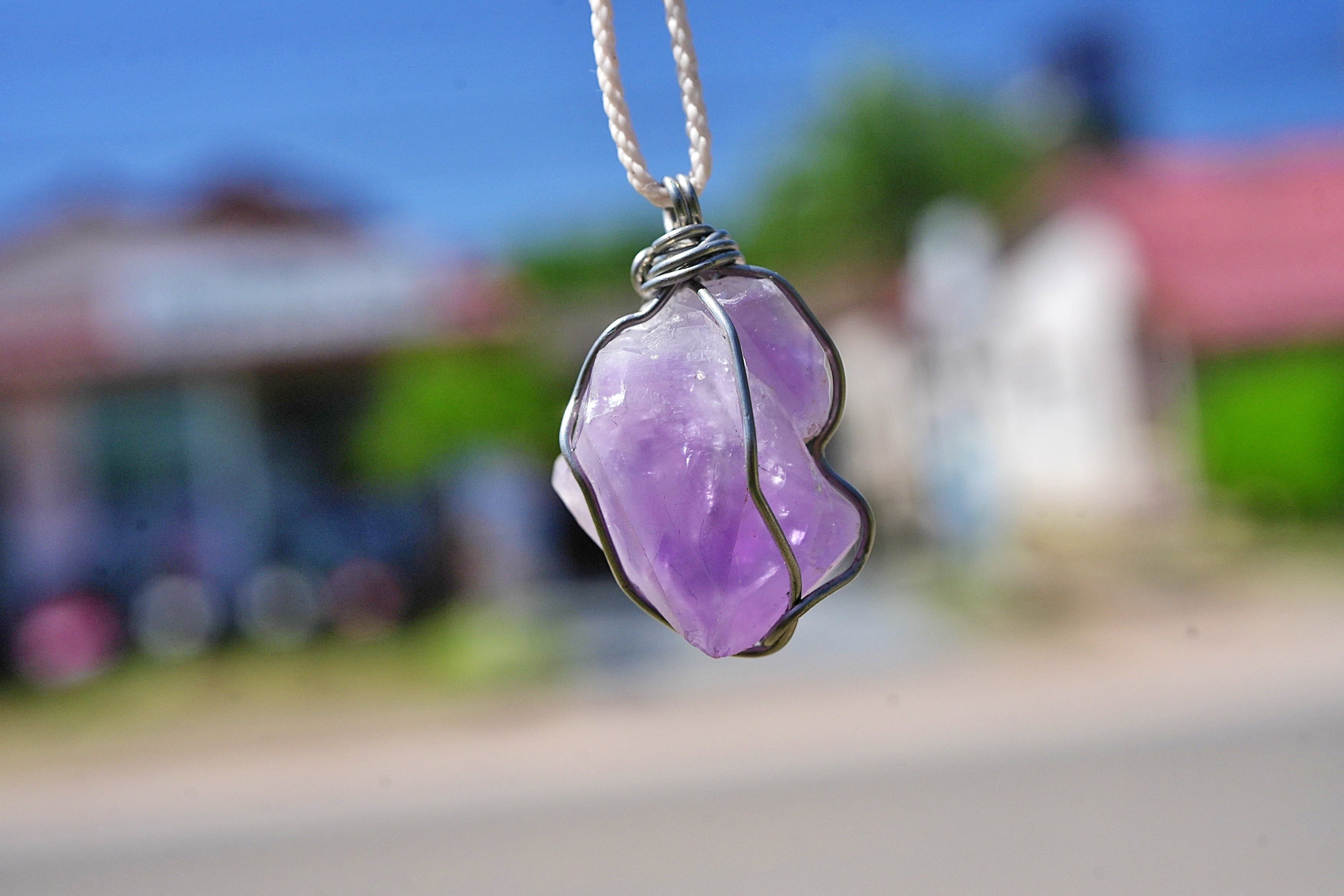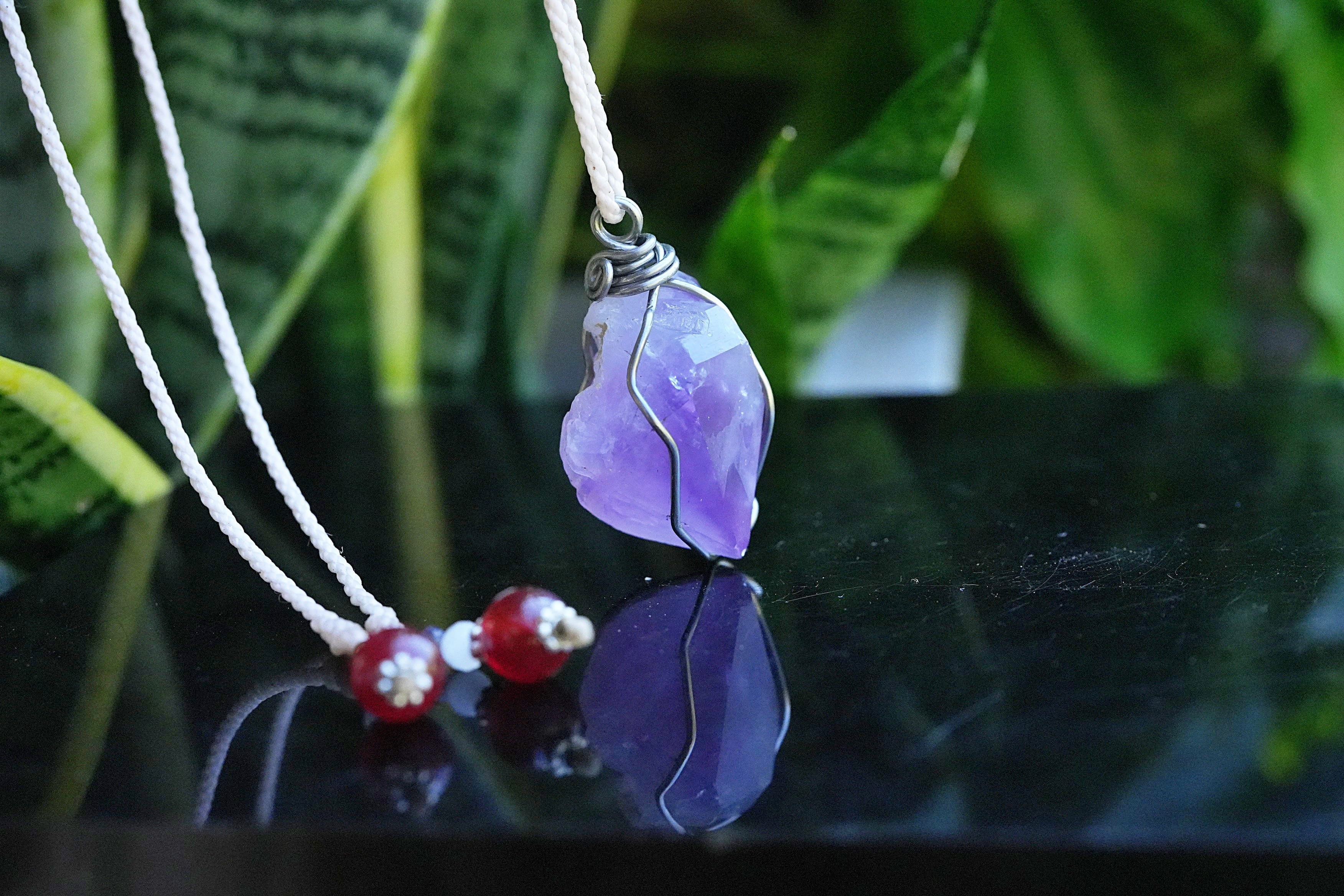 ラベンダーアメジスト原石 ワイヤーアートペンダント2563