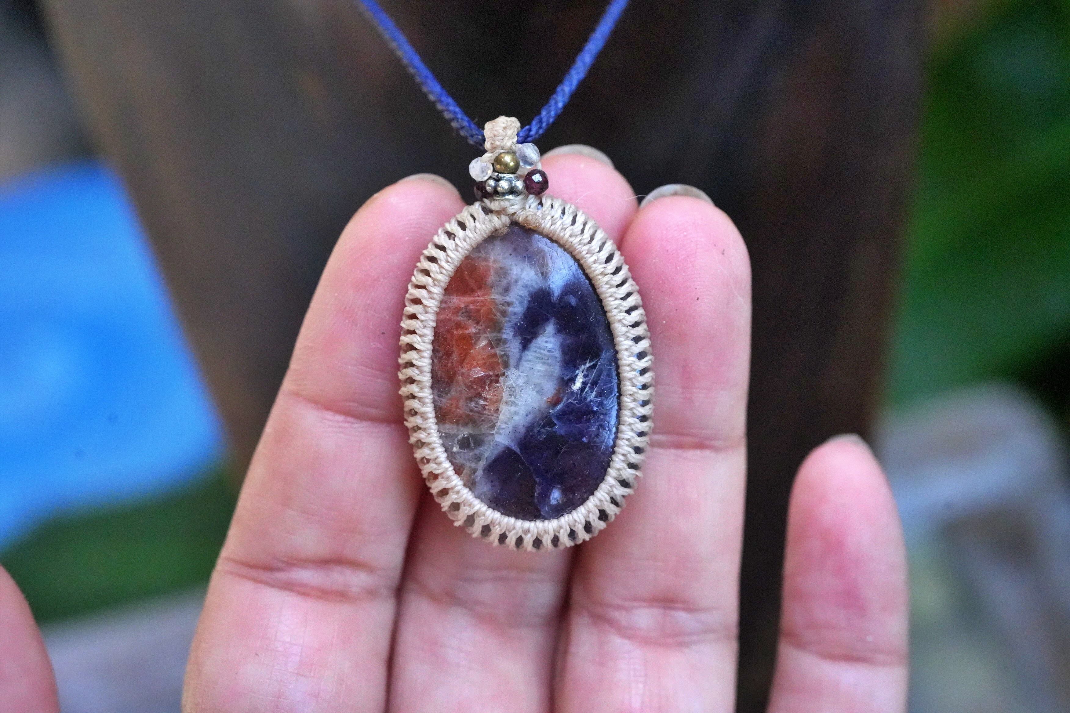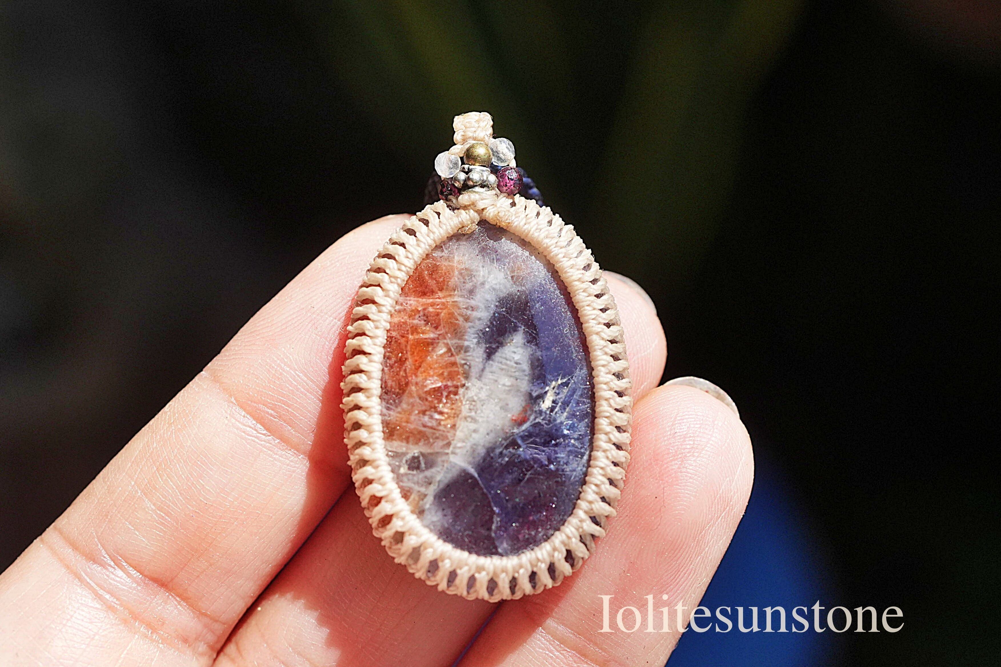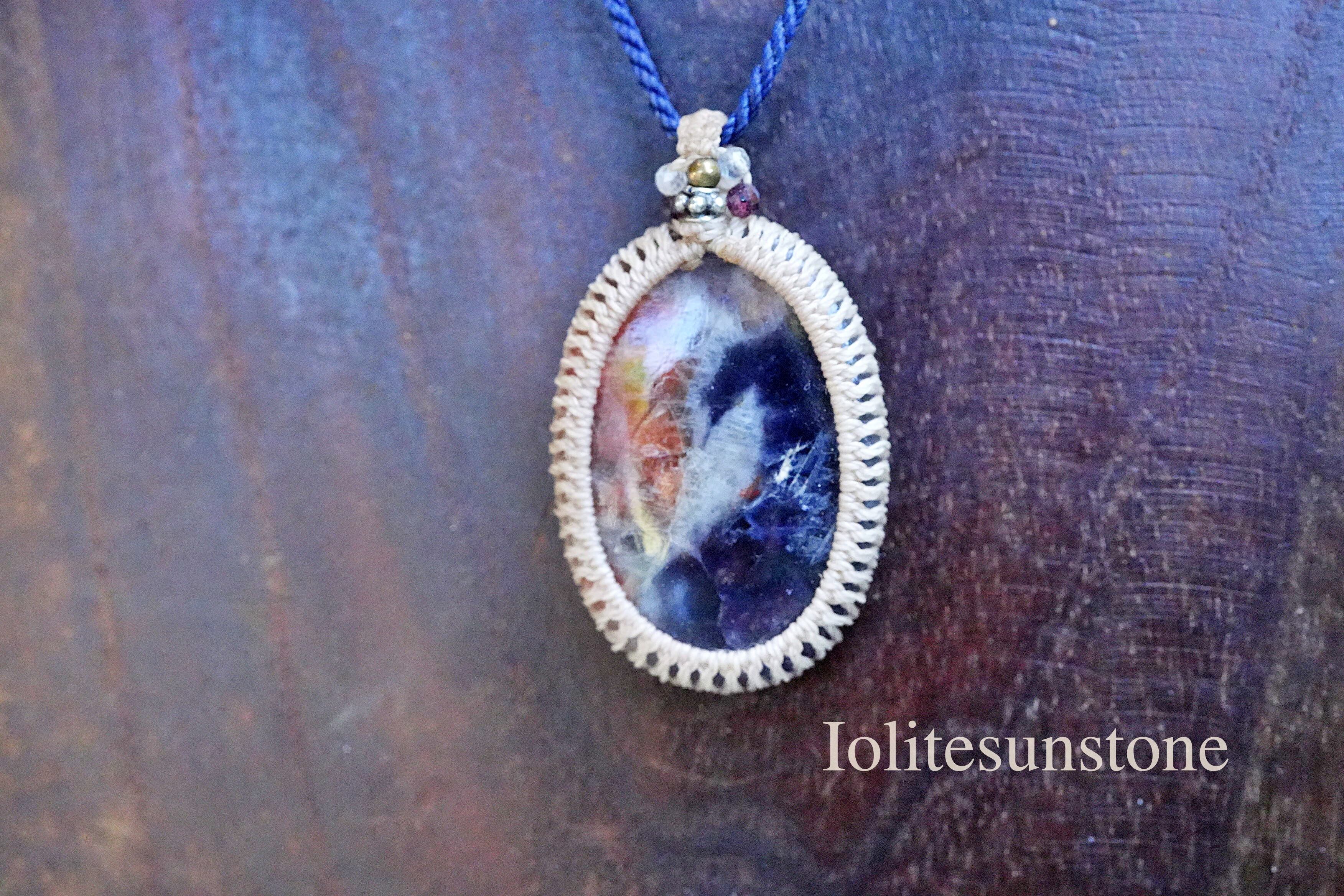 透明2色★アイオライトサンストーン マクラメネックレス2567