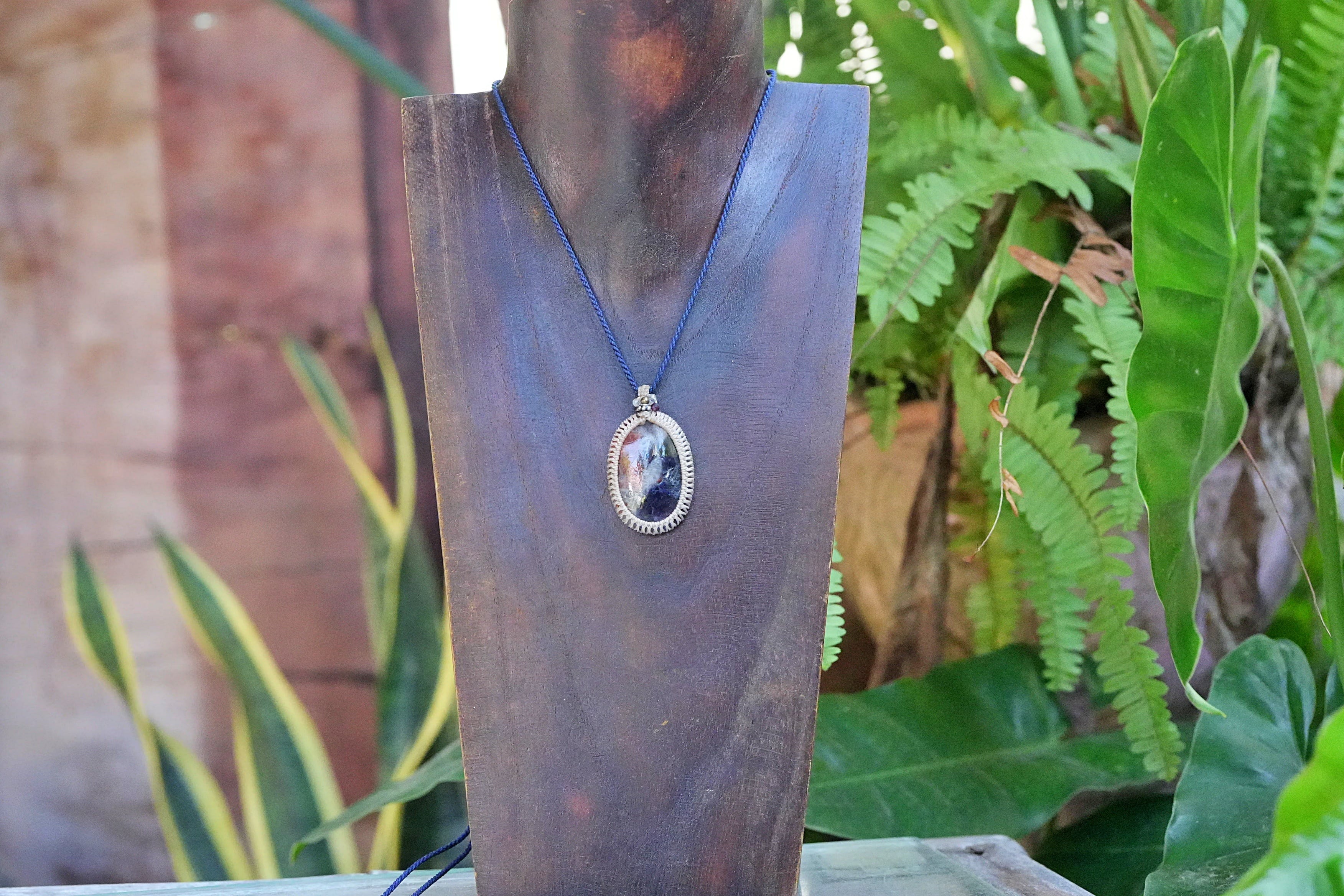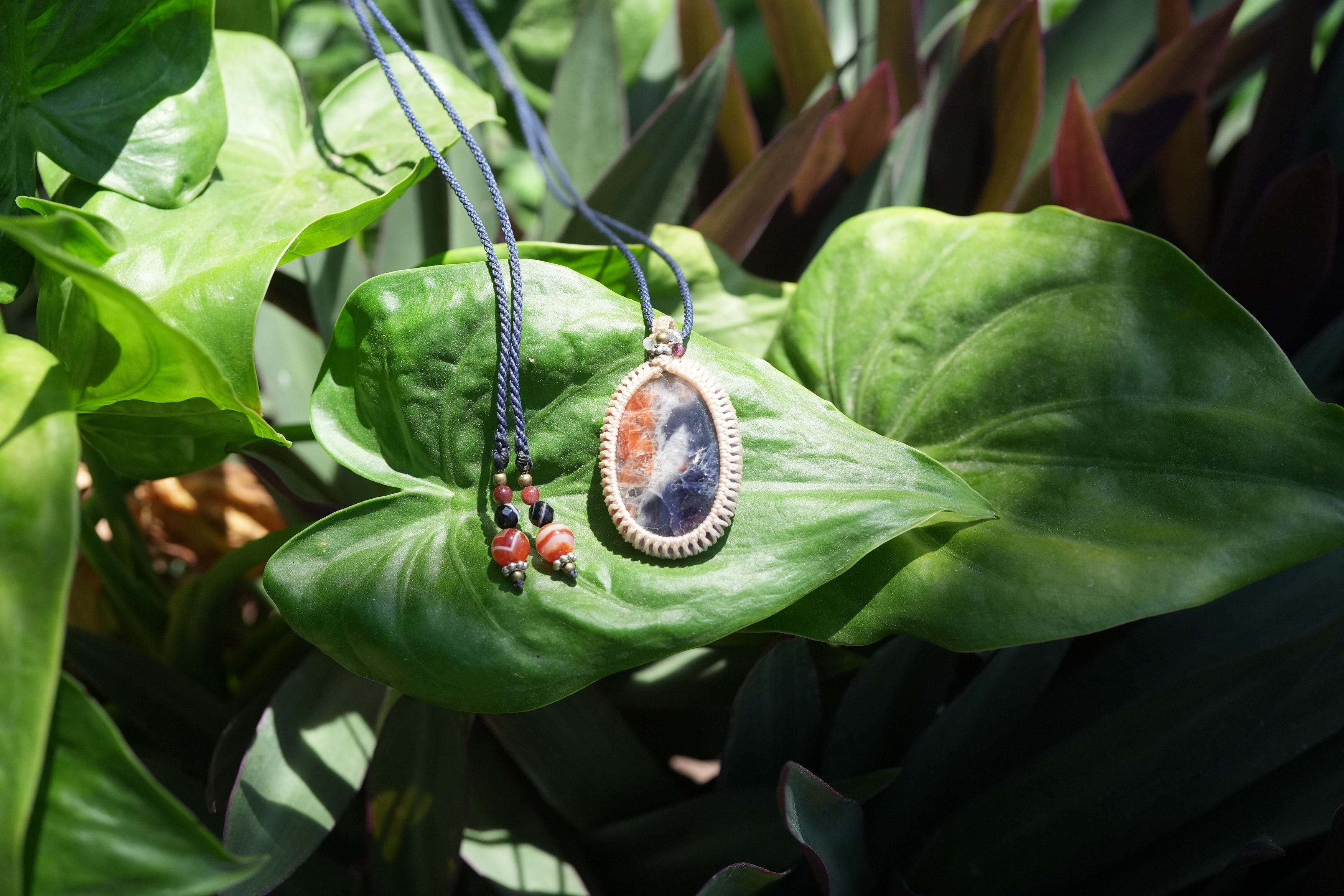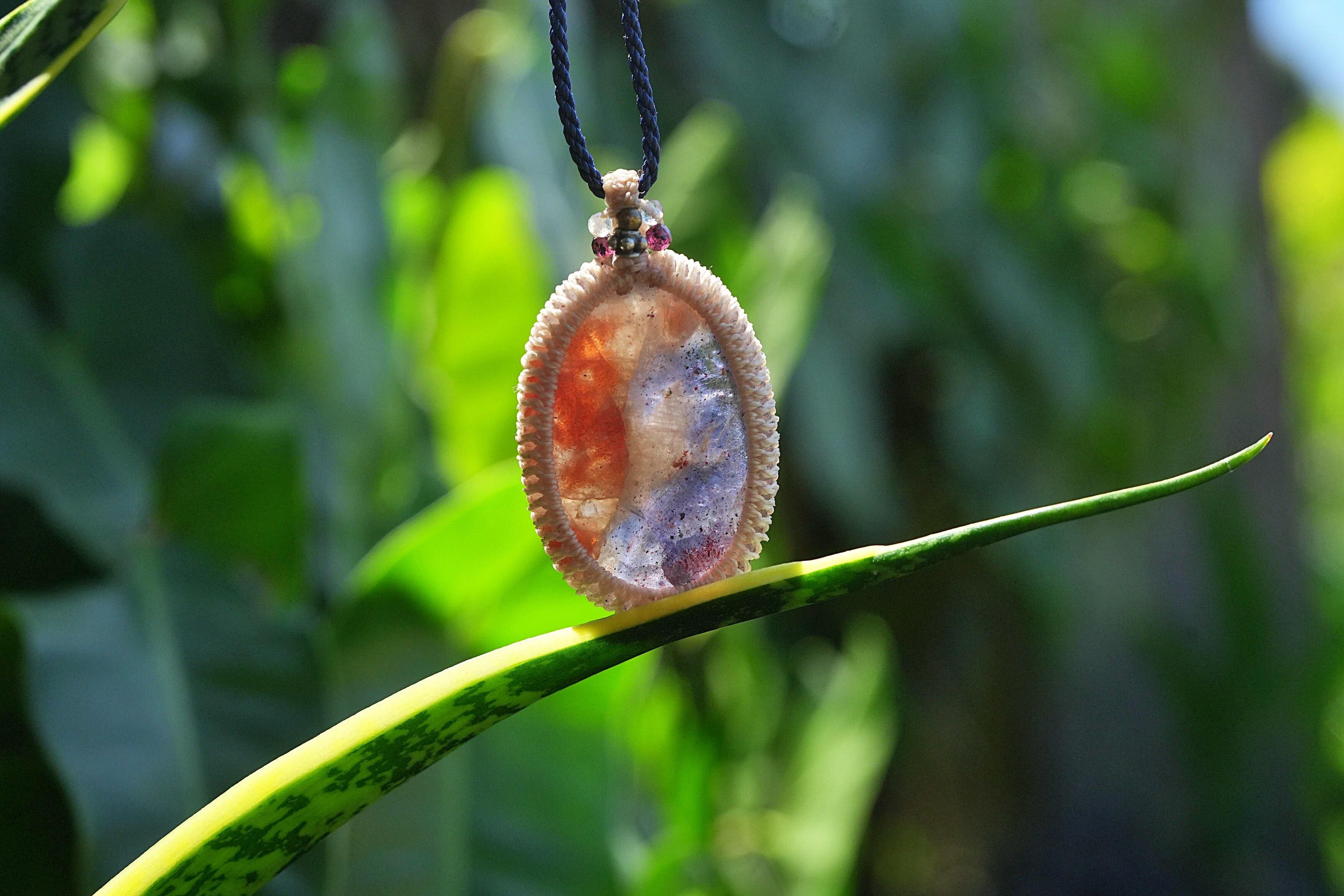 透明2色★アイオライトサンストーン マクラメネックレス2567