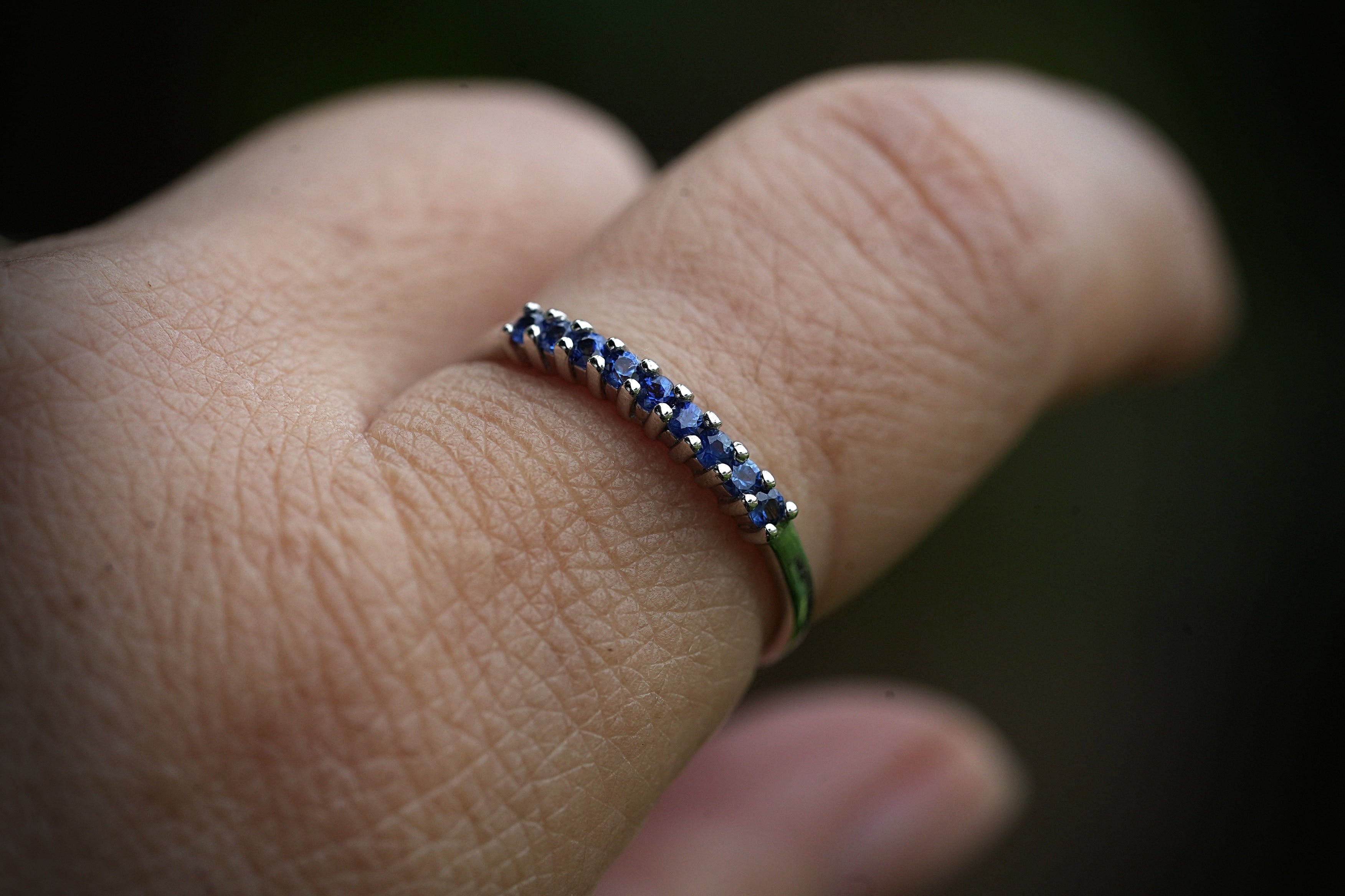 小ぶりながら カットの入った上質なブルーサファイアを使用した