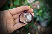 大きな厚みもこの石の魅力のひとつ。ひとつの水晶の中にギッシリといろんな世界を詰め込んだかのような貫入水晶ガーデンクォーツです。