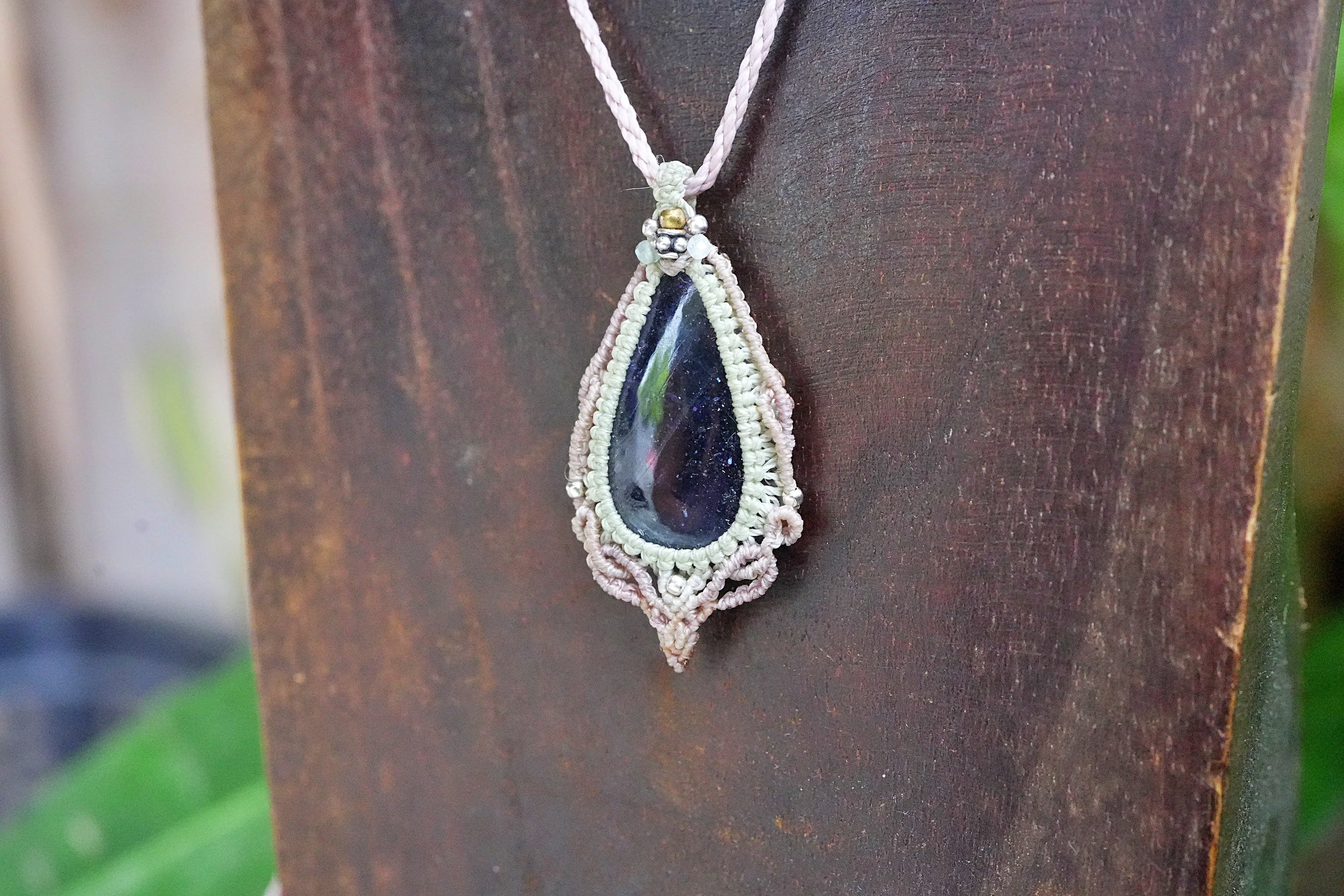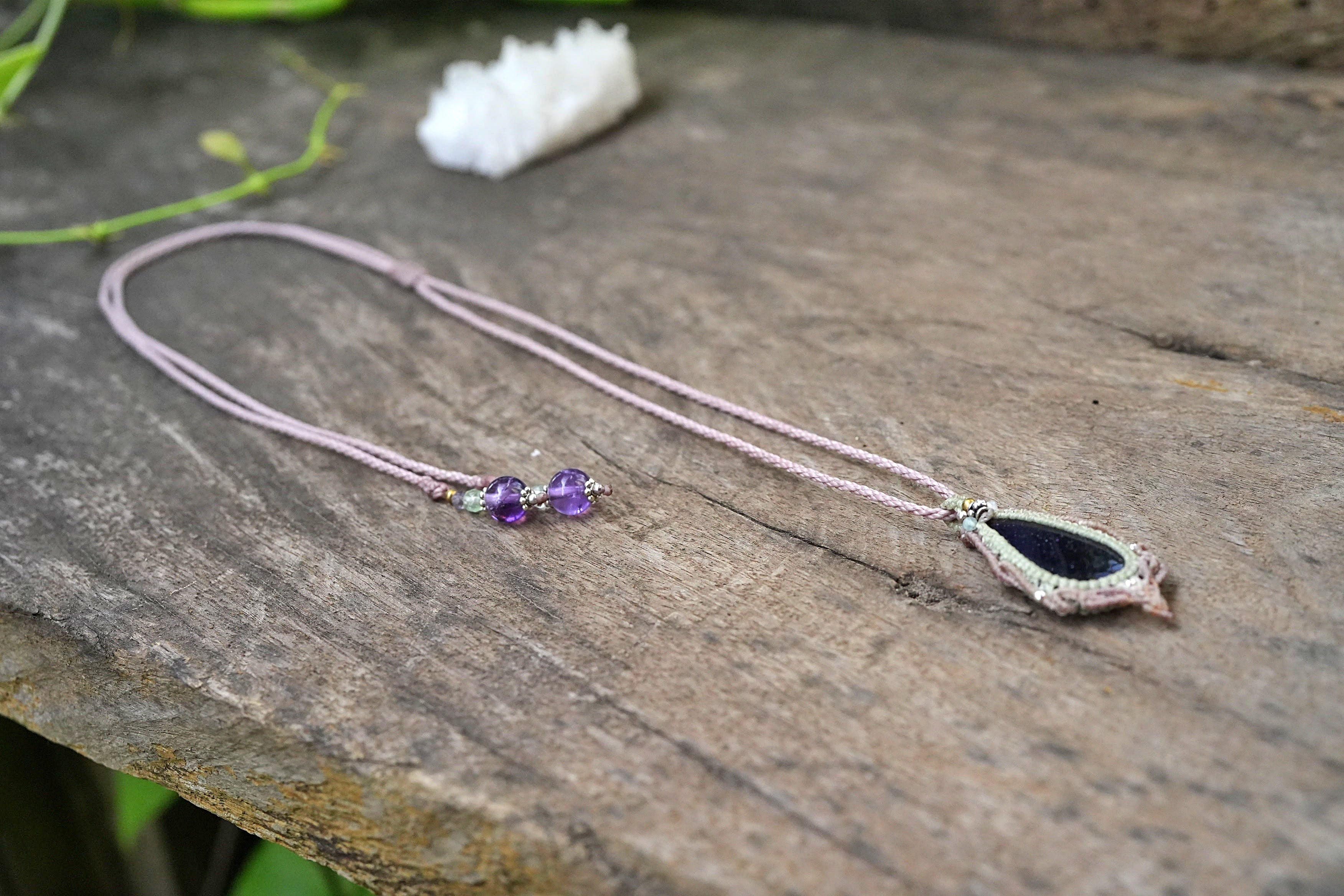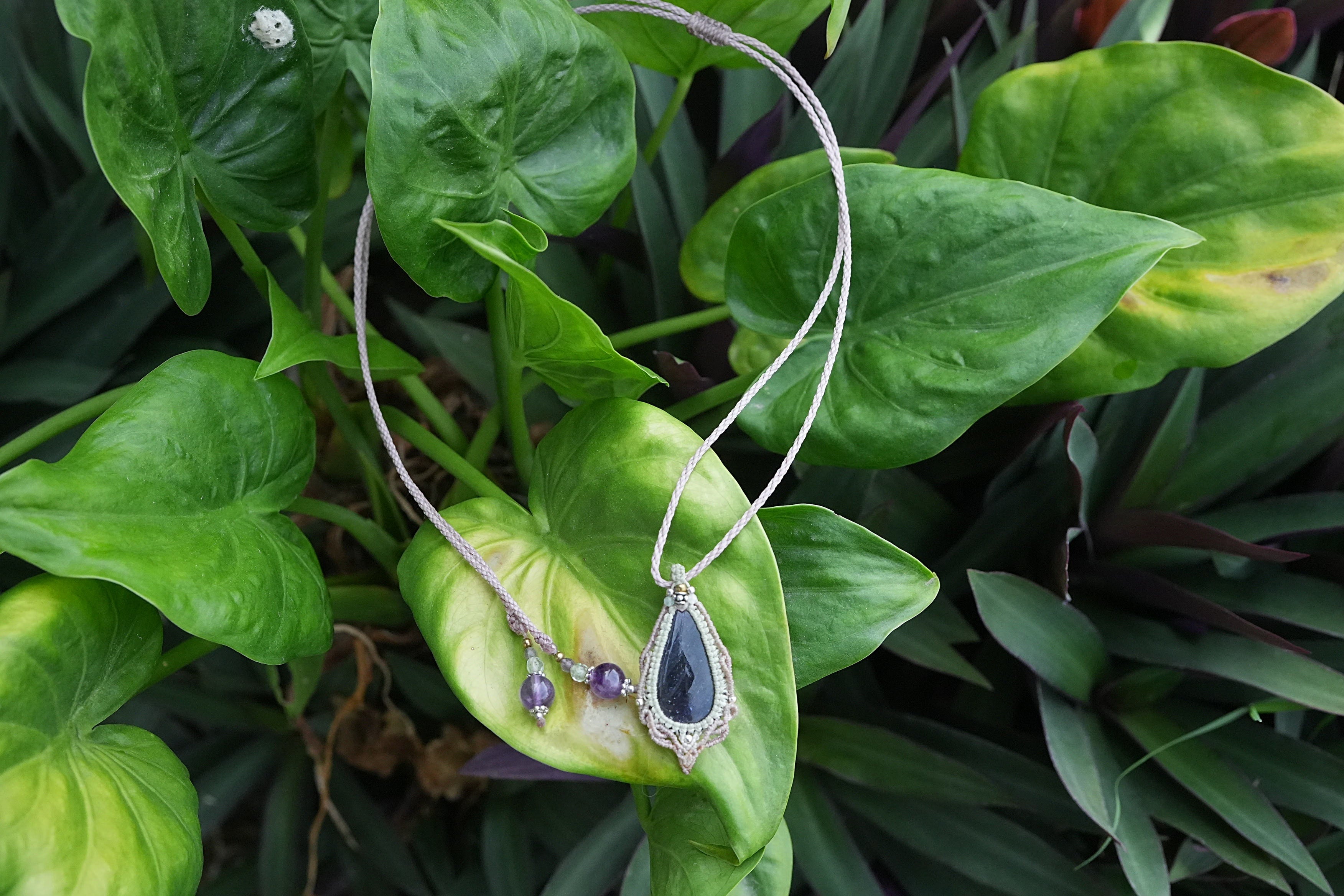 夜空の星★アイオライトサンストーン マクラメネックレス2574