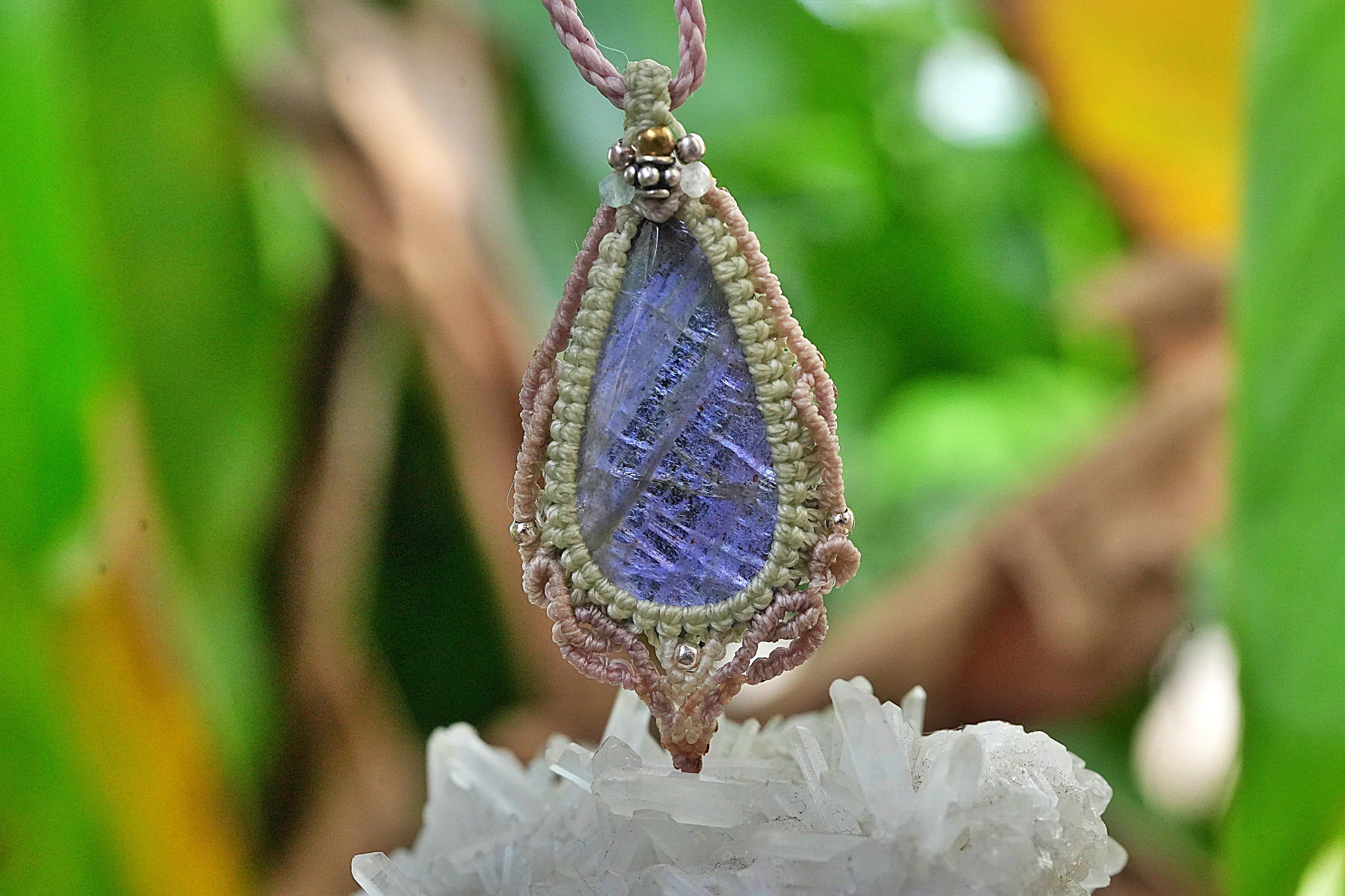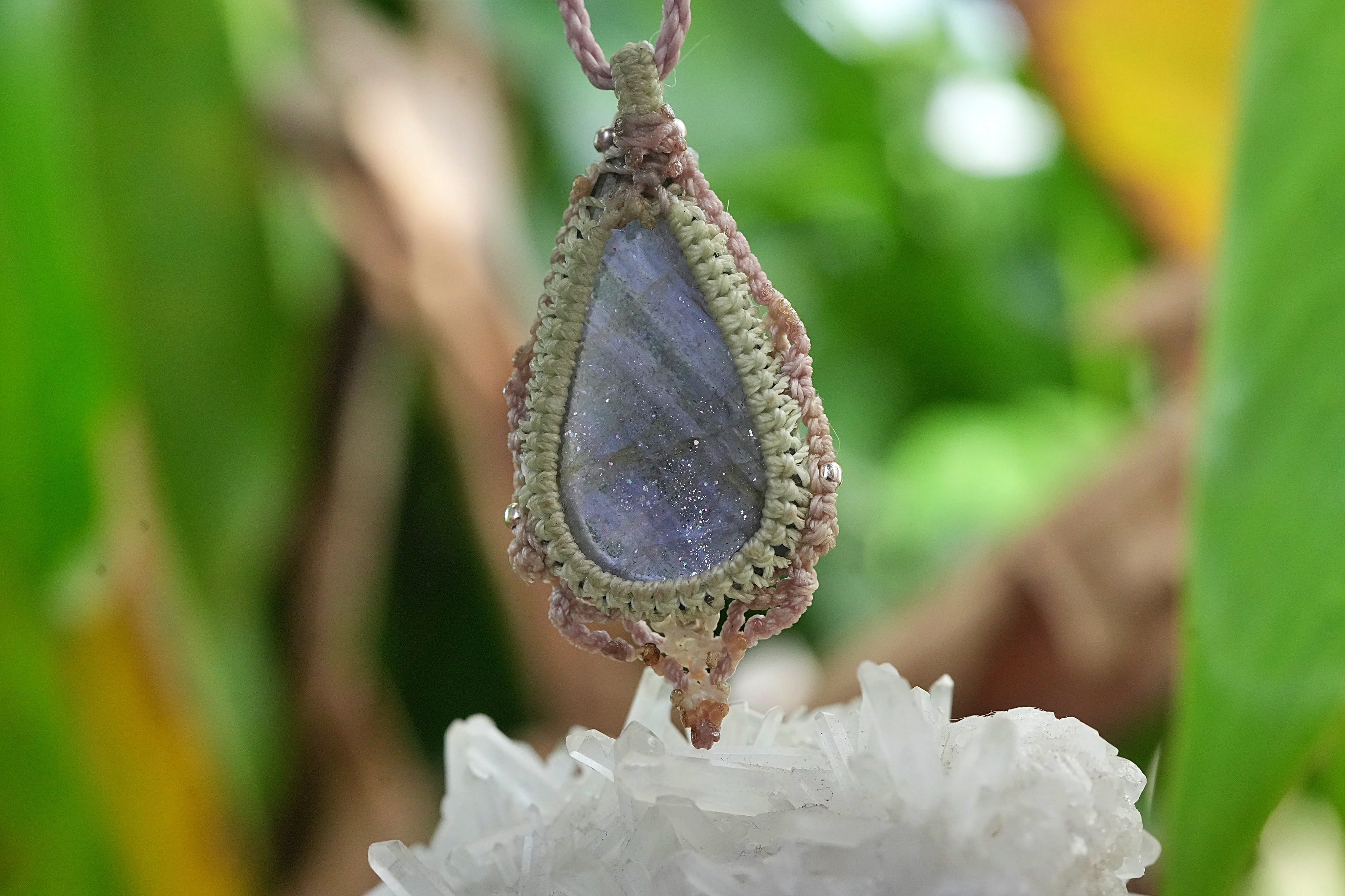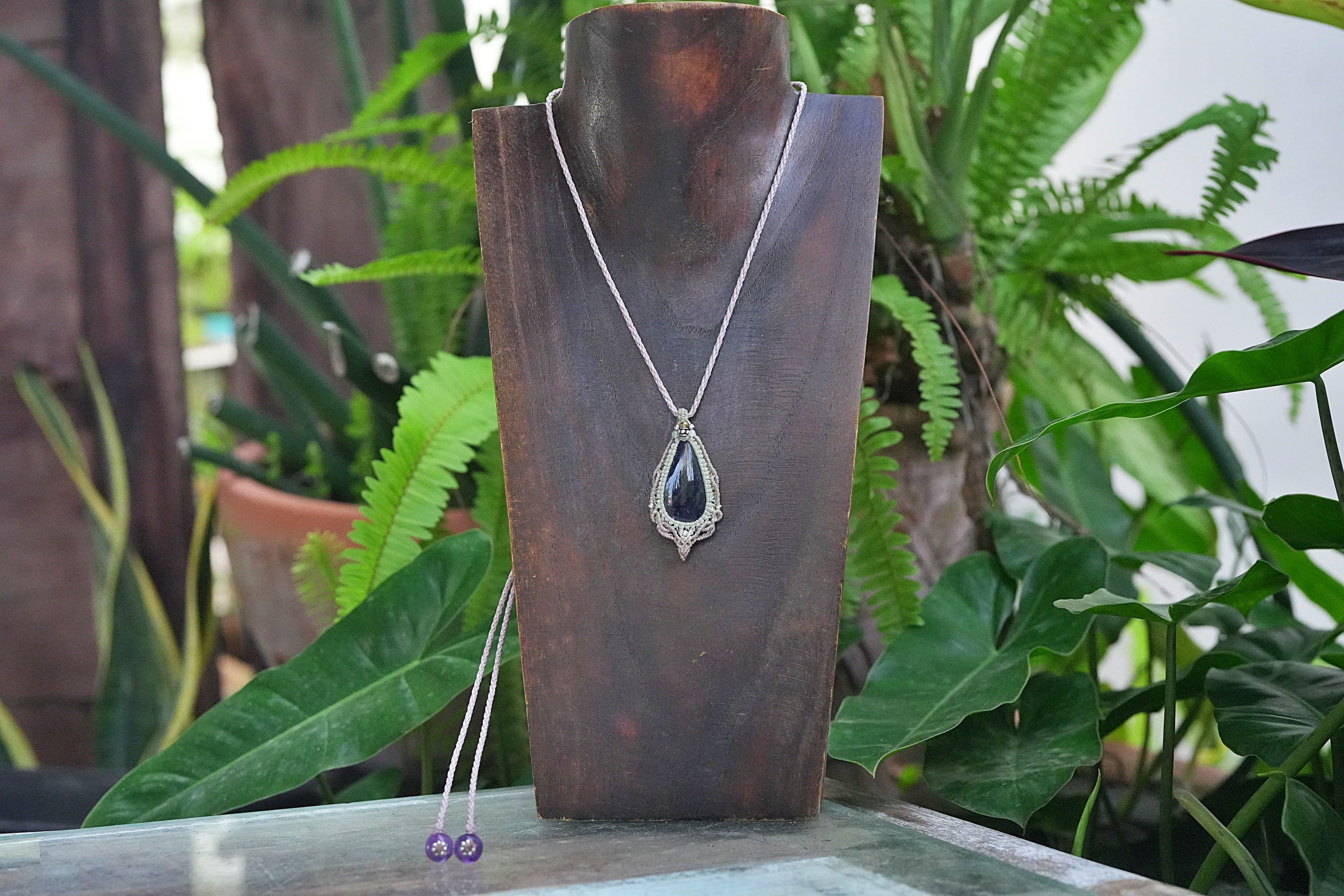 夜空の星★アイオライトサンストーン マクラメネックレス2574