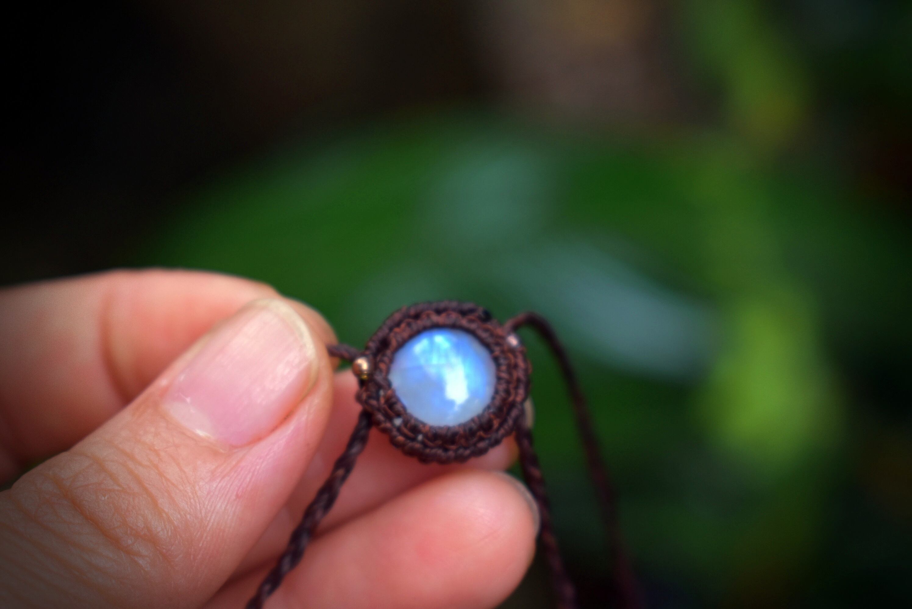アジャスター部分に高品質なレインボームーンストーンを使用しており、前後どちらでもお使いいただけるデザインに仕上げました。