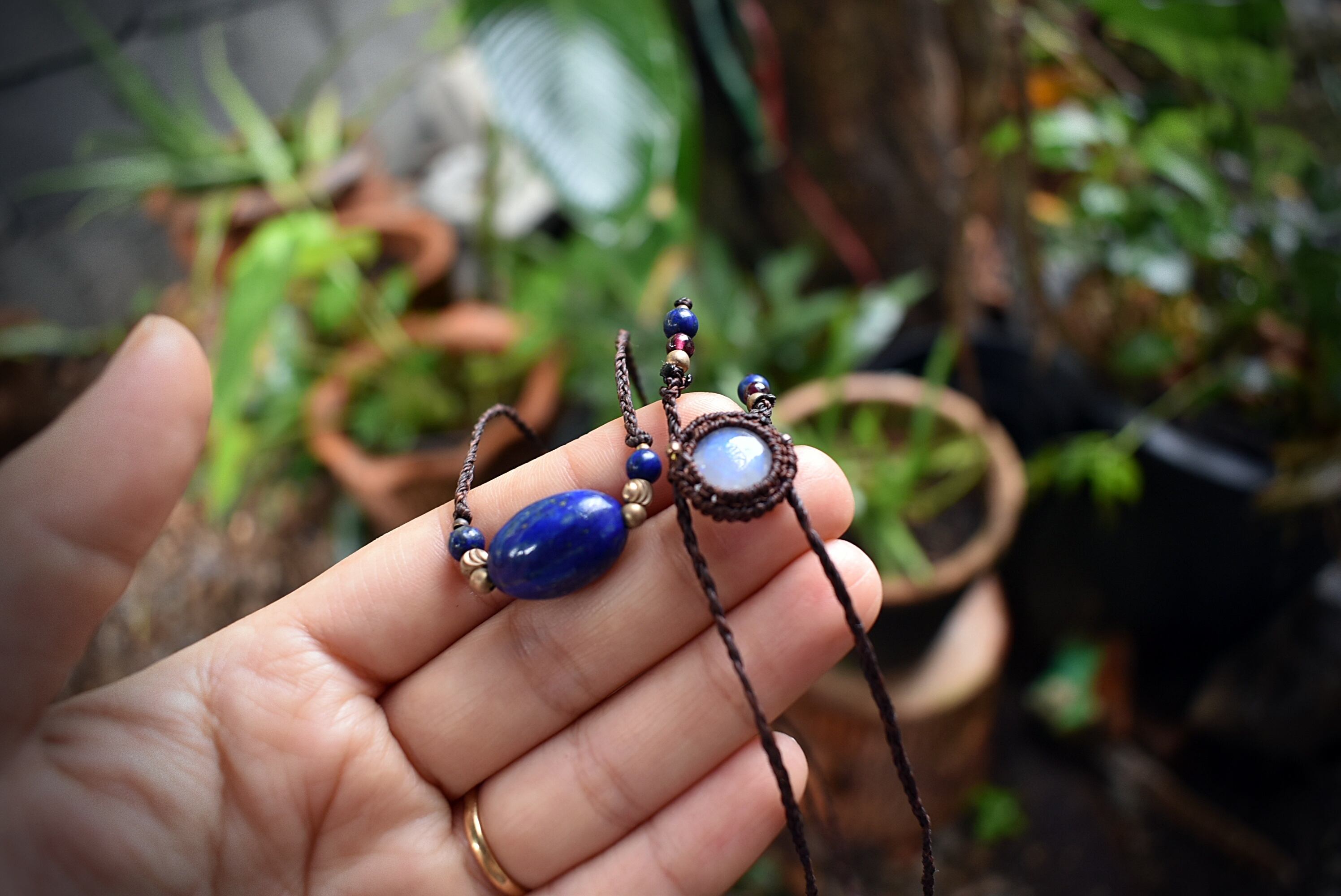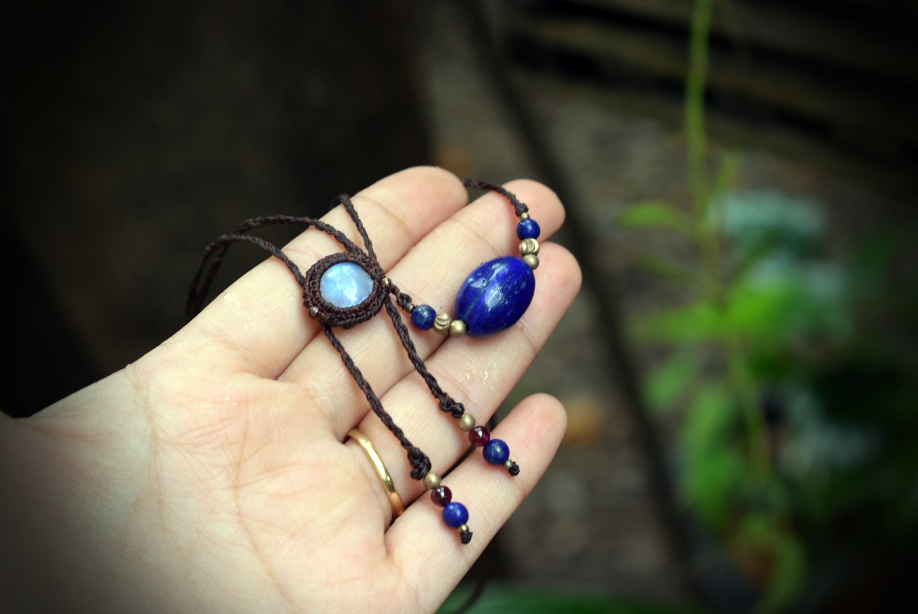 美しく色鮮やかなラピスラズリとレインボームーンストーン(ホワイトラブラドライト)を使用して、シンプルなチョーカーネックレスを制作しました。