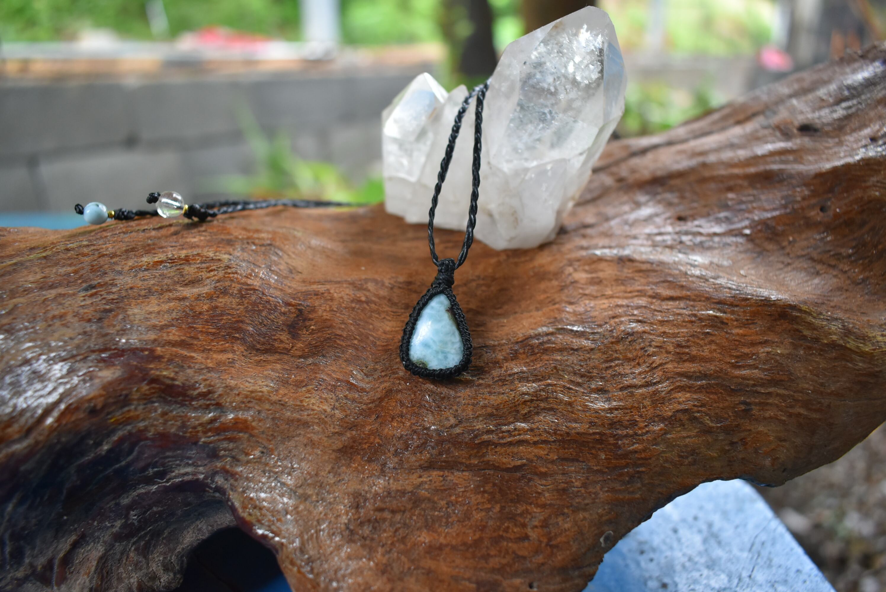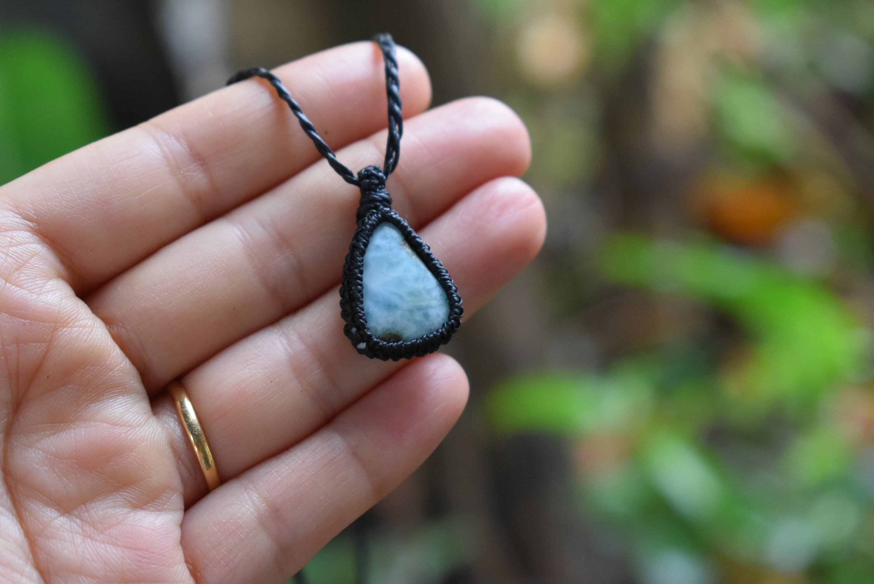 ラリマー★シンプルスタイル★ドミニカ産★マクラメペンダント