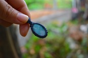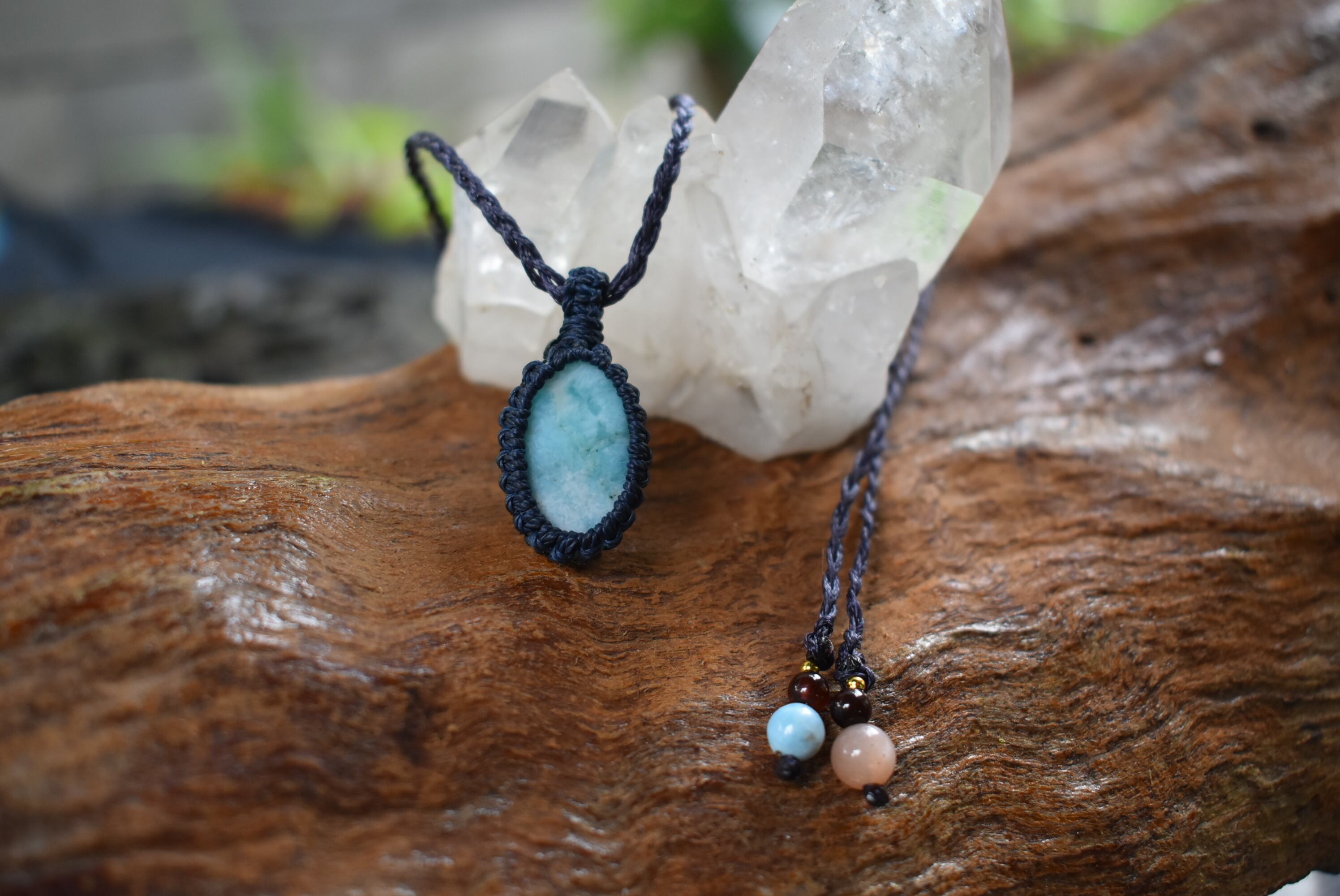 小ぶりなラリマーの一粒をシンプルなペンダントに仕上げました。