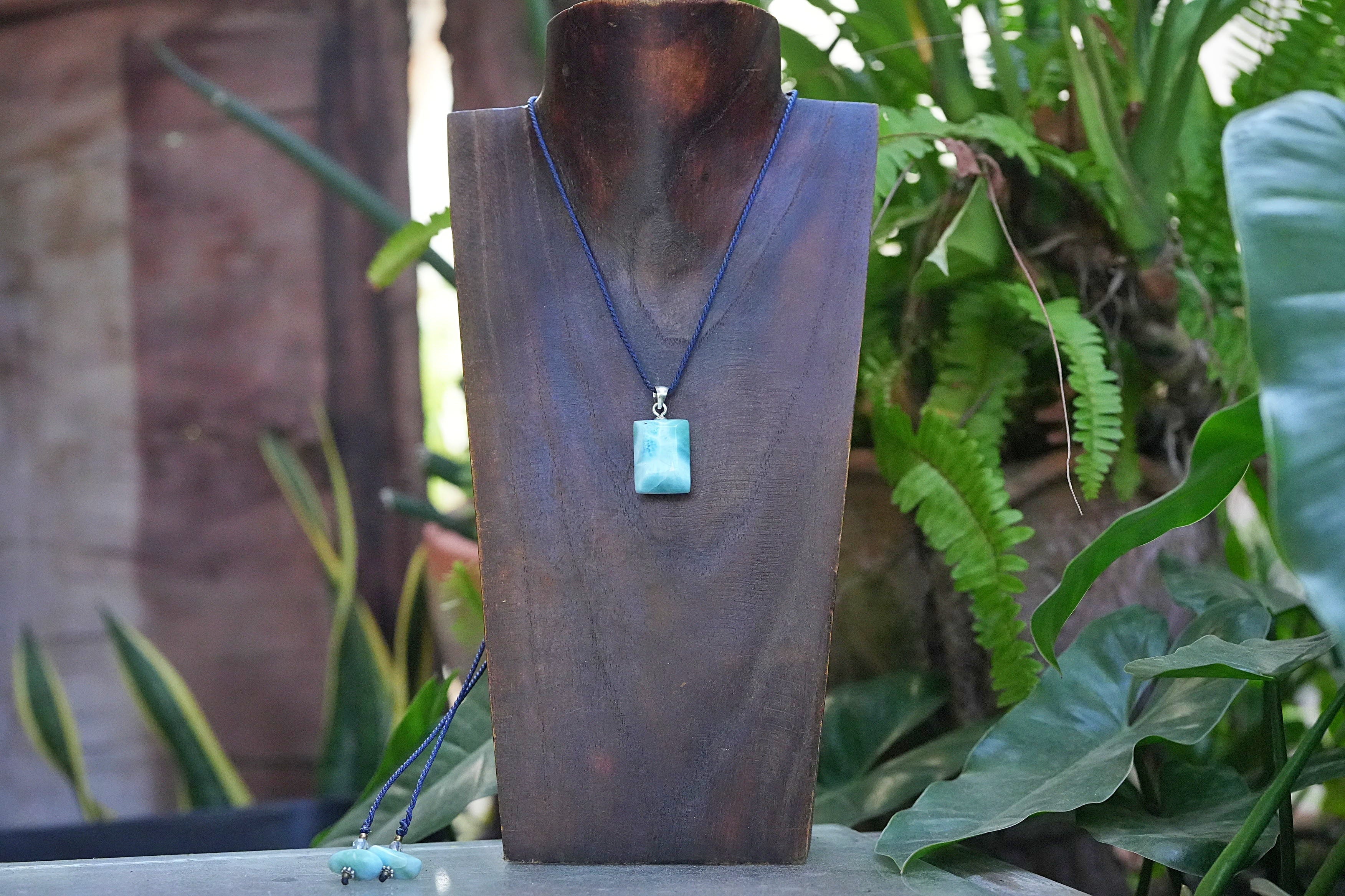 スクエアの厚み★高品質ラリマー シルバーネックレス2578