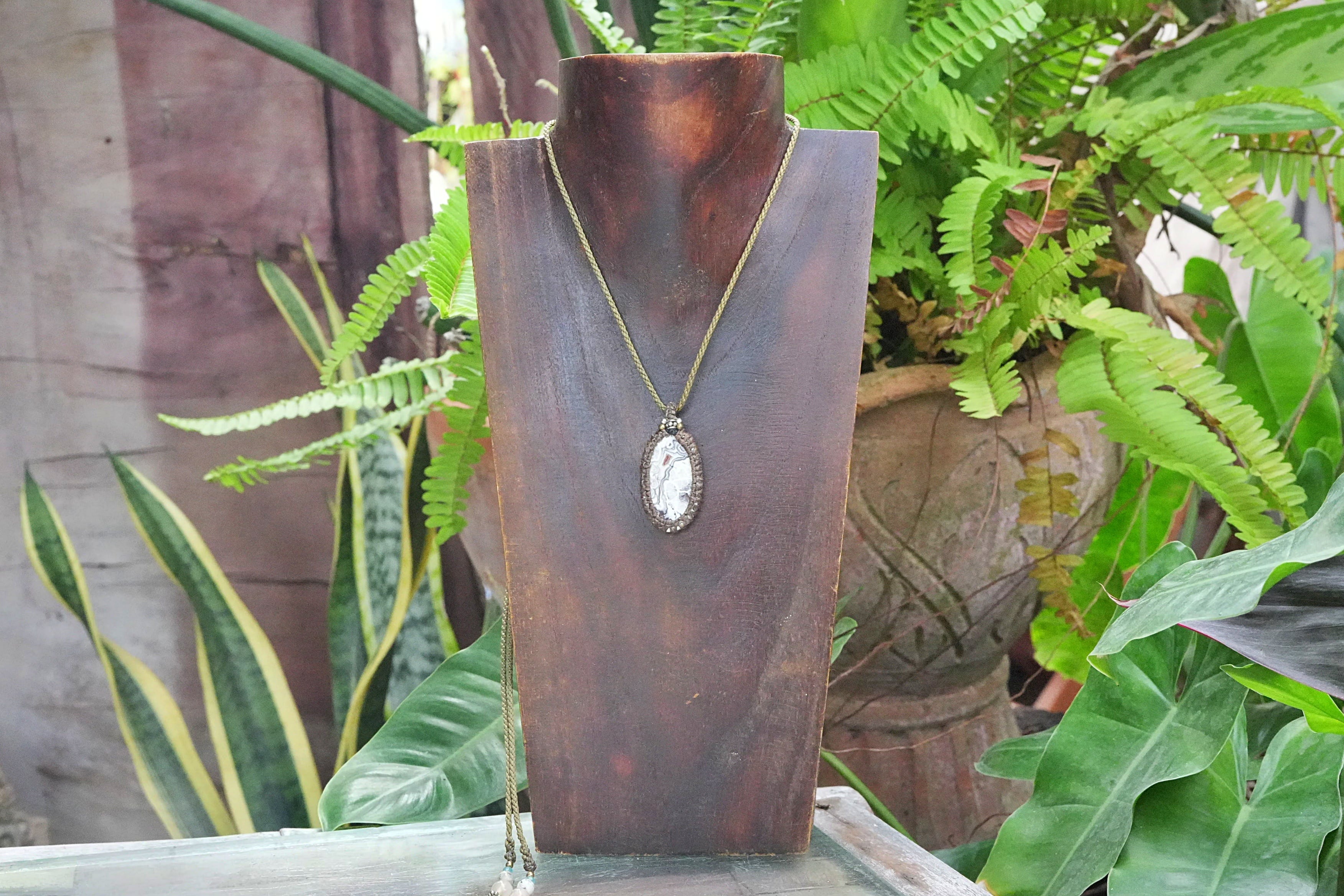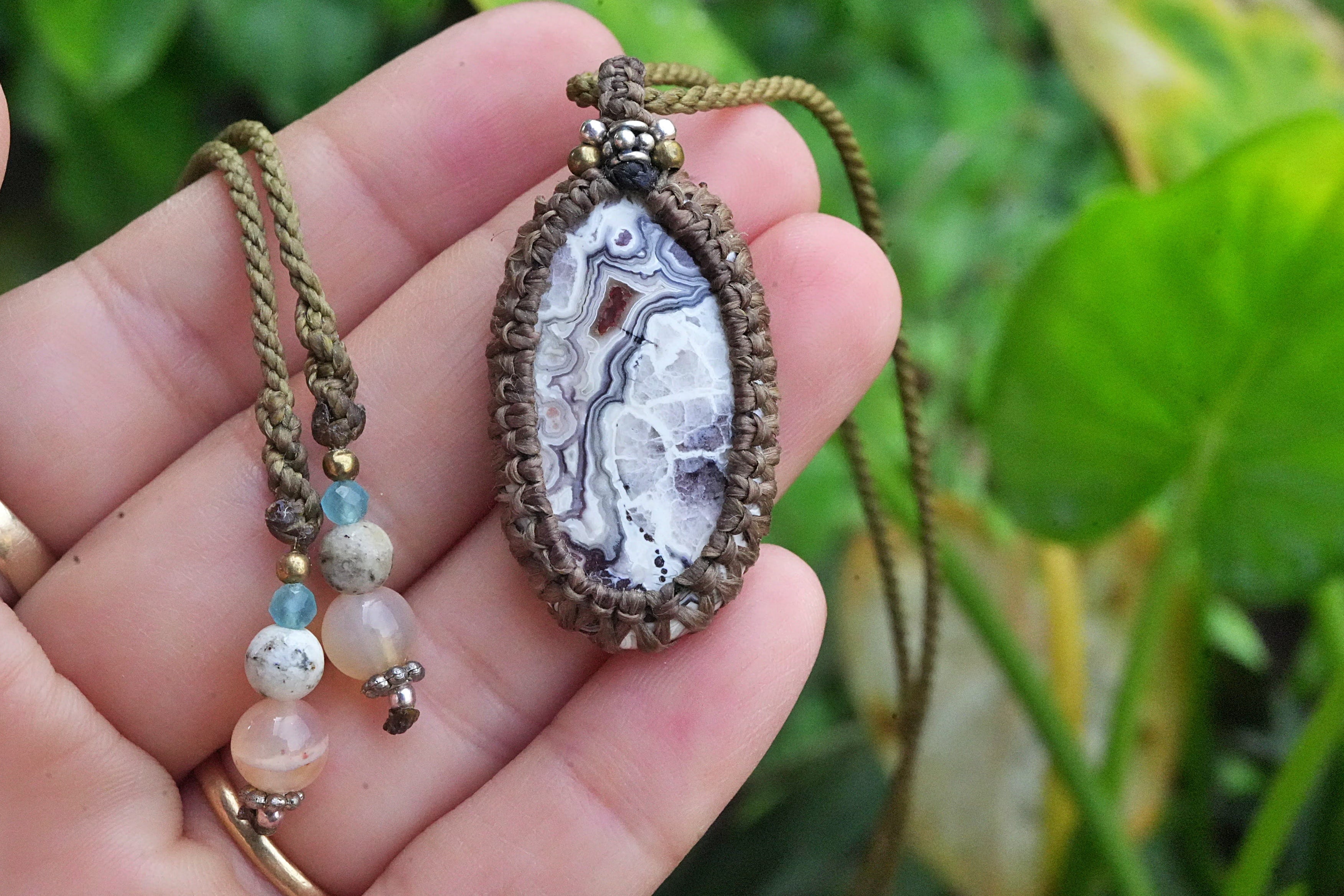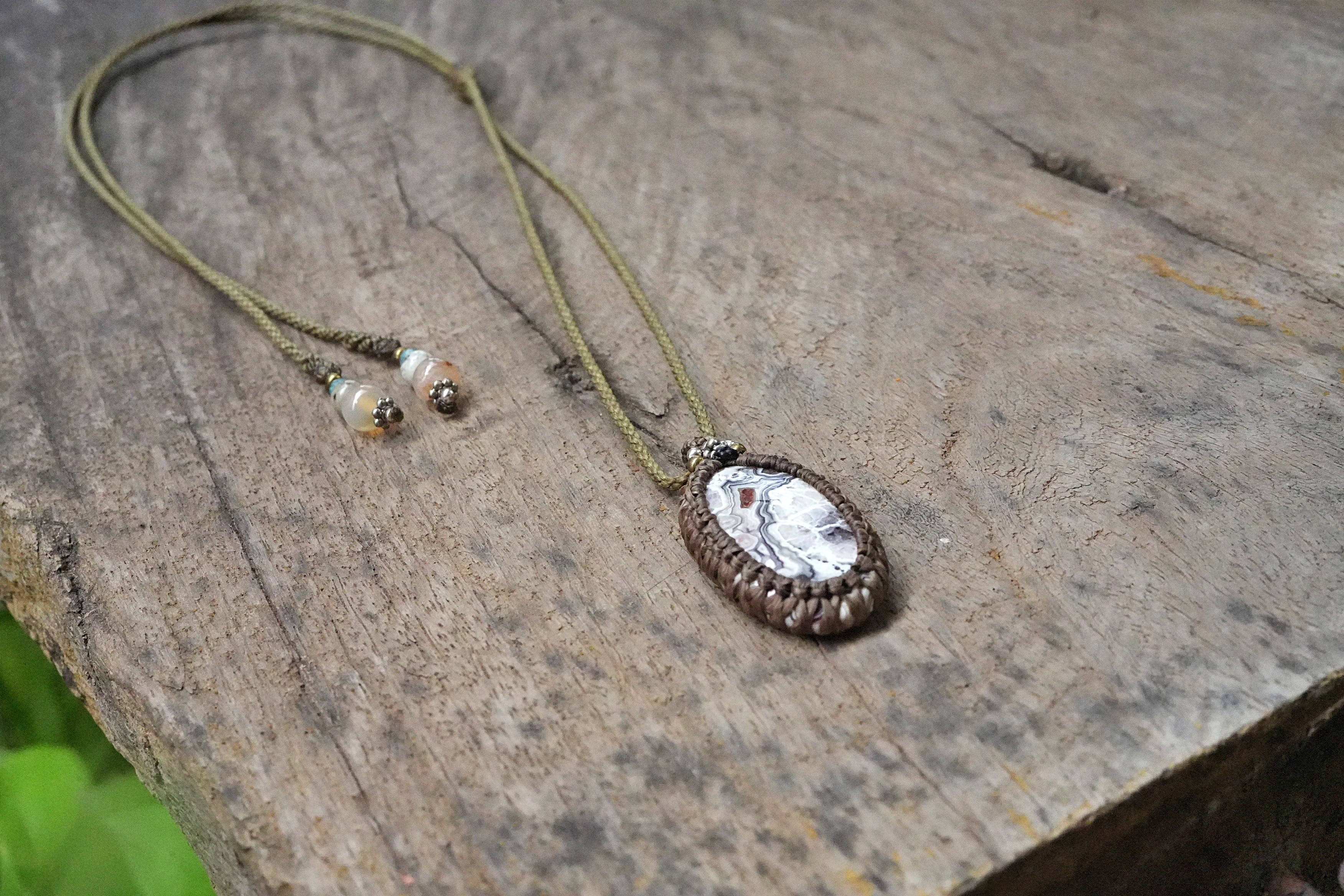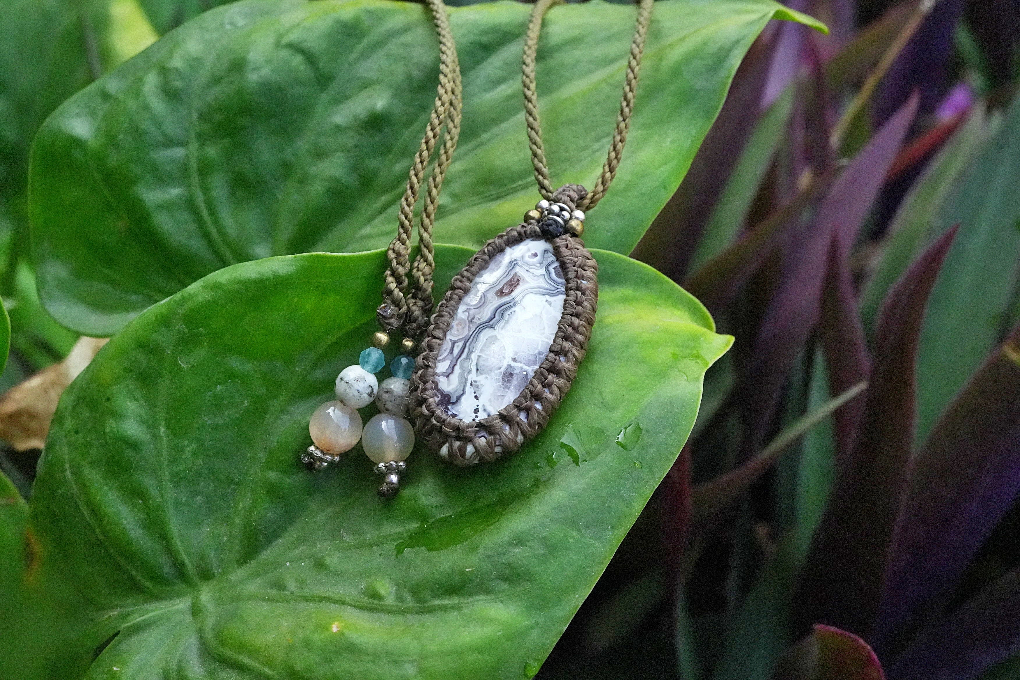 モダン芸術★クレイジーレースアゲート マクラメペンダント 2592