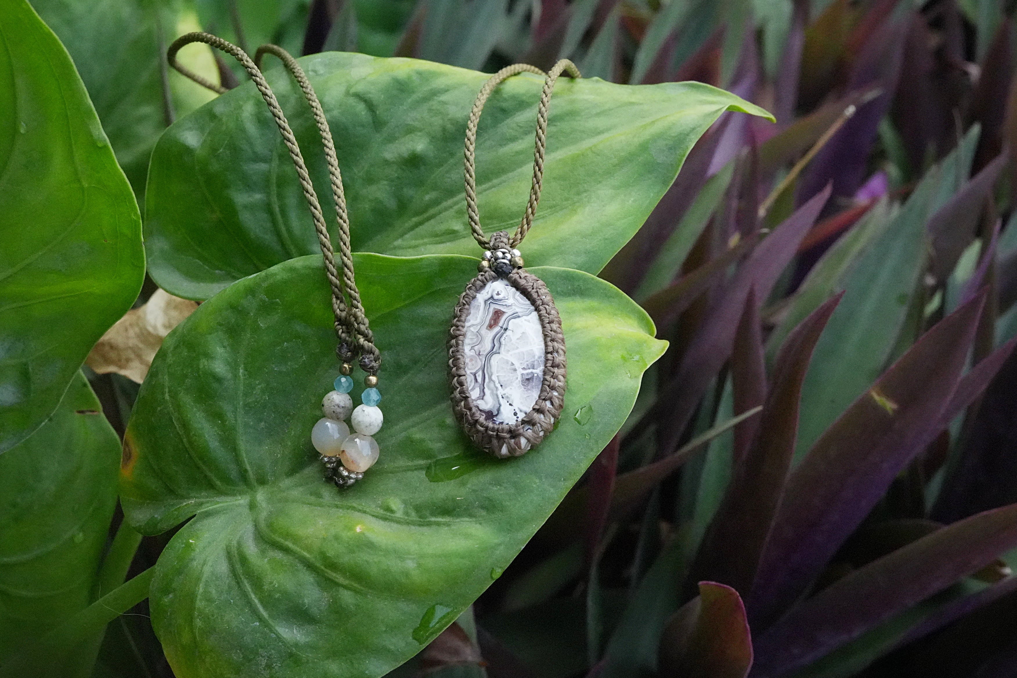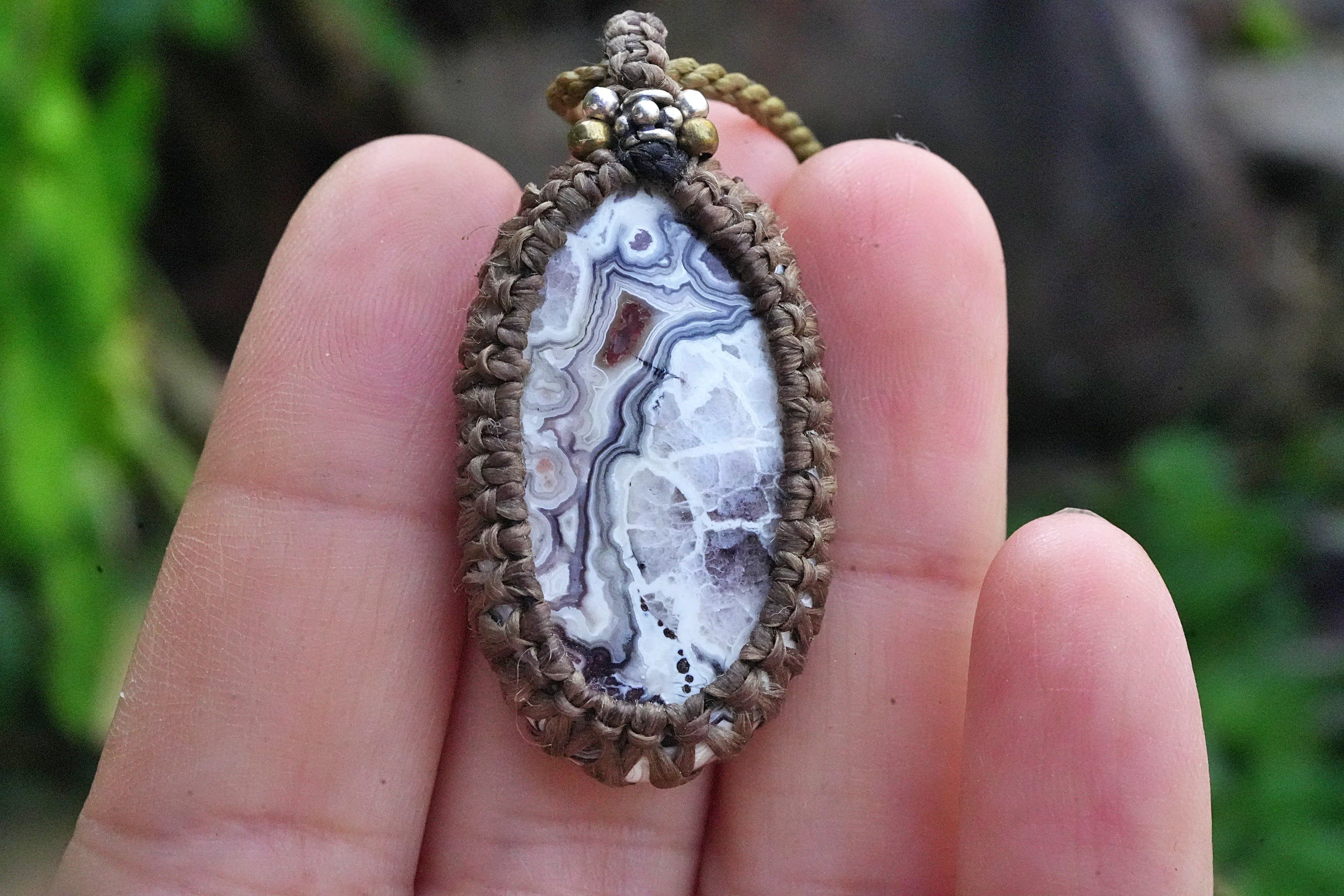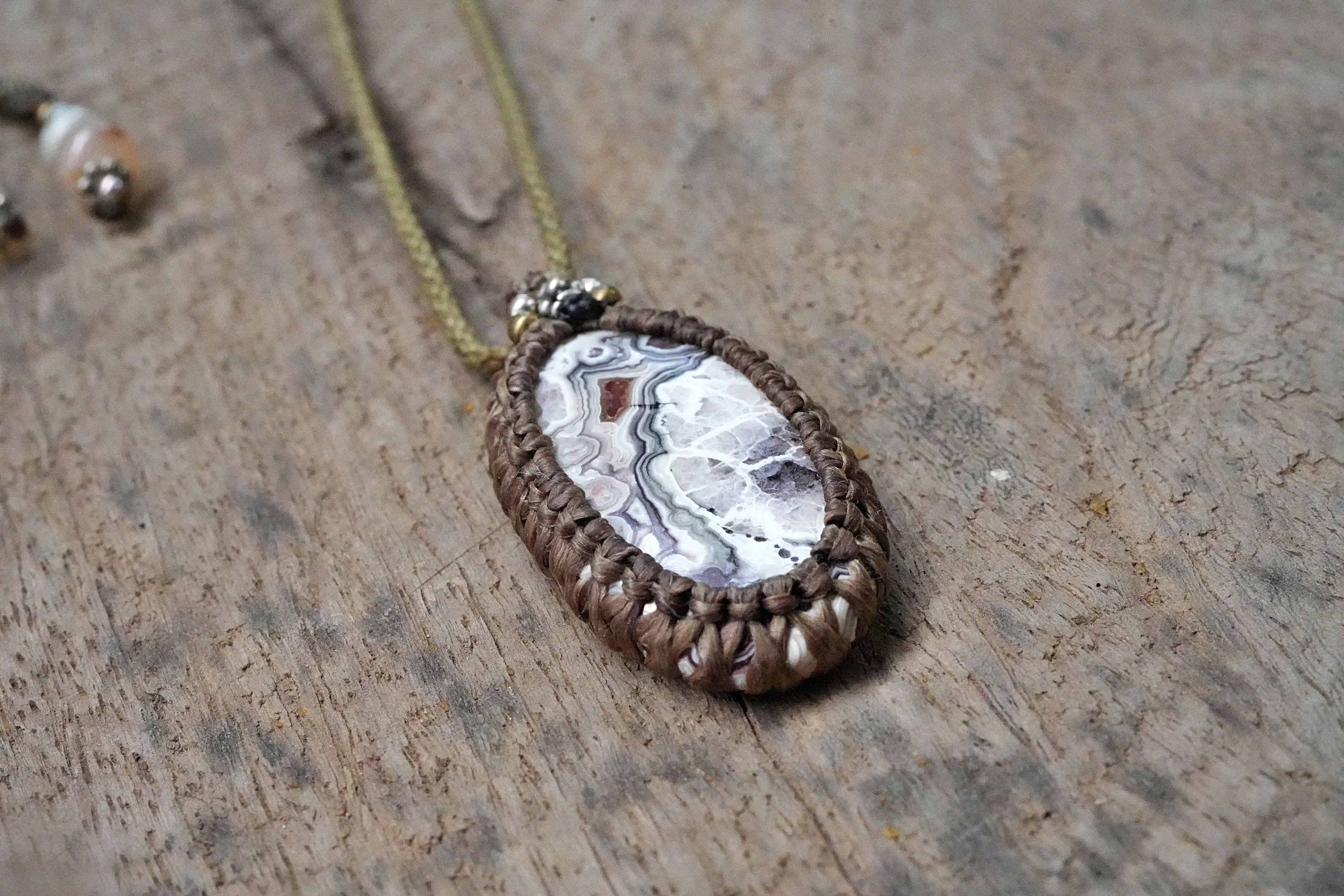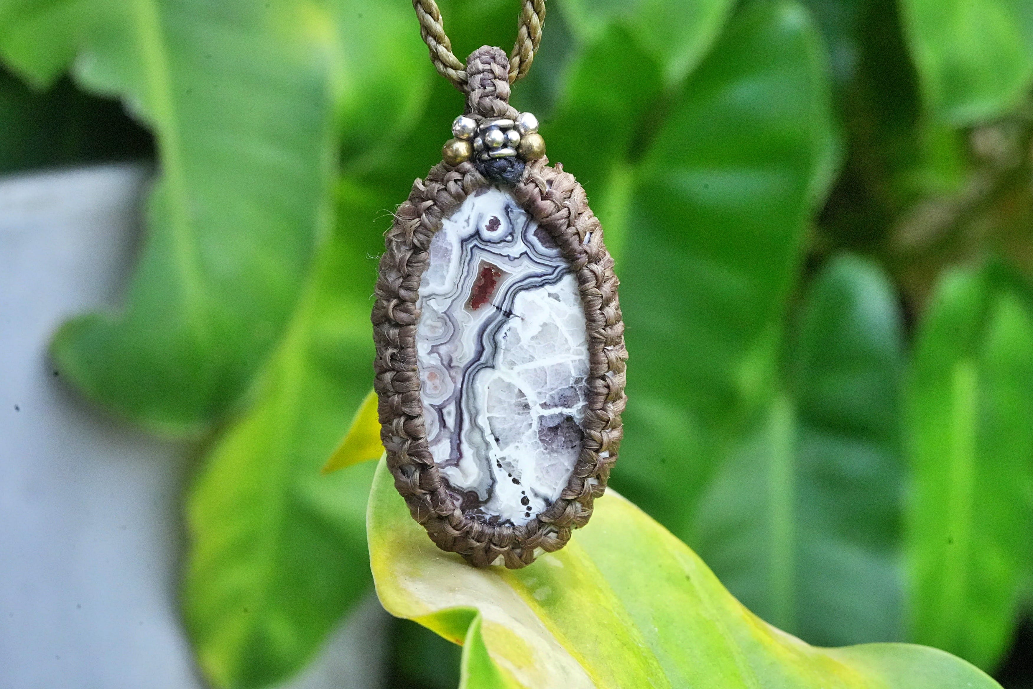 モダン芸術★クレイジーレースアゲート マクラメペンダント 2592