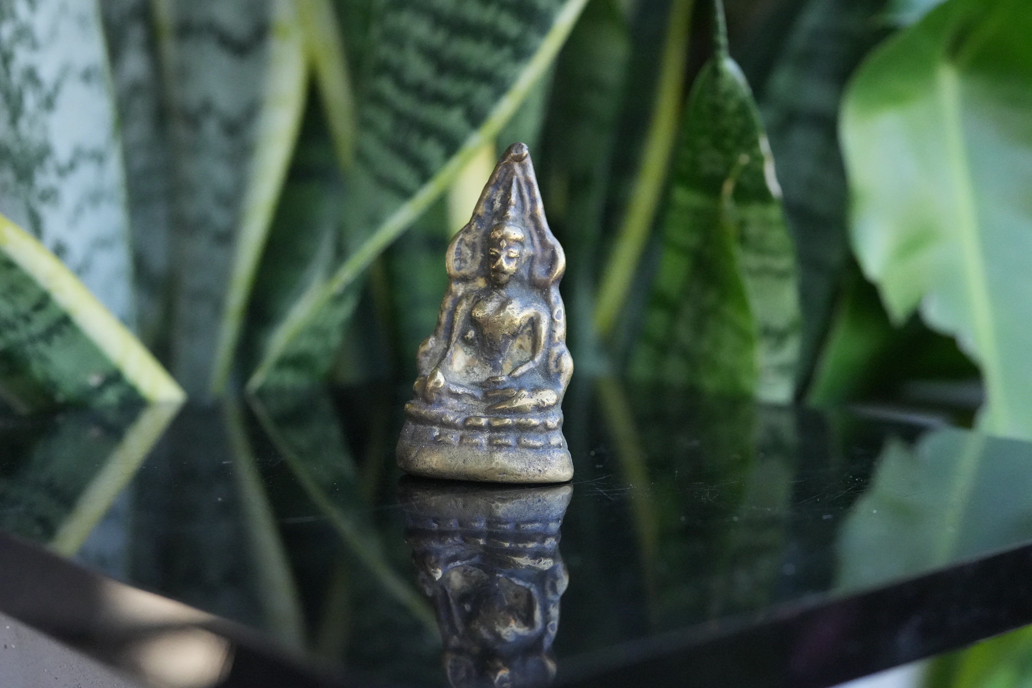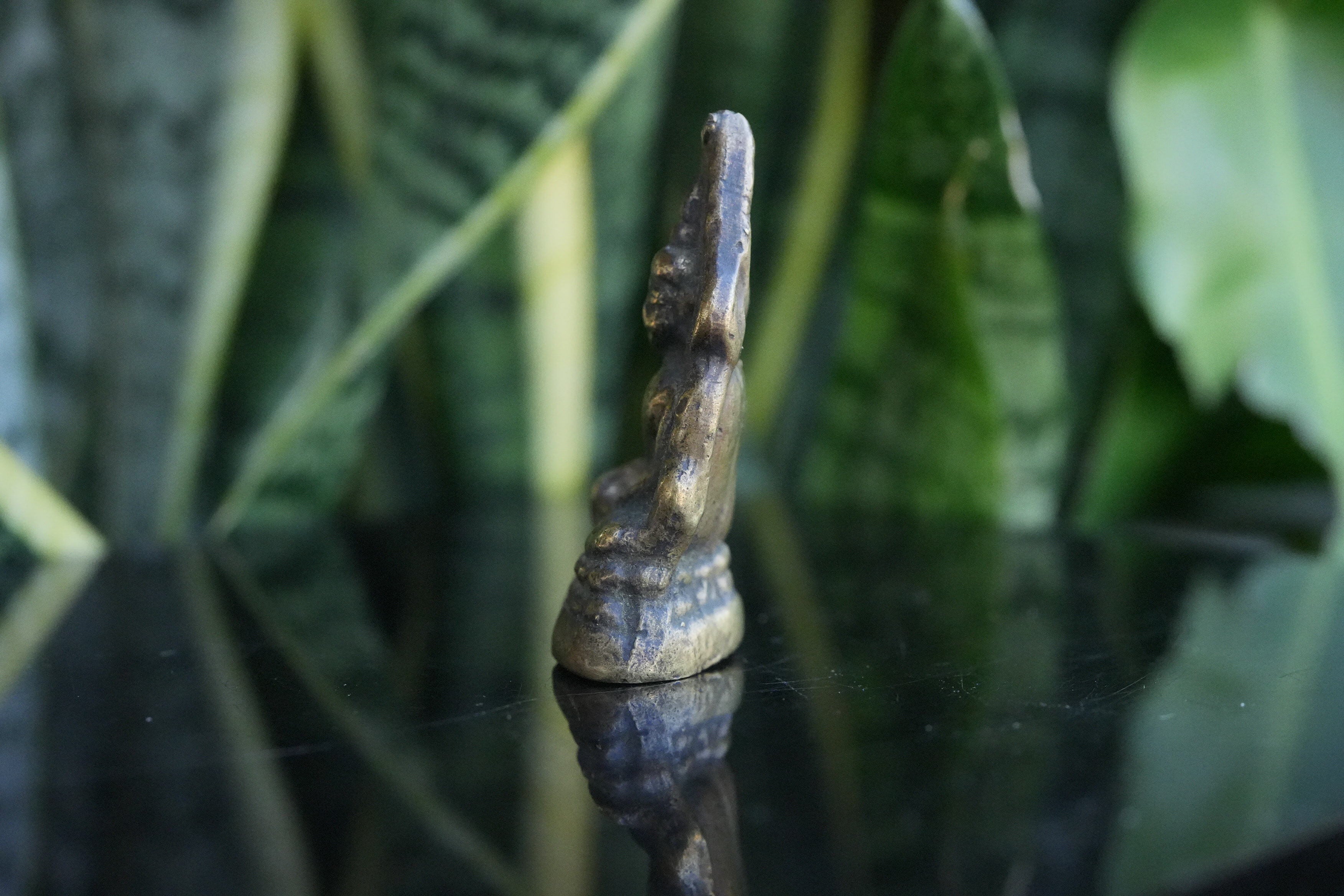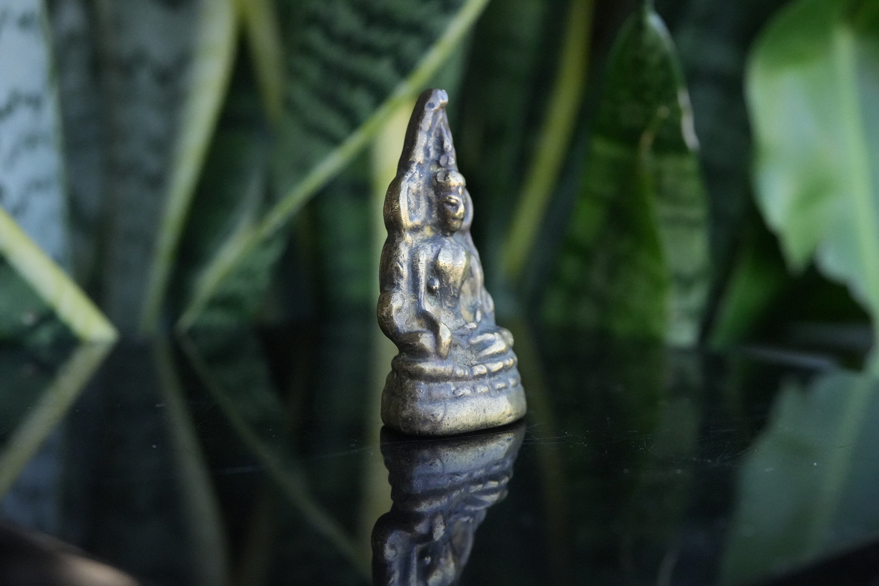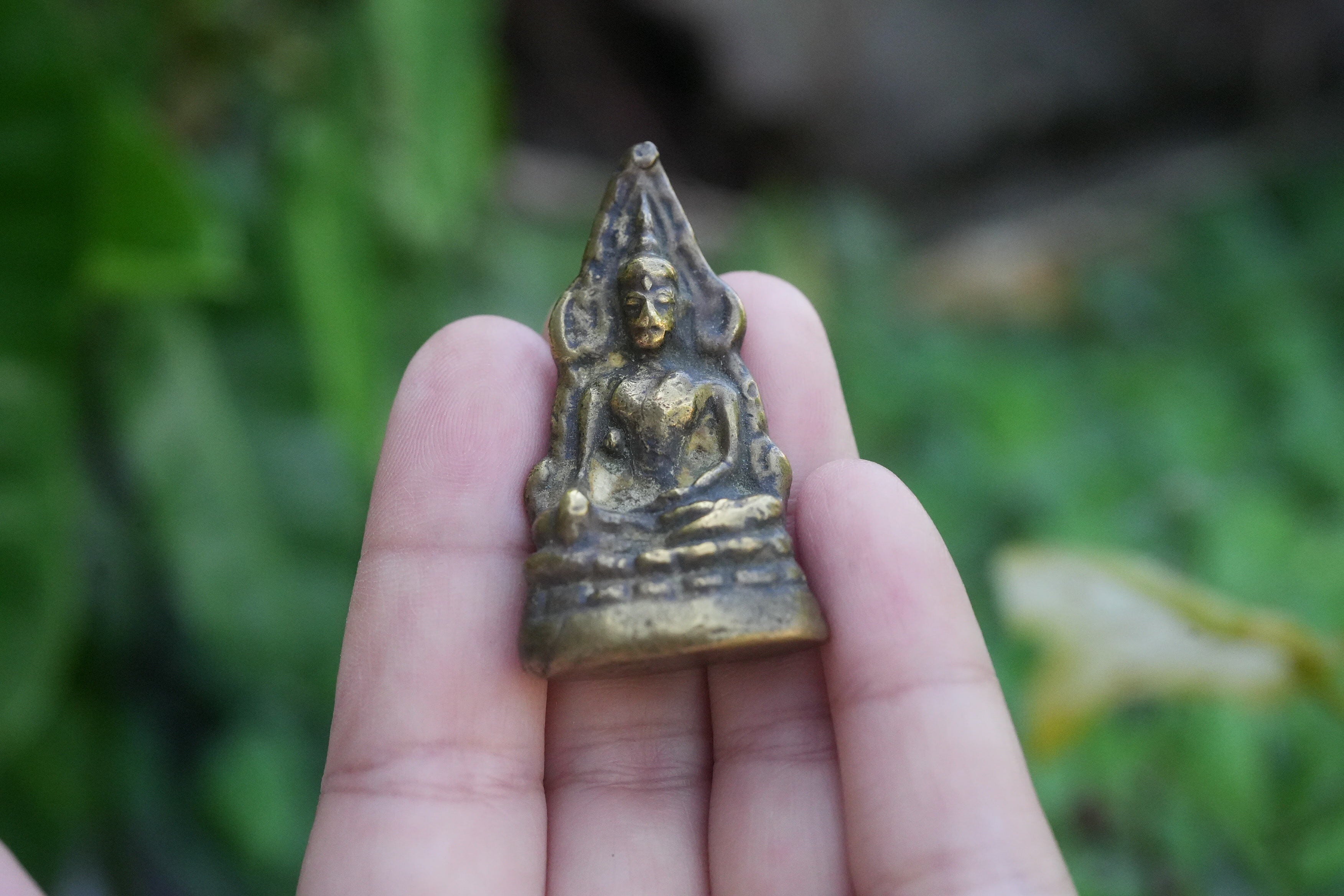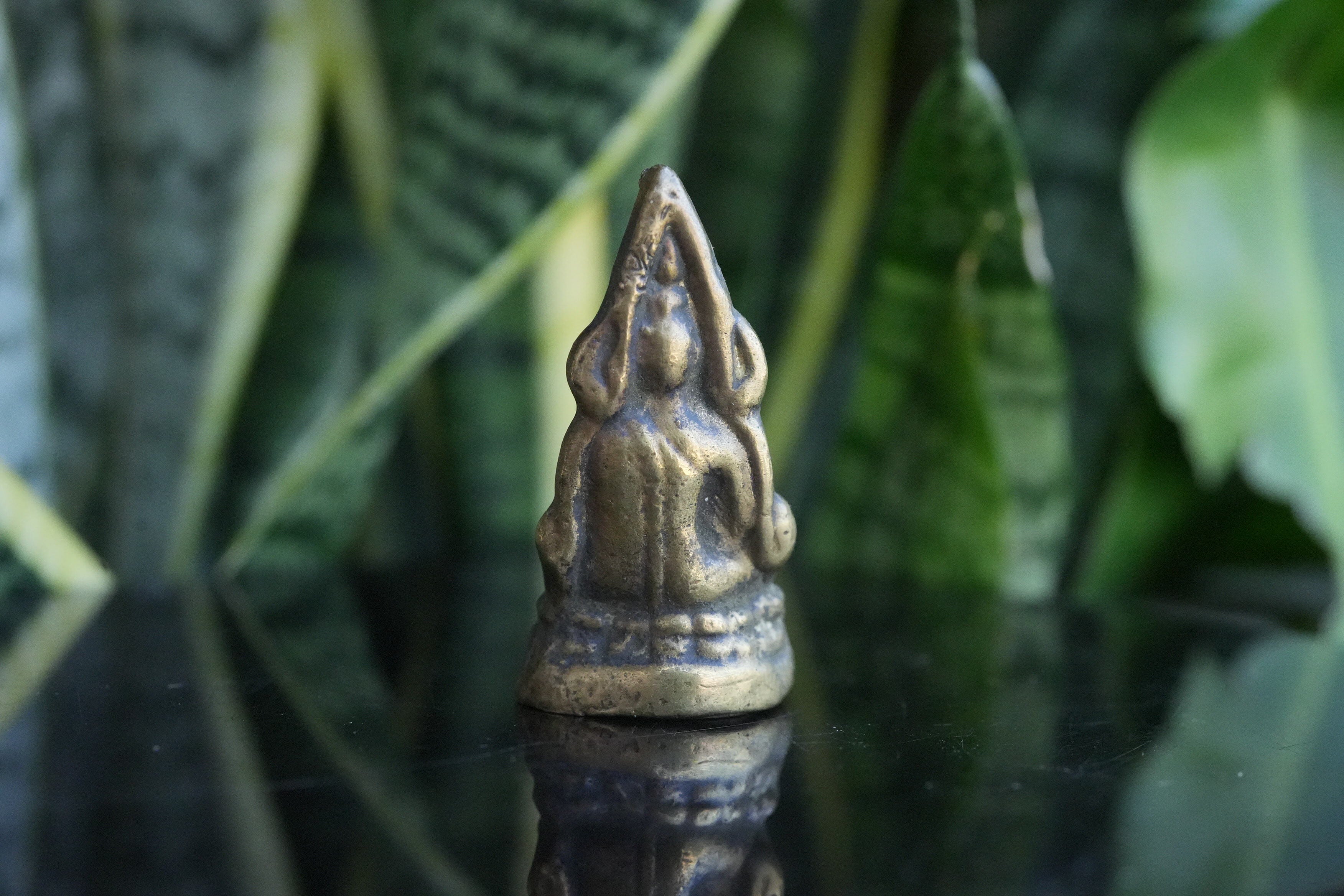 コンパクトながらも神聖な存在感を放つこの小さな仏像は、携帯用の守護仏として人気があり、カバンやデスク、寝室などにも最適です。