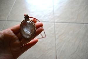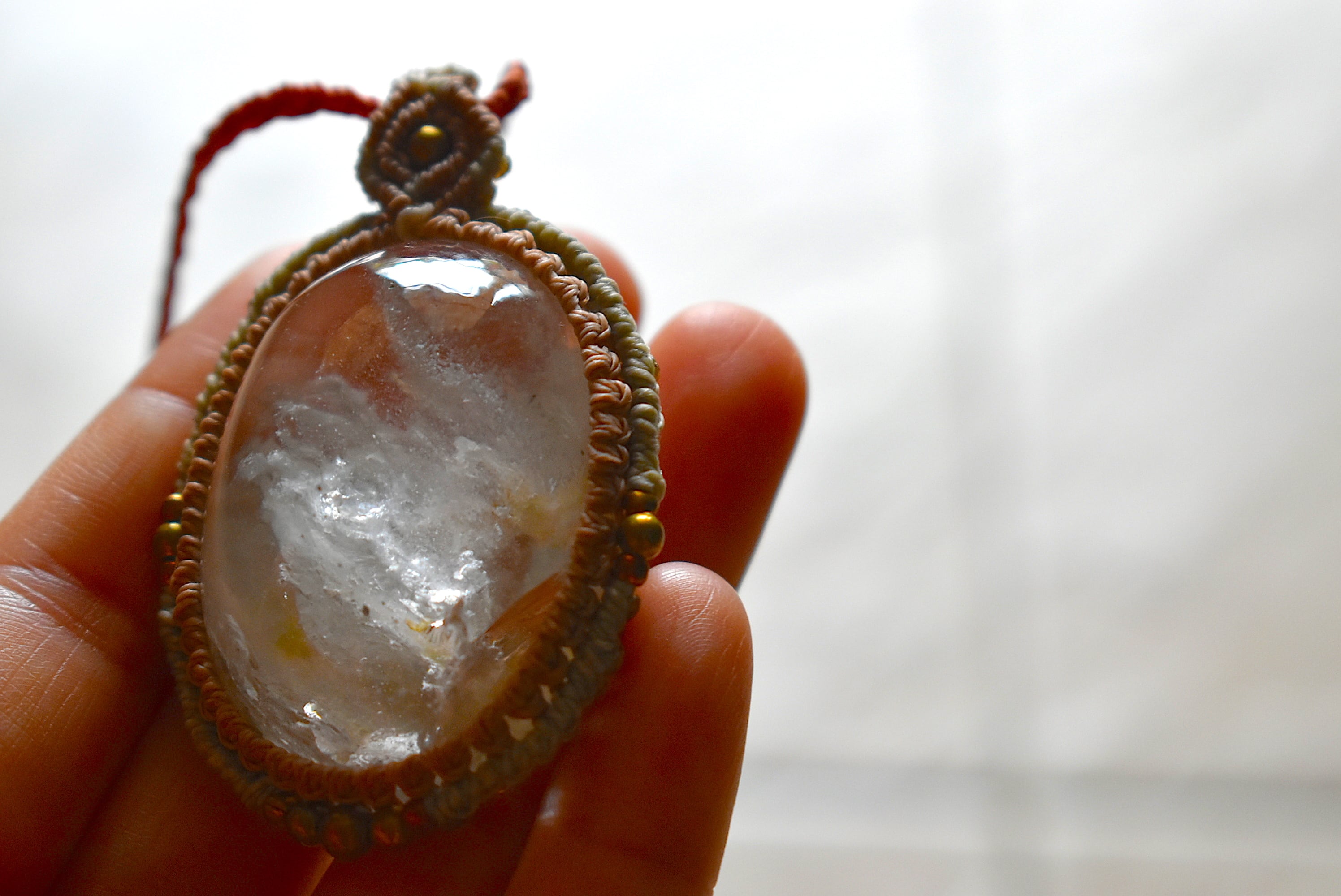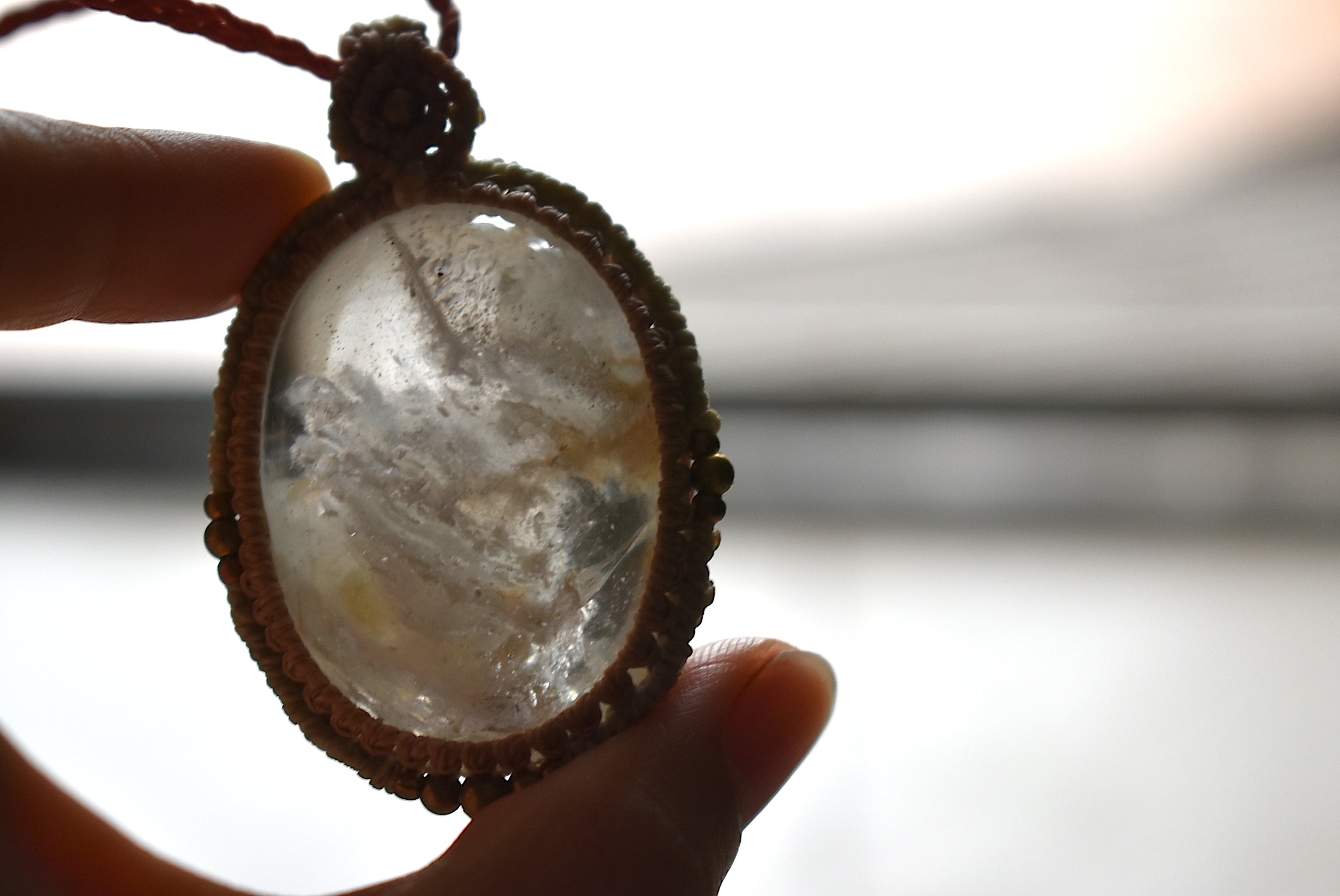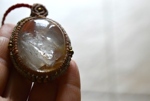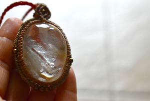 特大レア★虹入り★白い結晶ガーデンクォーツ マクラメペンダント