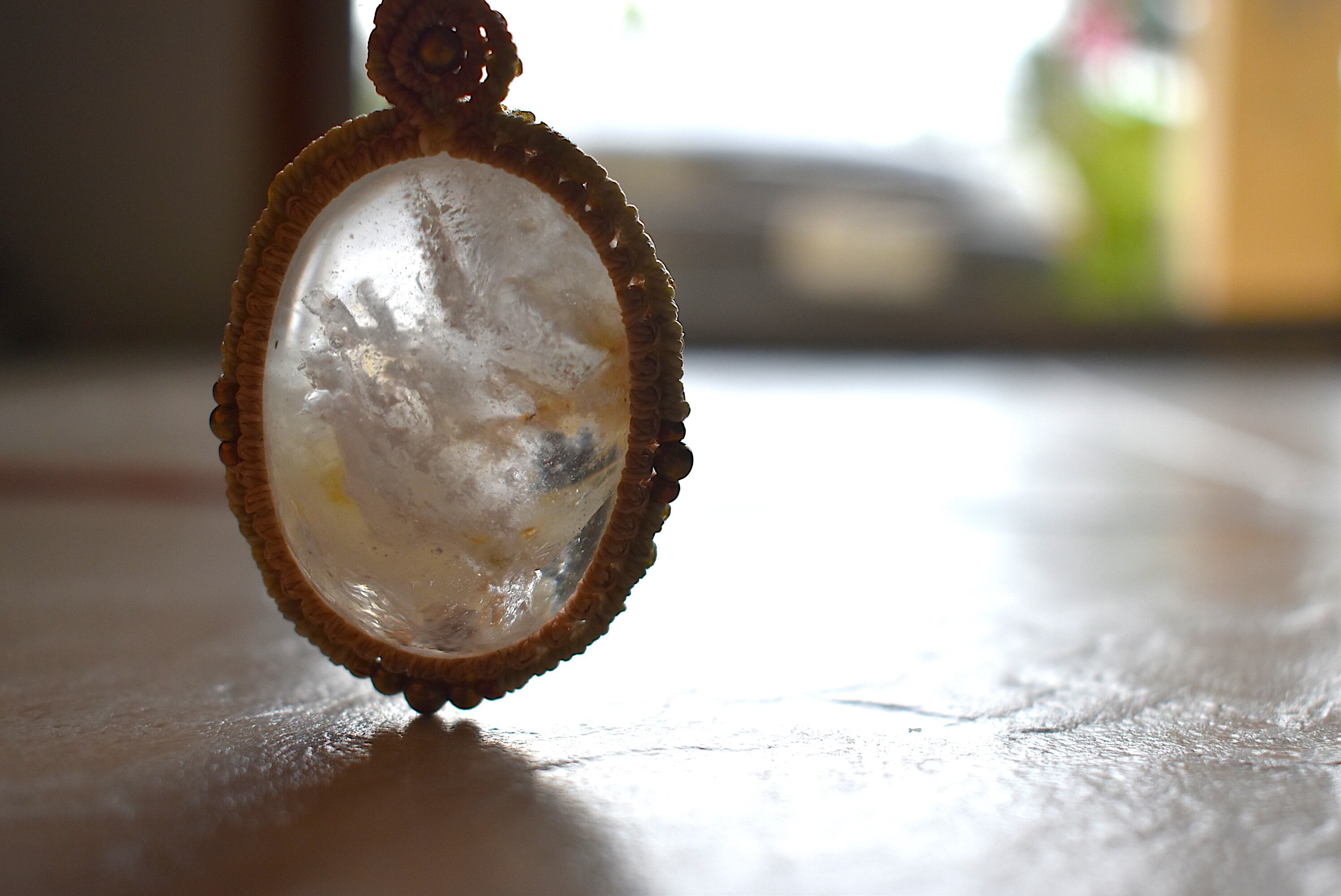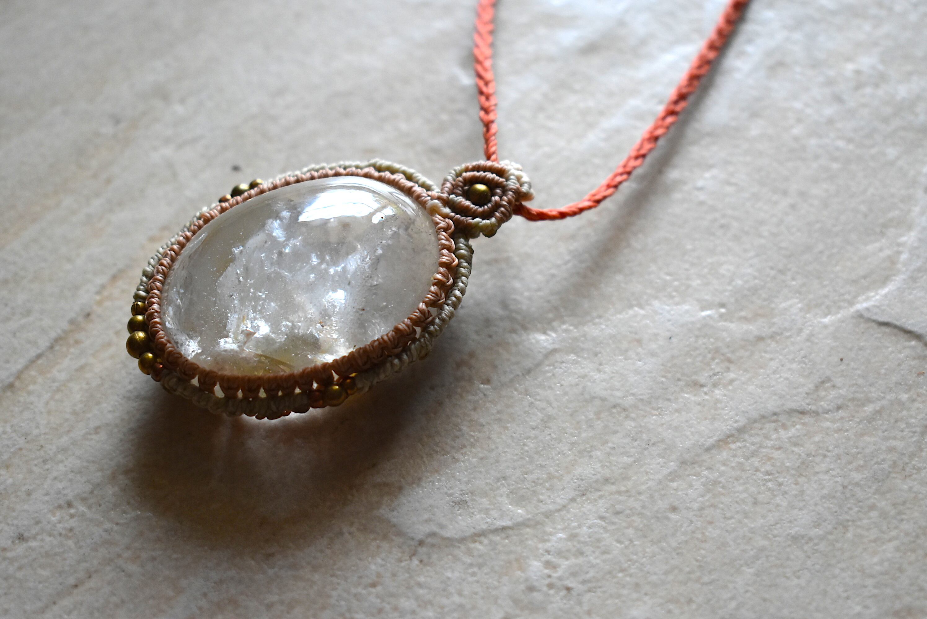 このたびはこの特別なガーデンクォーツ水晶のまわりに真鍮ビーズをあしらい