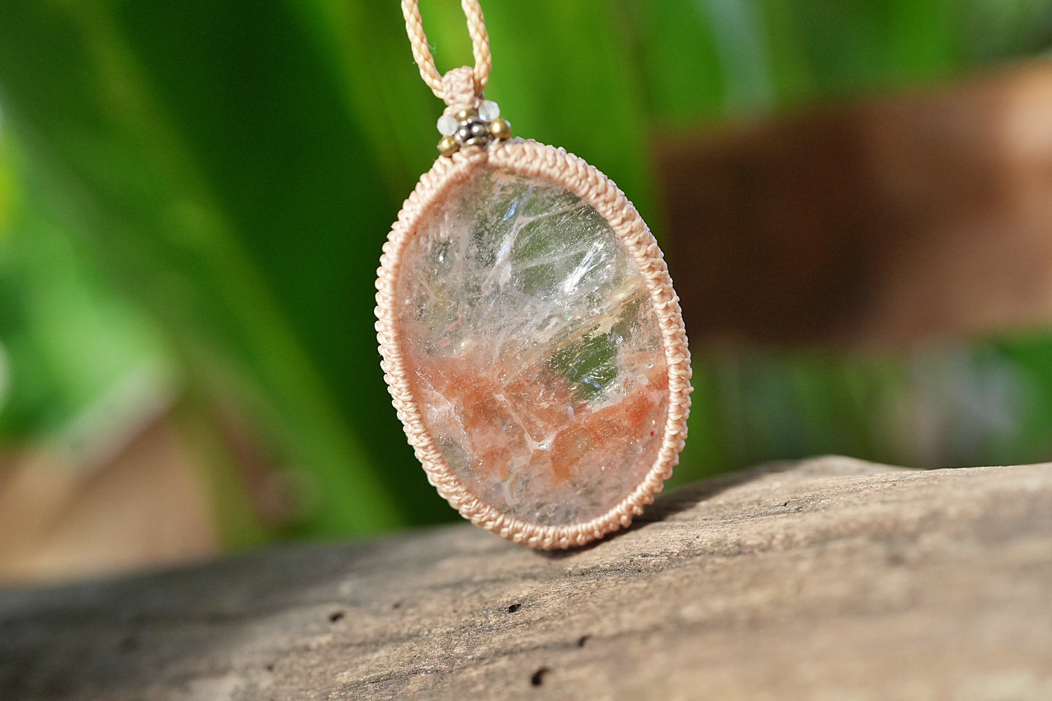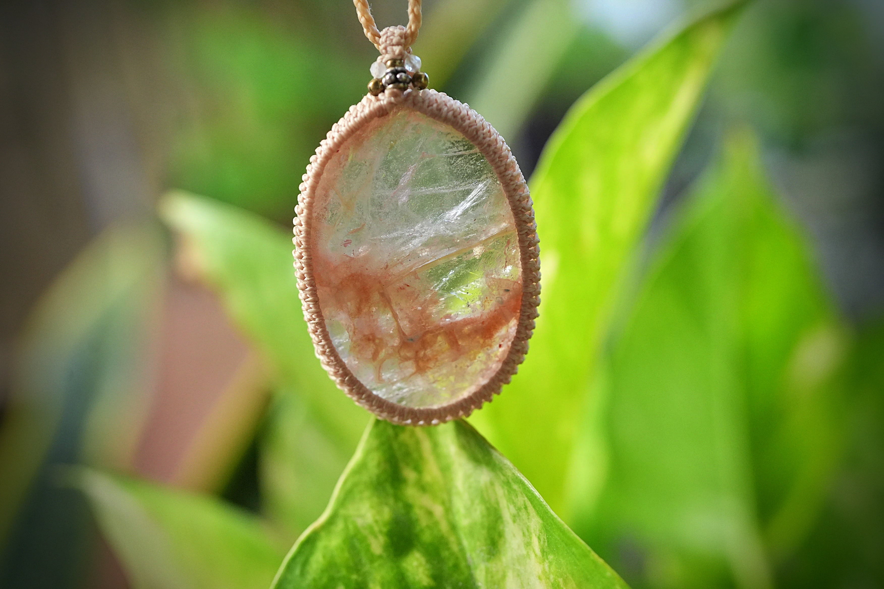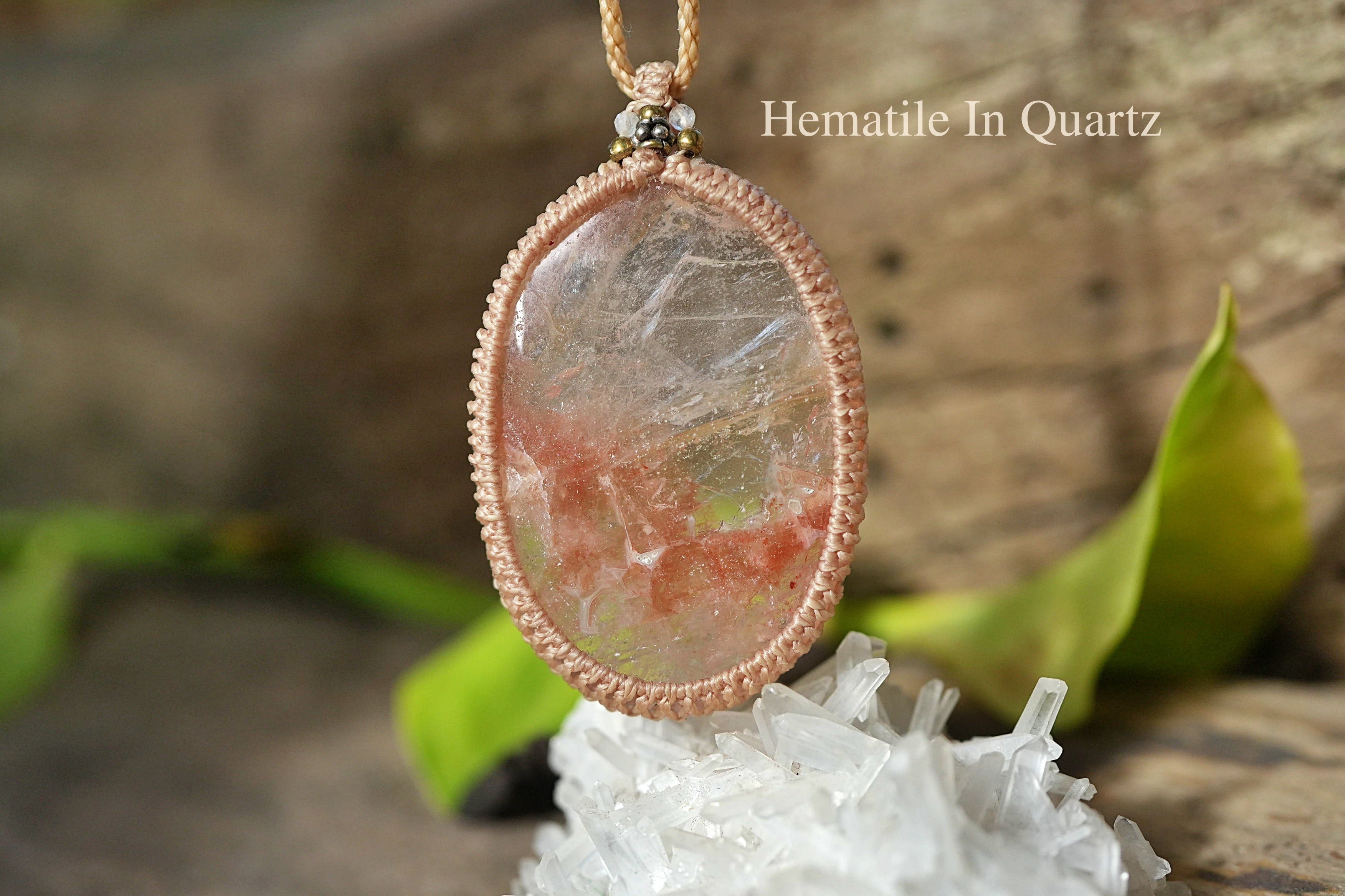 水晶の中に赤い内包物が入っているヘマタイトインクォーツ