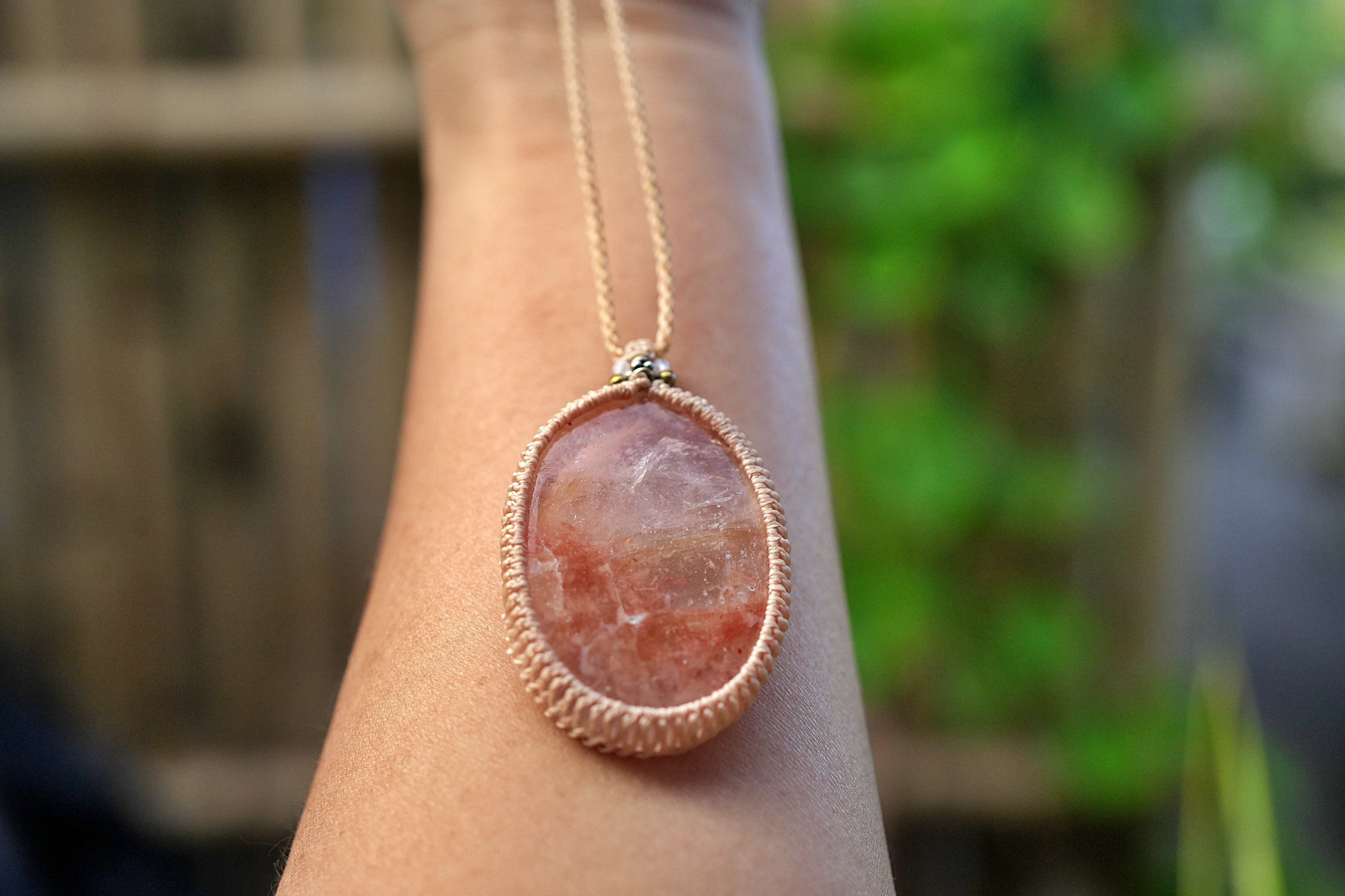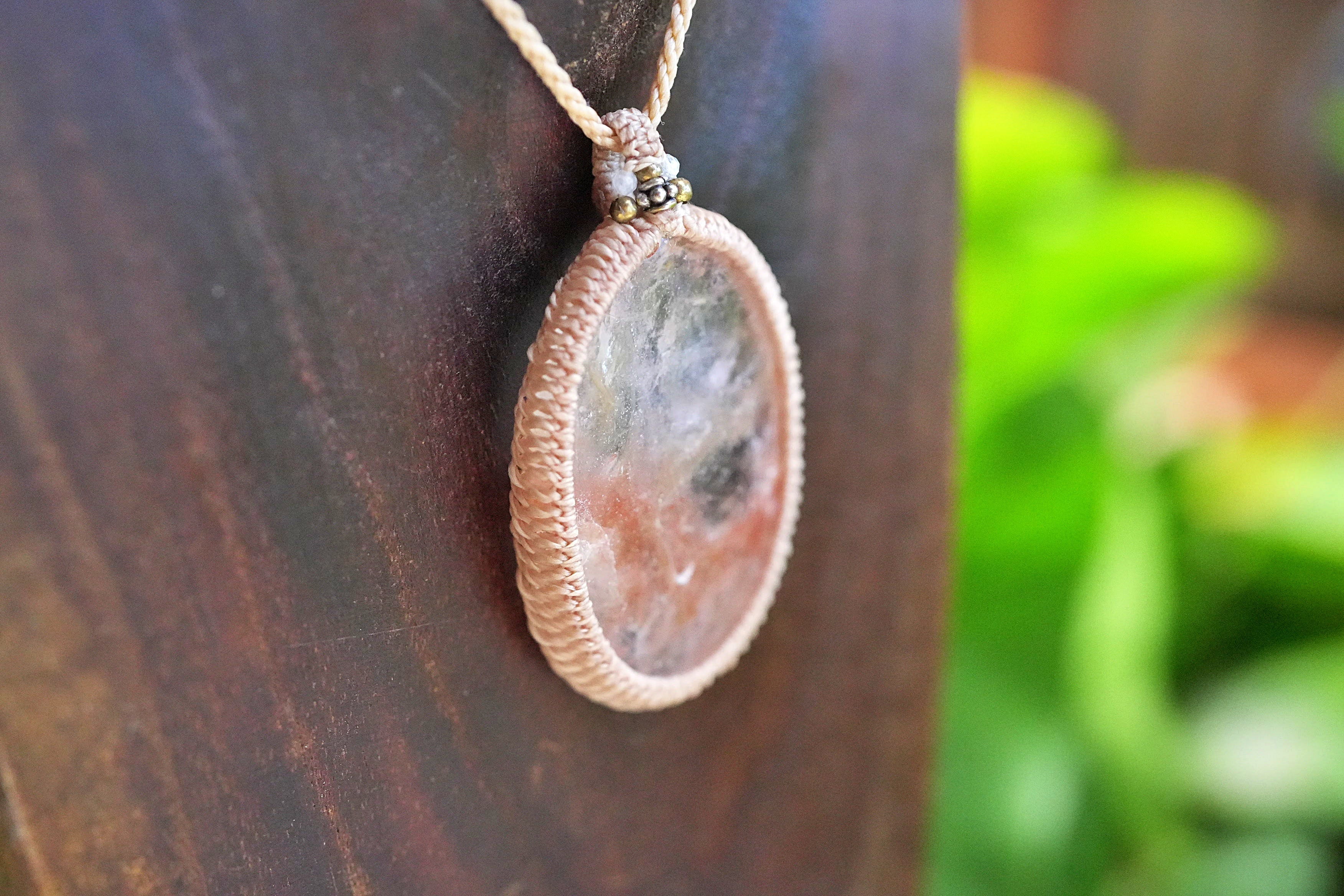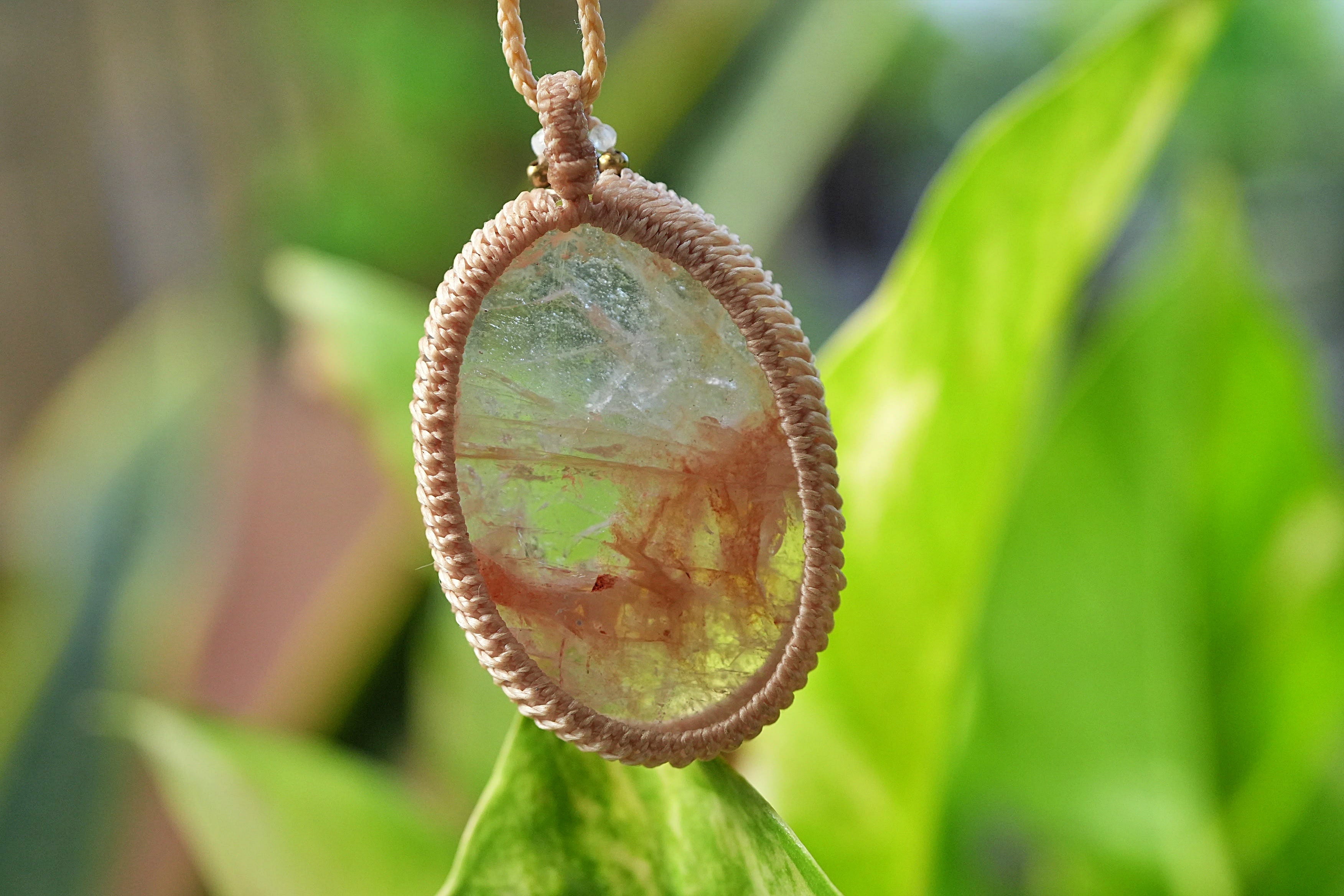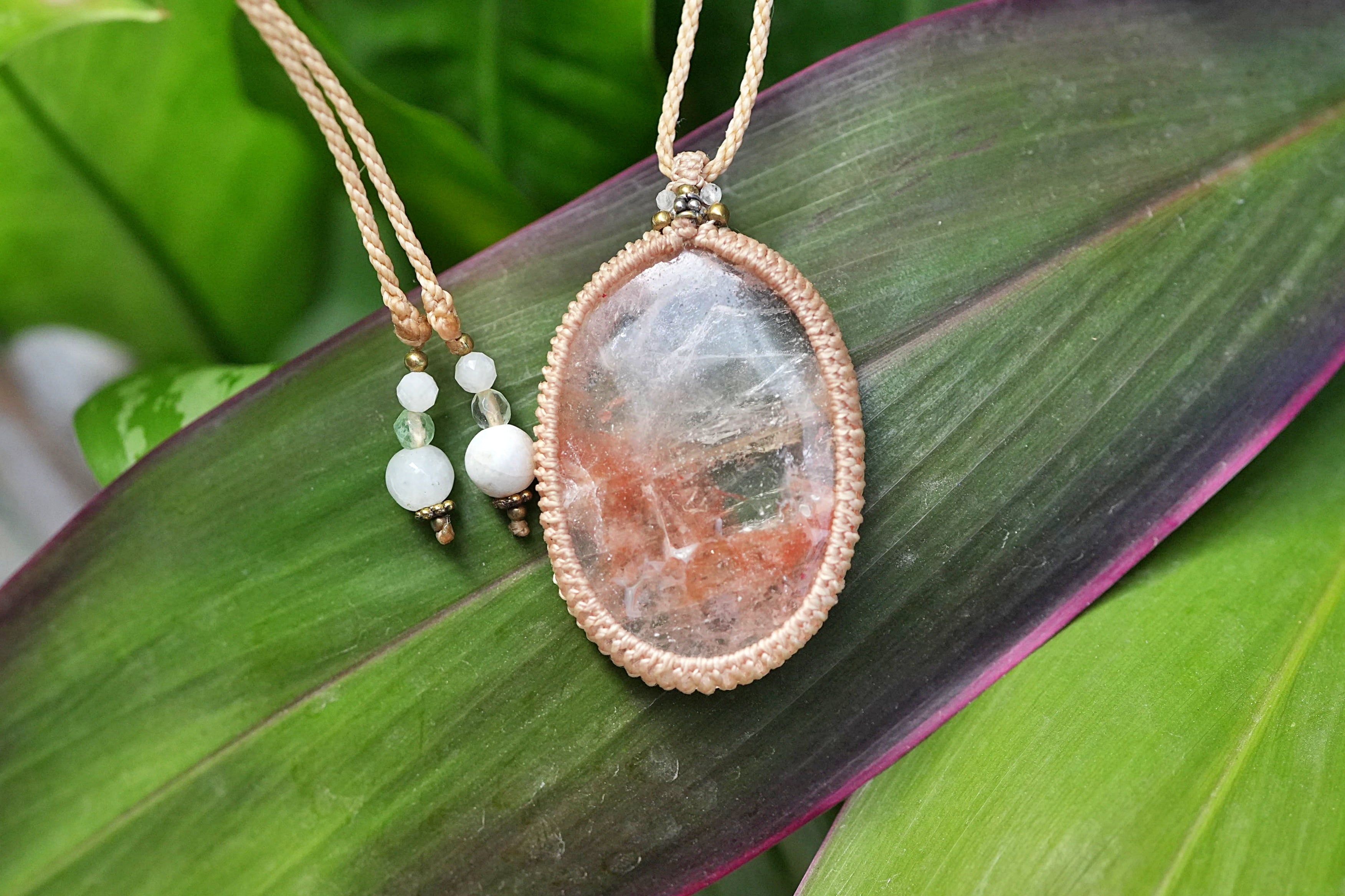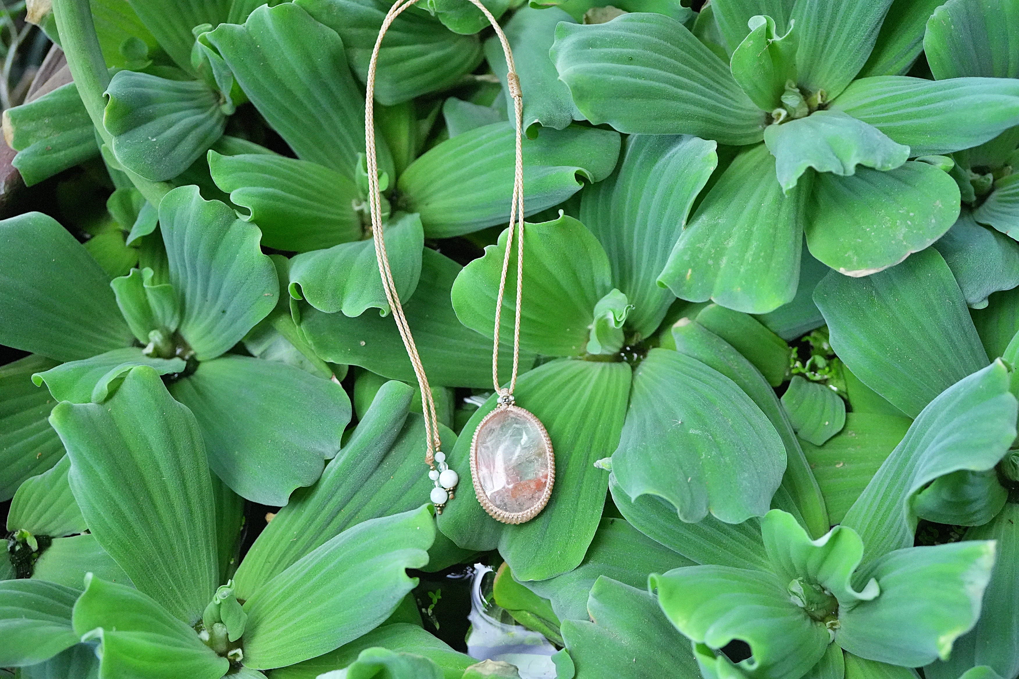 大粒果実★ヘマタイトインクォーツ マクラメネックレス2616