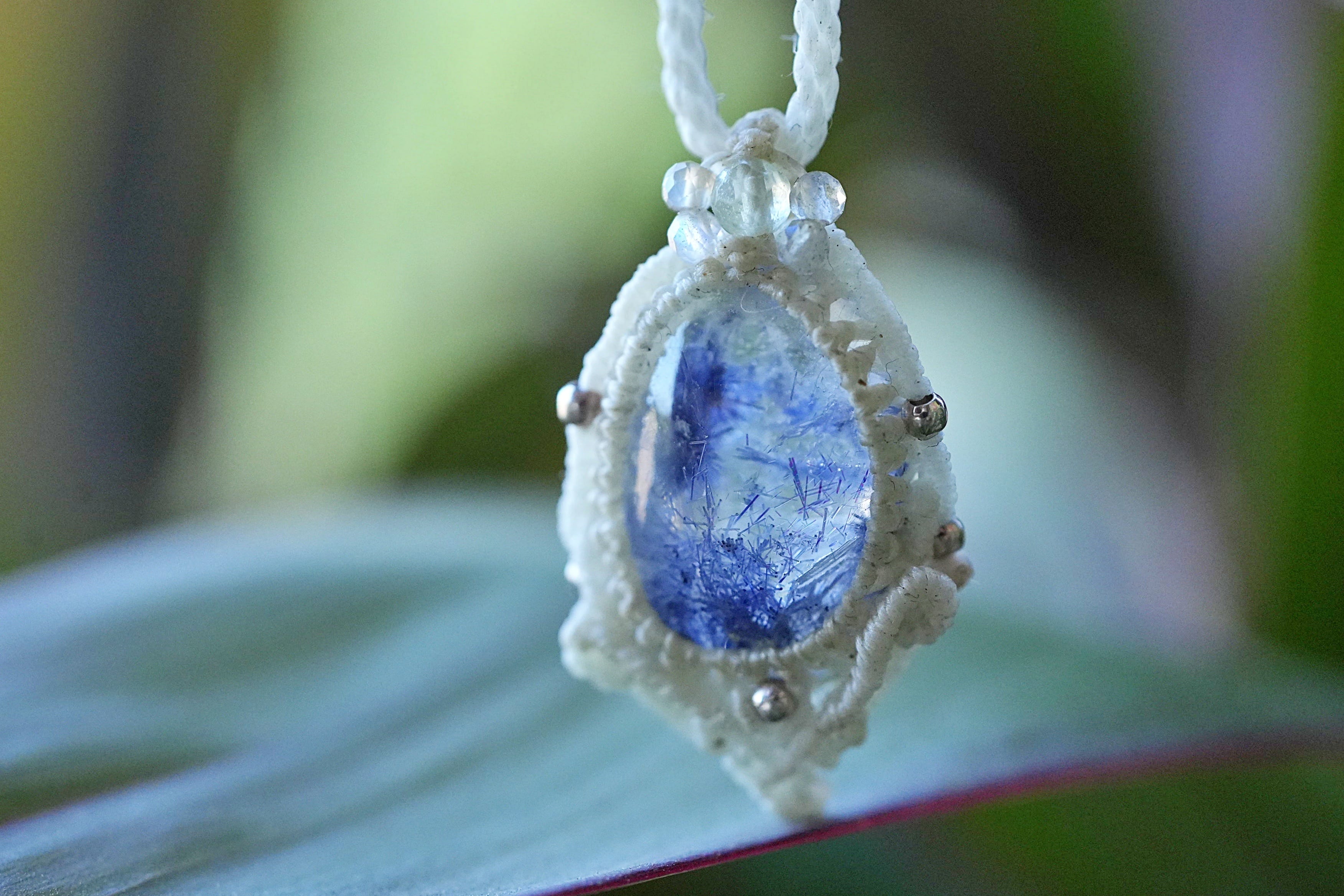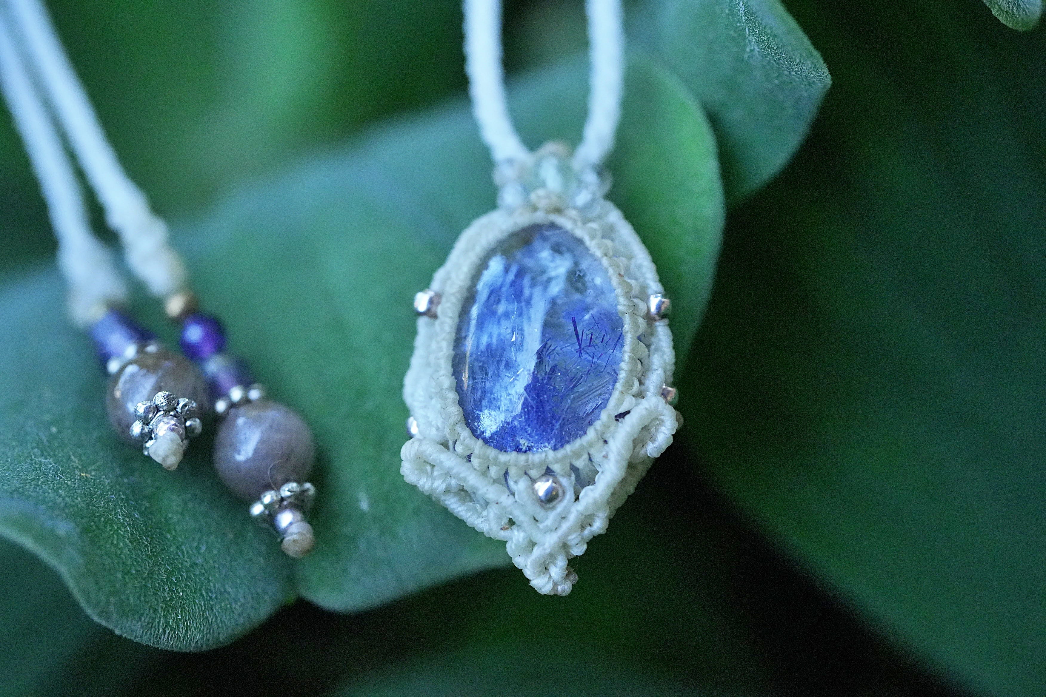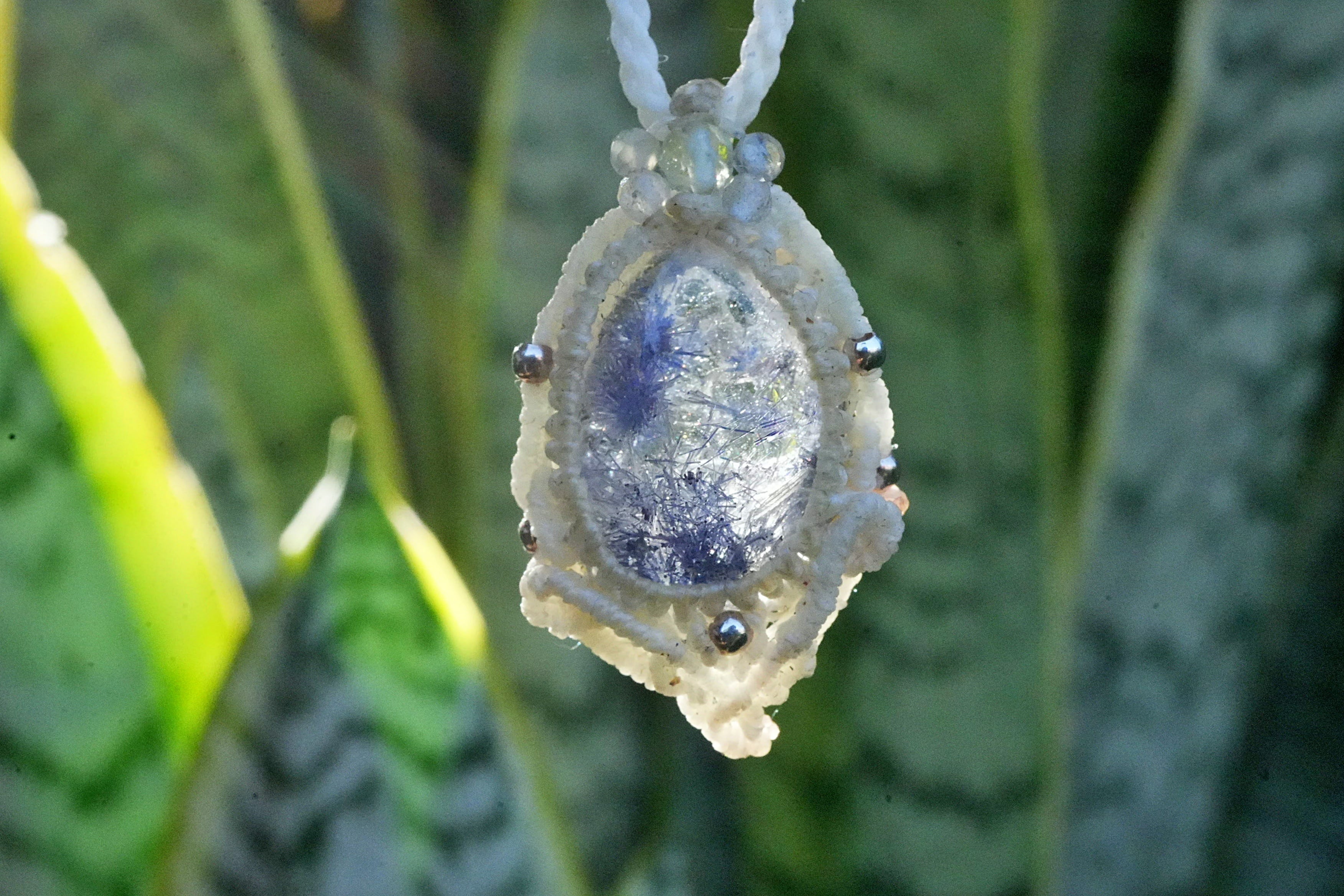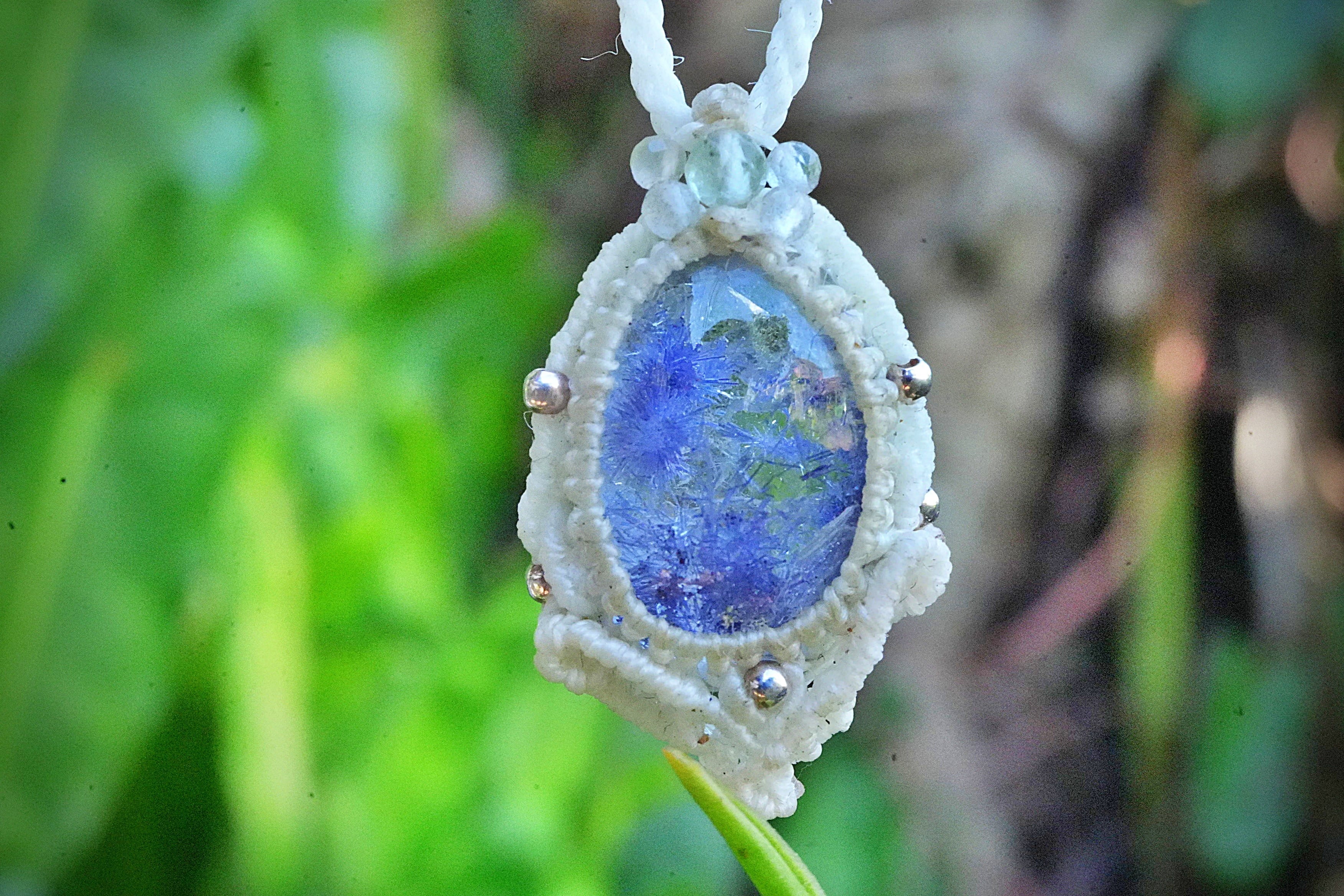 蒼マリモ★デュモルチェライトインクォーツ マクラメネックレス2620