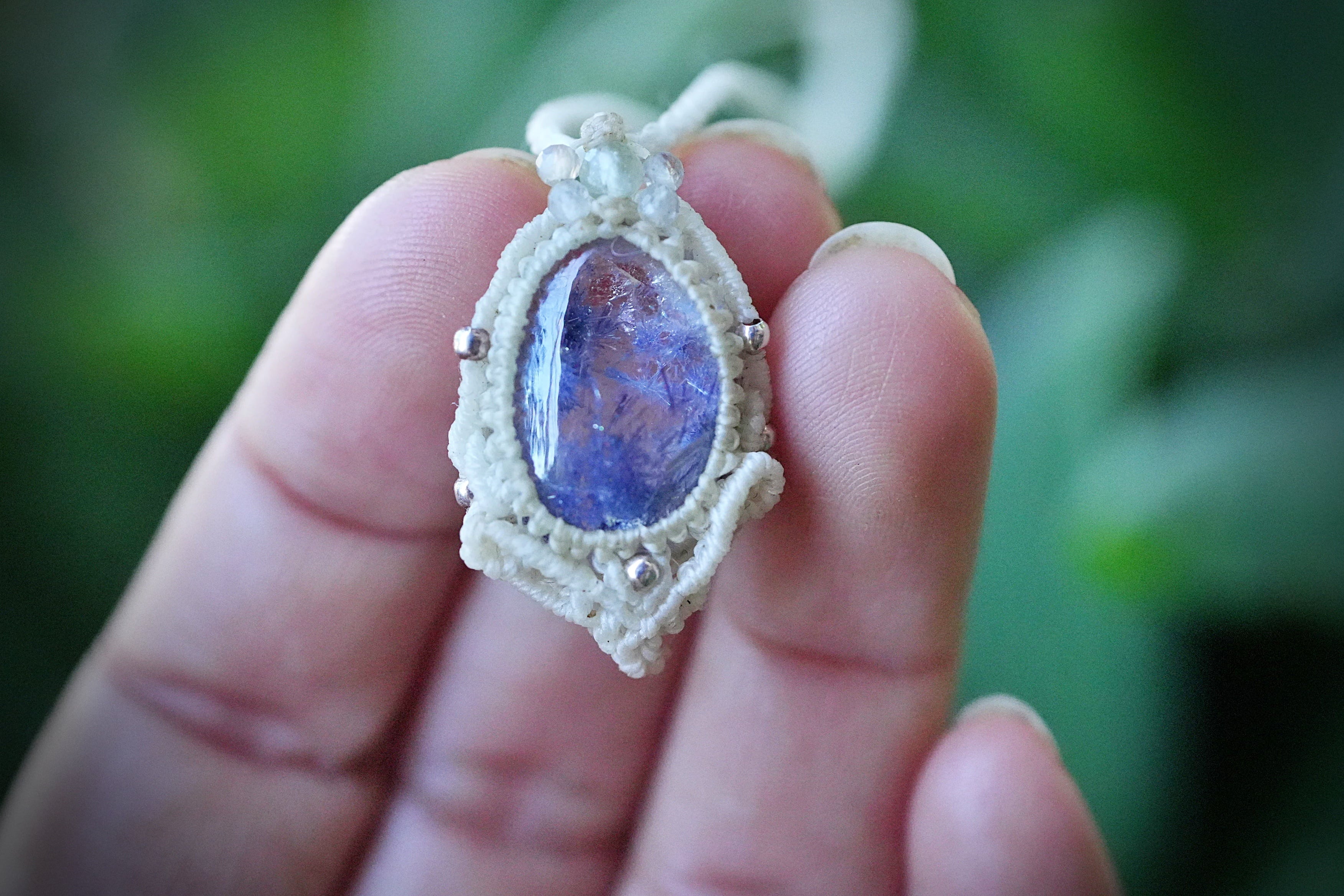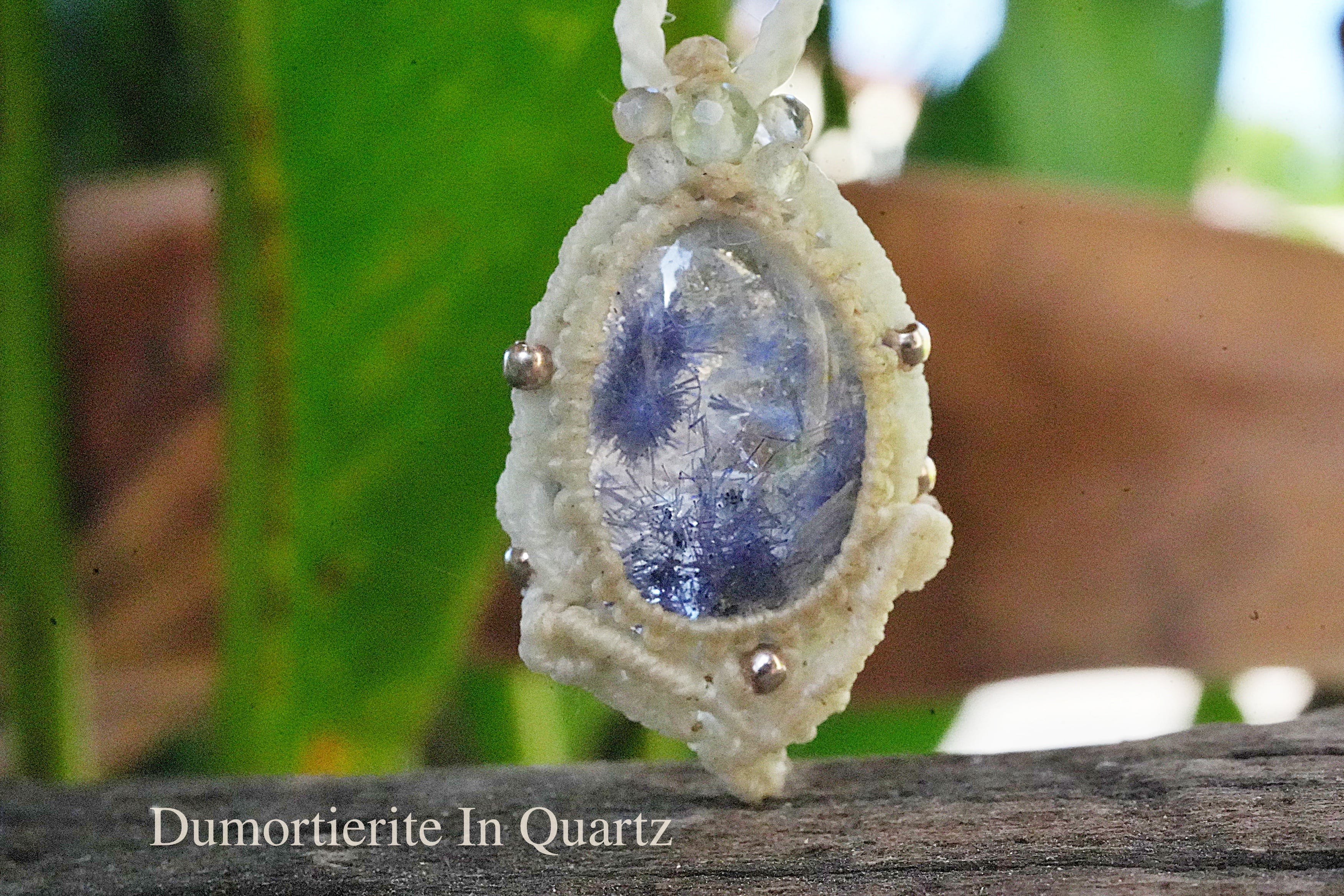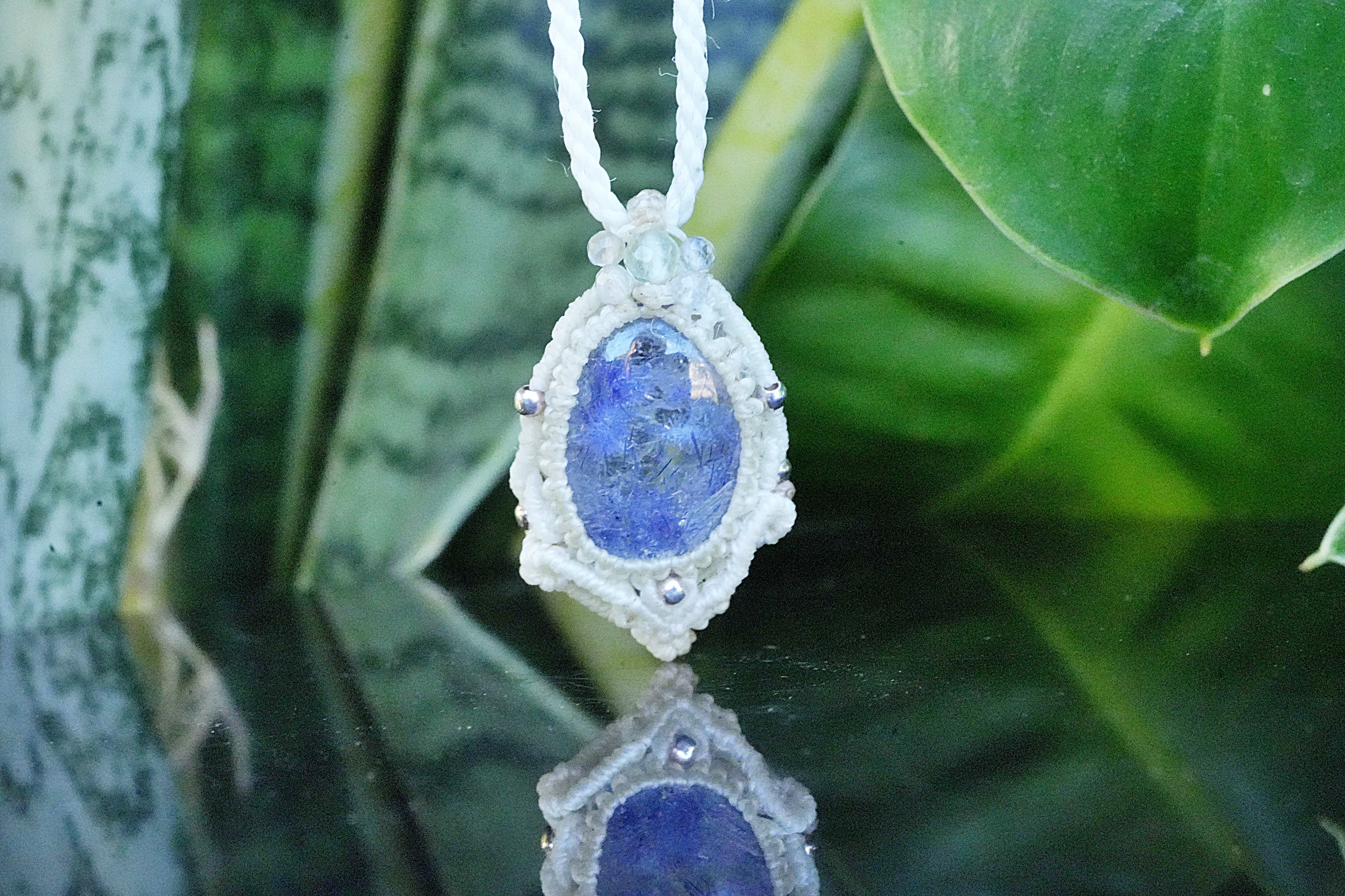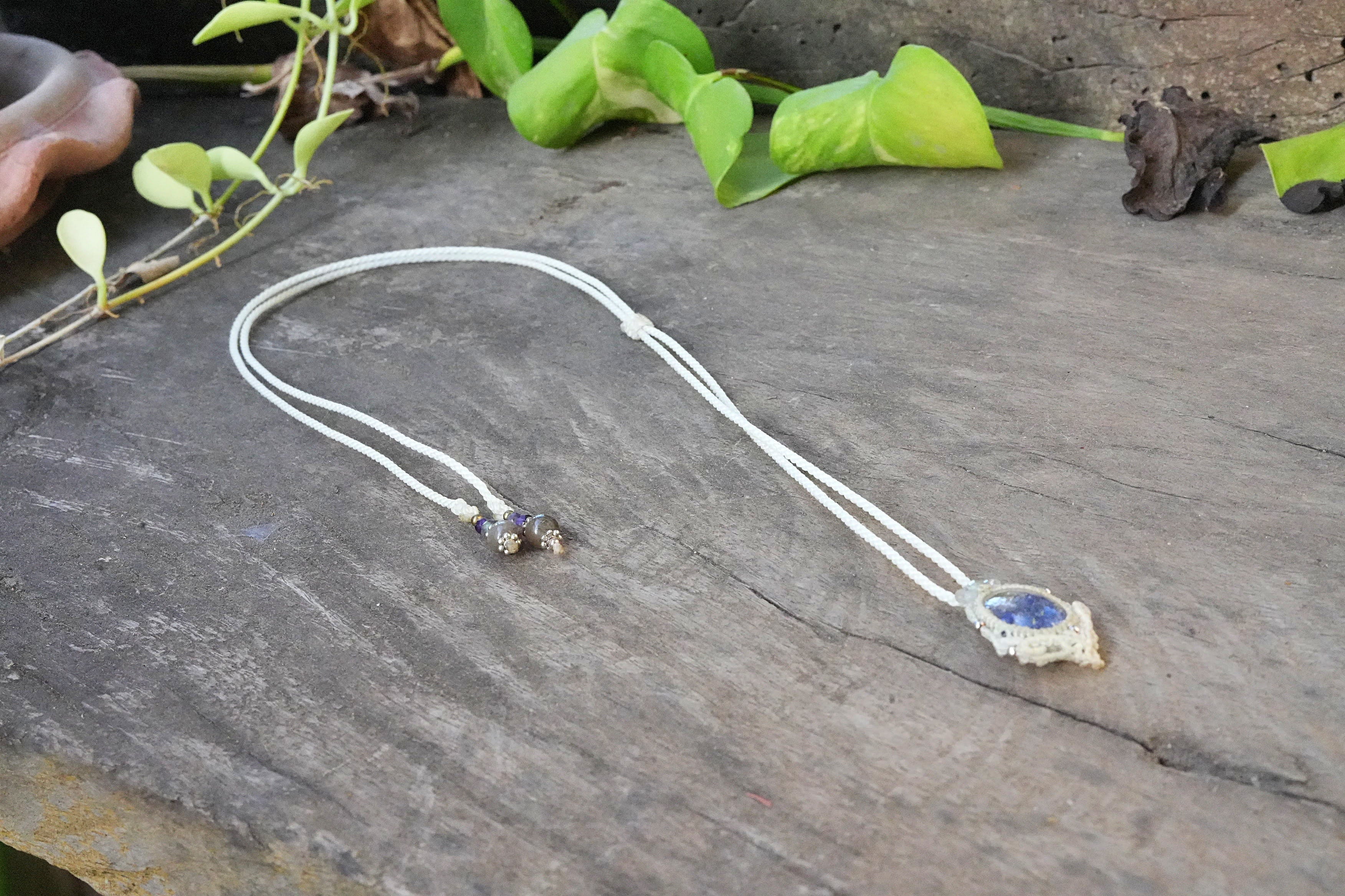 蒼マリモ★デュモルチェライトインクォーツ マクラメネックレス2620