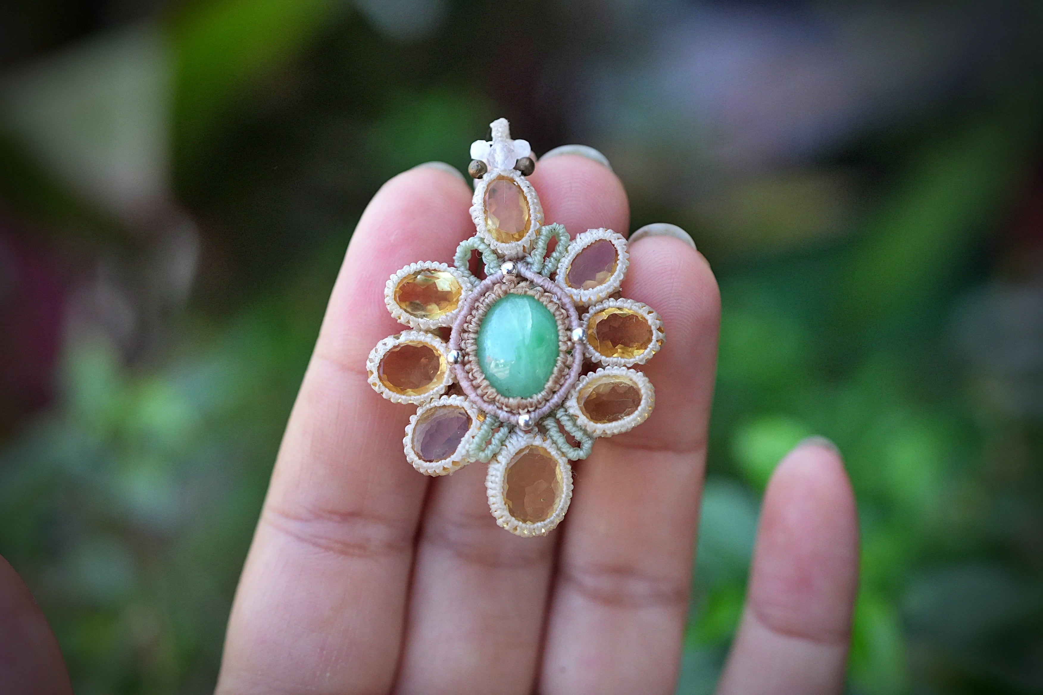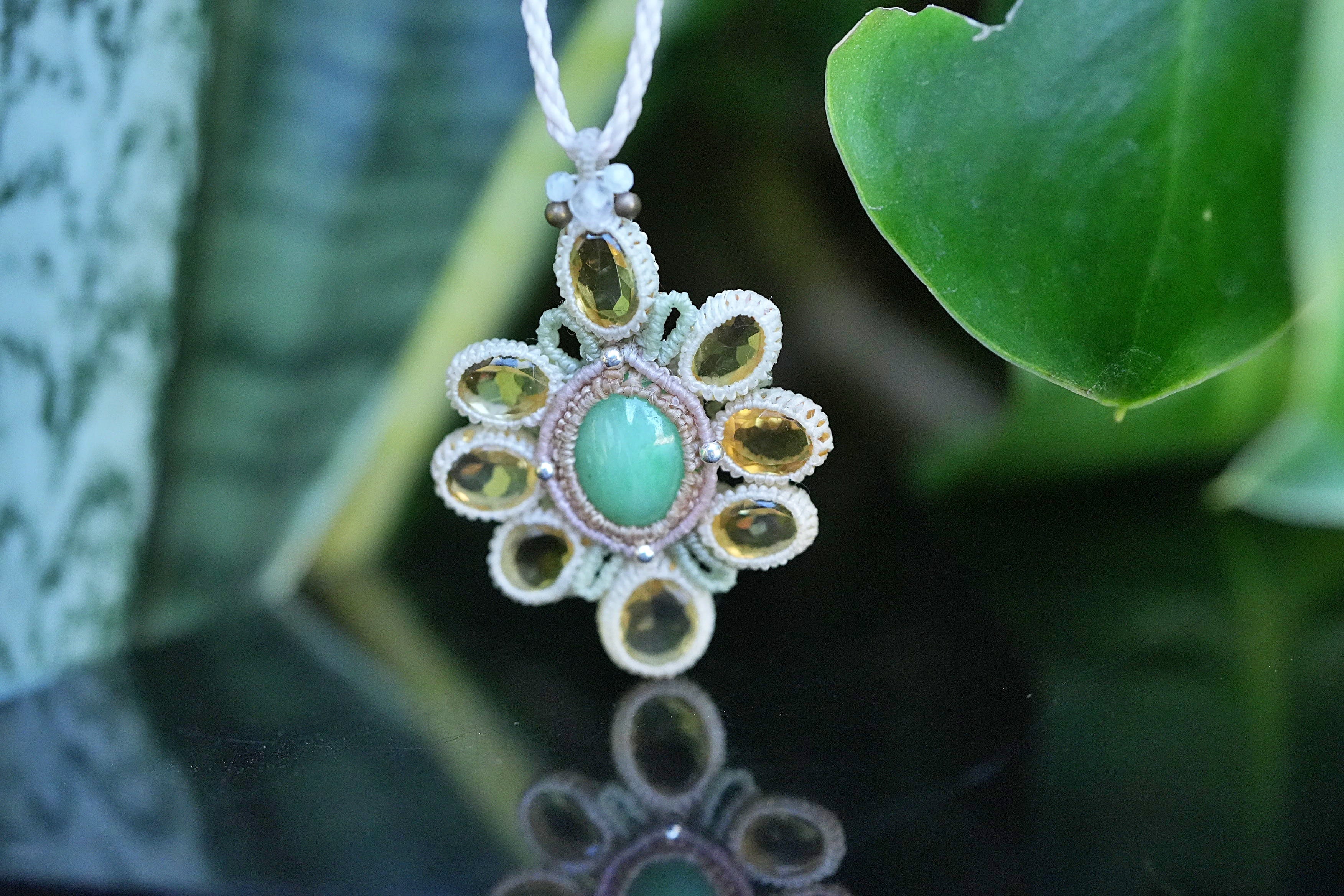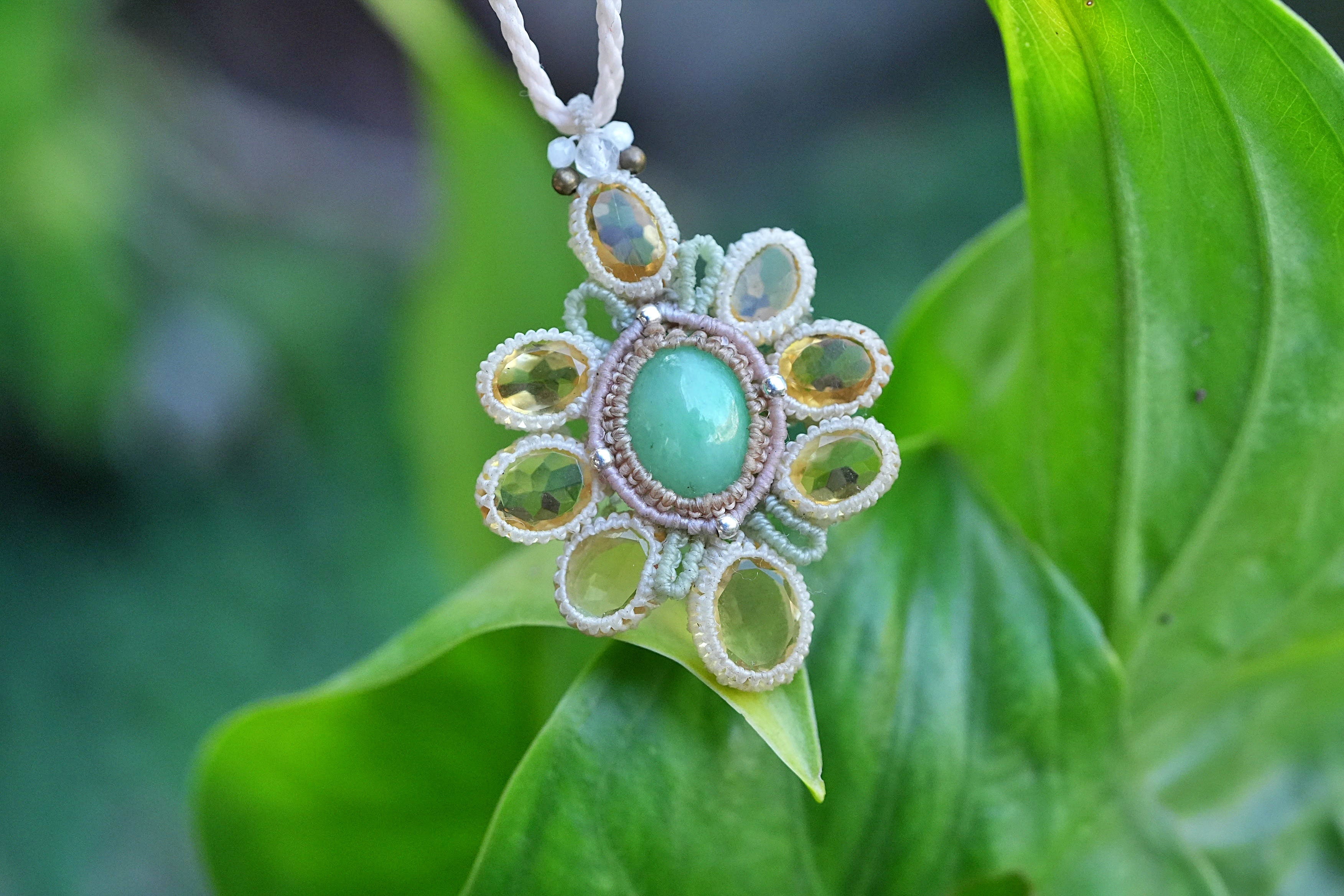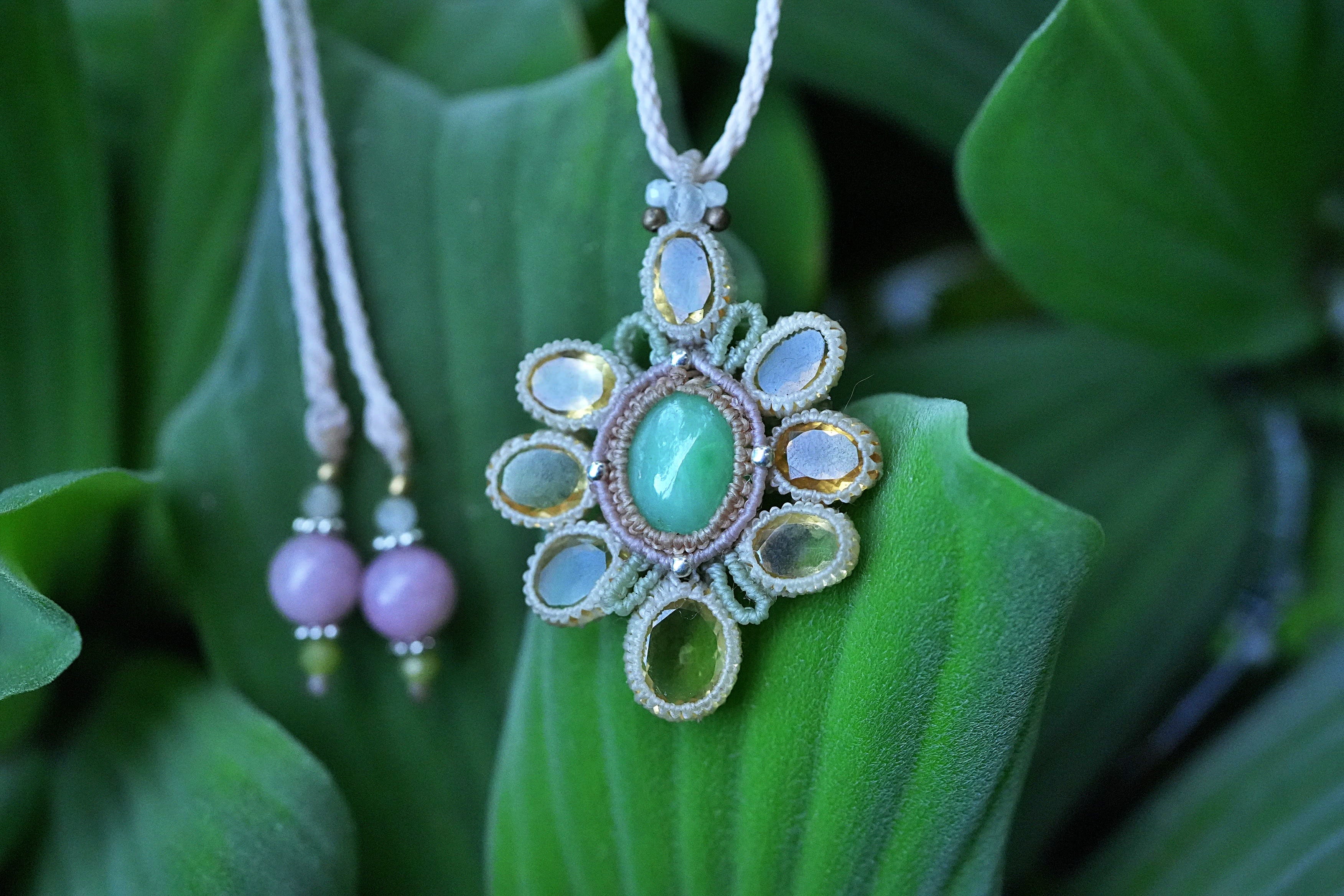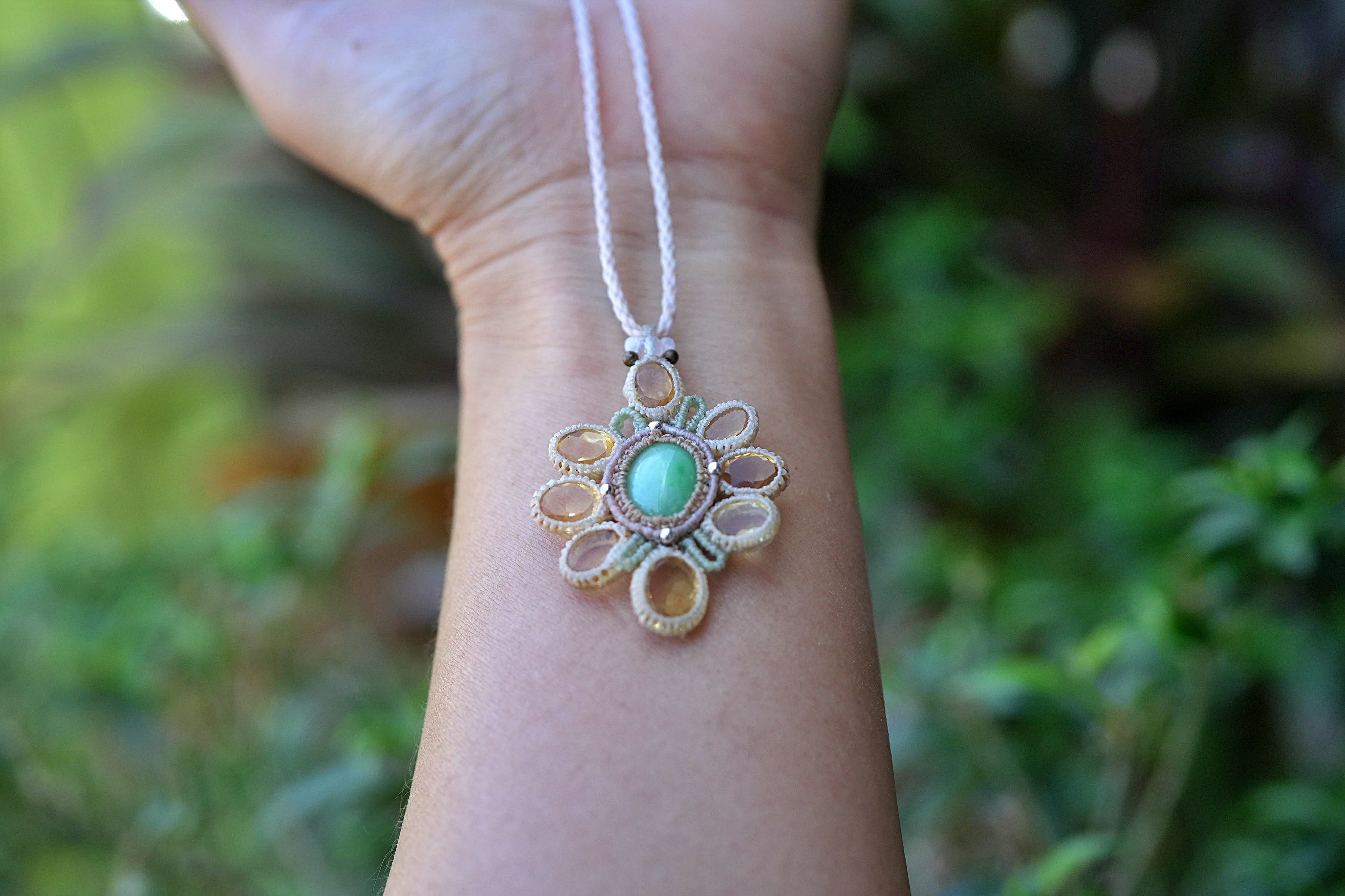 春の花★翡翠★Jede シトリン★ネックレス 2619