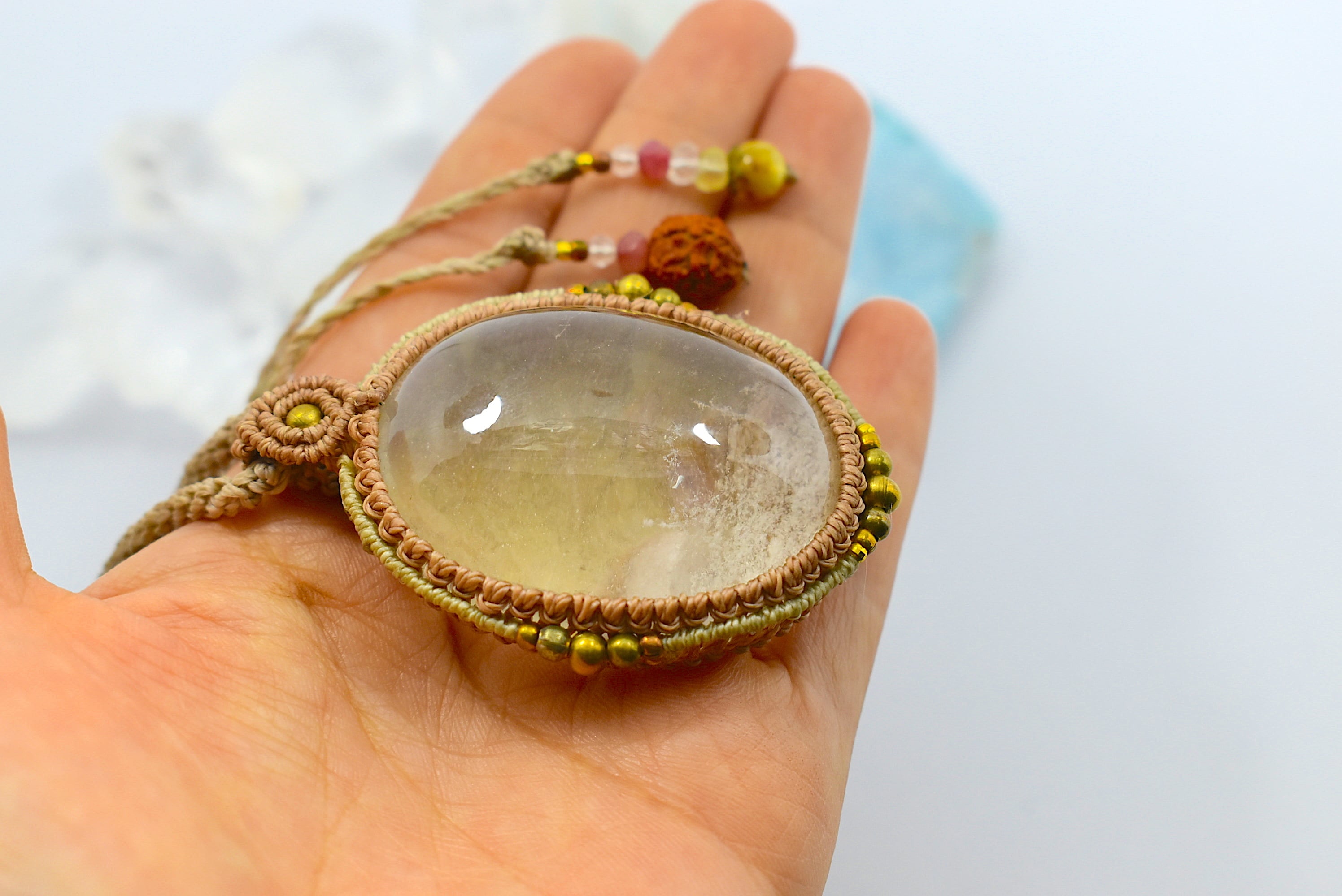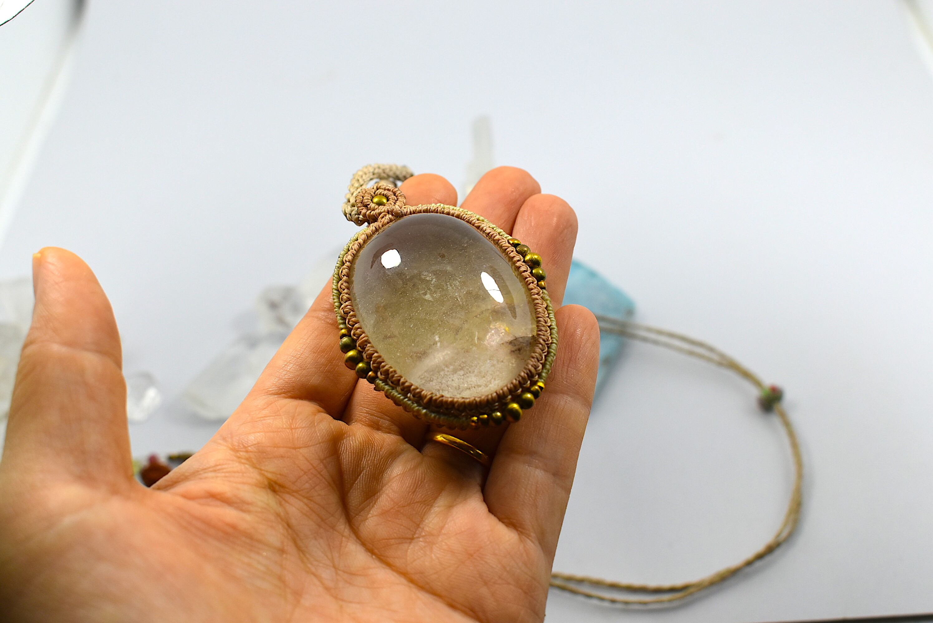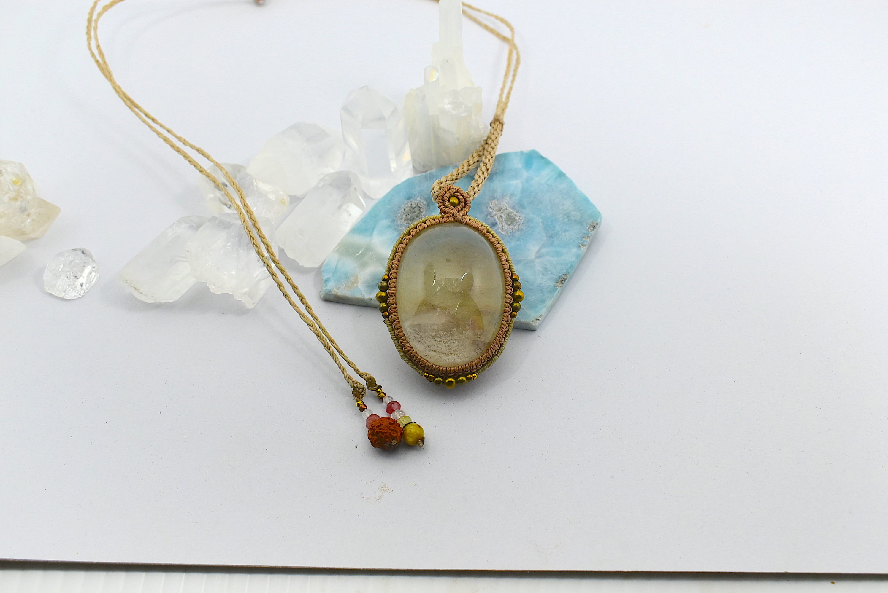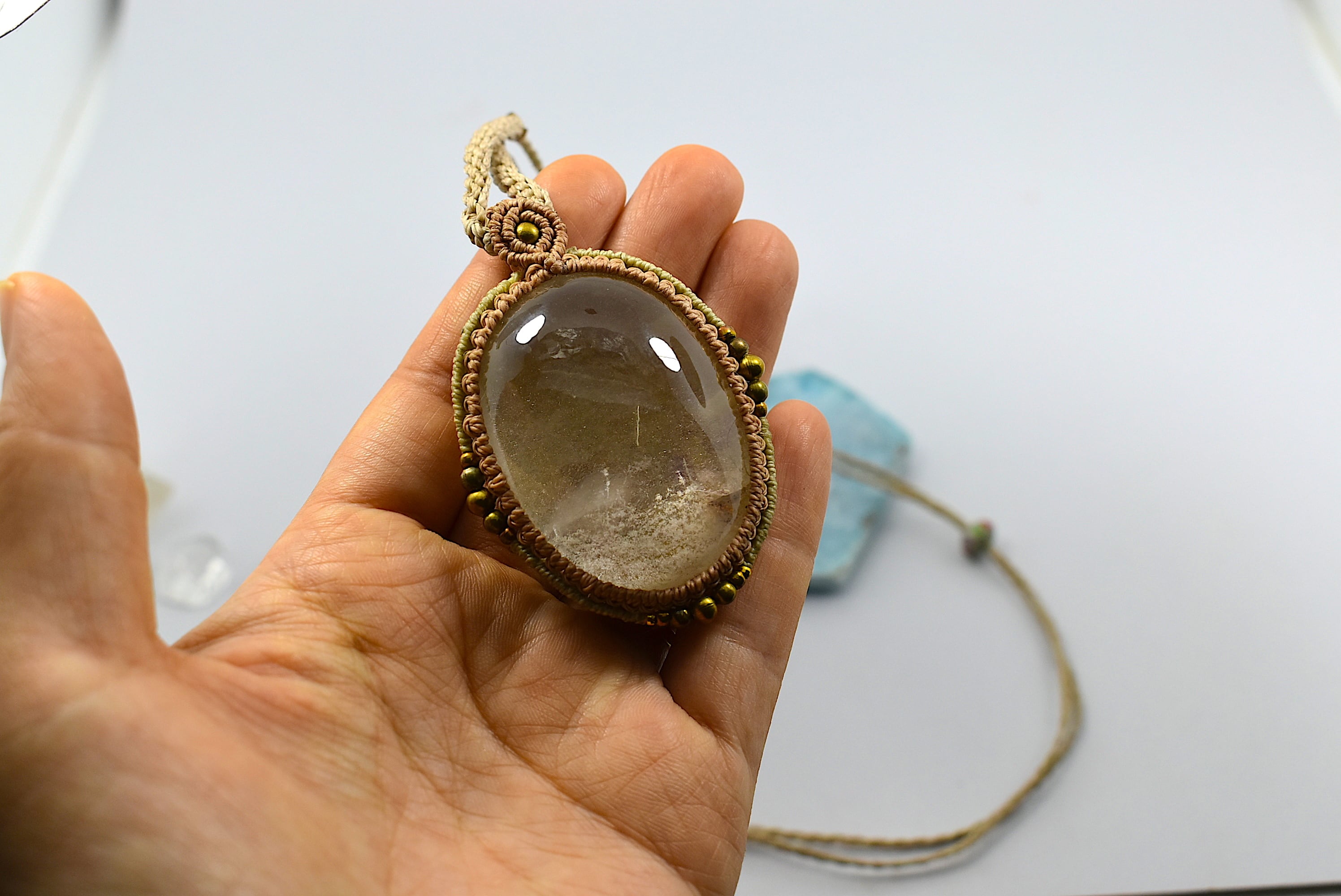 ピンクの幻想★ガーデンクォーツ マクラメペンダント