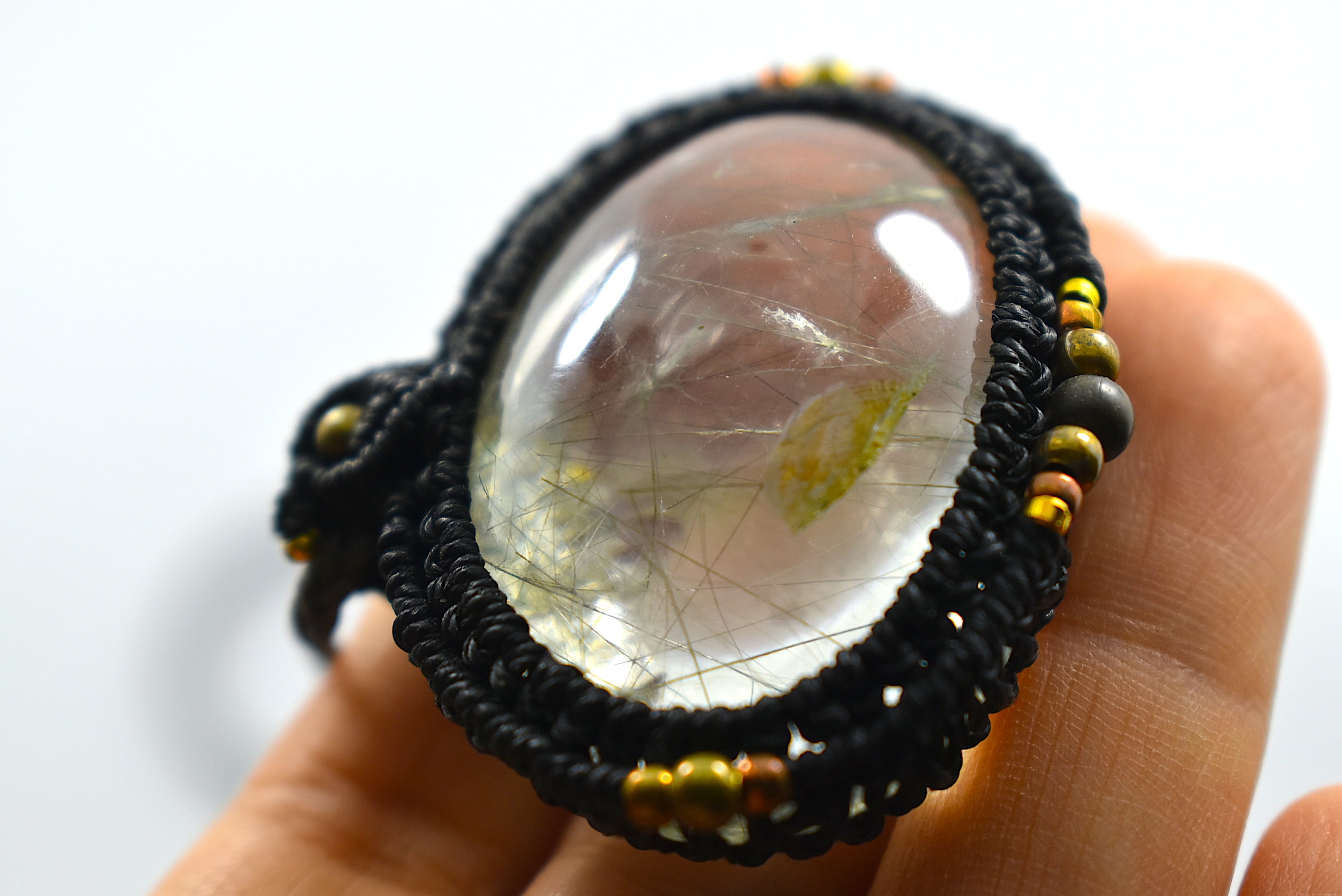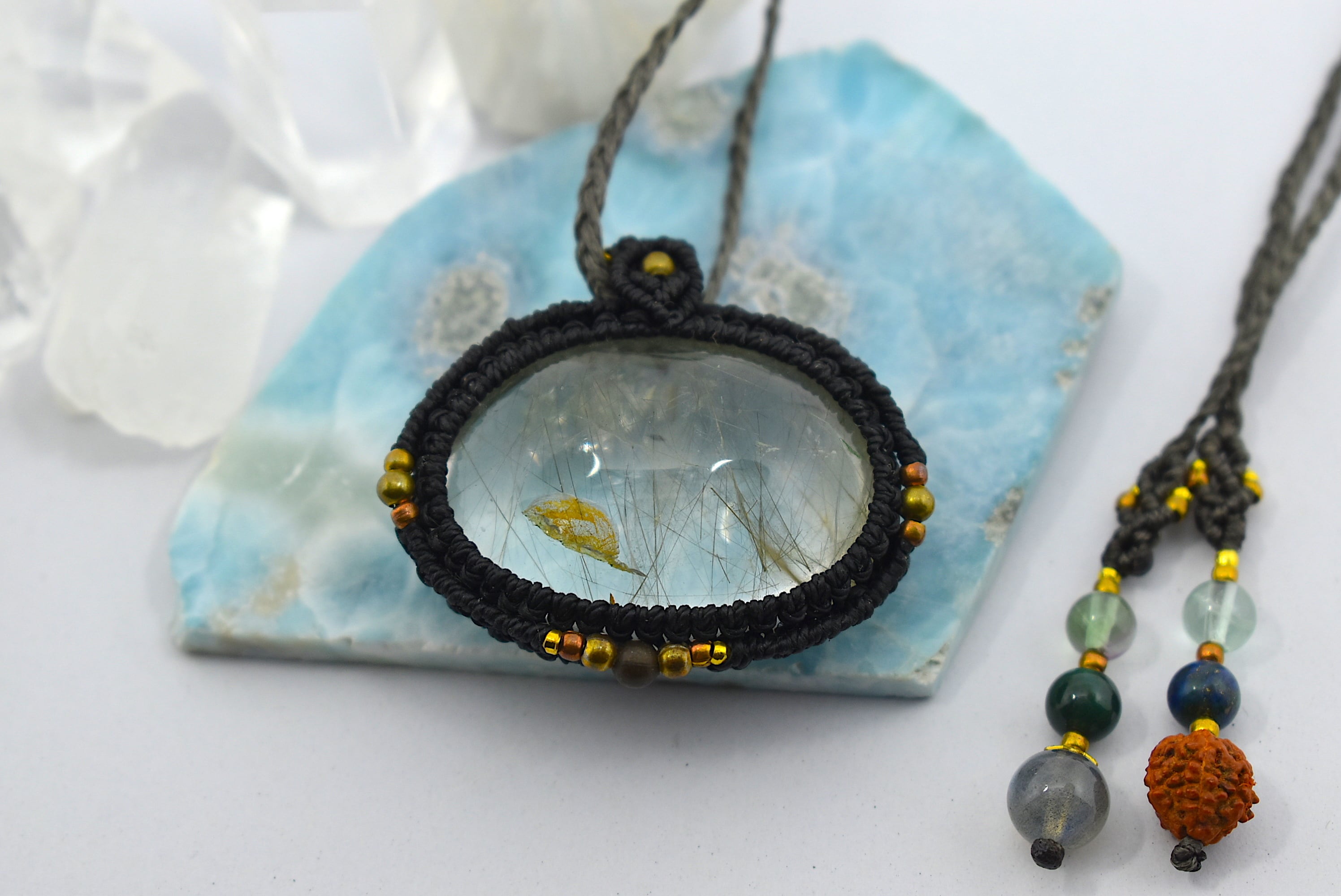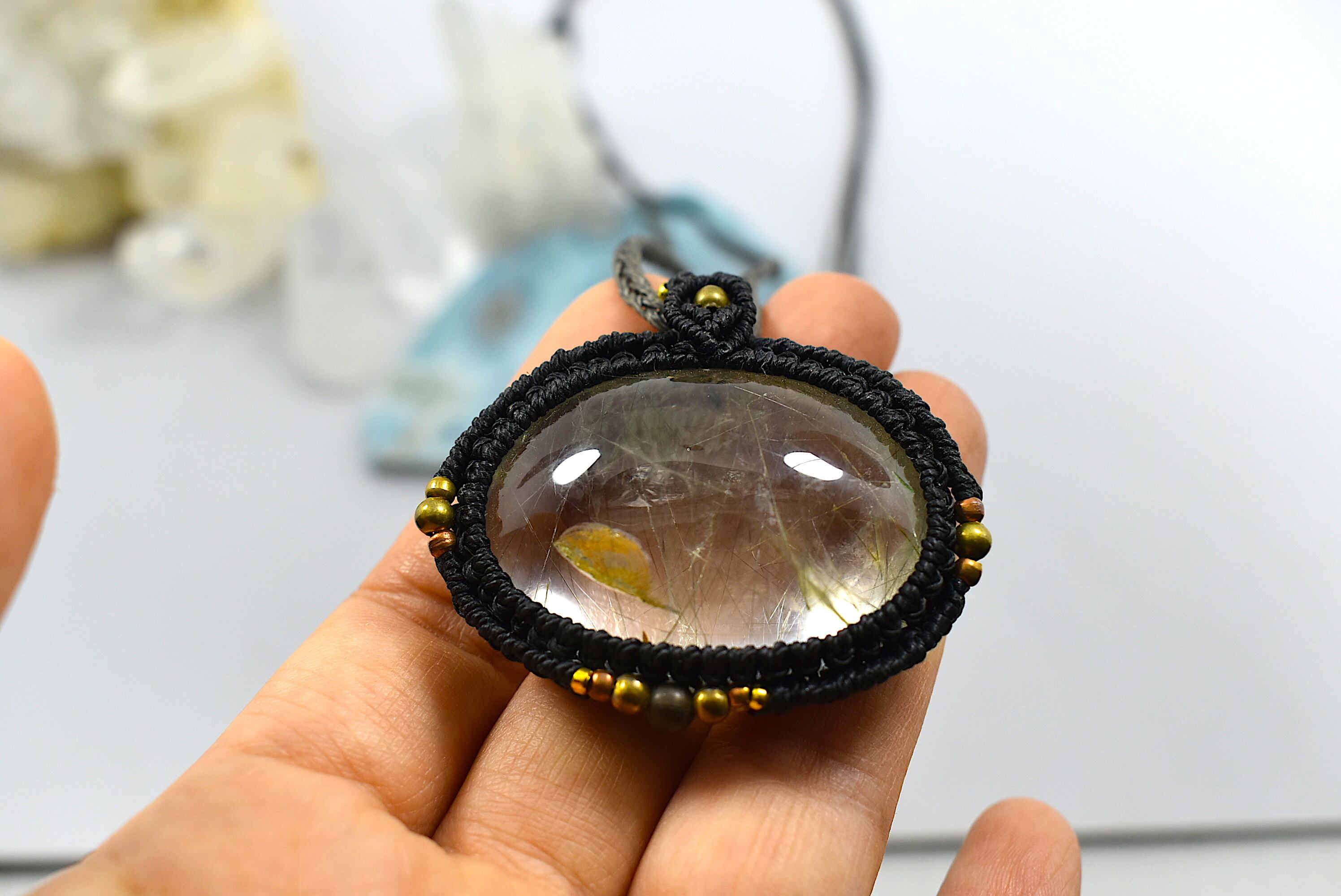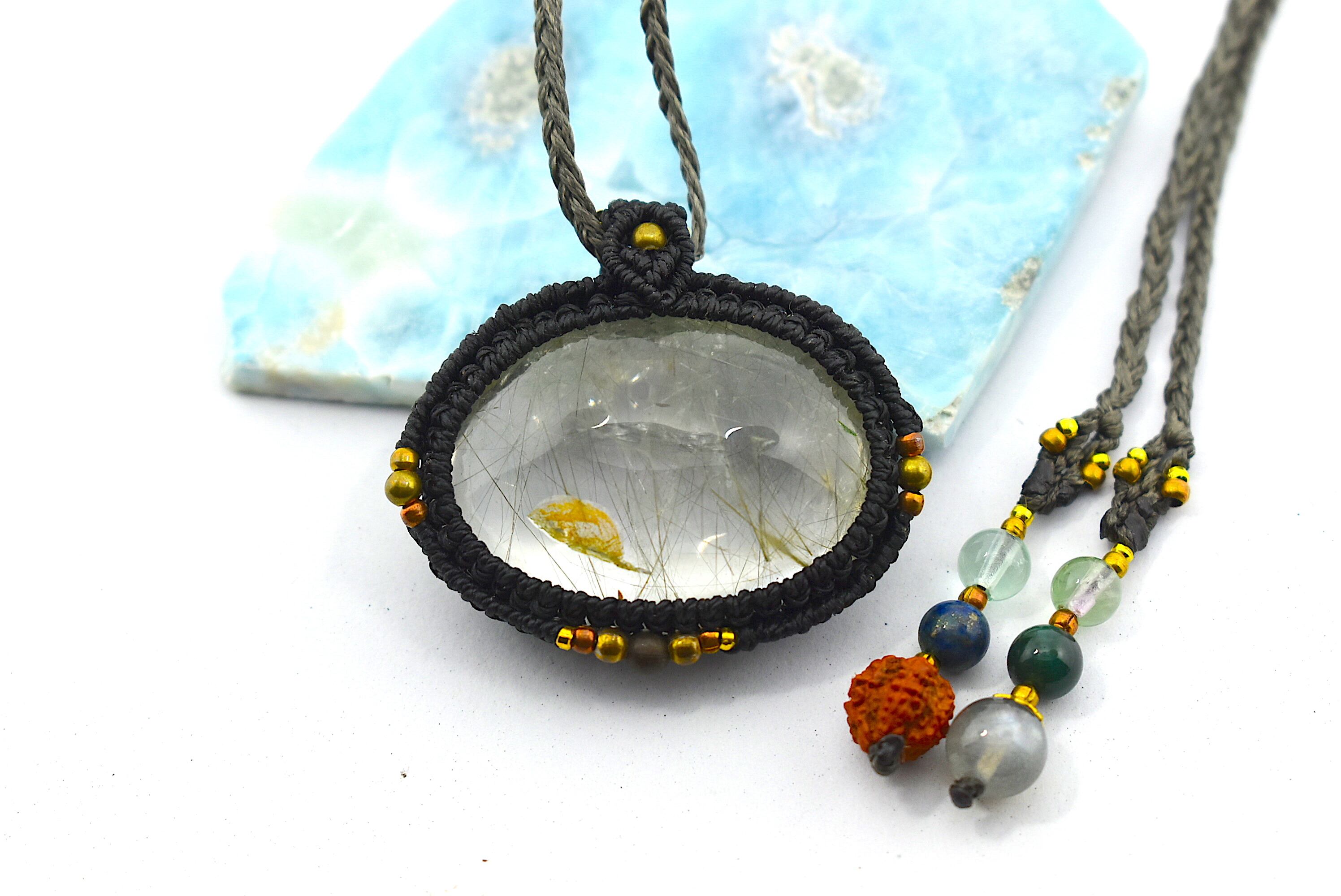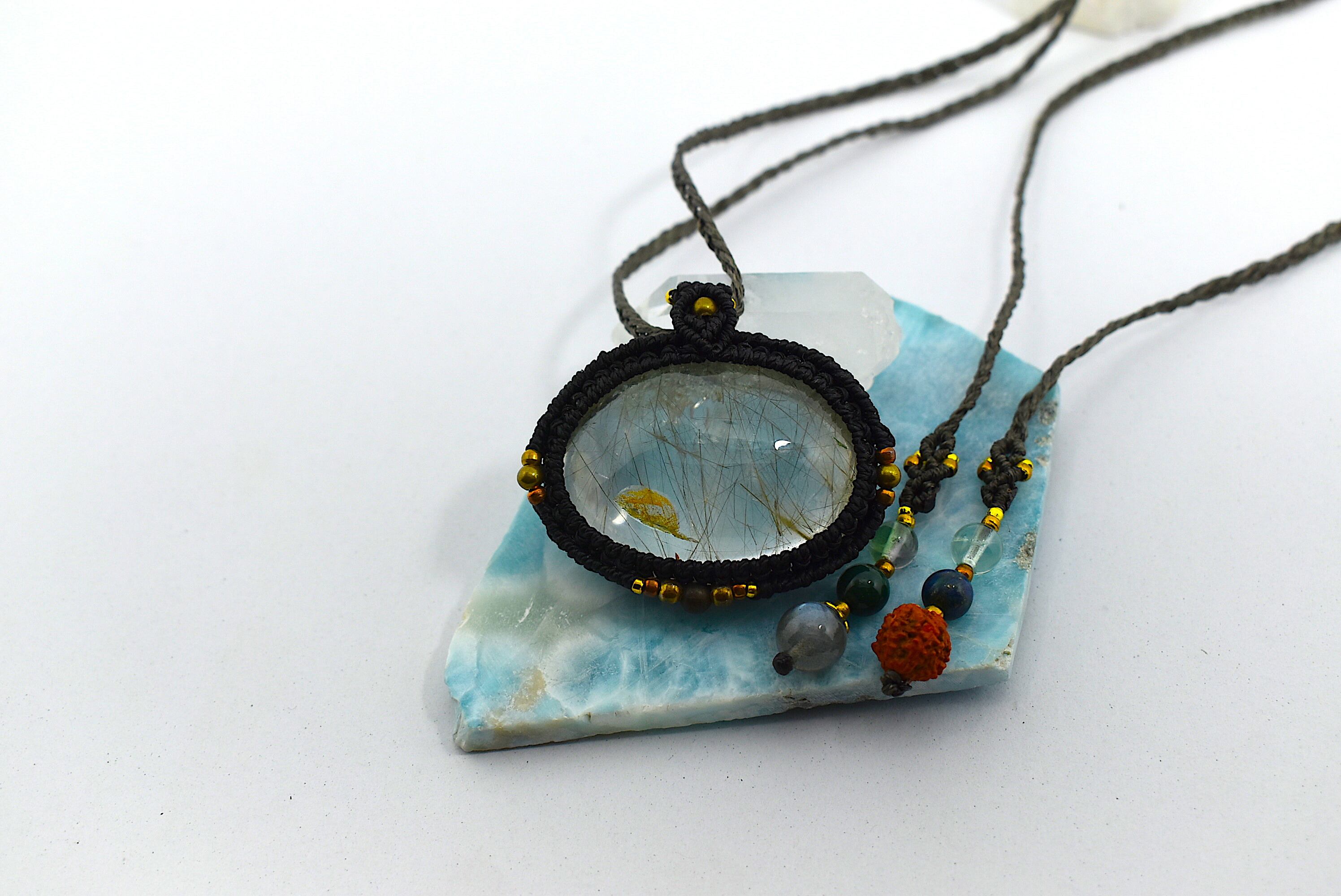 レア★お庭とルチルのMix★ガーデンクォーツ マクラメペンダント