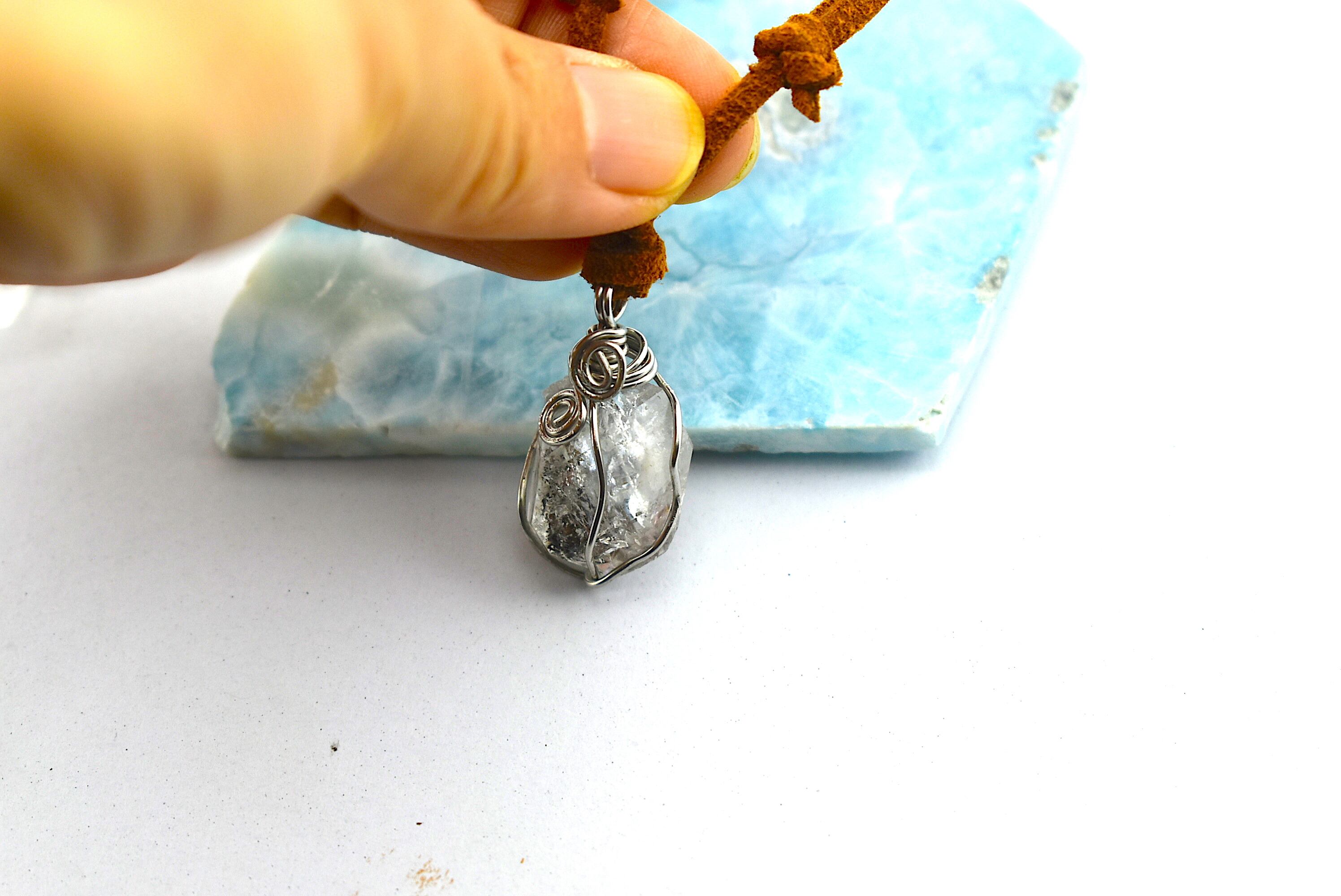 自然の原石の天然石の形をフォローしたワイヤーワークをお楽しみください。