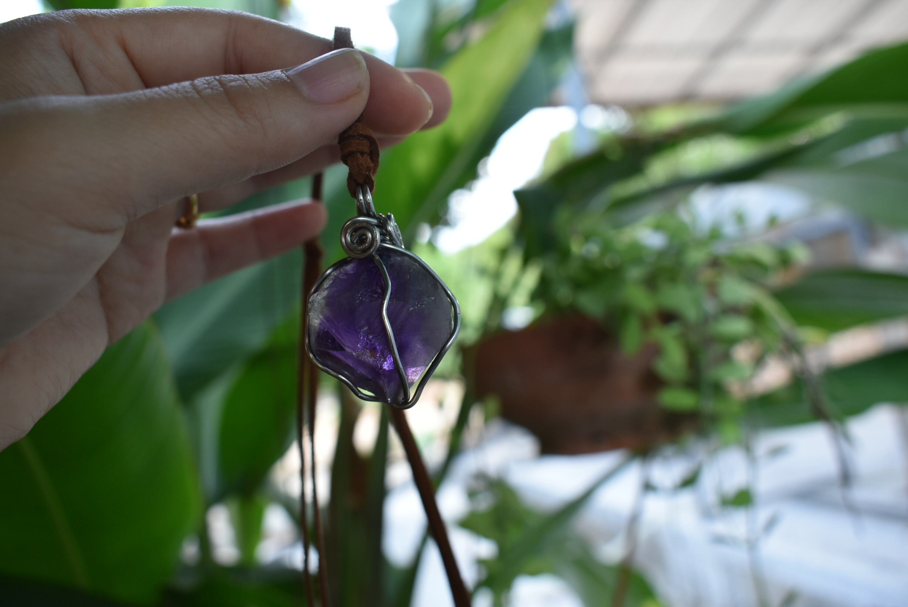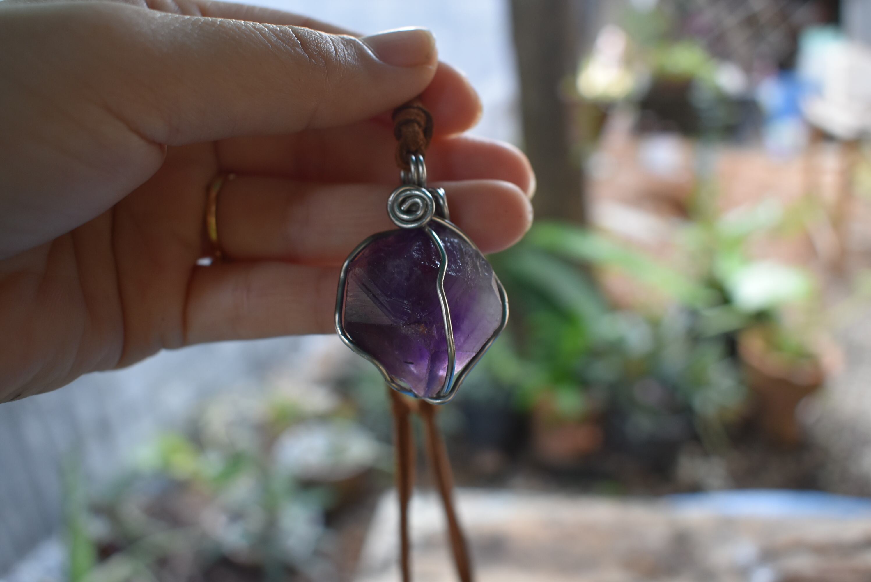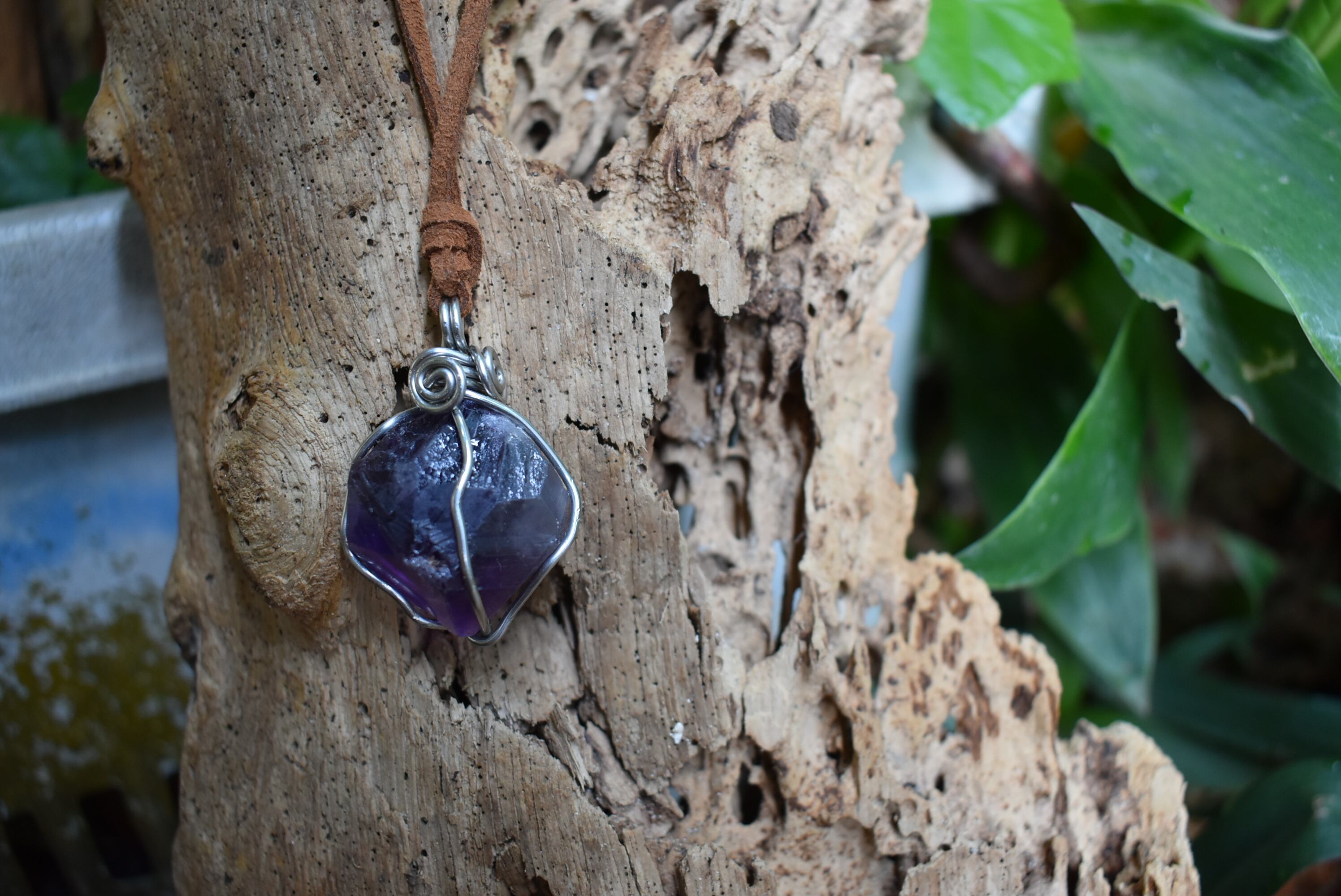 自然の原石の天然石の形をフォローしたワイヤーワークをお楽しみください。