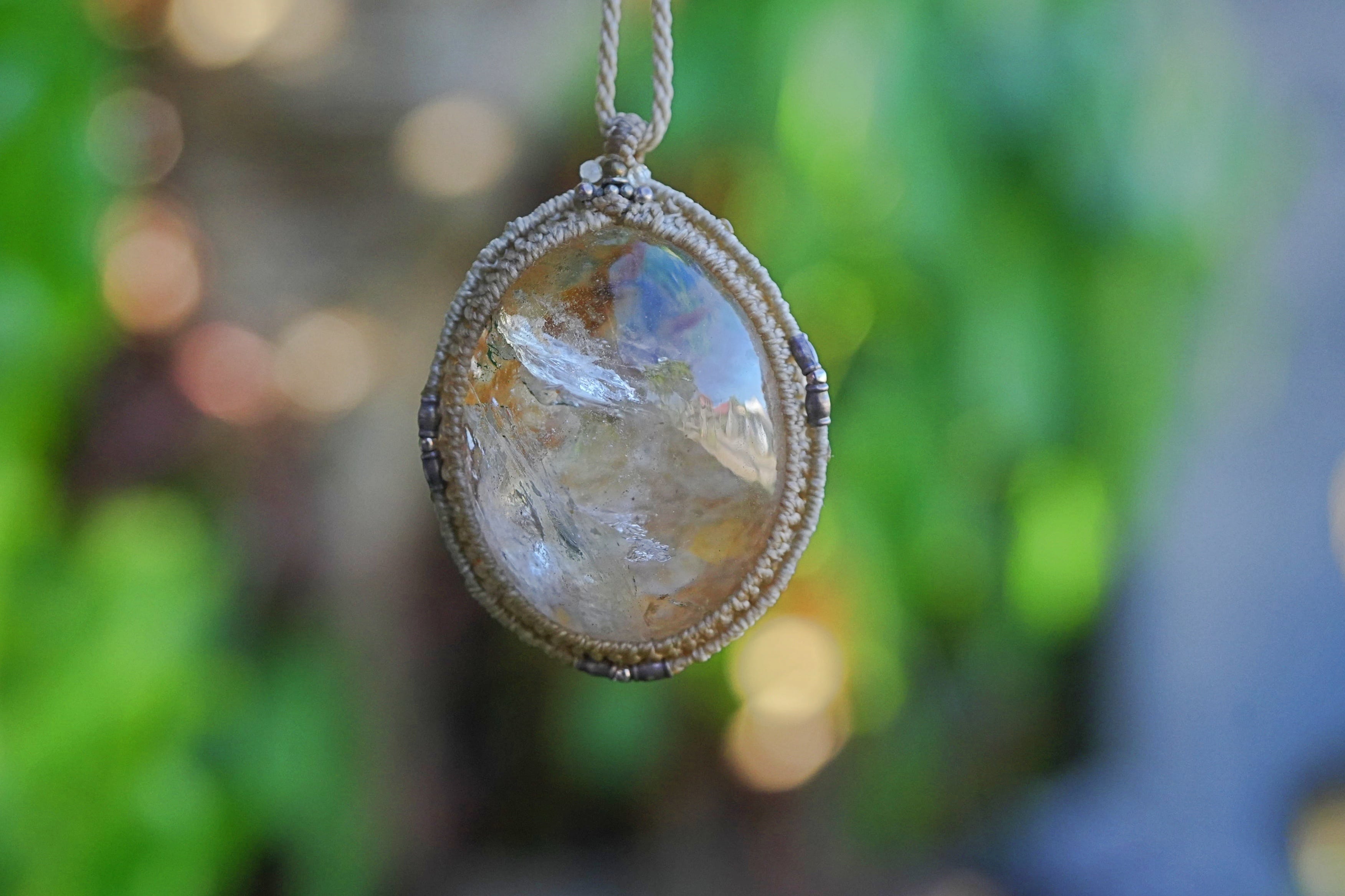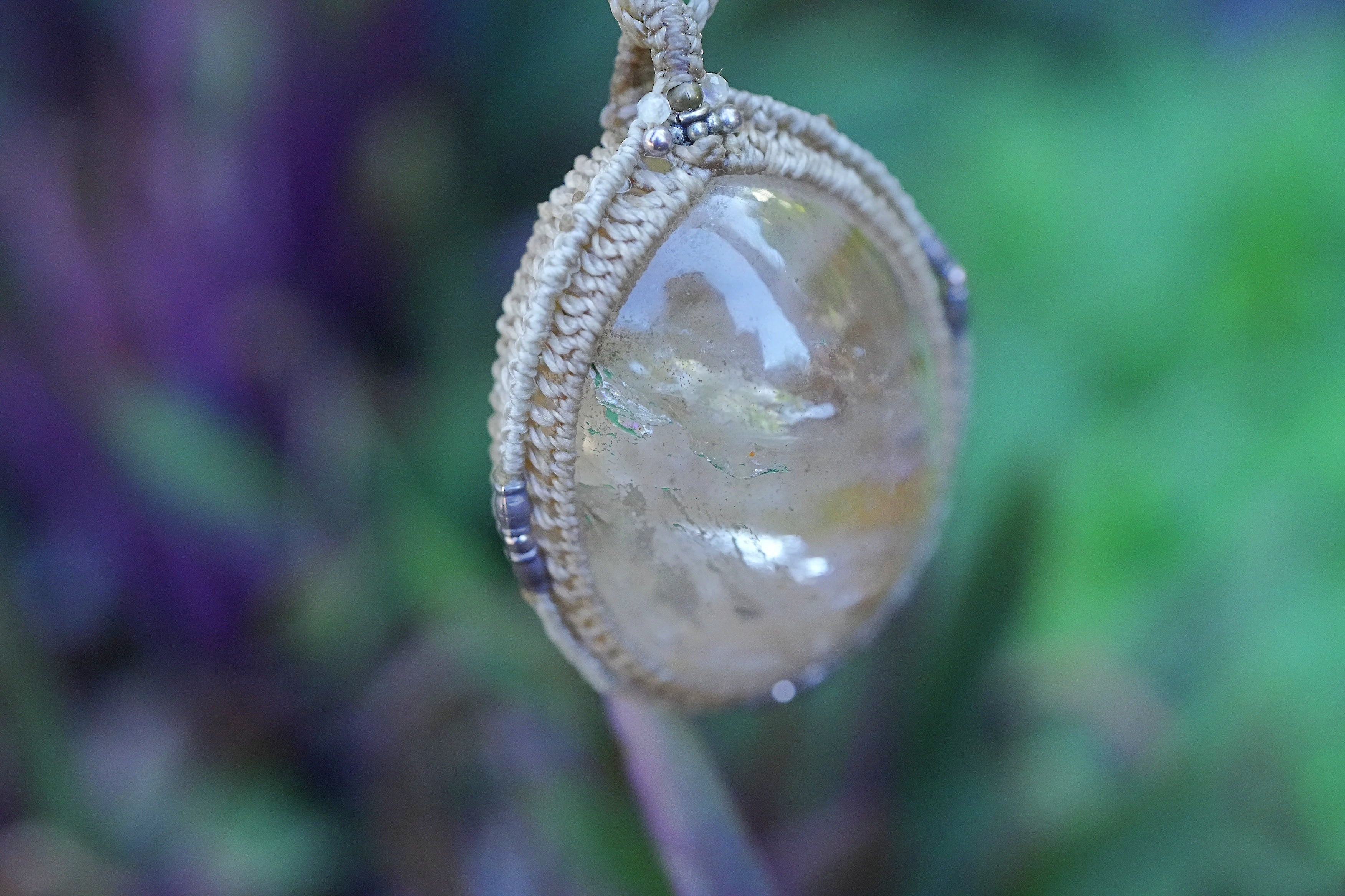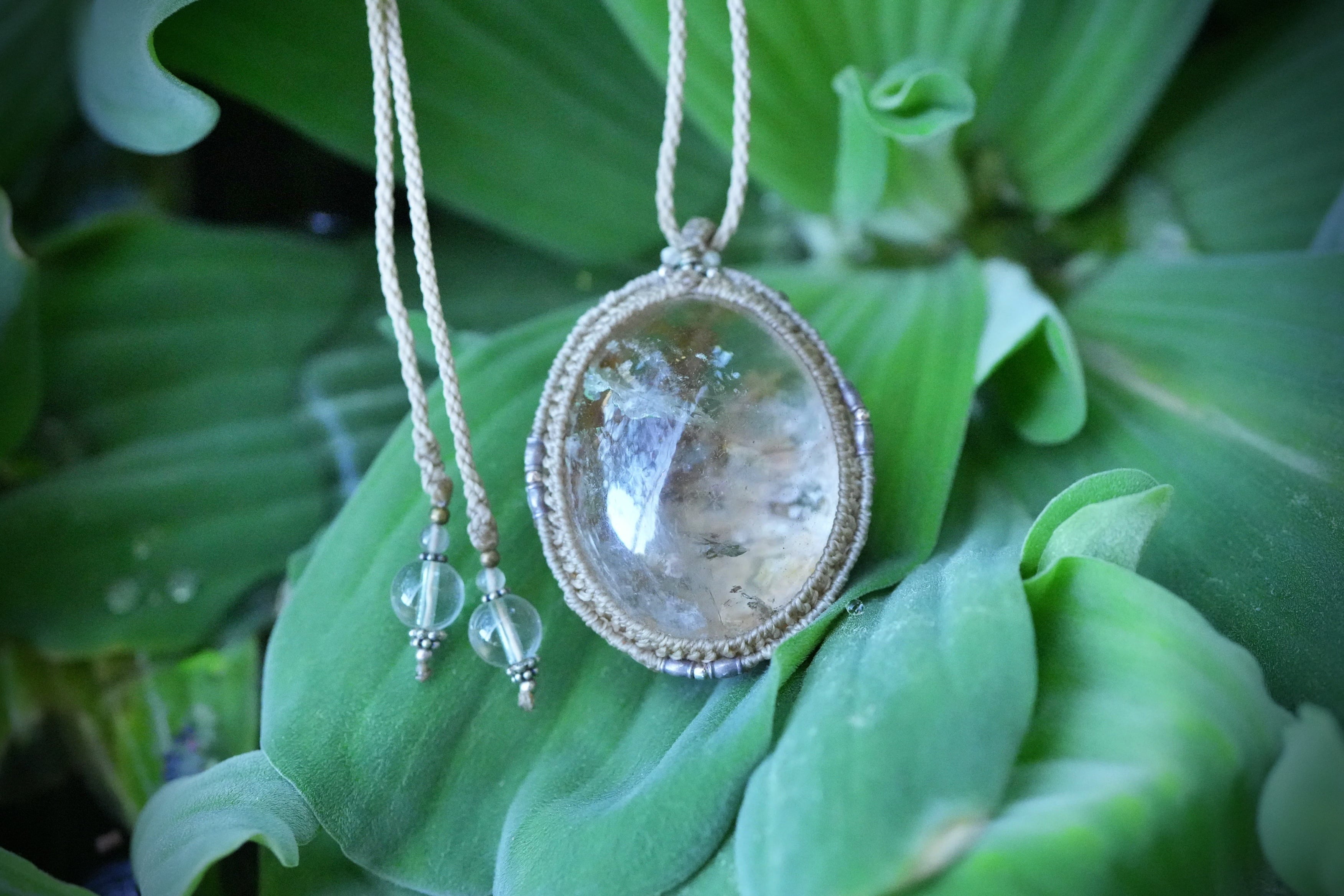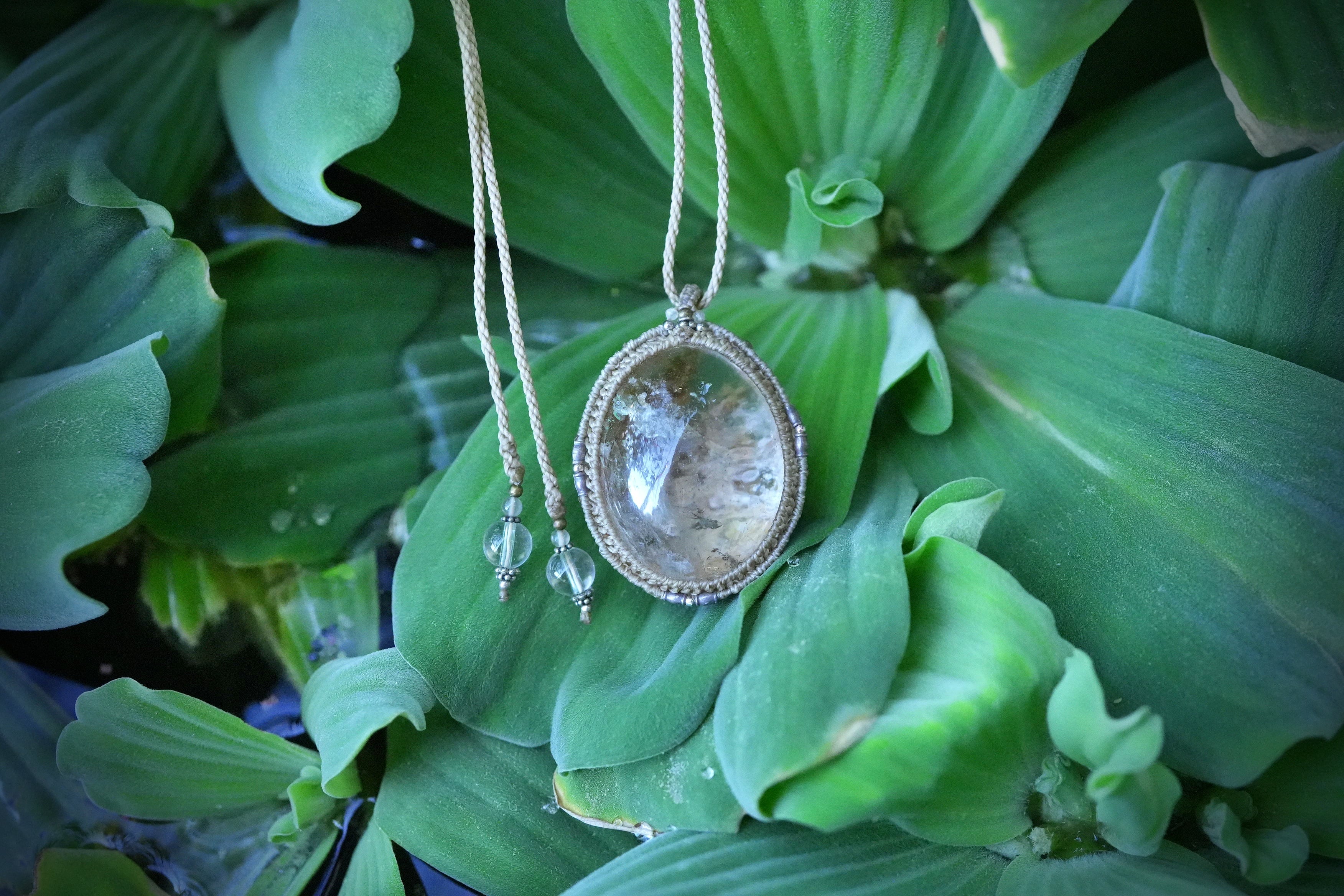 大粒ぷっくり氷と黄金★ガーデンクォーツ マクラメネックレス2622