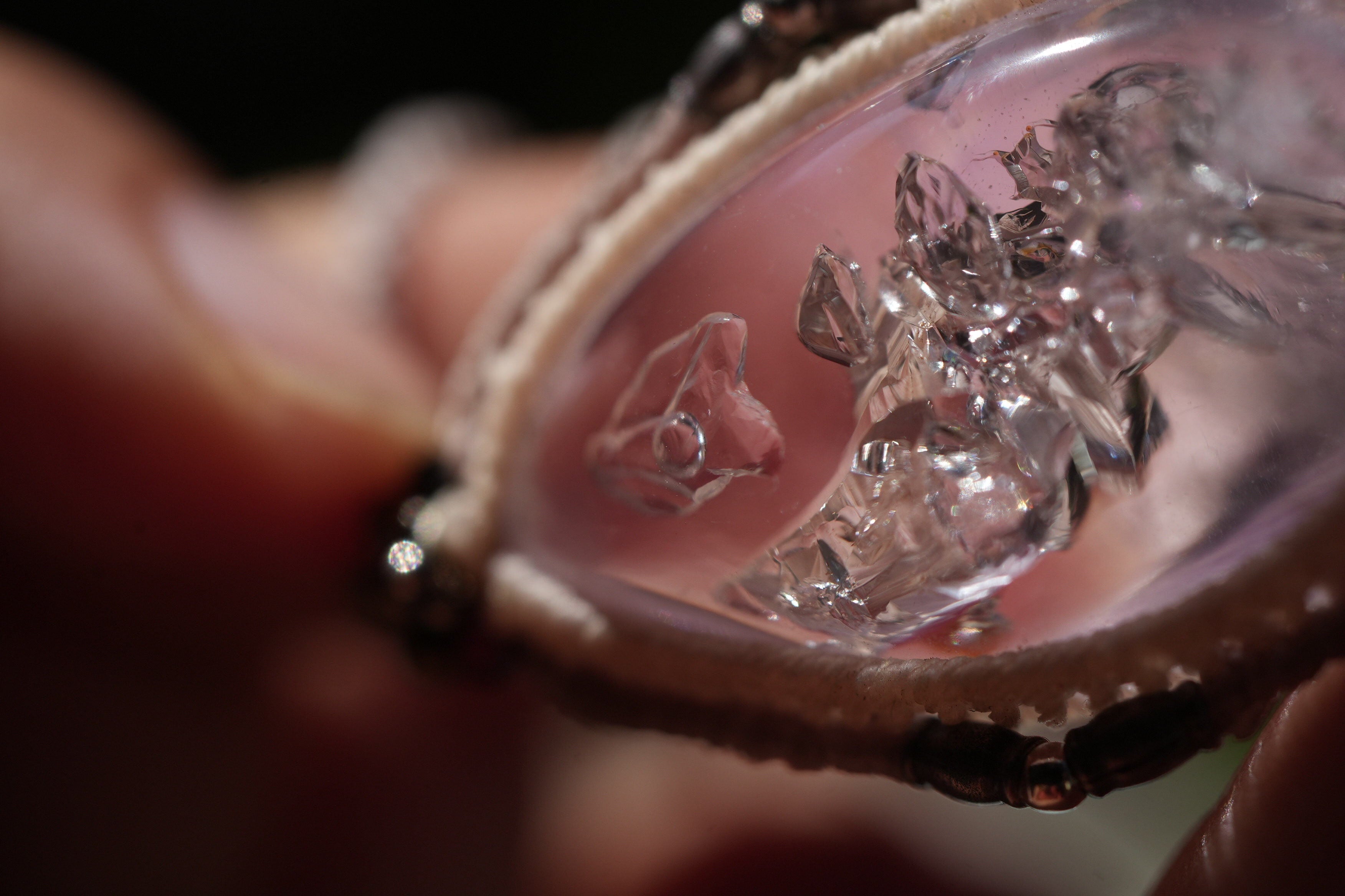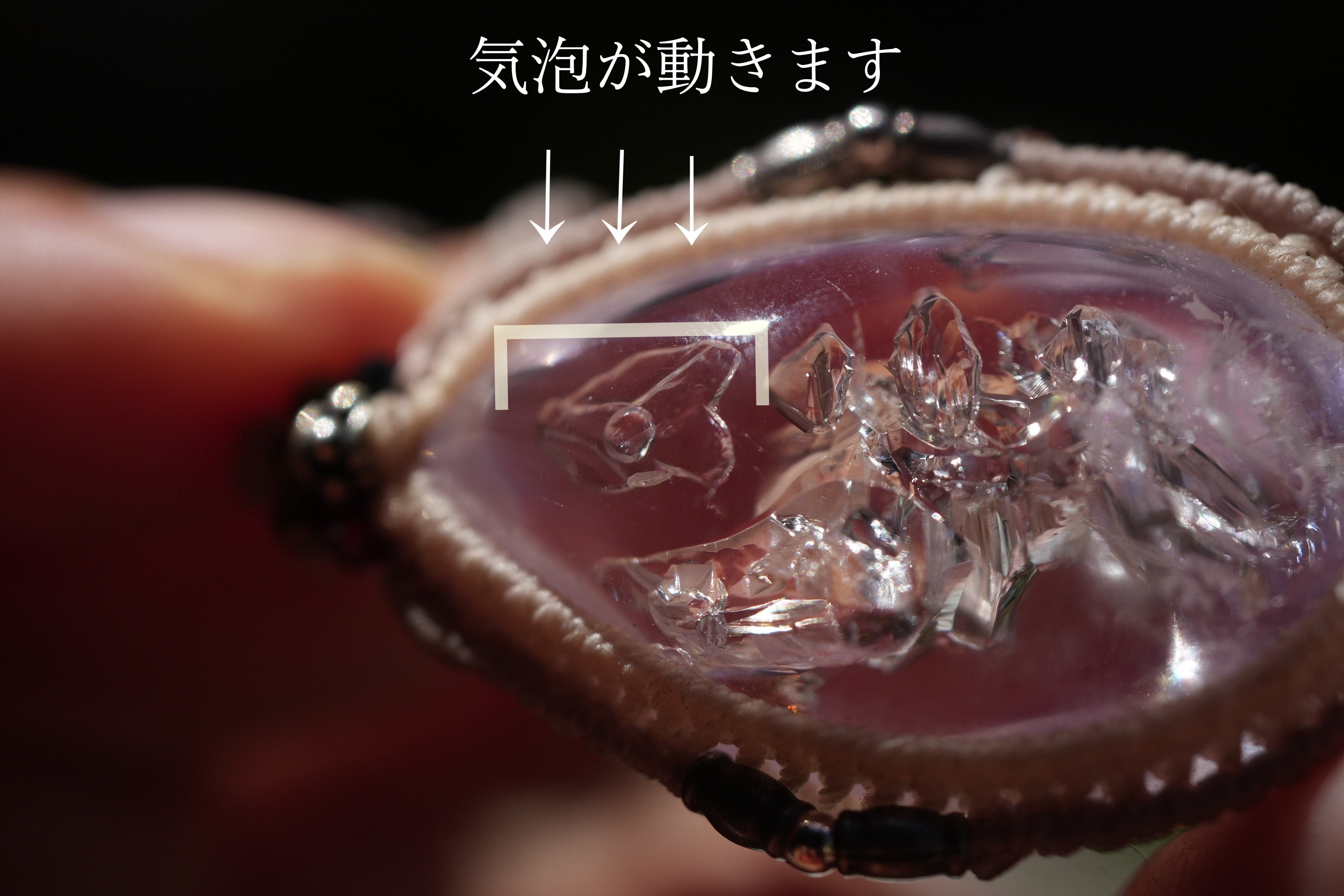 水入り水晶は名前の通り、水晶の内部に水分が内包されたもので、その中に内包された空気が動くことによって水の存在を確認することができるもの。数千万年から数億年前のものと言われております。