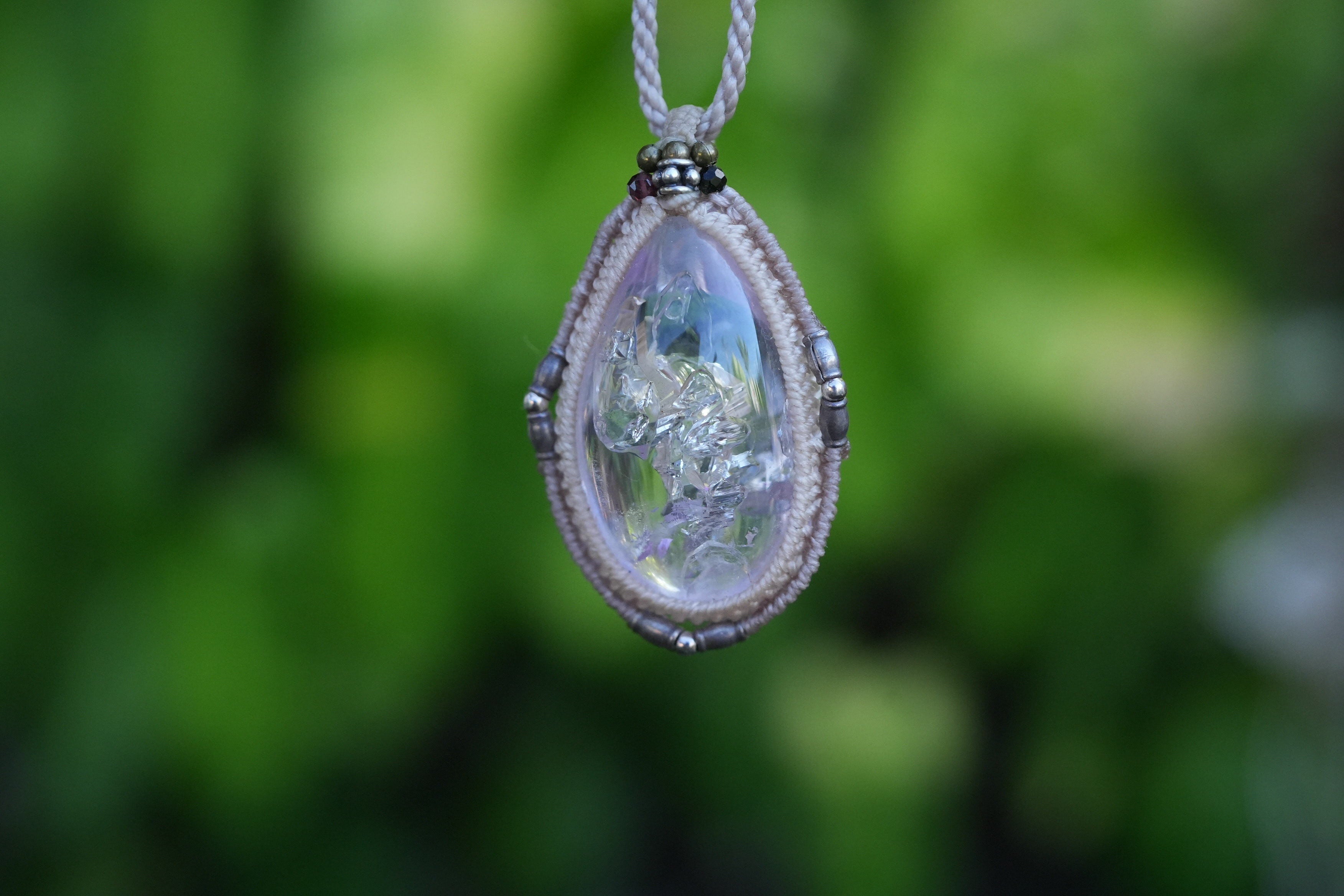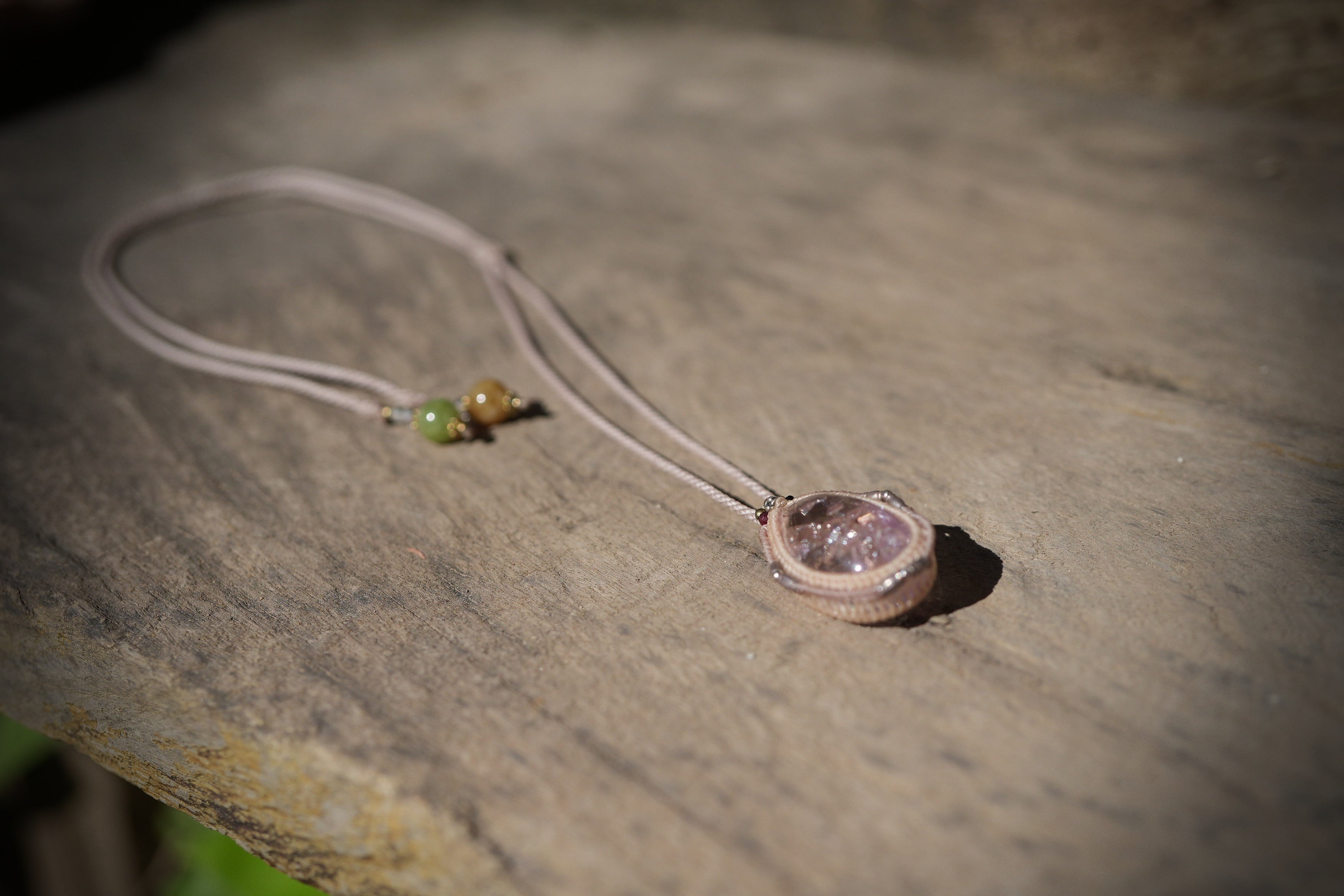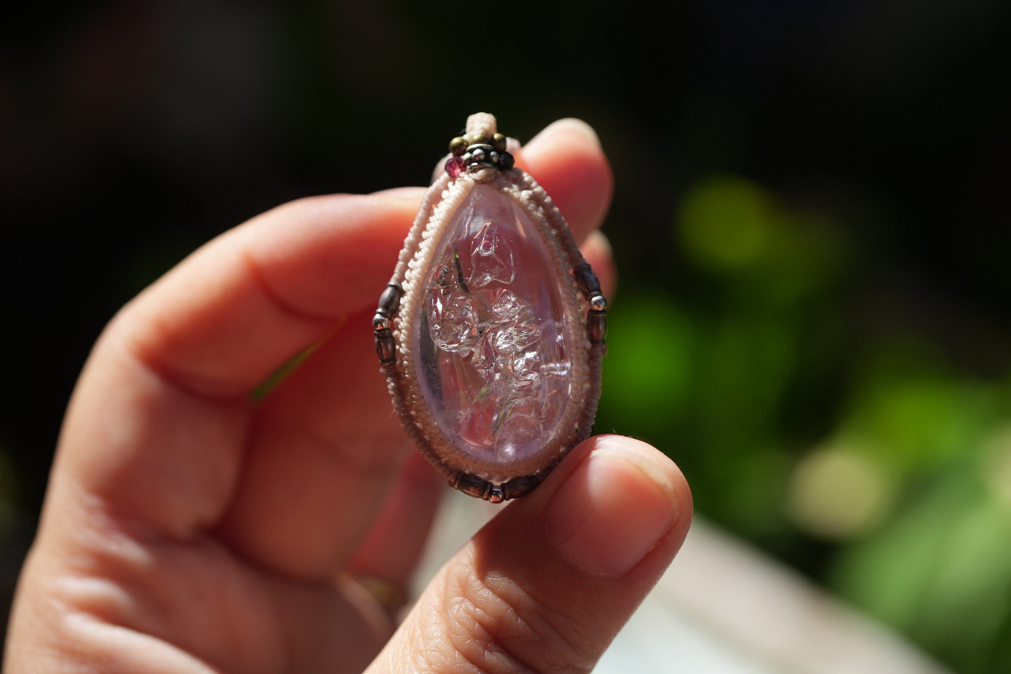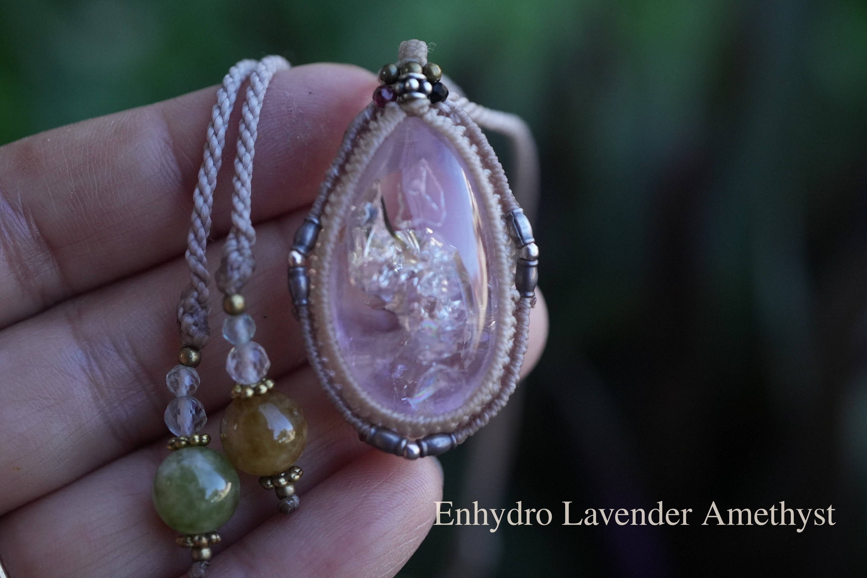 レア水入りLavender Amethyst ★マクラメネックレス 2623