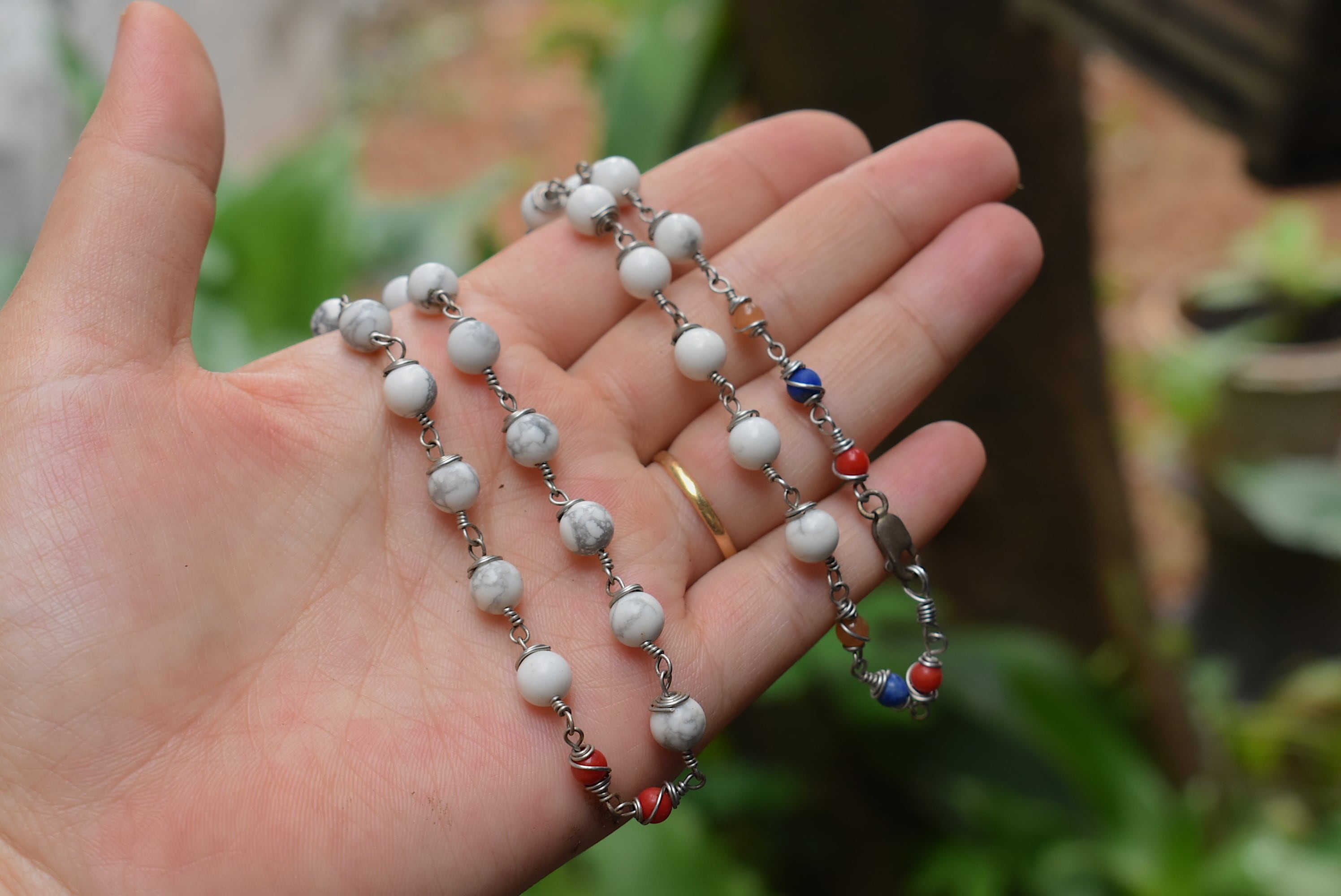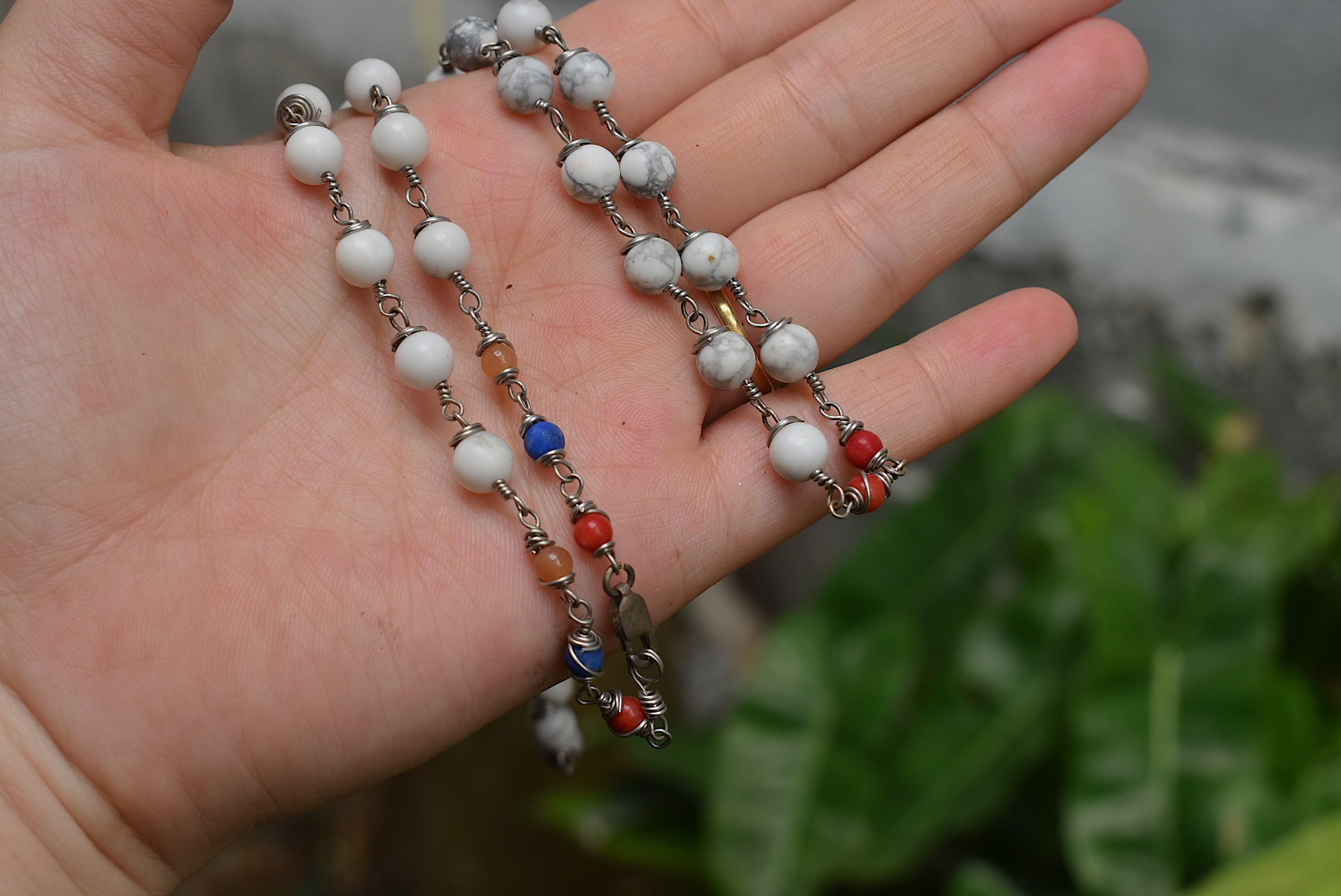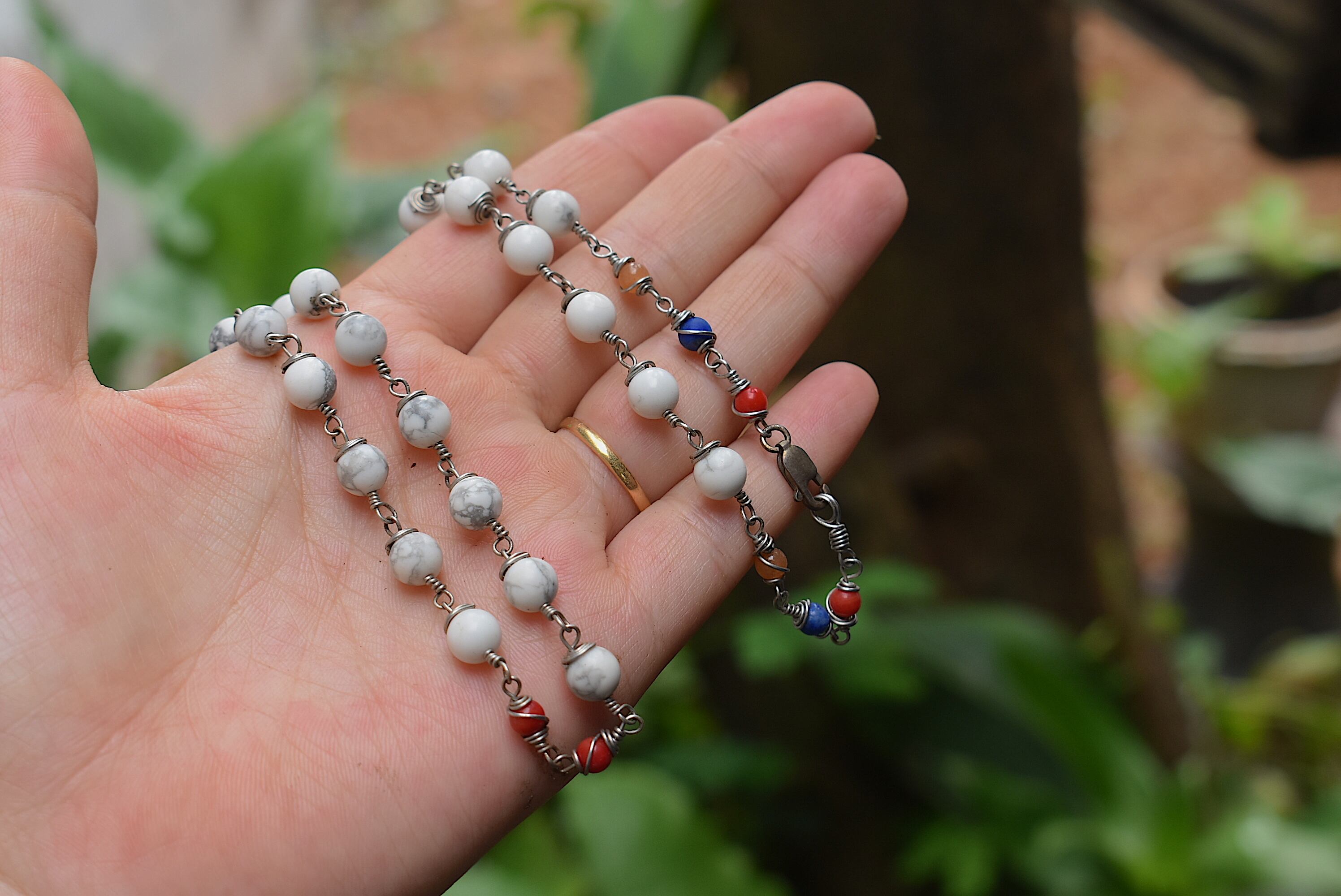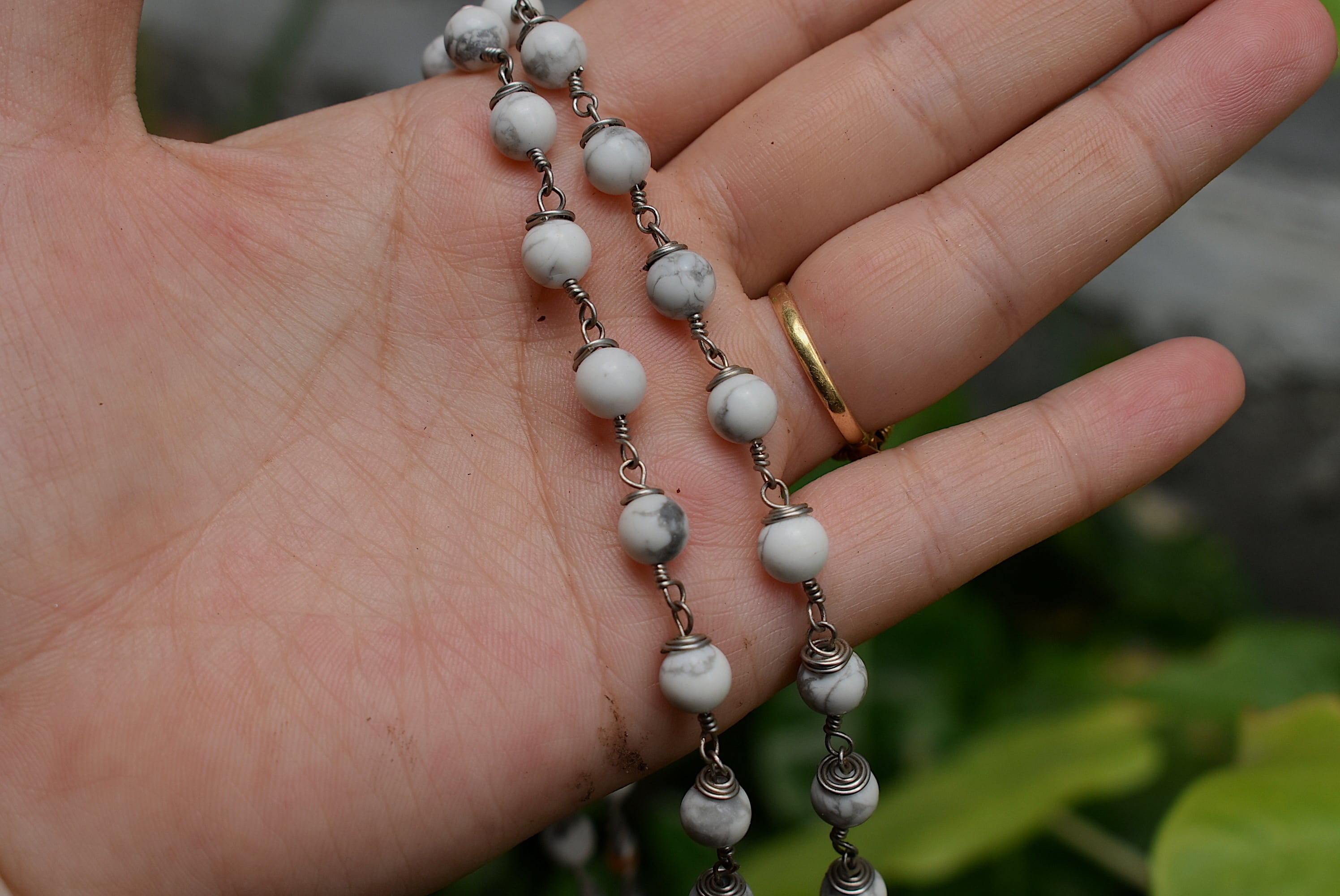爽やかな白い石★ハウライトワイヤービーズネックレスbn009
