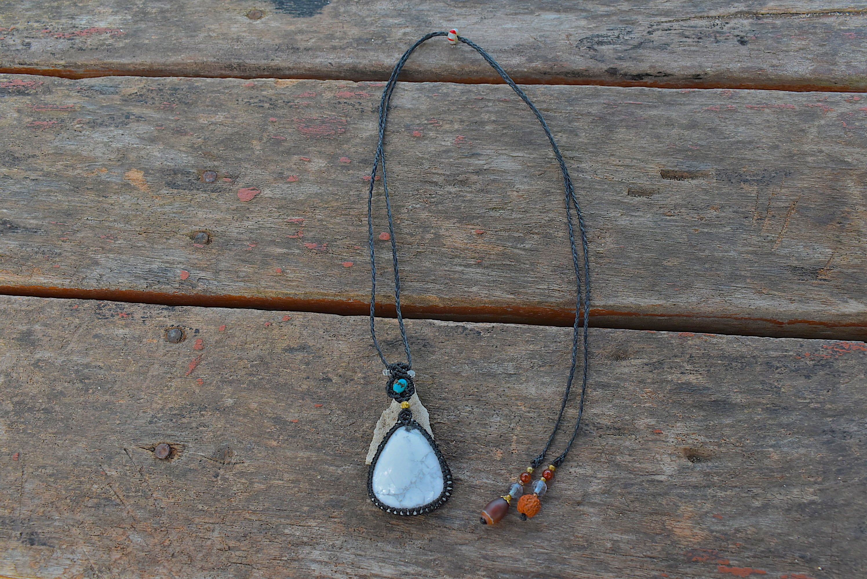 白い石★ハウライト★ターコイズビーズ マクラメペンダント