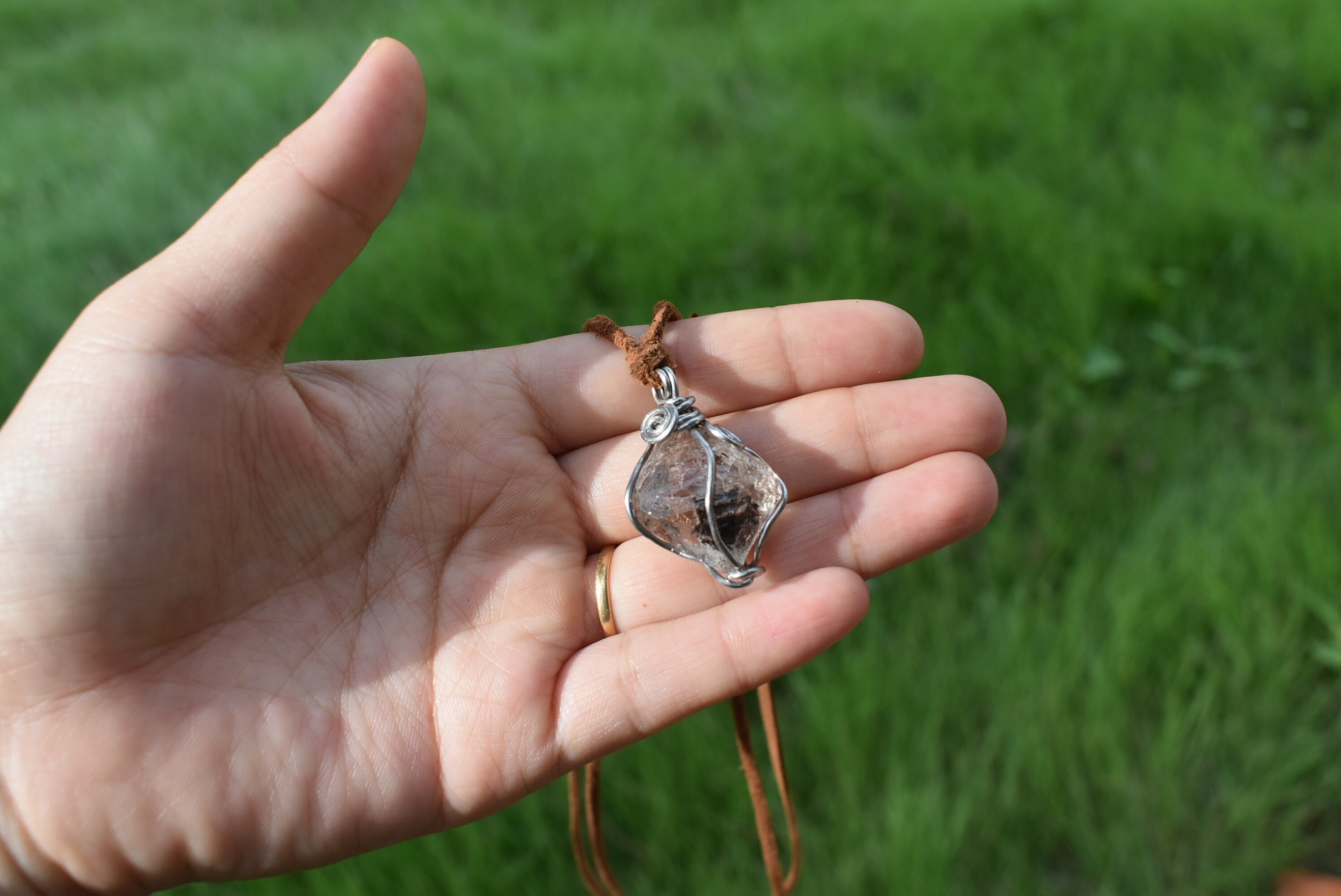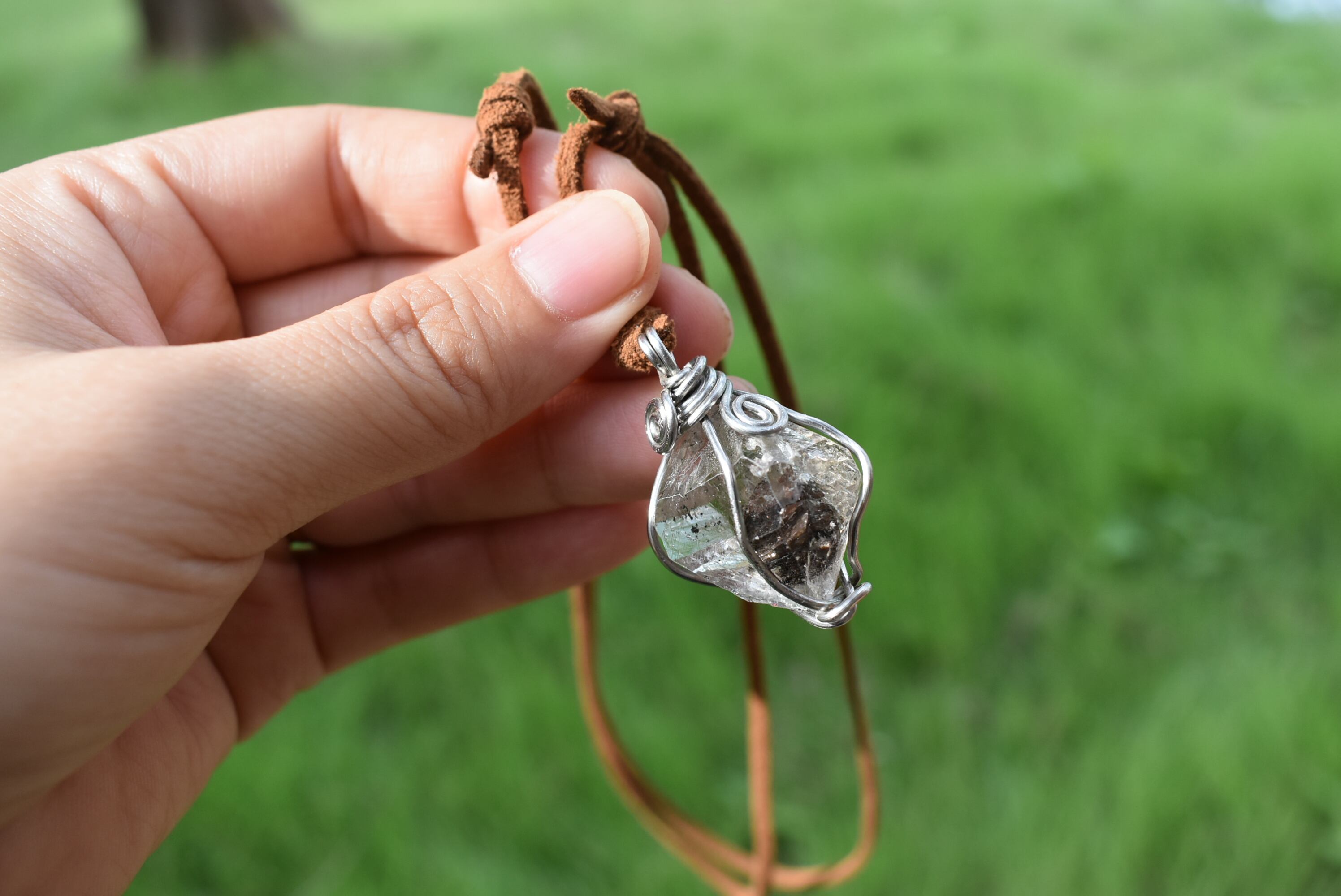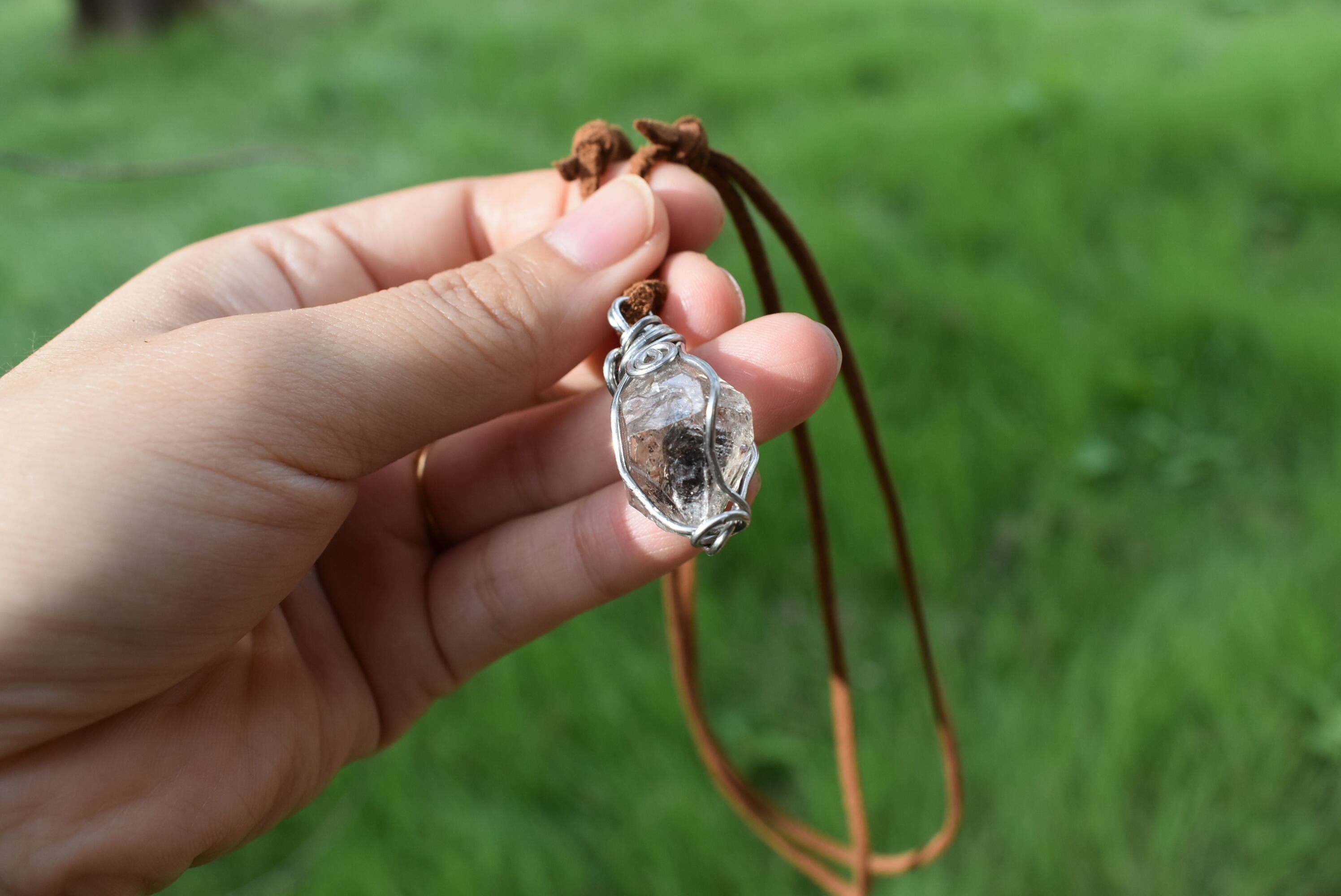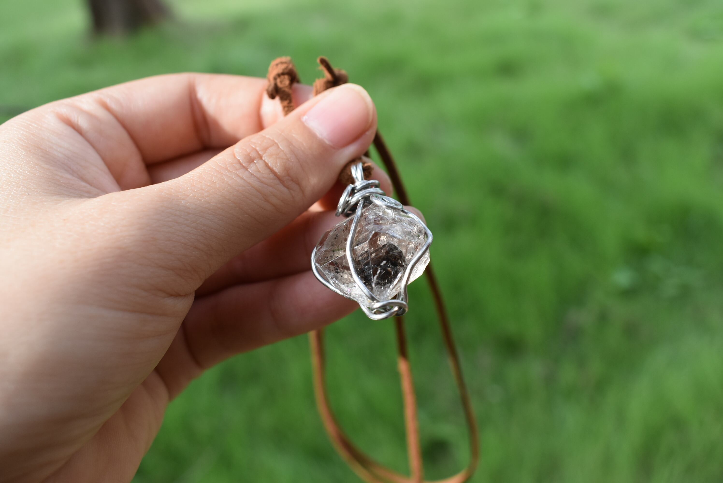 希少★クローライト入り★ハーキマーダイヤモンド ワイヤーアートペンダントH