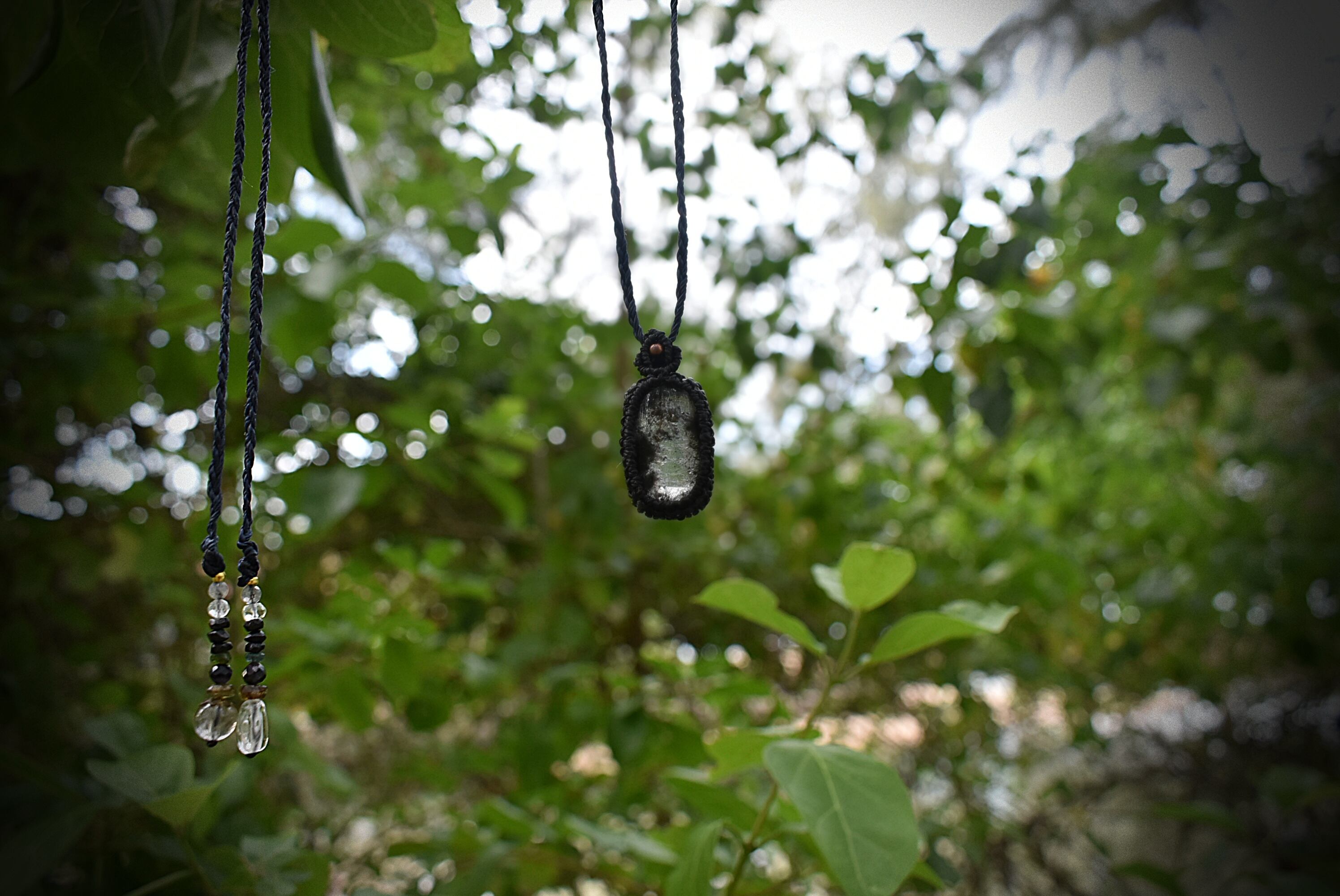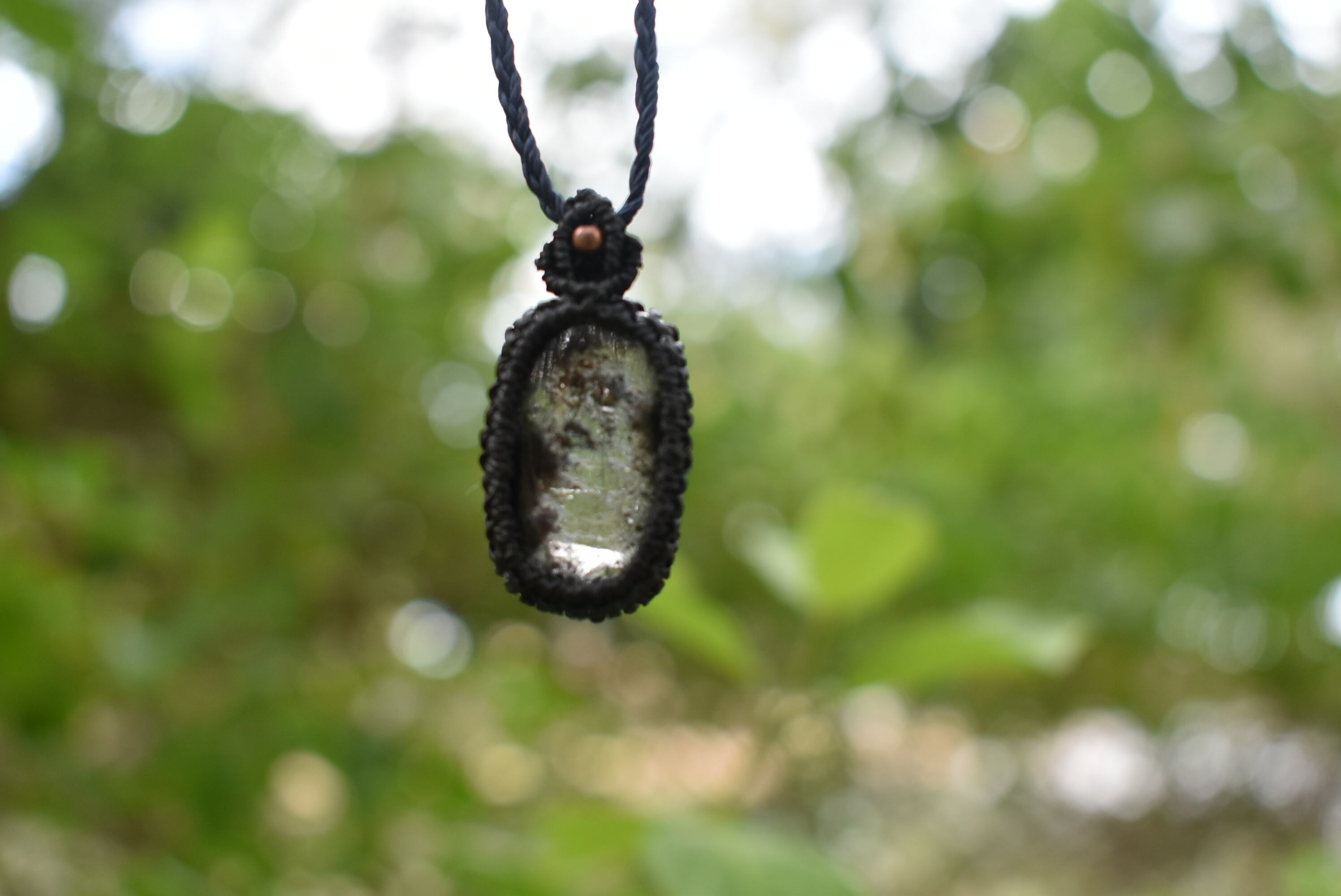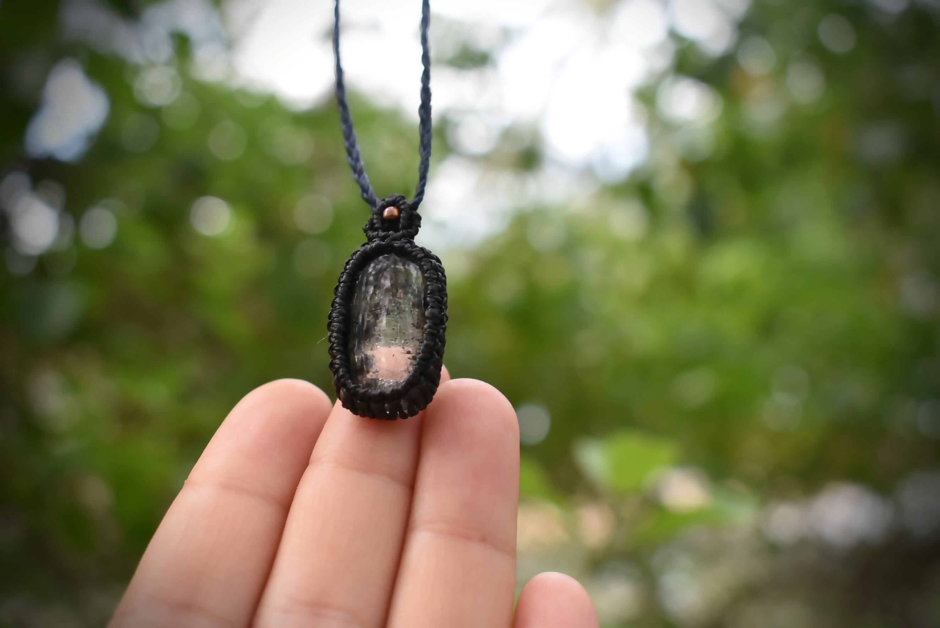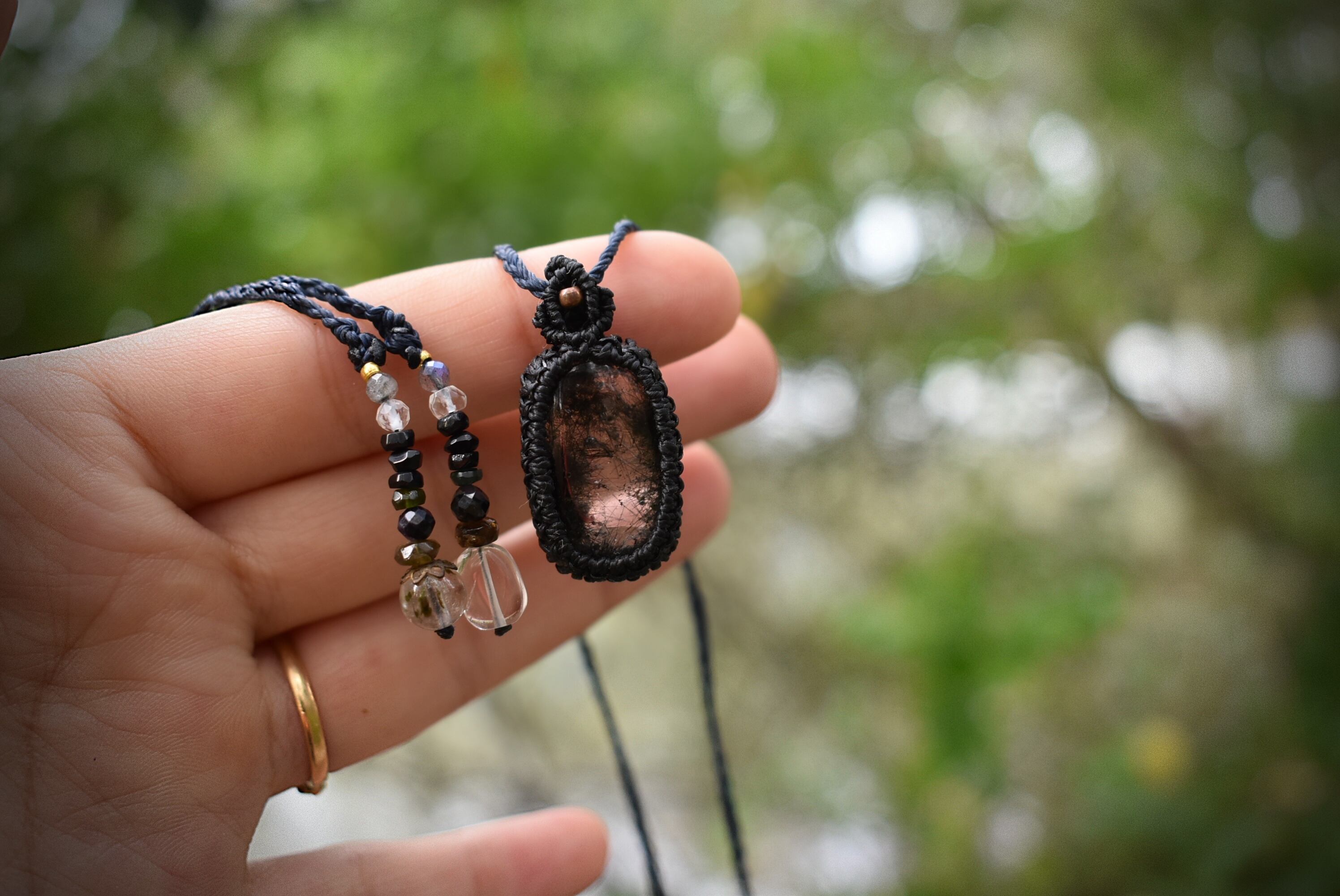 虹入り★ブラックルチルインクォーツ★マクラメペンダントBL001