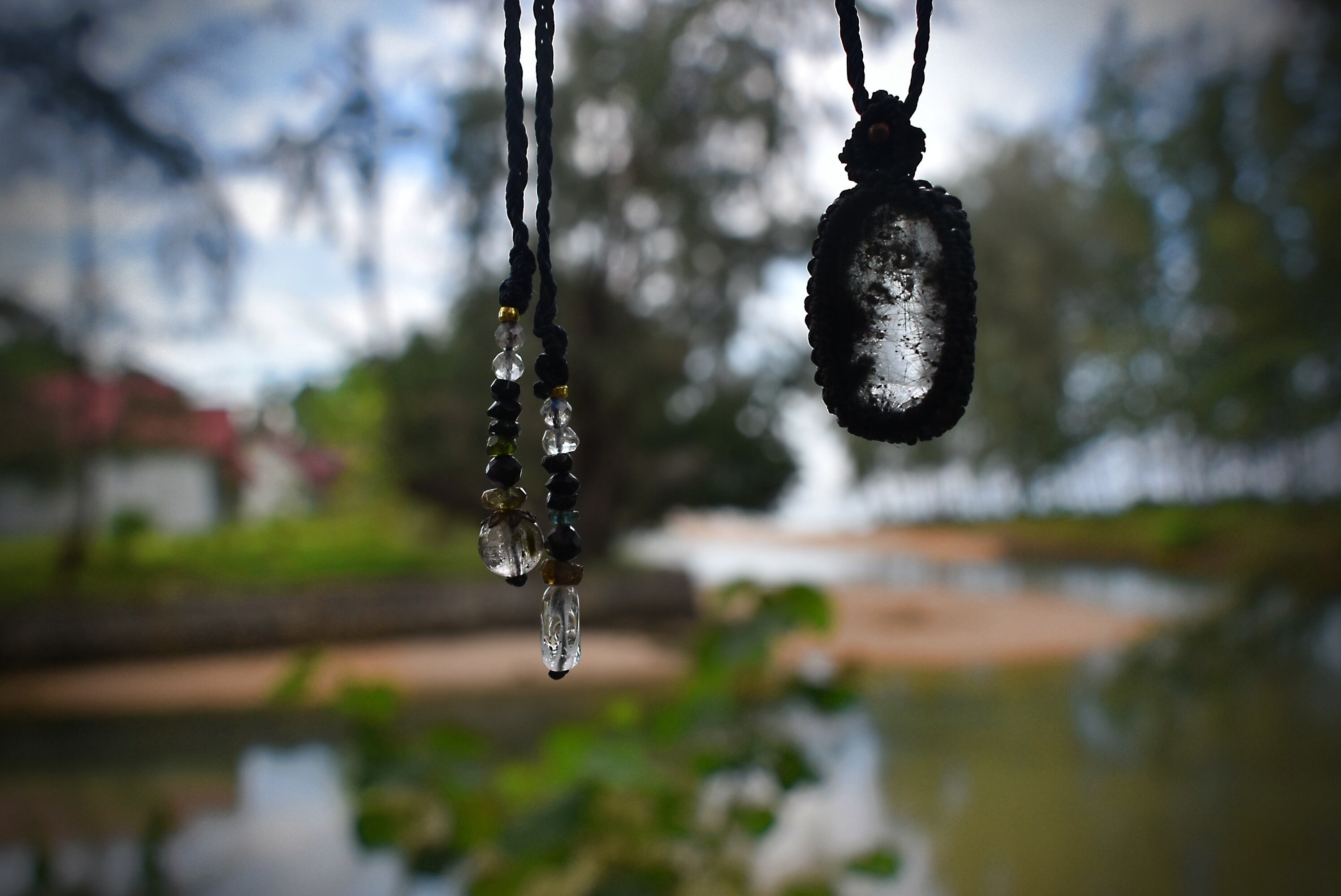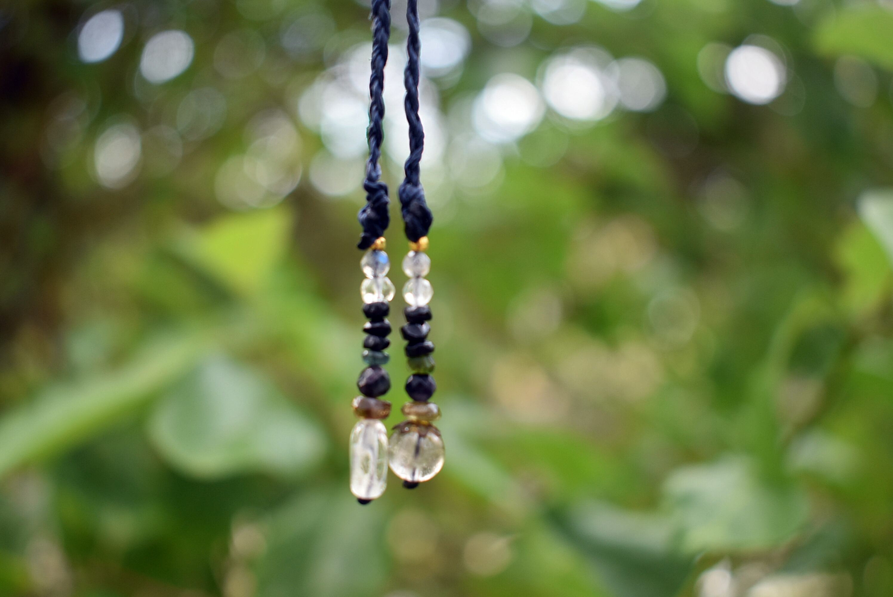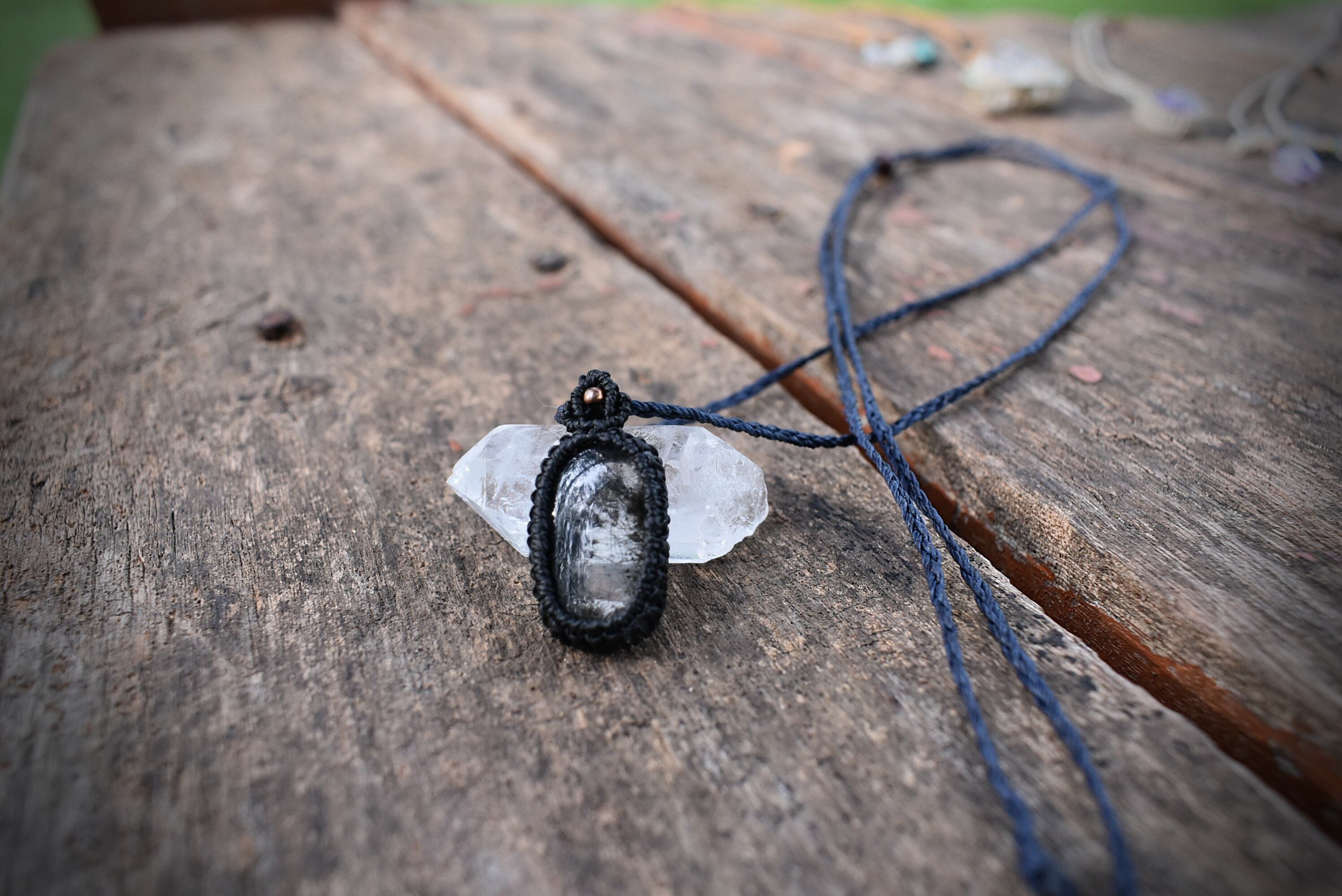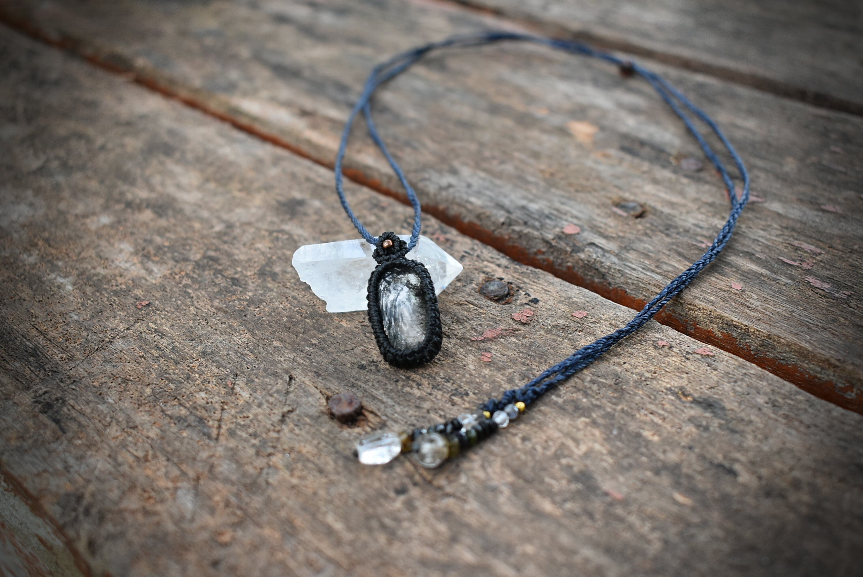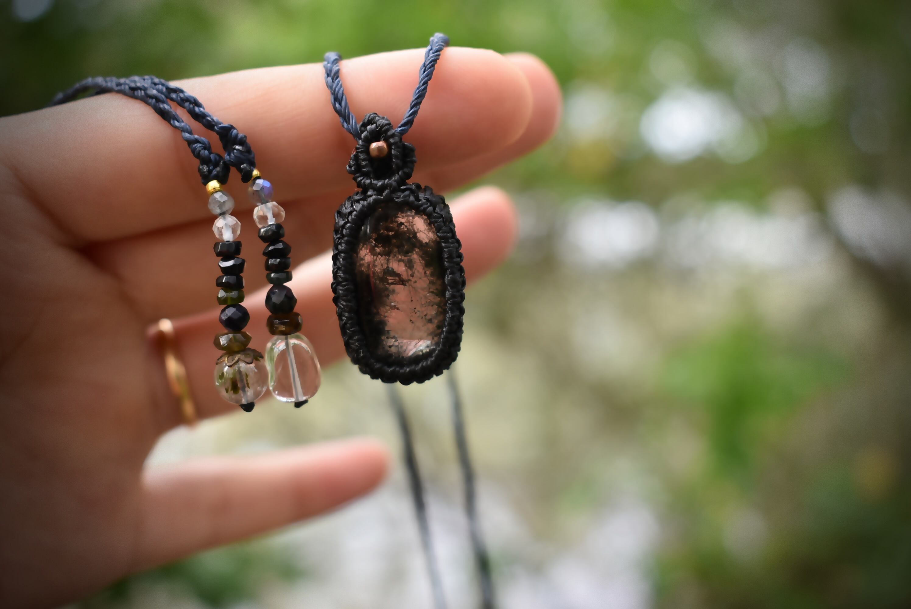 虹入り★ブラックルチルインクォーツ★マクラメペンダントBL001
