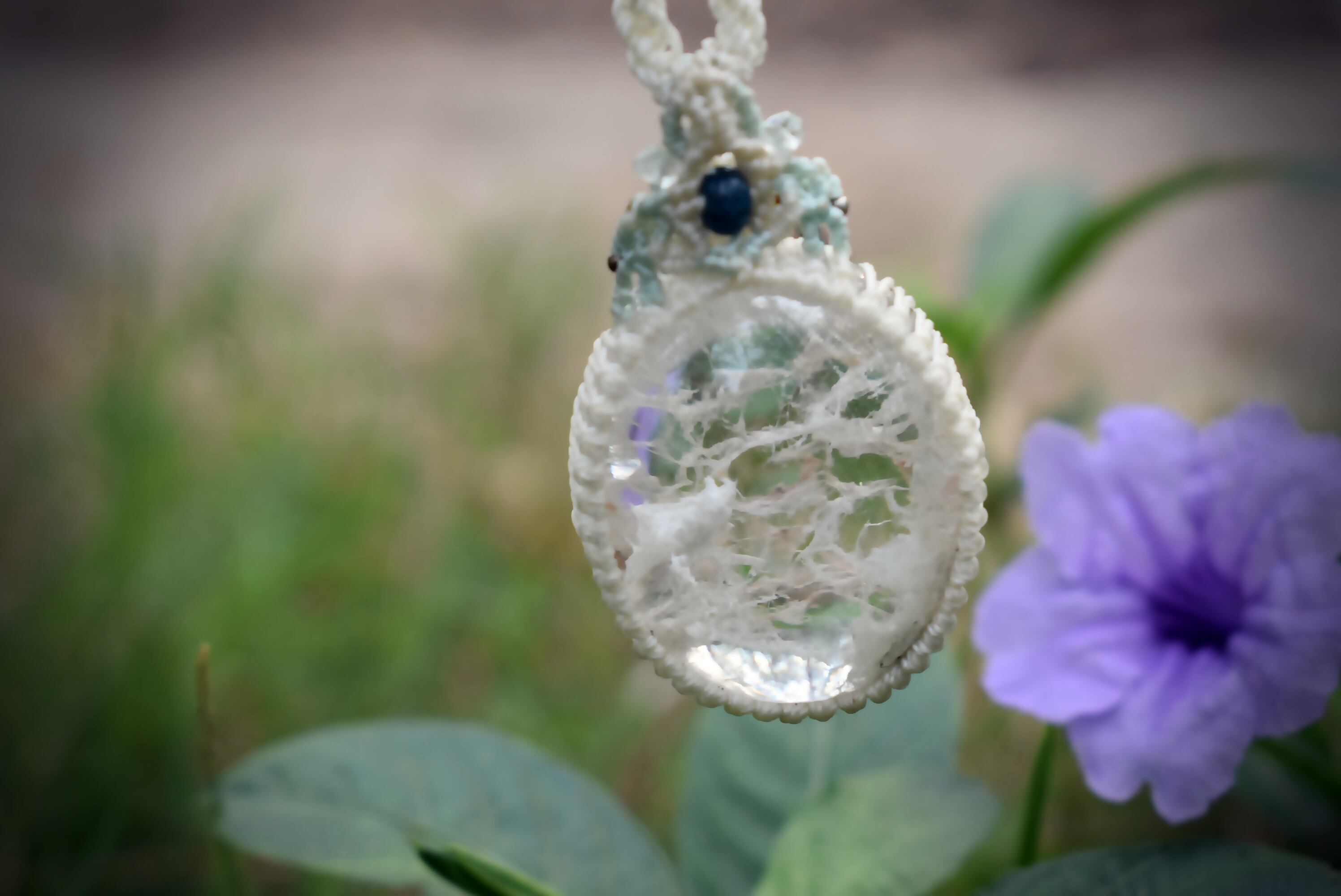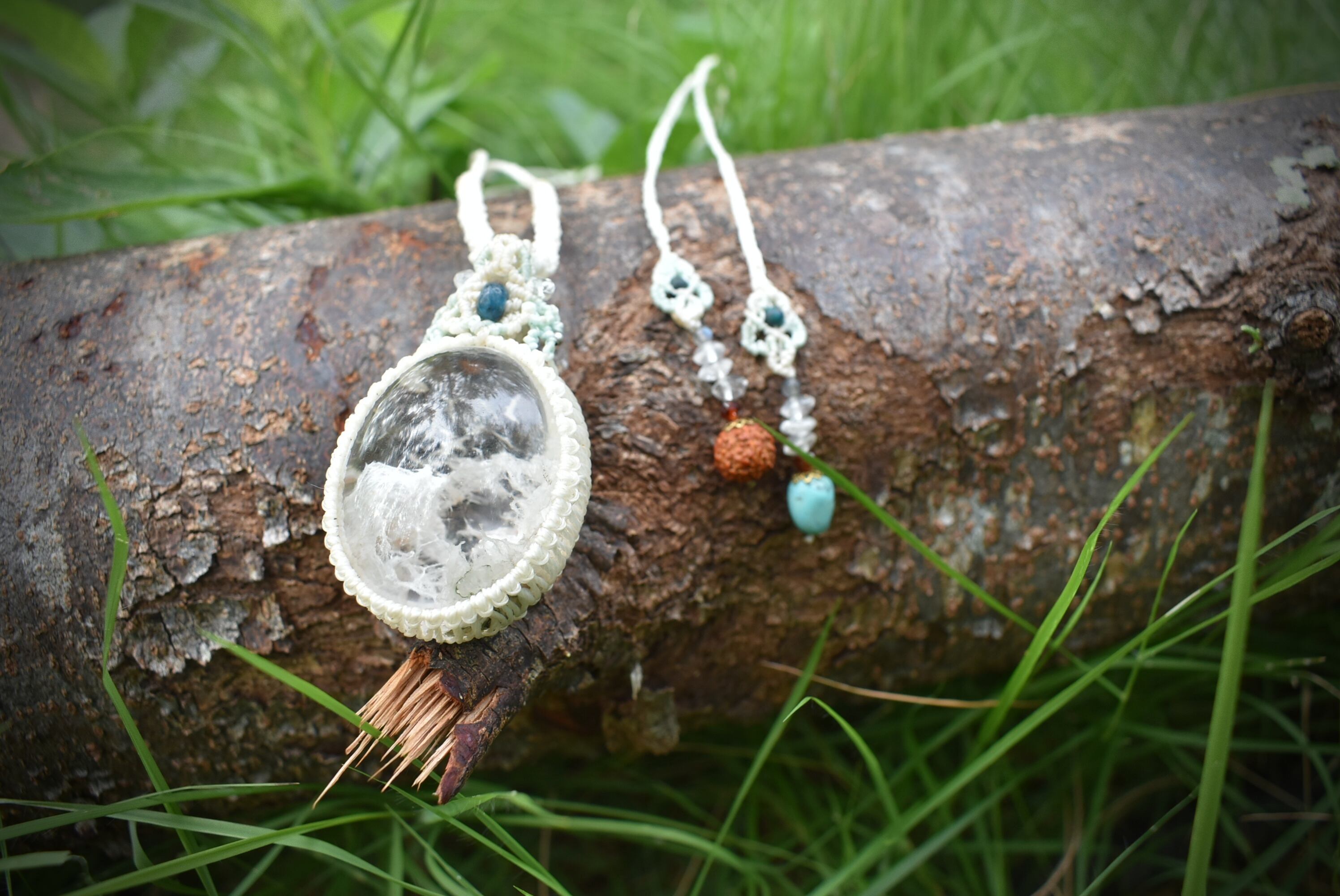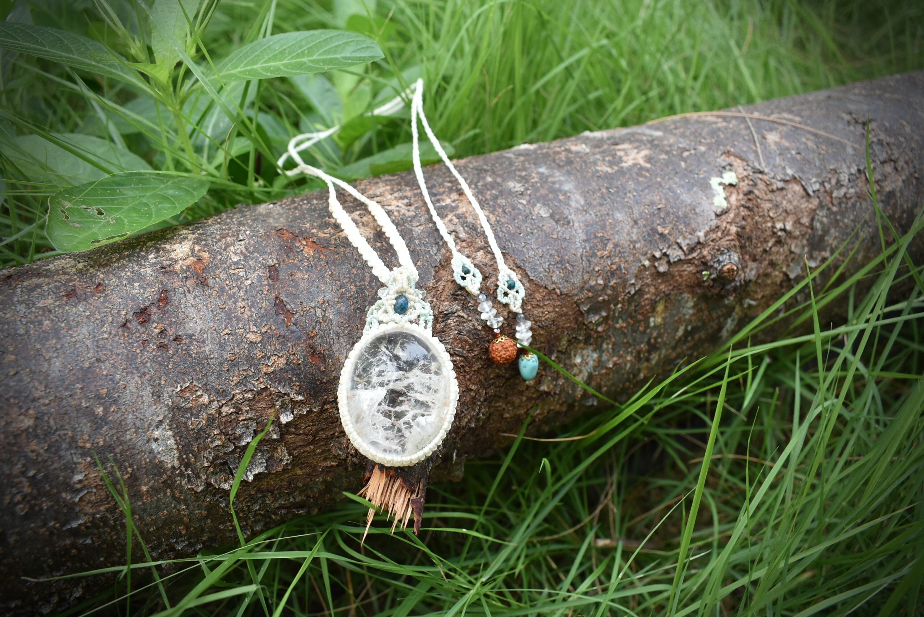 レア柄★ホワイトスパイダー★ガーデンクォーツ マクラメペンダント