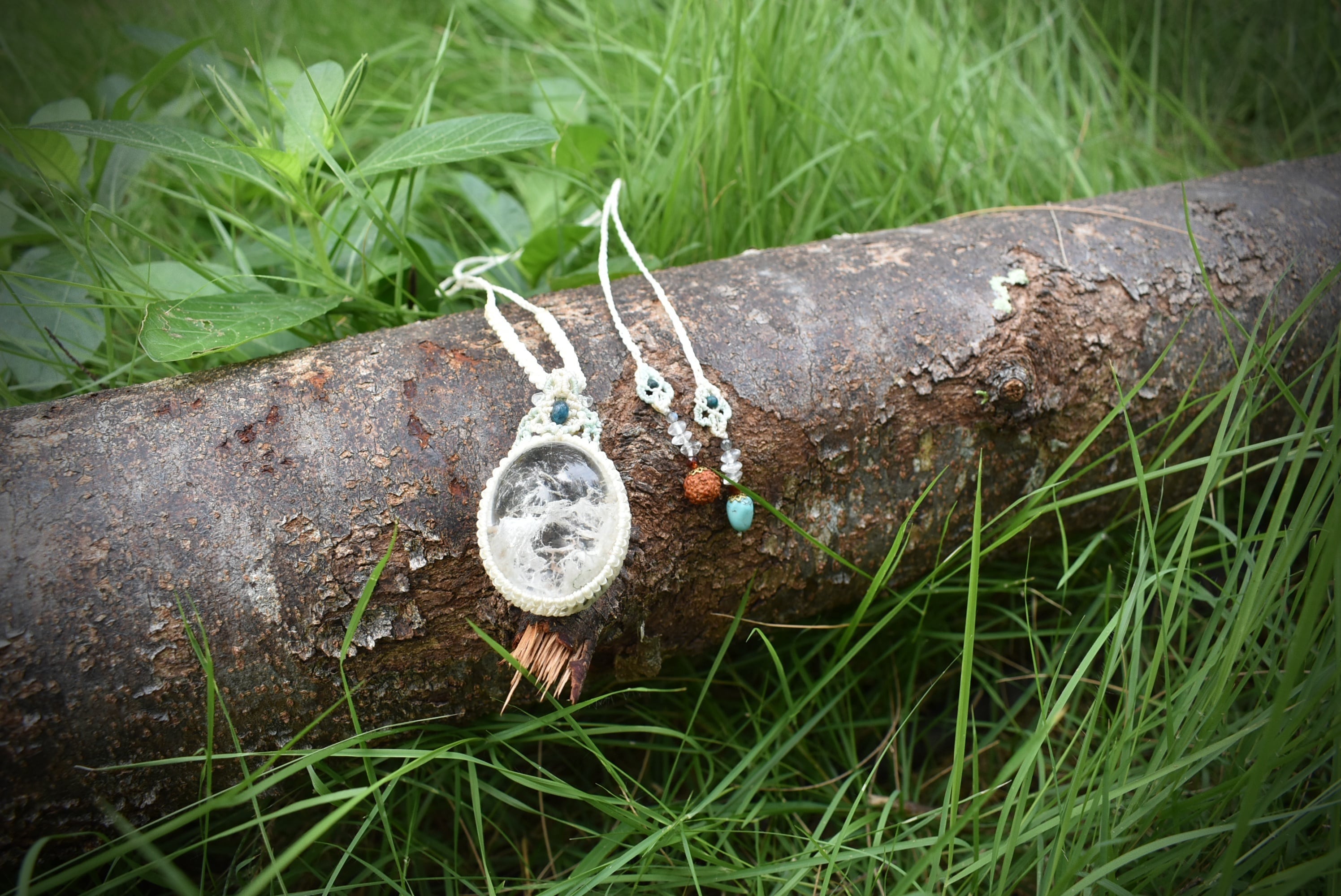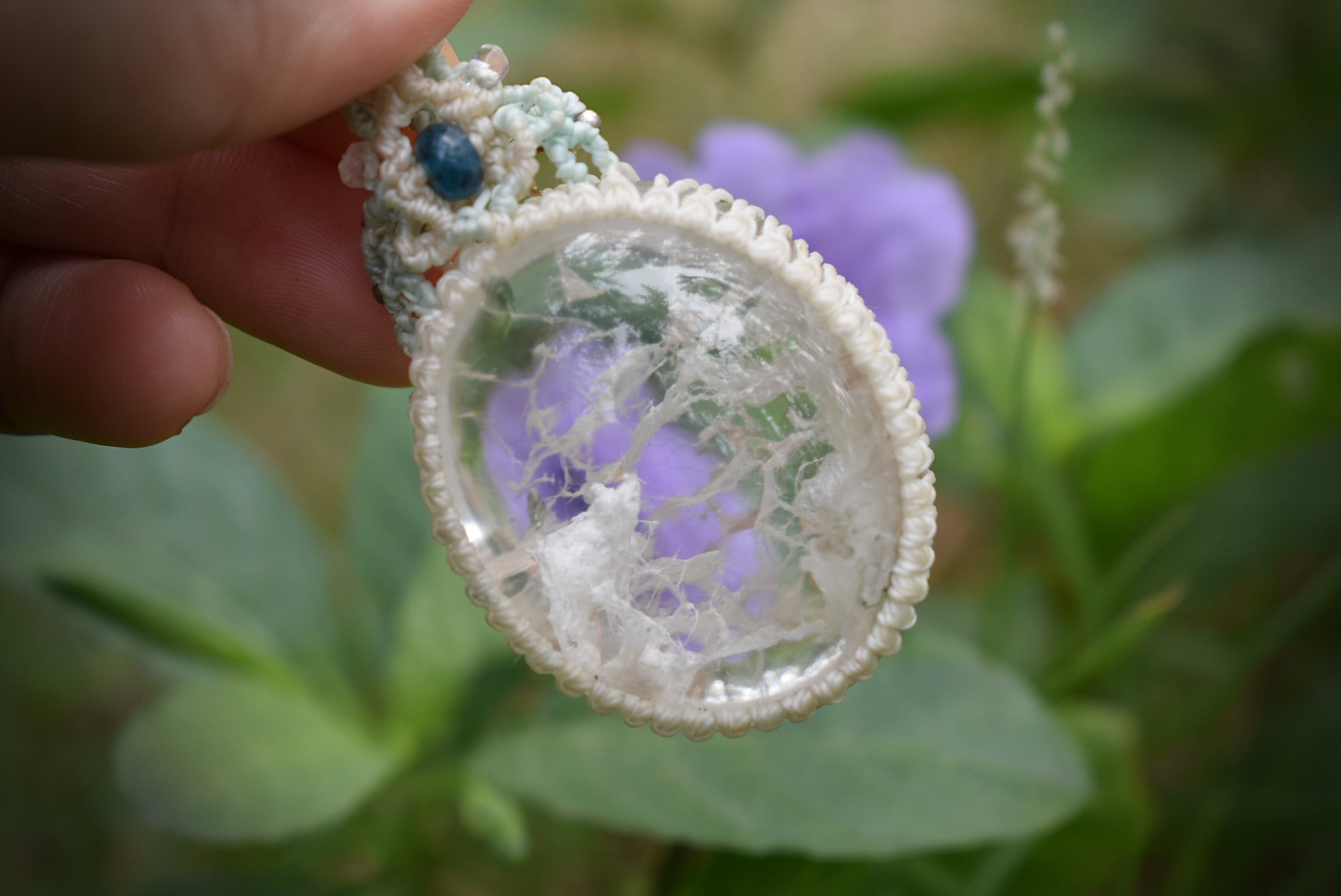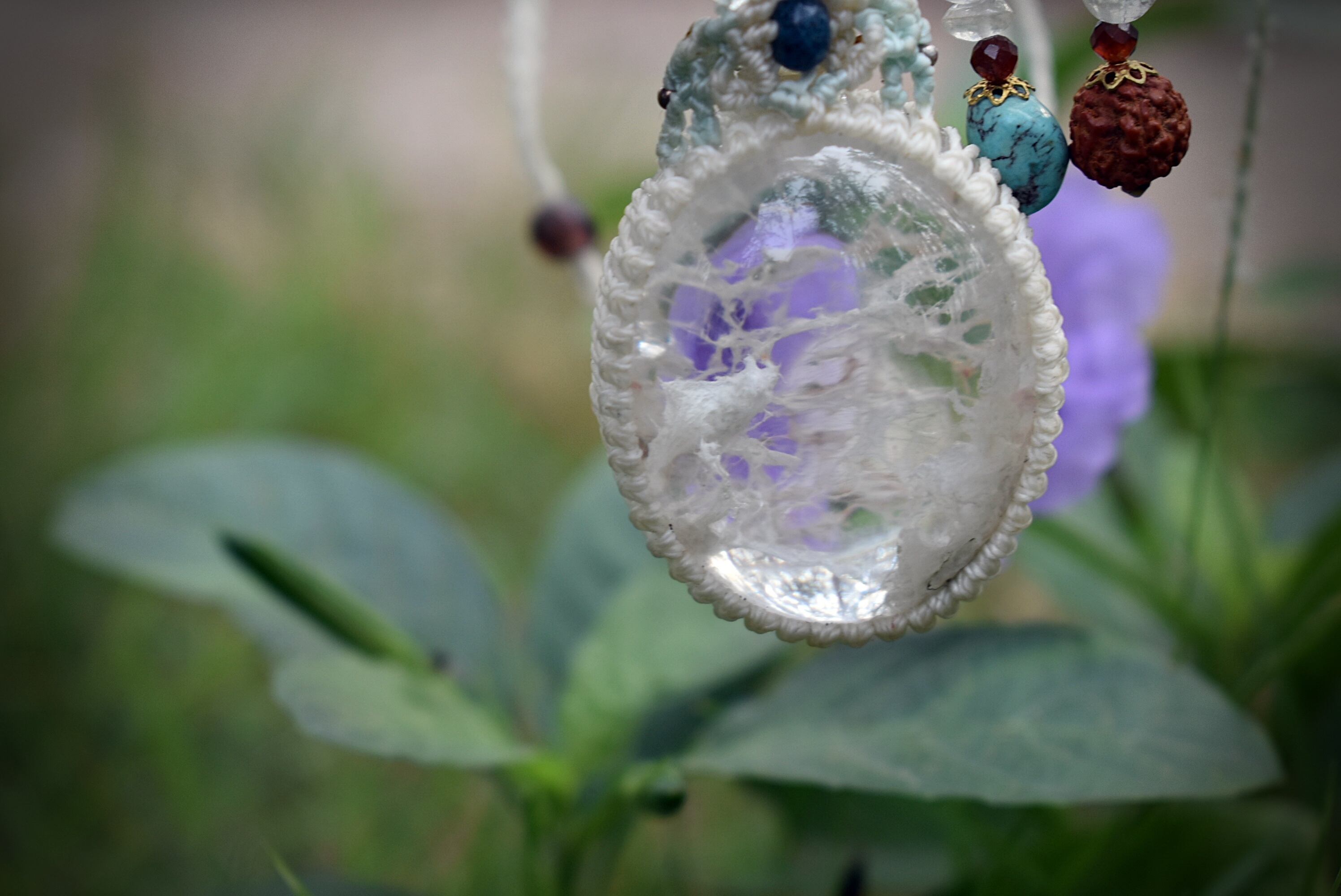 レア柄★ホワイトスパイダー★ガーデンクォーツ マクラメペンダント