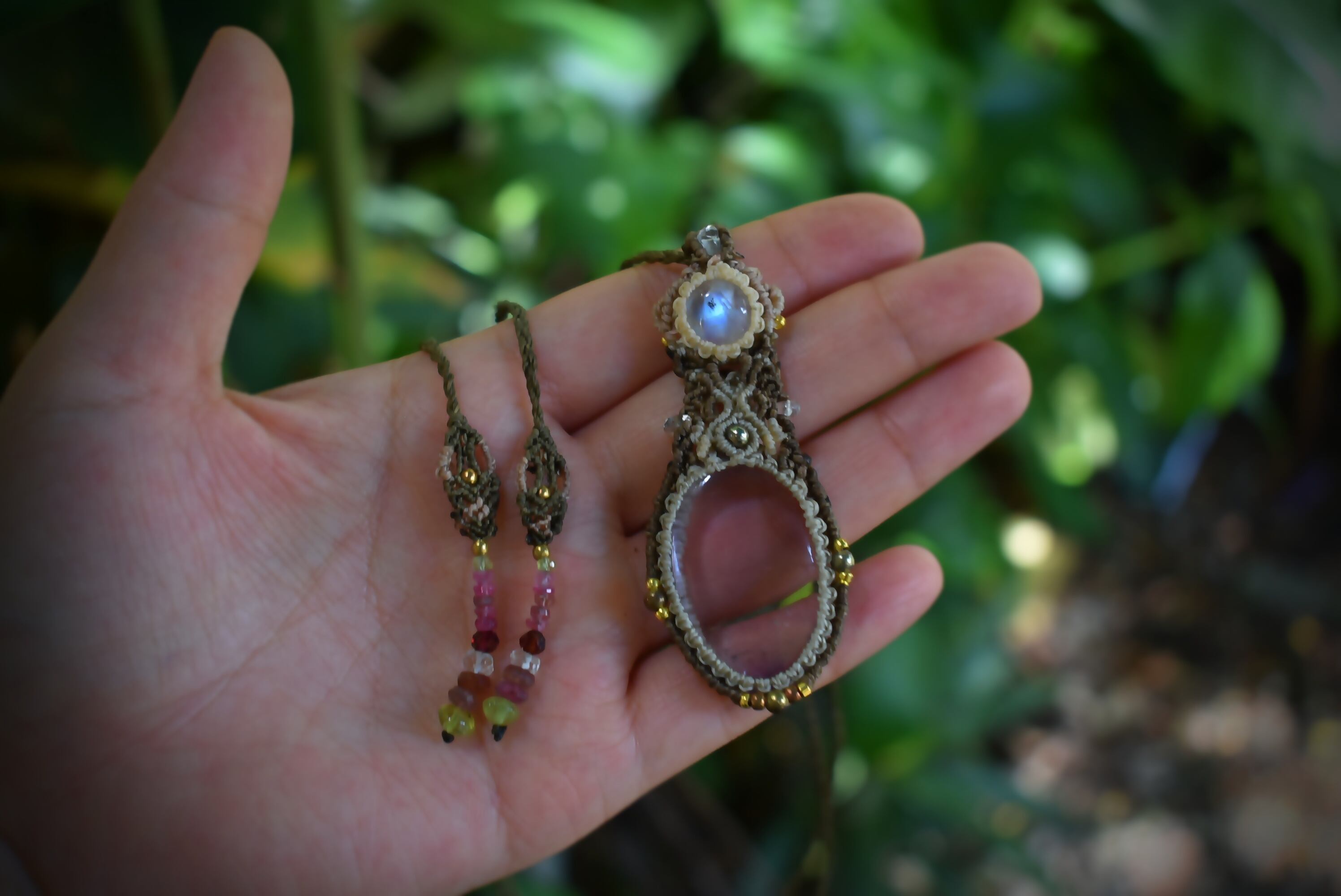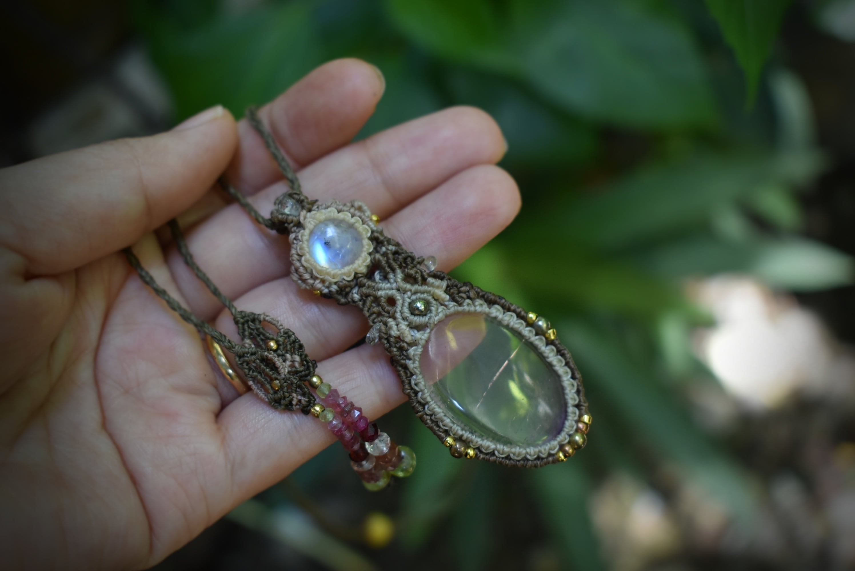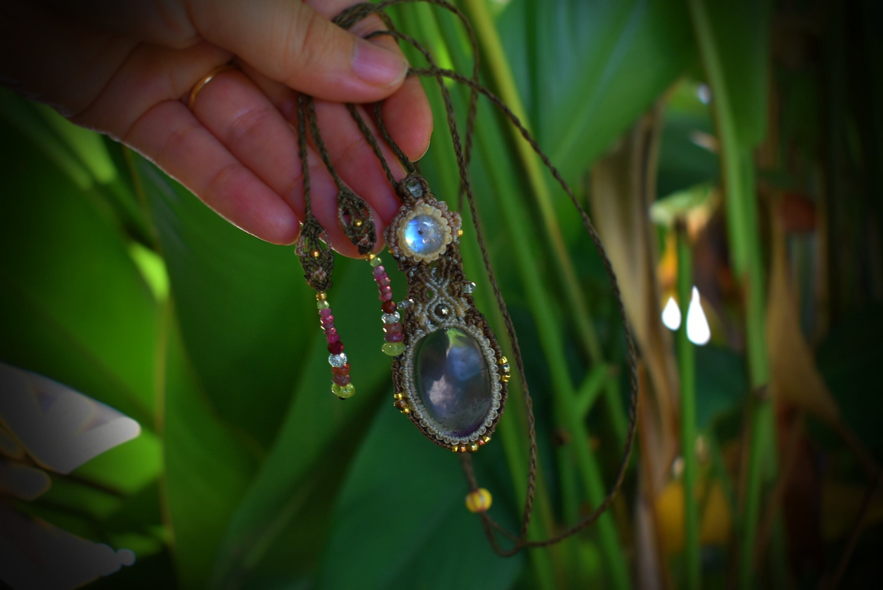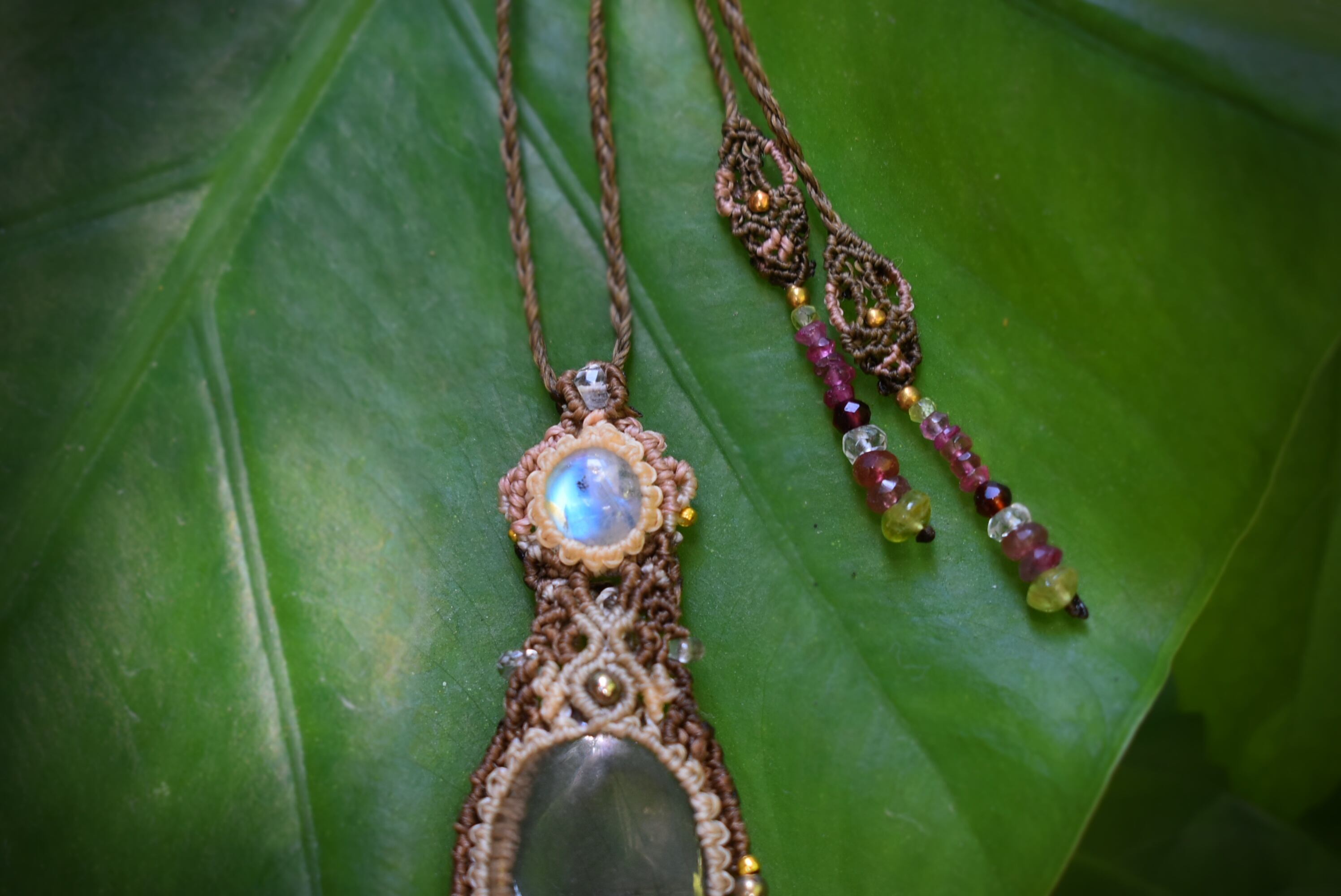 虹と透明感★艶めくアメトリンとムーンストーン マクラメペンダントmoon002
