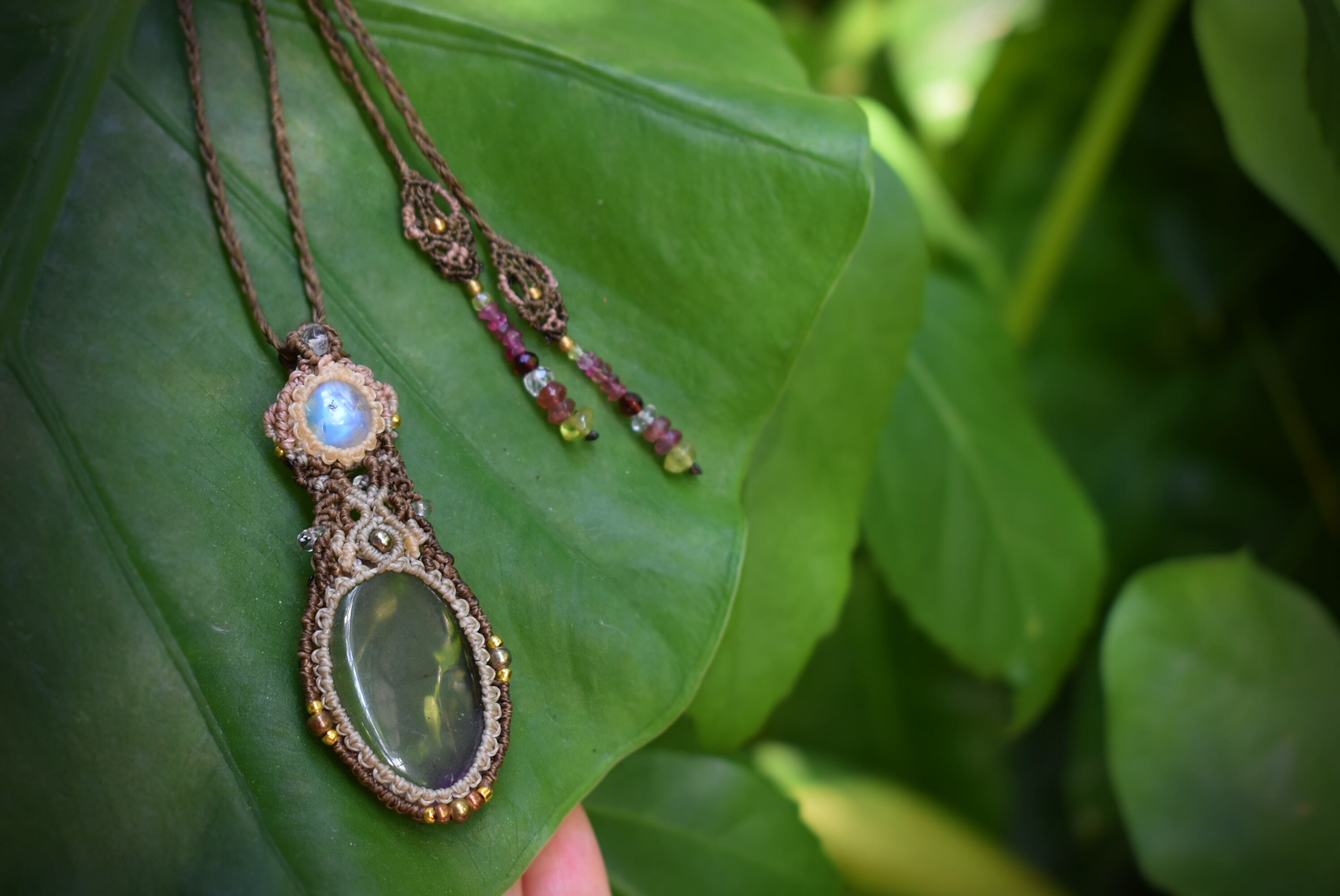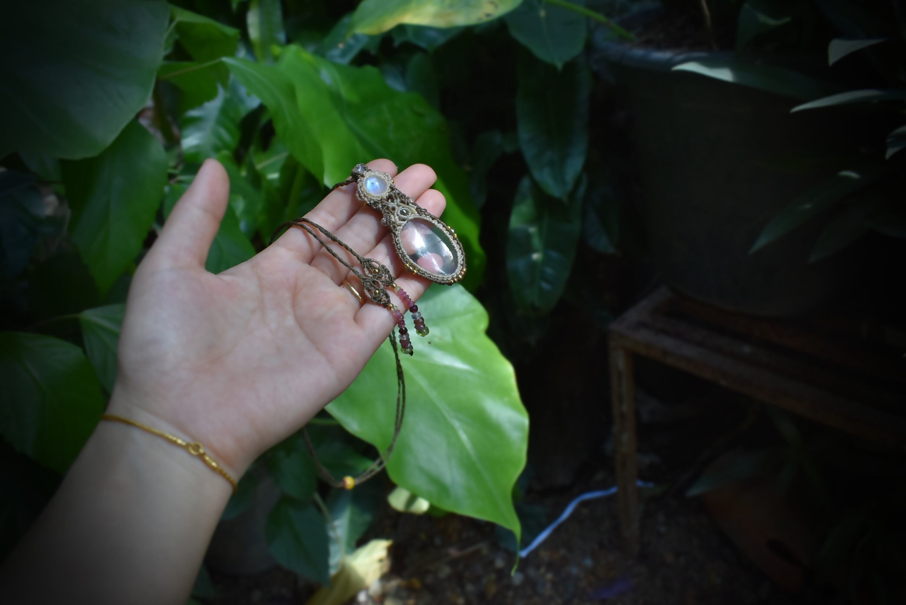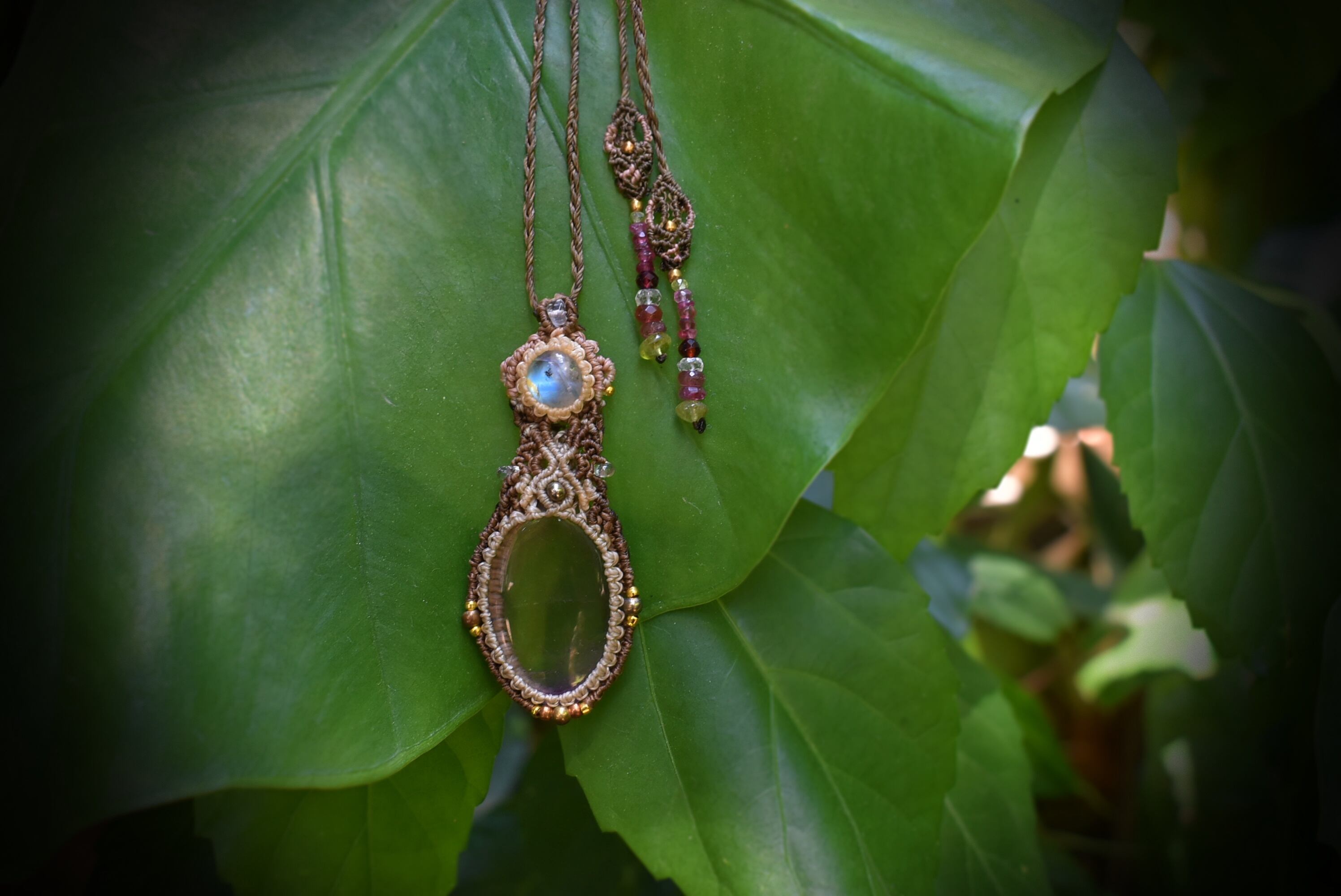 虹と透明感★艶めくアメトリンとムーンストーン マクラメペンダントmoon002